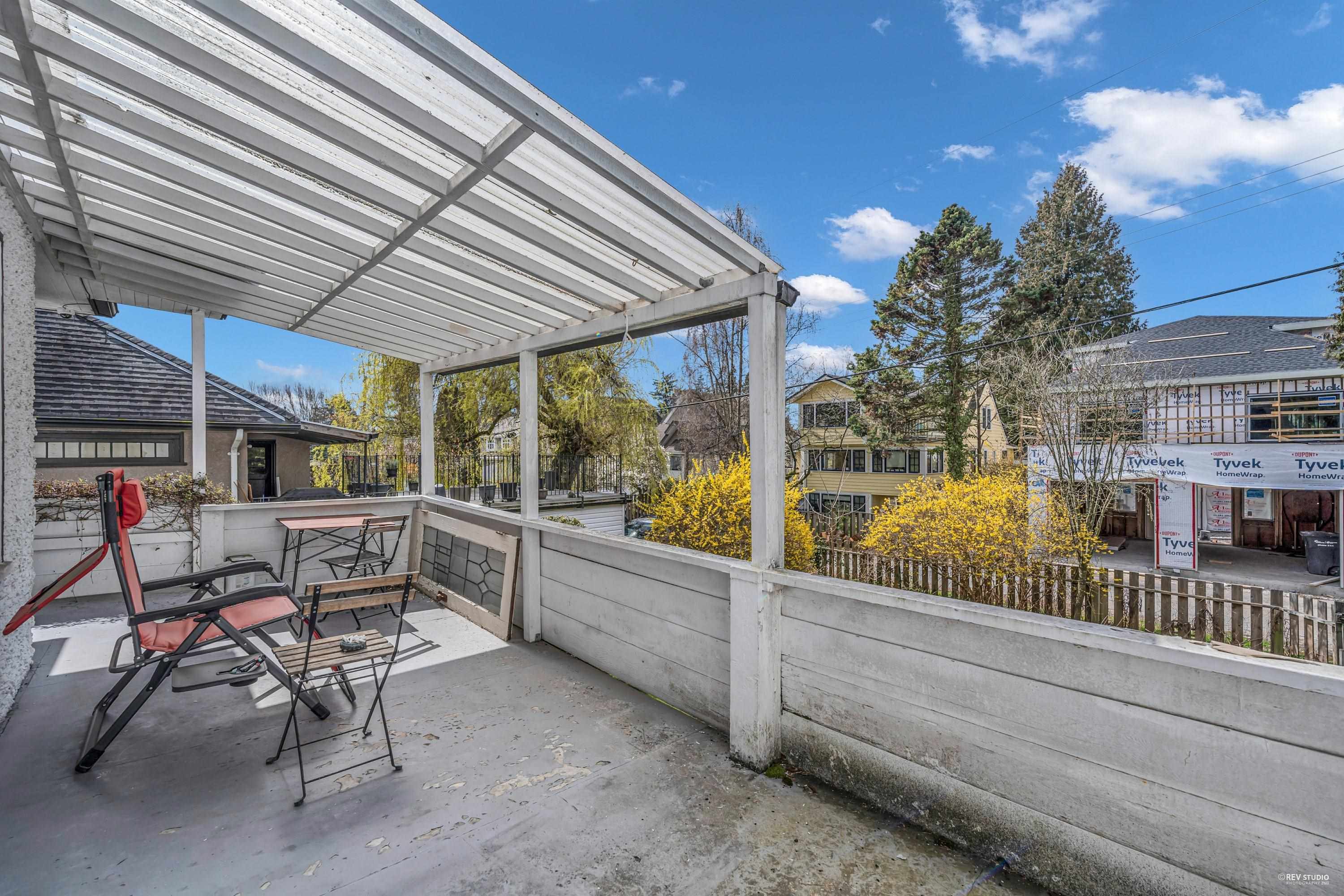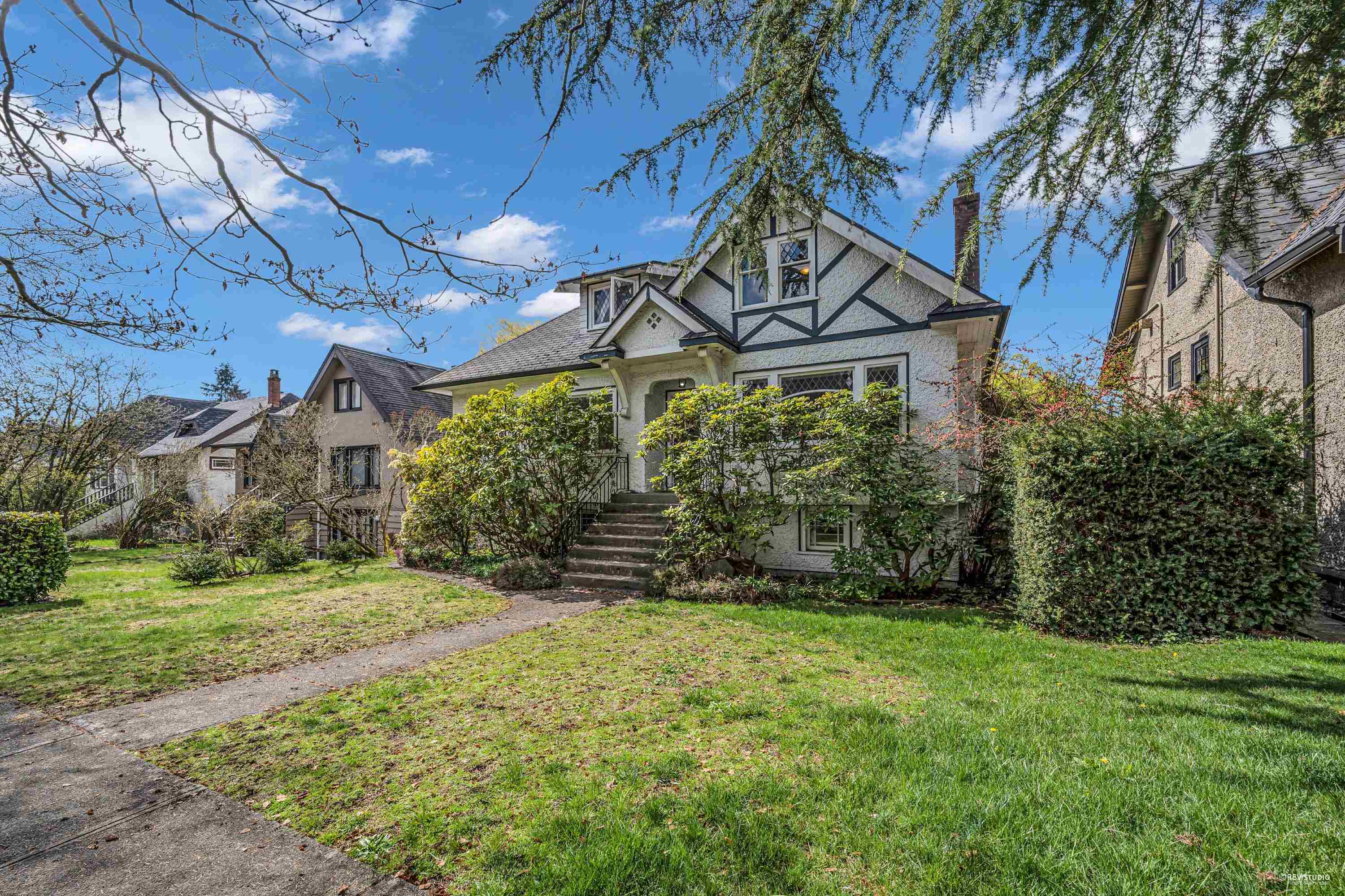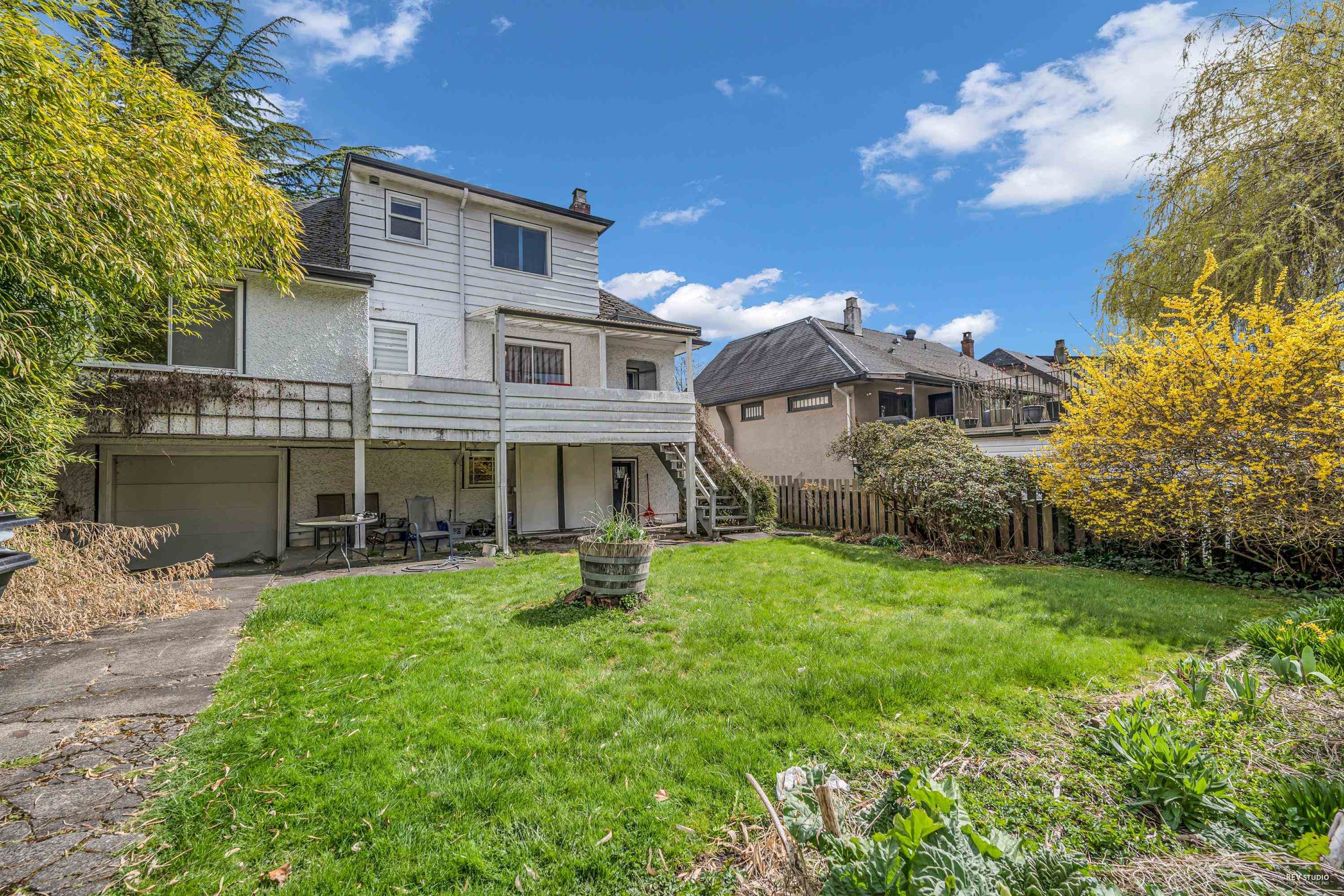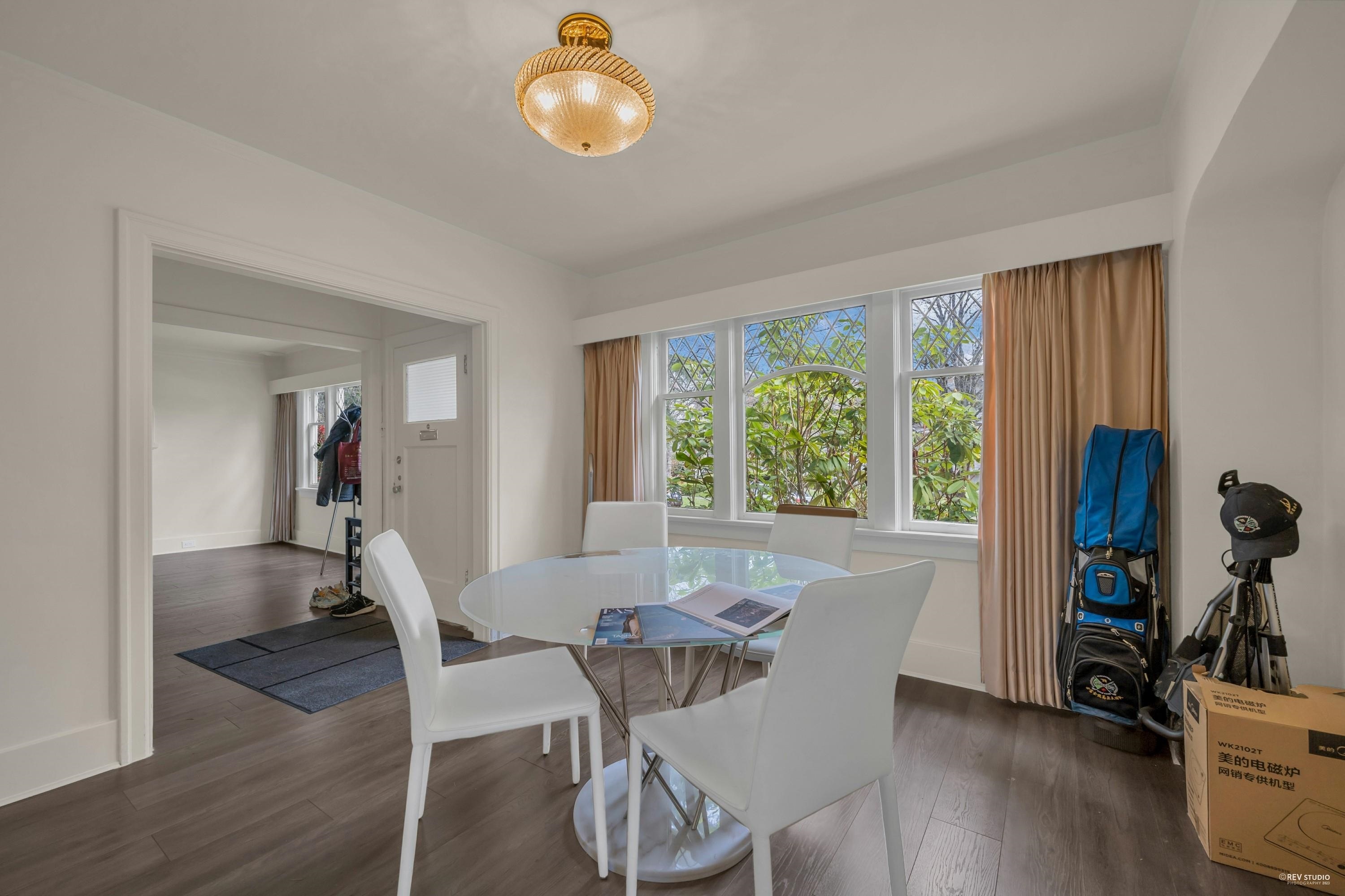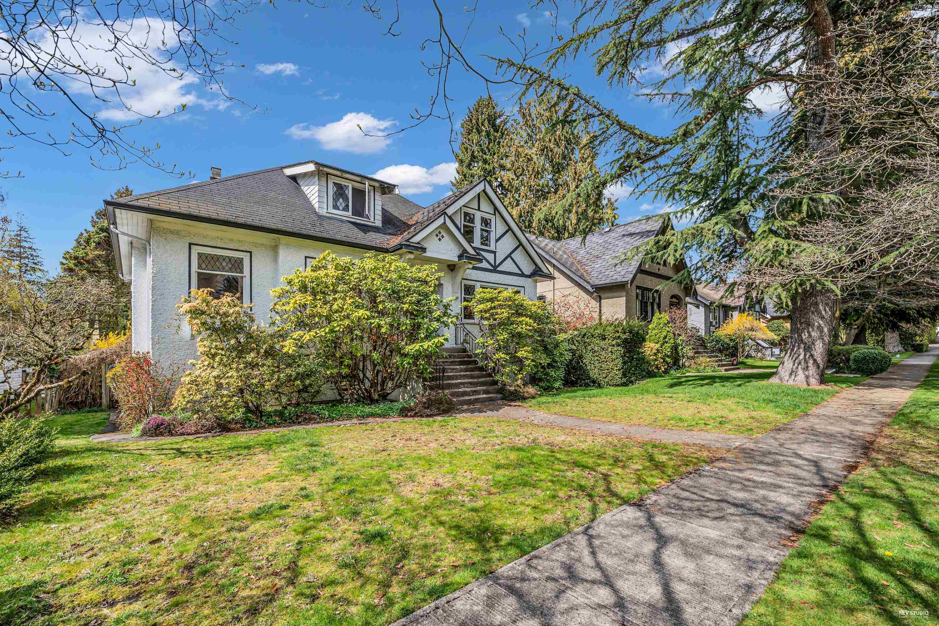 Charming 7-bedroom house on an almost 5000 sq ft lot (50 x 99.9) on a pretty, tree-lined street. Traditional floor plan with 2 bedrooms above, 2 bedrooms on the main floor, and 3 bedrooms below. Features a formal dining and living room with a wood-burning fireplace, beautiful hardwood floors, and a cozy built-in eating area nook off the kitchen. Large west-facing back deck. Spacious lower level with a generous kitchen/storage room and a separate entrance for convenient rental. Close to great schools (Magee High School and Maple Grove Elementary), quiet location by Maple Grove Park. Easy access to Crofton, St. Georges, UBC, transit, and West 41st and West Boulevard shops.