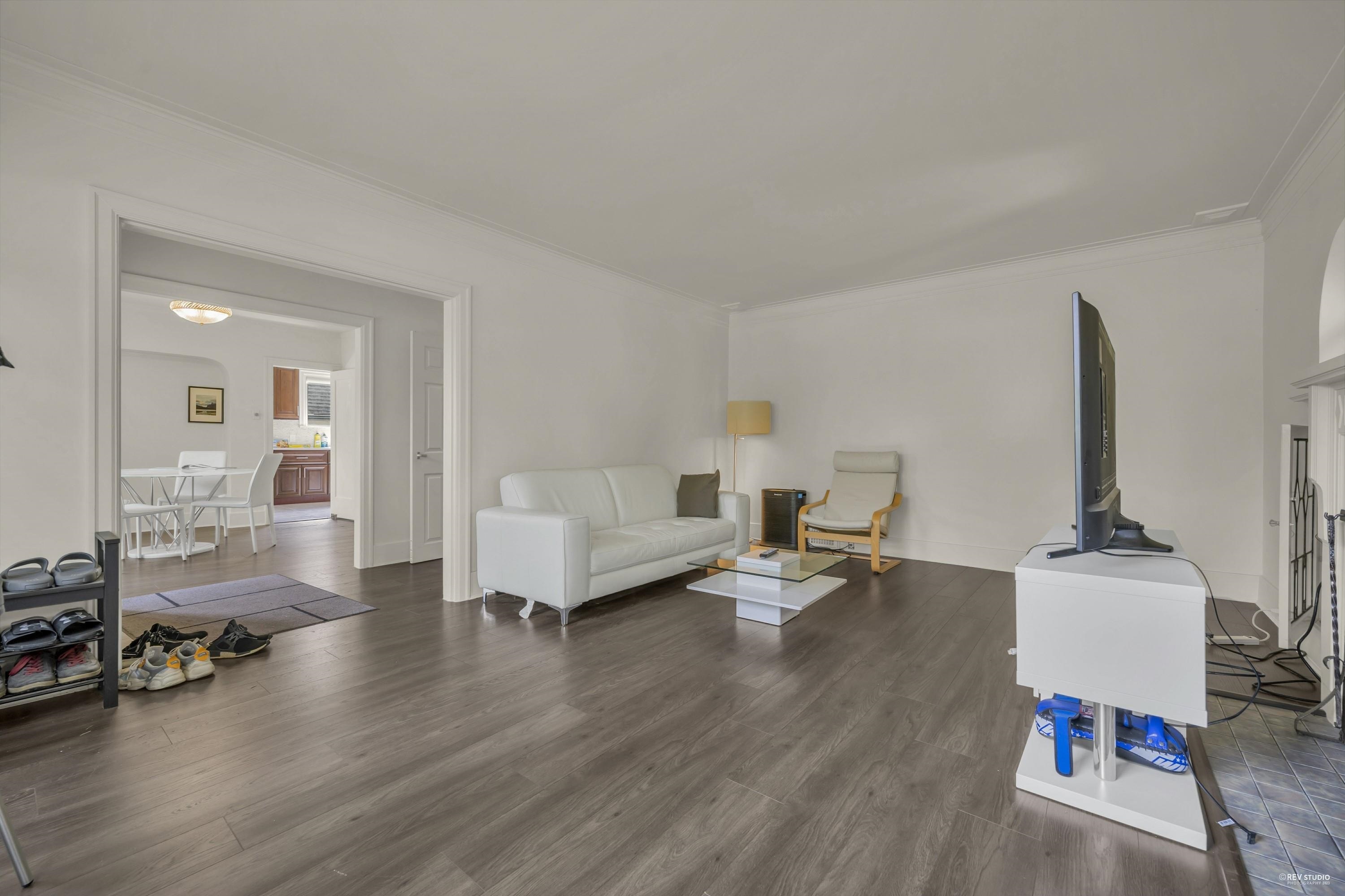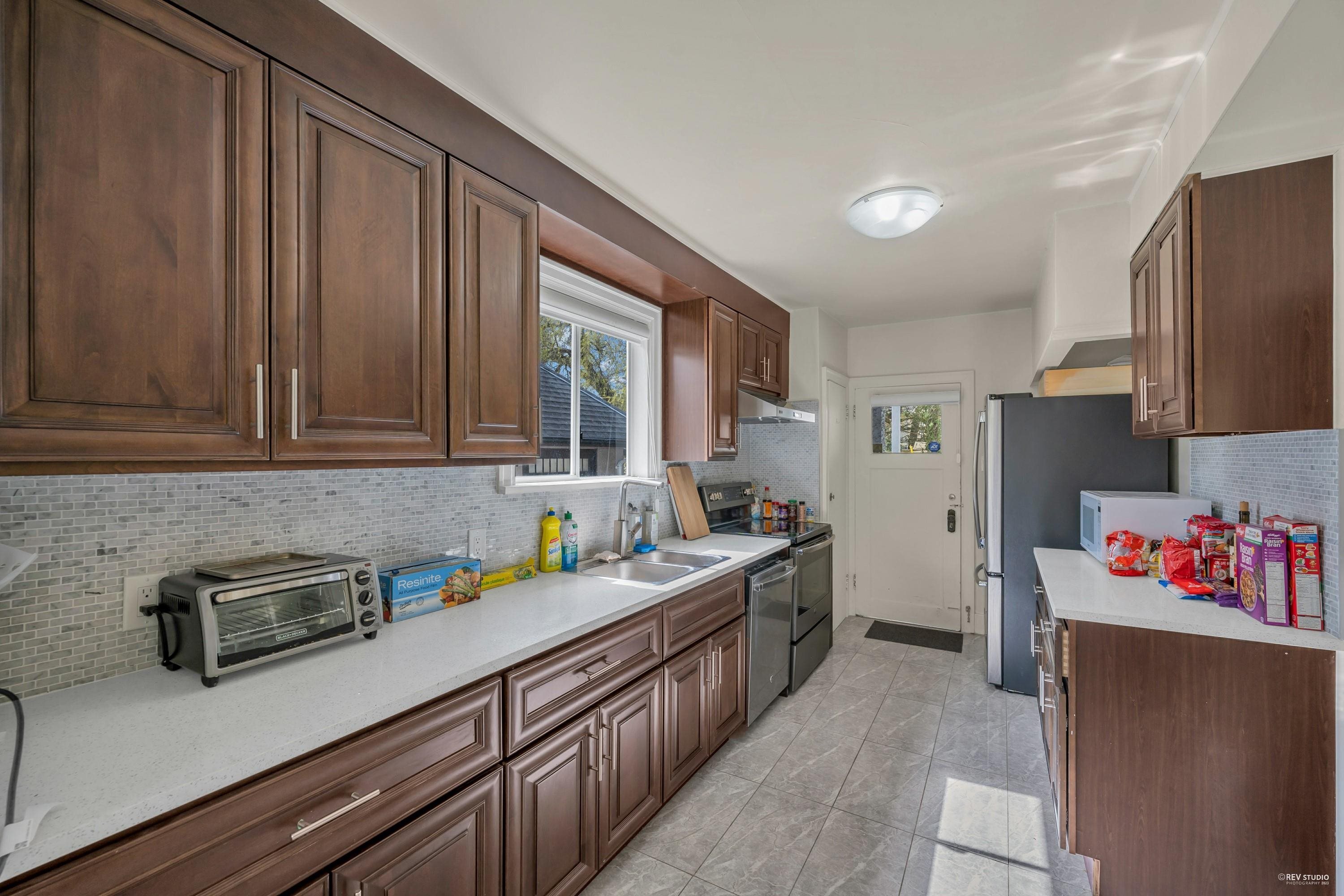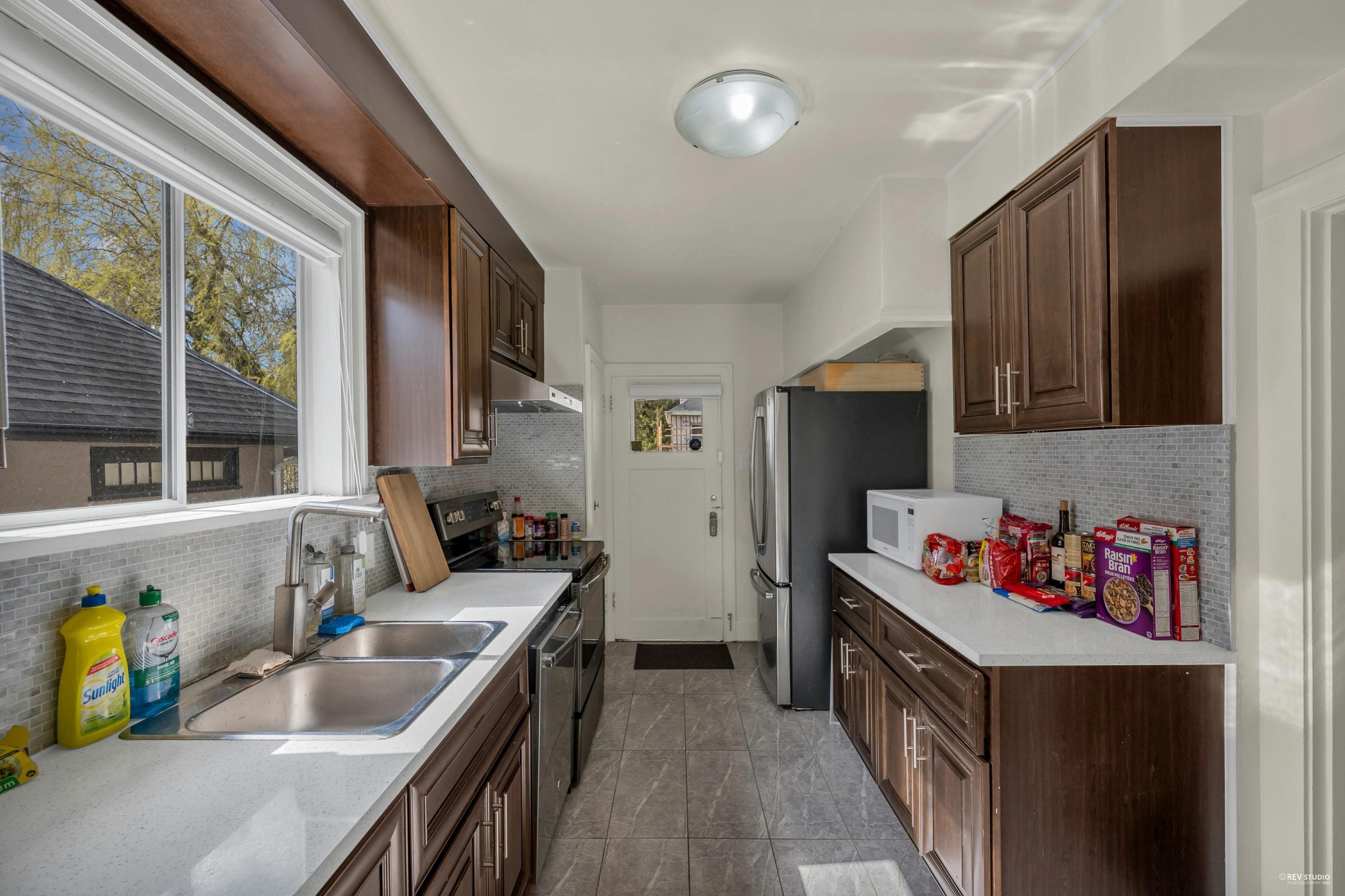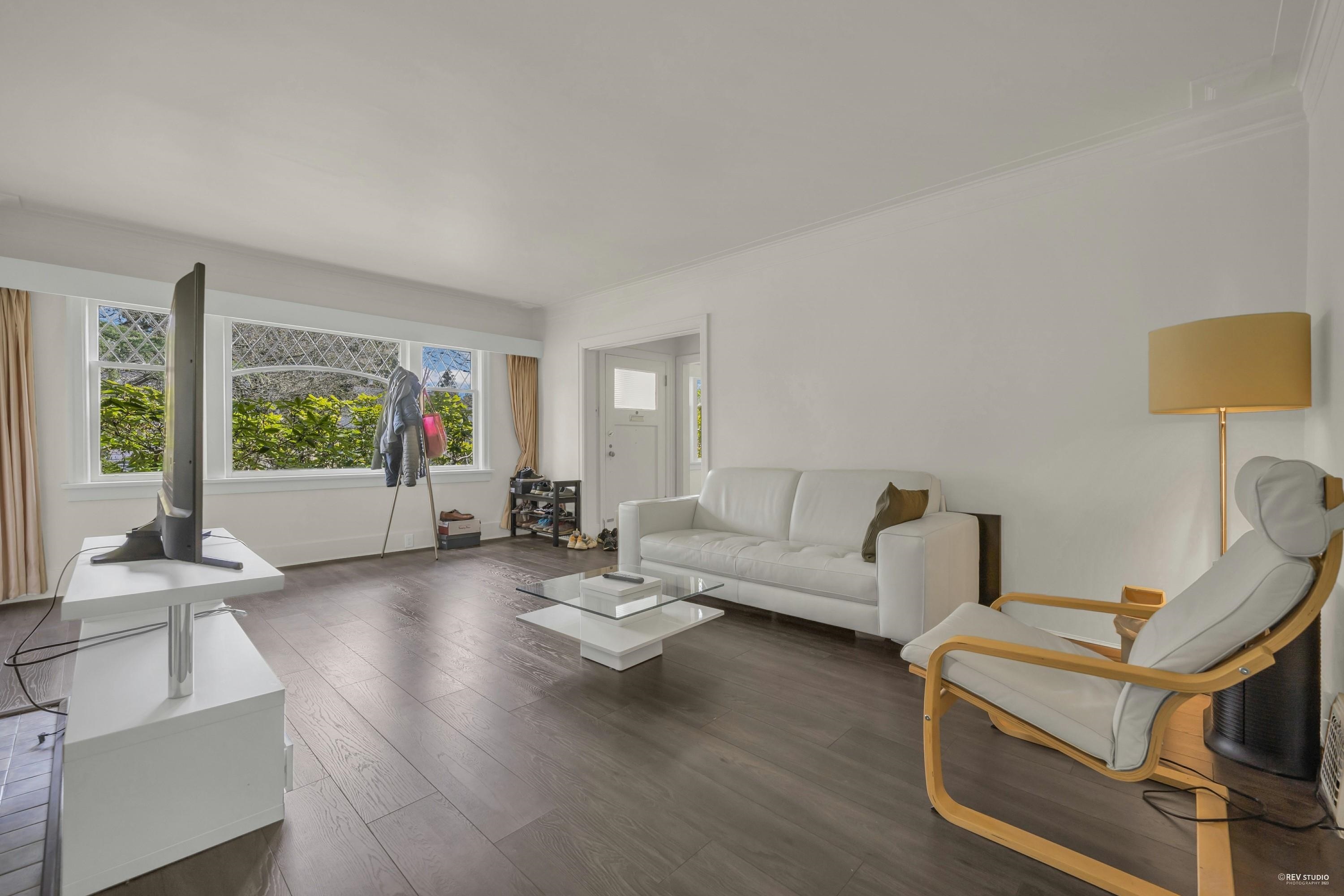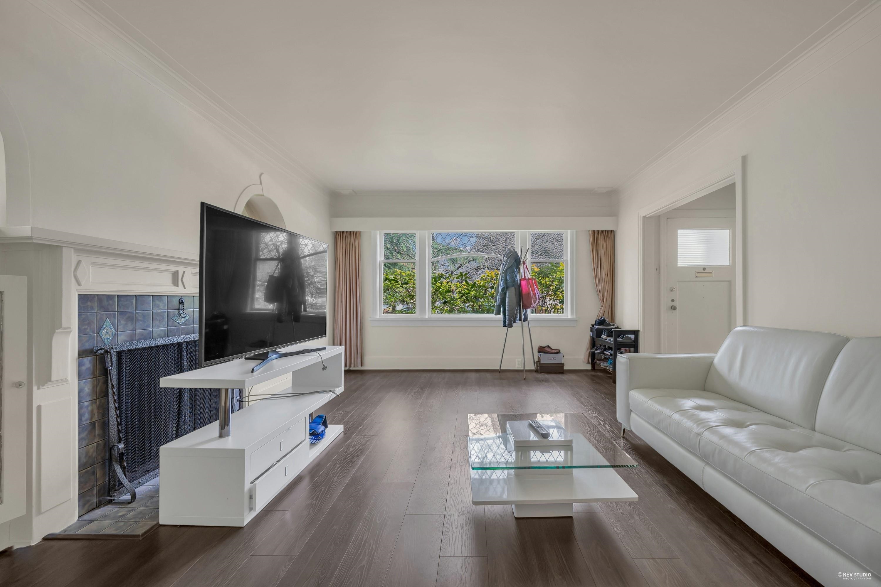 Charming 7-bedroom house on an almost 5000 sq ft lot (50 x 99.9) on a pretty, tree-lined street. Traditional floor plan with 2 bedrooms above, 2 bedrooms on the main floor, and 3 bedrooms below. Features a formal dining and living room with a wood-burning fireplace, beautiful hardwood floors, and a cozy built-in eating area nook off the kitchen. Large west-facing back deck. Spacious lower level with a generous kitchen/storage room and a separate entrance for convenient rental. Close to great schools (Magee High School and Maple Grove Elementary), quiet location by Maple Grove Park. Easy access to Crofton, St. Georges, UBC, transit, and West 41st and West Boulevard shops.