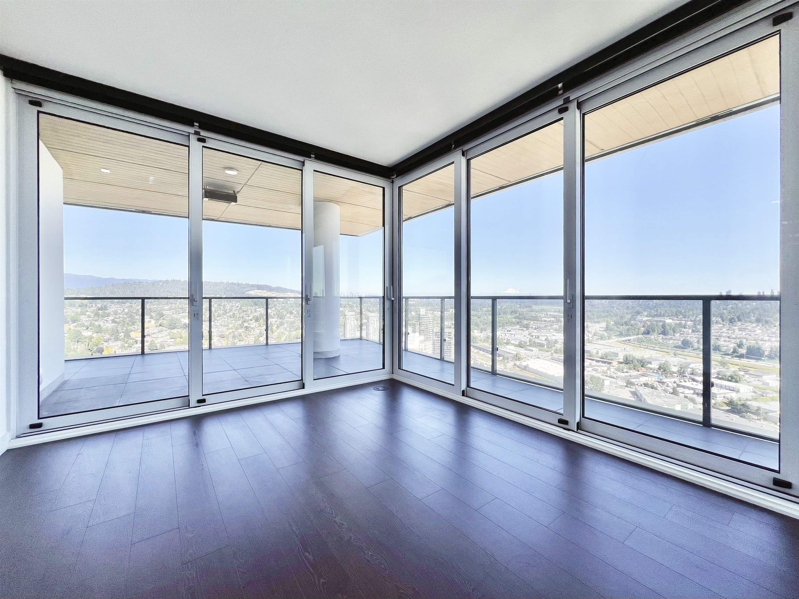 AMAZING views on the 37th floor! This stunning 1,265 sq. ft. 3 Bed 3 Bath North/east/south CORNER home boasts unobstructed panoramic views of the city & mountains. Enjoy seamless indoor/outdoor living accessing 600 sq. ft. of covered & heated wrap around balcony. Premium finishes with A/C, electric roller shades, Bosch appliances w/ gas cooking, laundry room, & closet organizers. World-class hotel style amenities with 24/7 concierge services. Steps from Brentwood Mall and skytrain station. 2 EV Parking & 1 Locker included. 2-5-10 warranty. Must see!