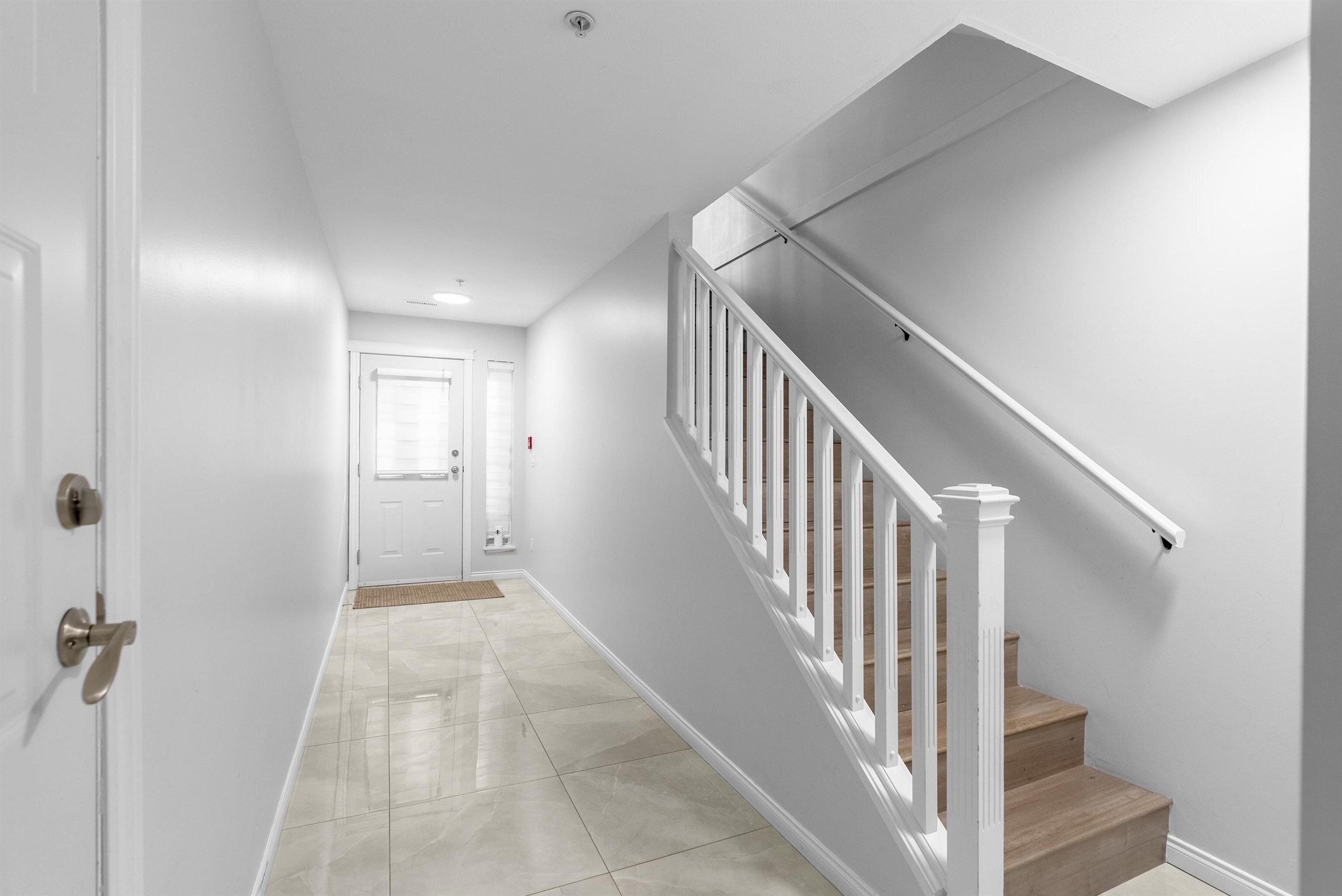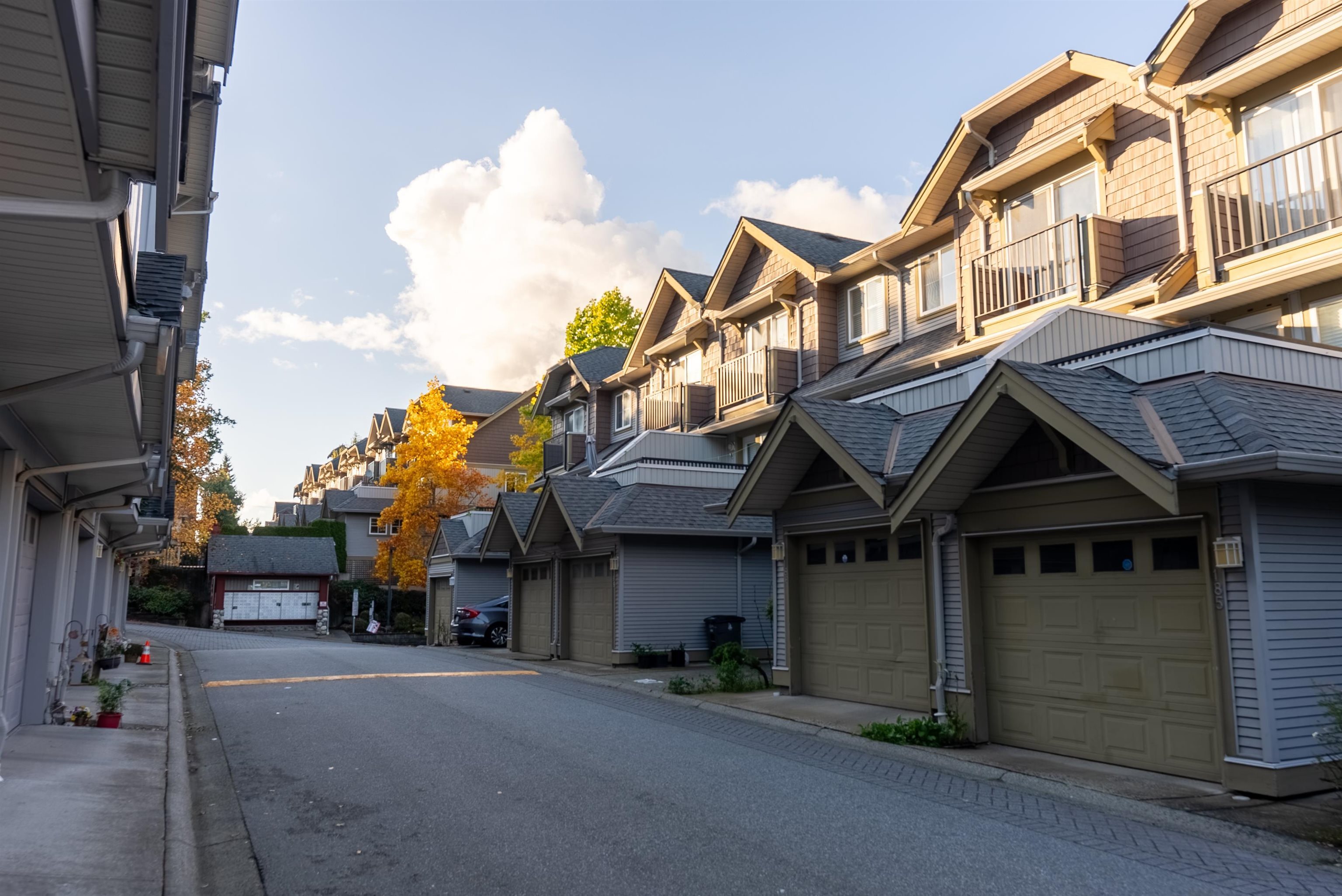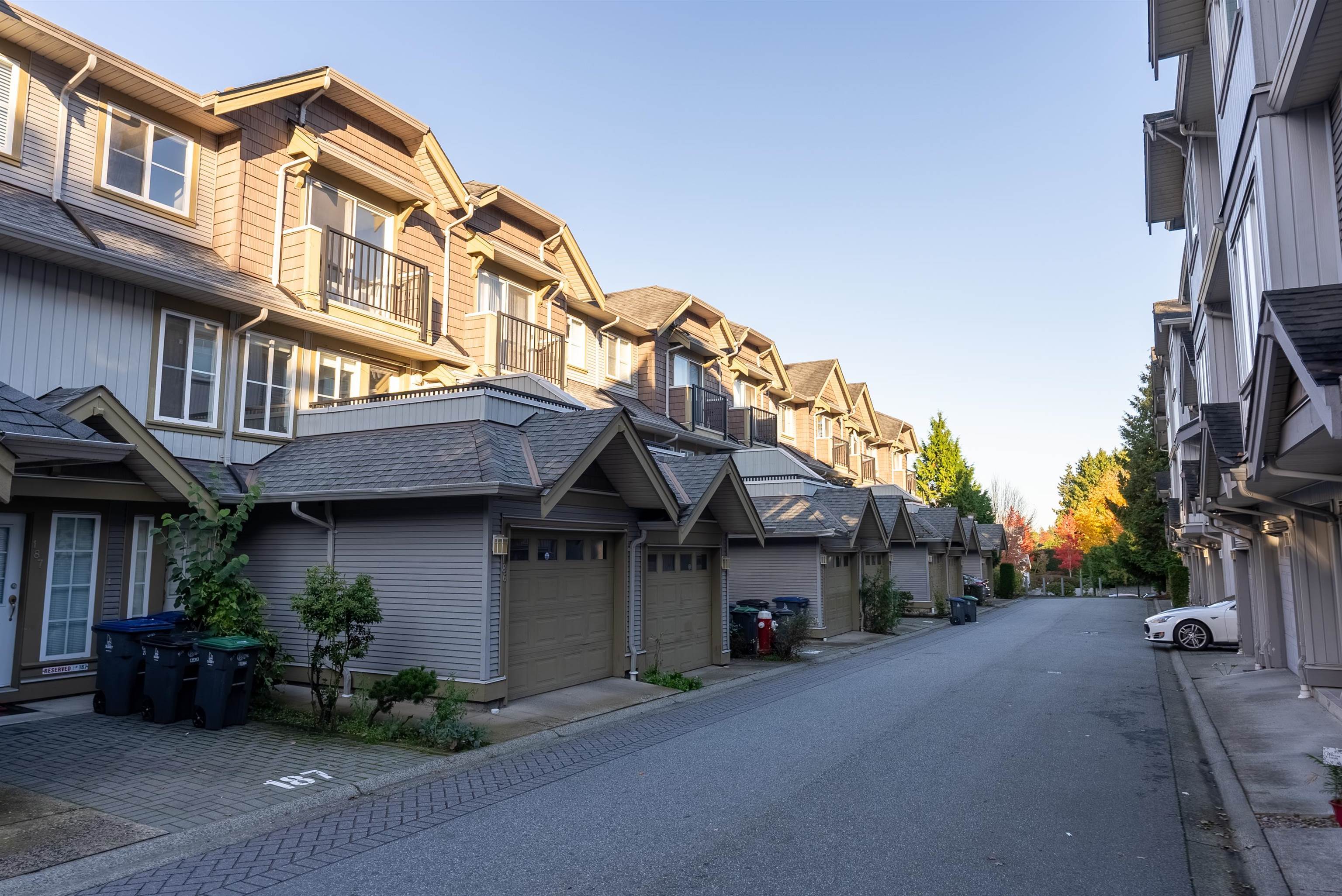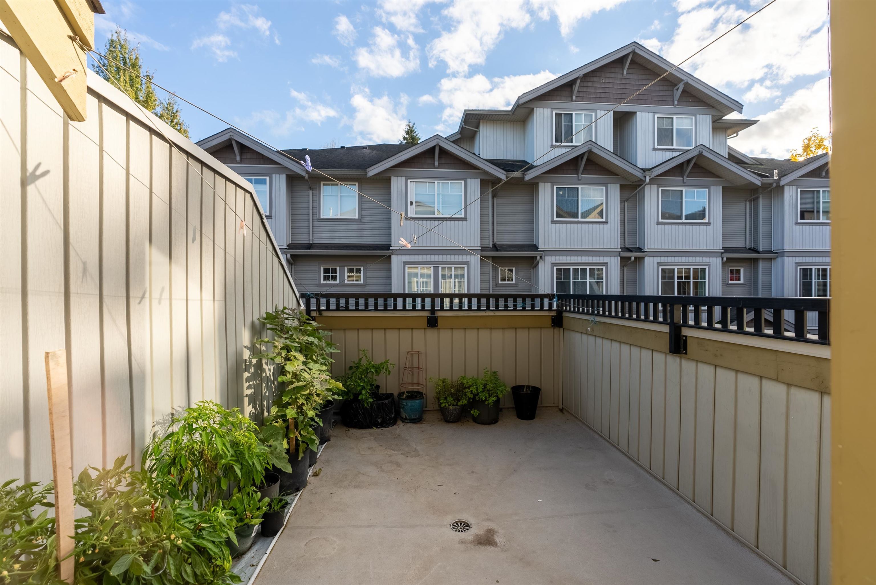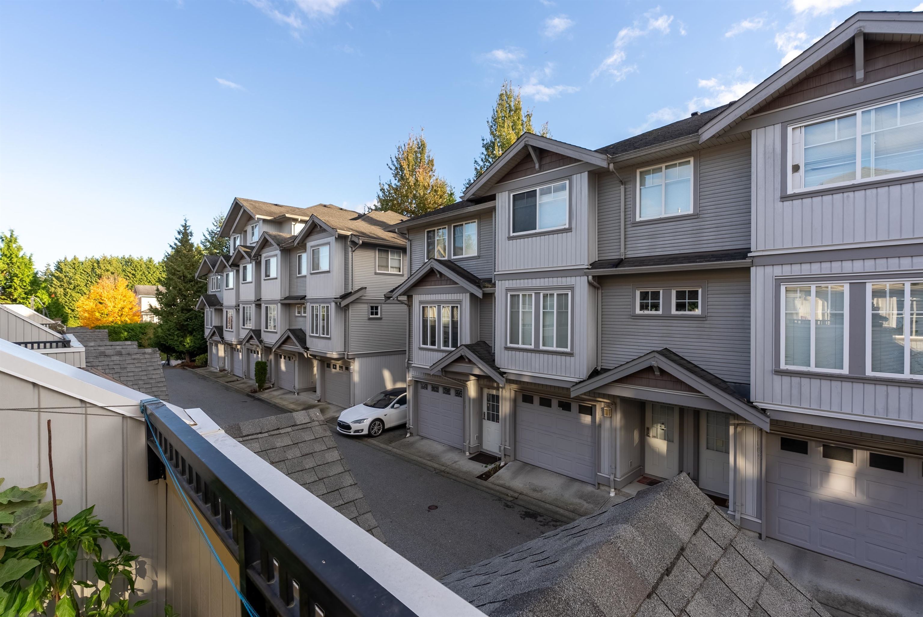 Location! Location! Townhouse shows and feels like a detached house with north shore mountain view. This townhome was renovated back in 2022 with new flooring, fresh paint, new stove, new built in vacuum and new lighting fixtures. Laundry is located on above main floor with 3 generous size bedrooms and 2 washrooms. This townhome has 4 balconies to enjoy outdoor activities with family and friends. Main floor has a powder room, huge living room with separate kitchen and dining area. Below main floor has 2 cars tandem garage and a huge room to be used as bedroom or rec room or man cave. Public transit is only 3 mins away on foot and Cougar Creek Elementary, Khalsa Schools and Sikh Temple are close by.