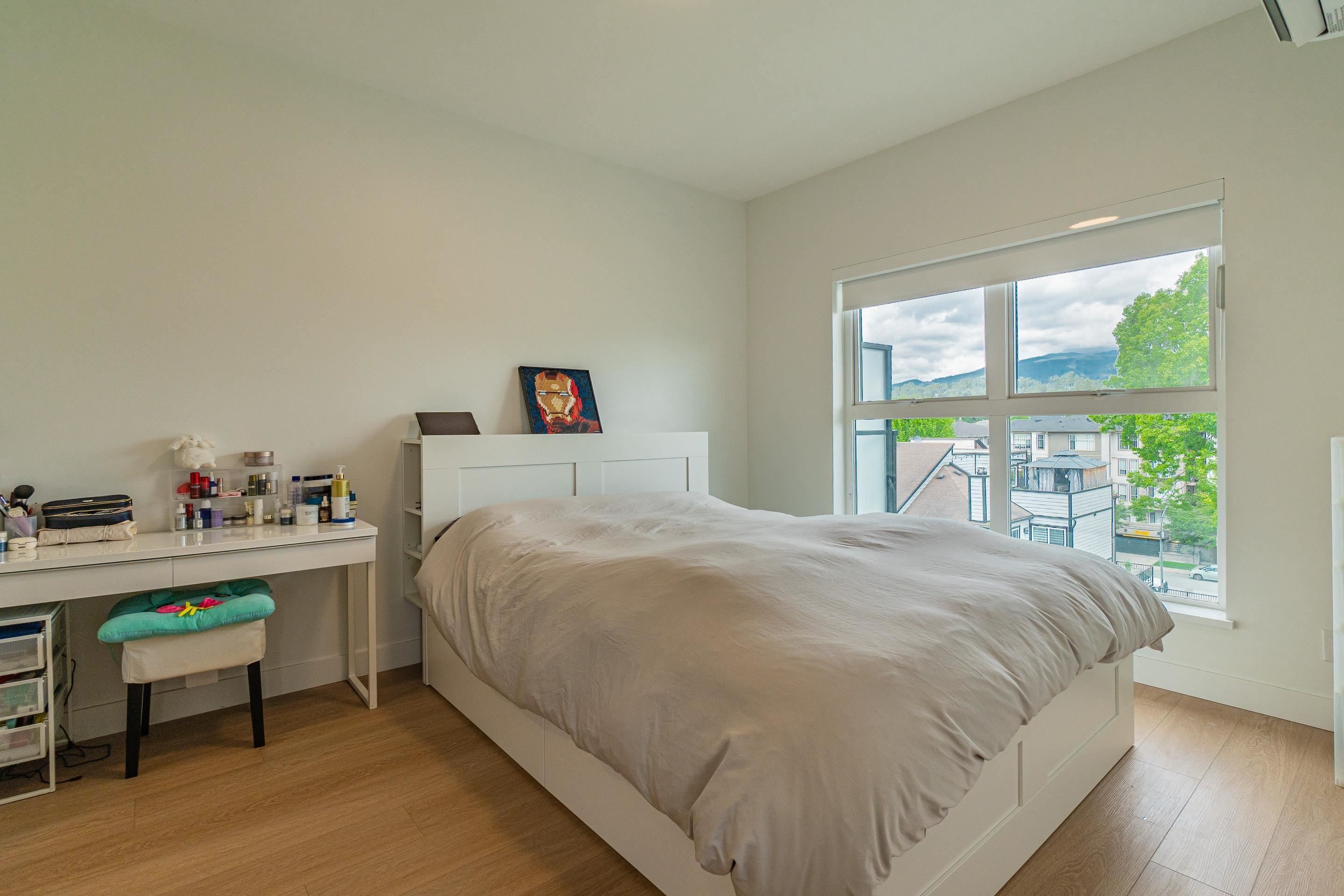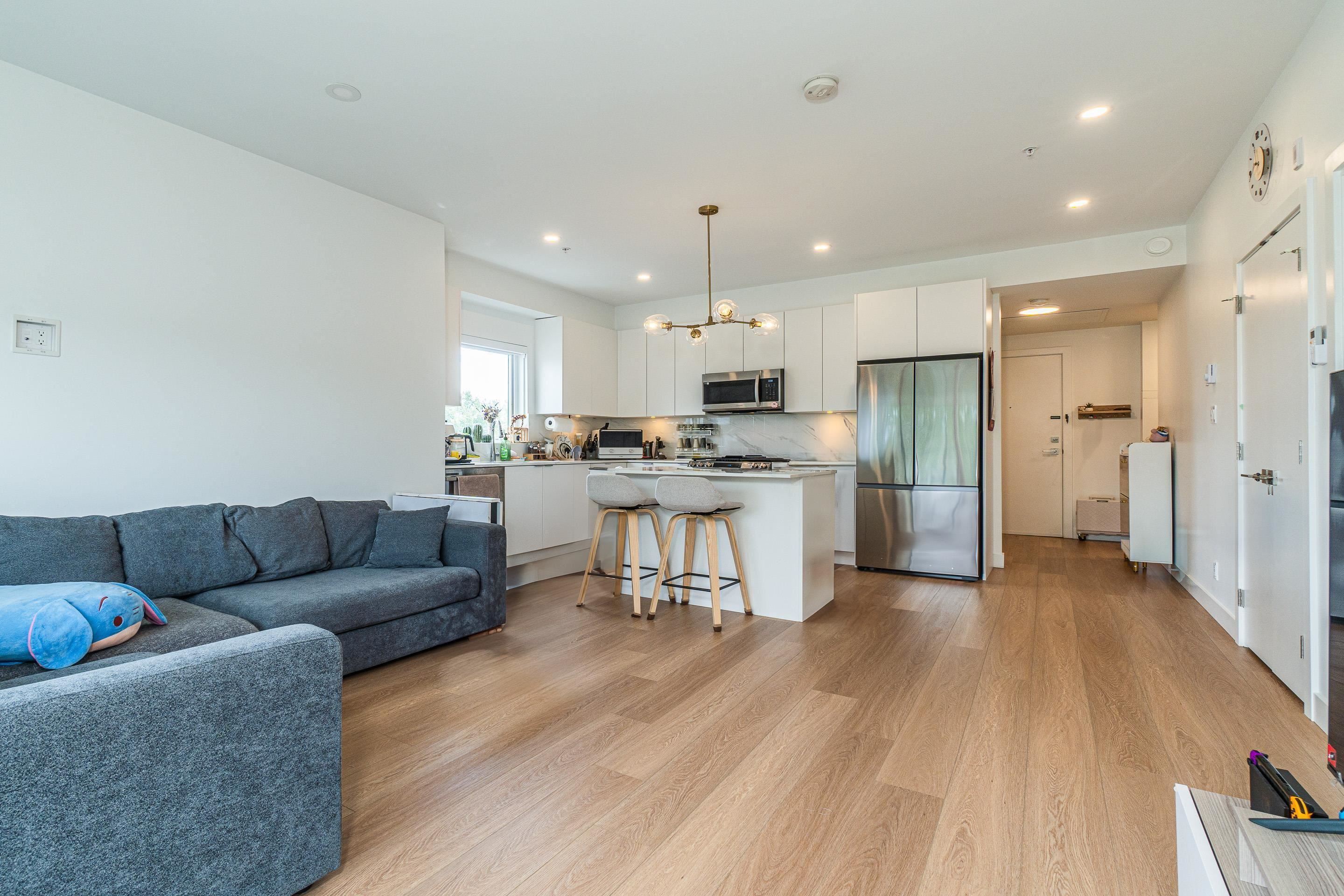Beautiful Estella is a 6 storey building in Port Coquitlam, one of the first buildings in PoCo to offer AC! This spacious 807 sqft 2 bedroom NE facing home features a spacious living space layout, with a large master bedroom and developer added on closet unit in second bedroom. With 2 parking spots, this is a great home for a young family. Pet-friendly building in a quiet but convenient neighborhood. This wonderful home offers premium stainless-steel appliances with a gas range, recessed pot lighting, durable vinyl wide plank flooring, walk in closet, ensuites and smart home features! Look no further!