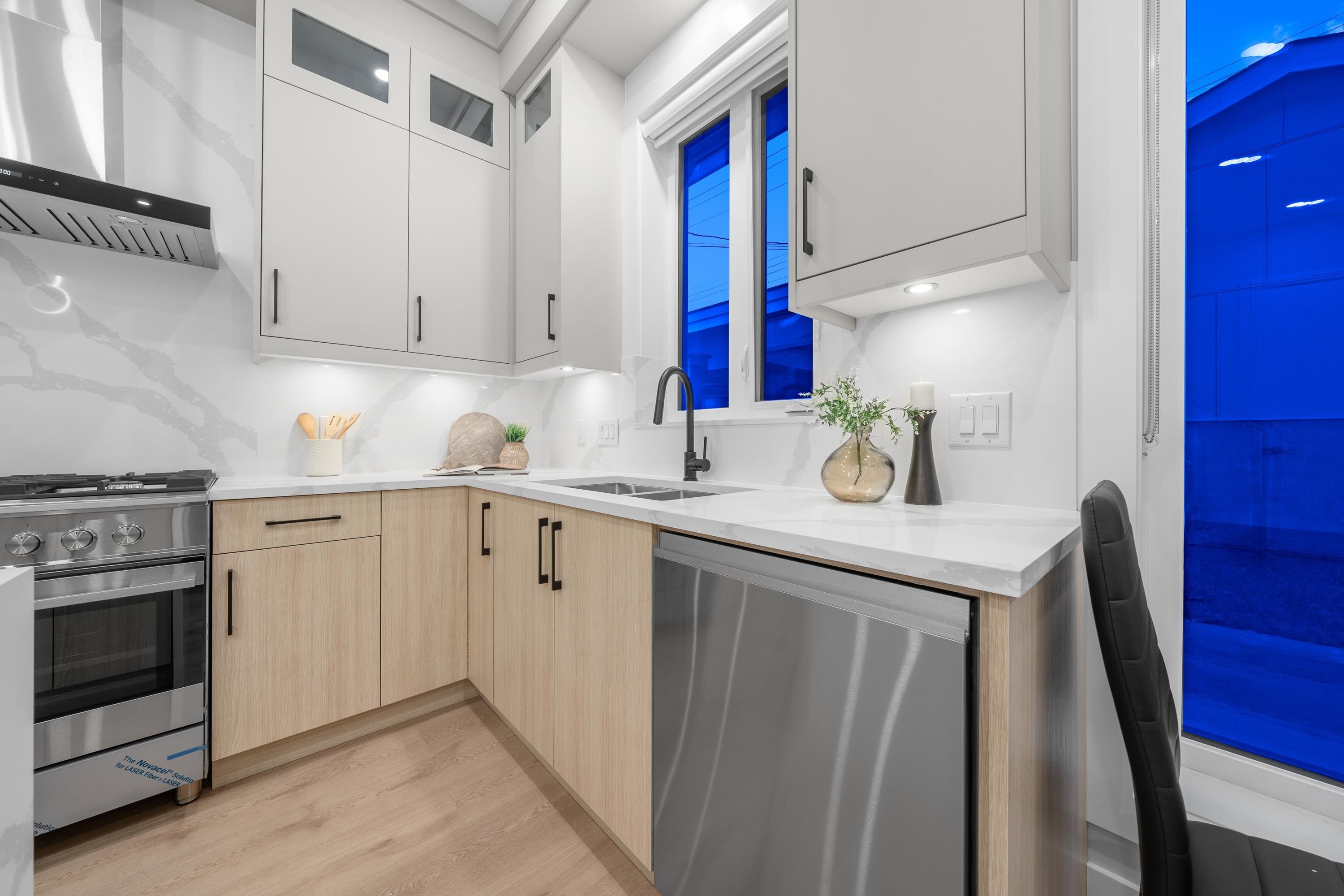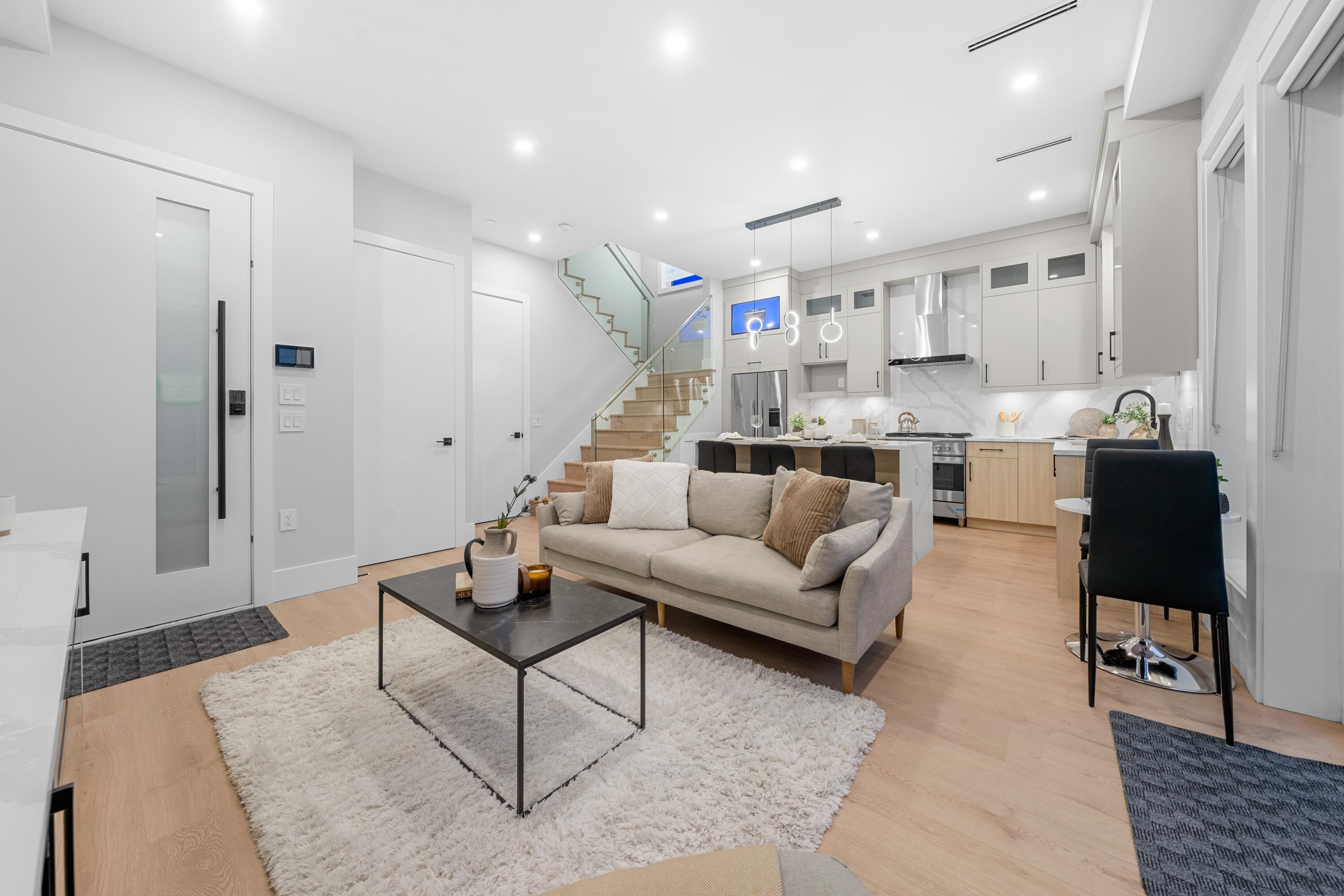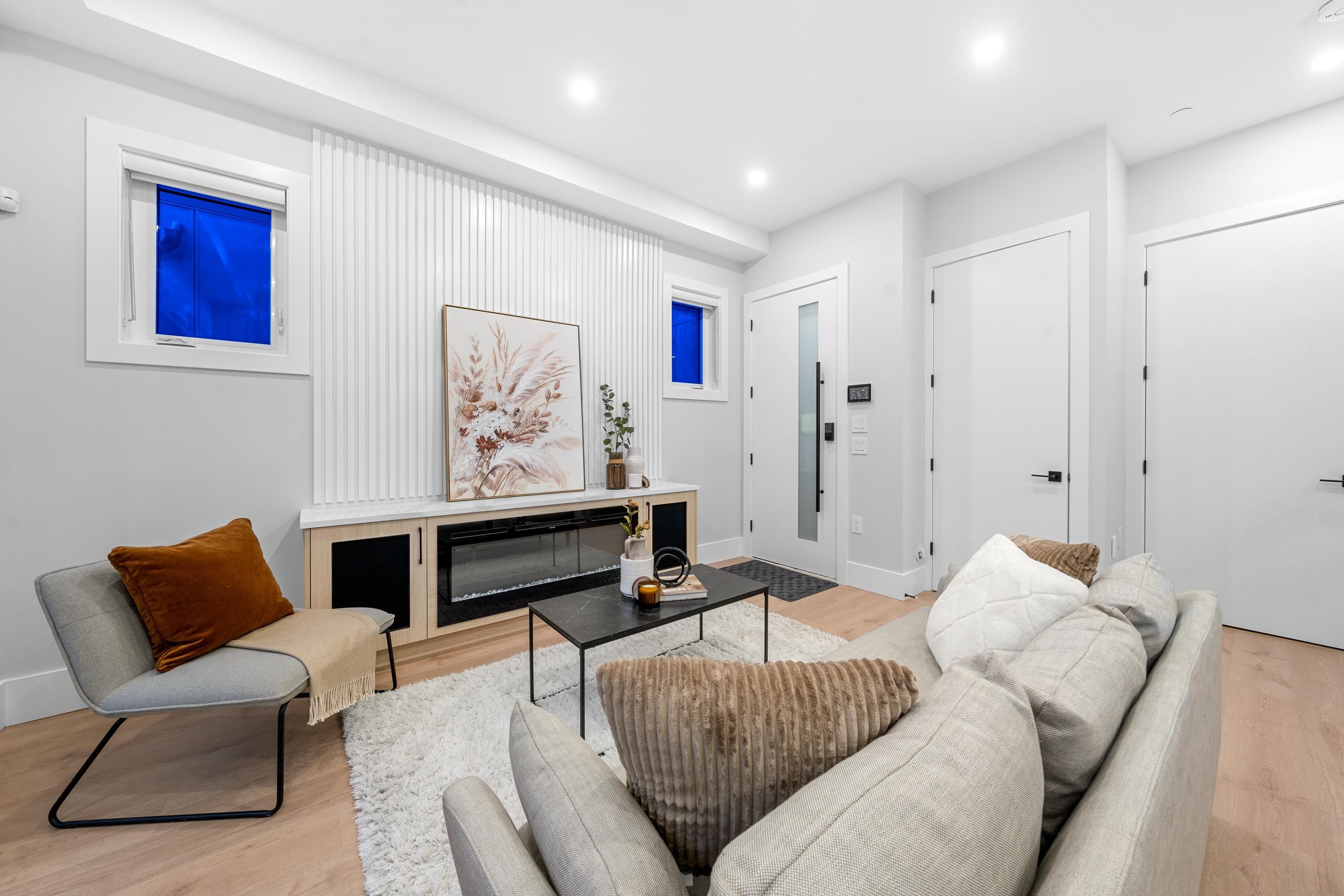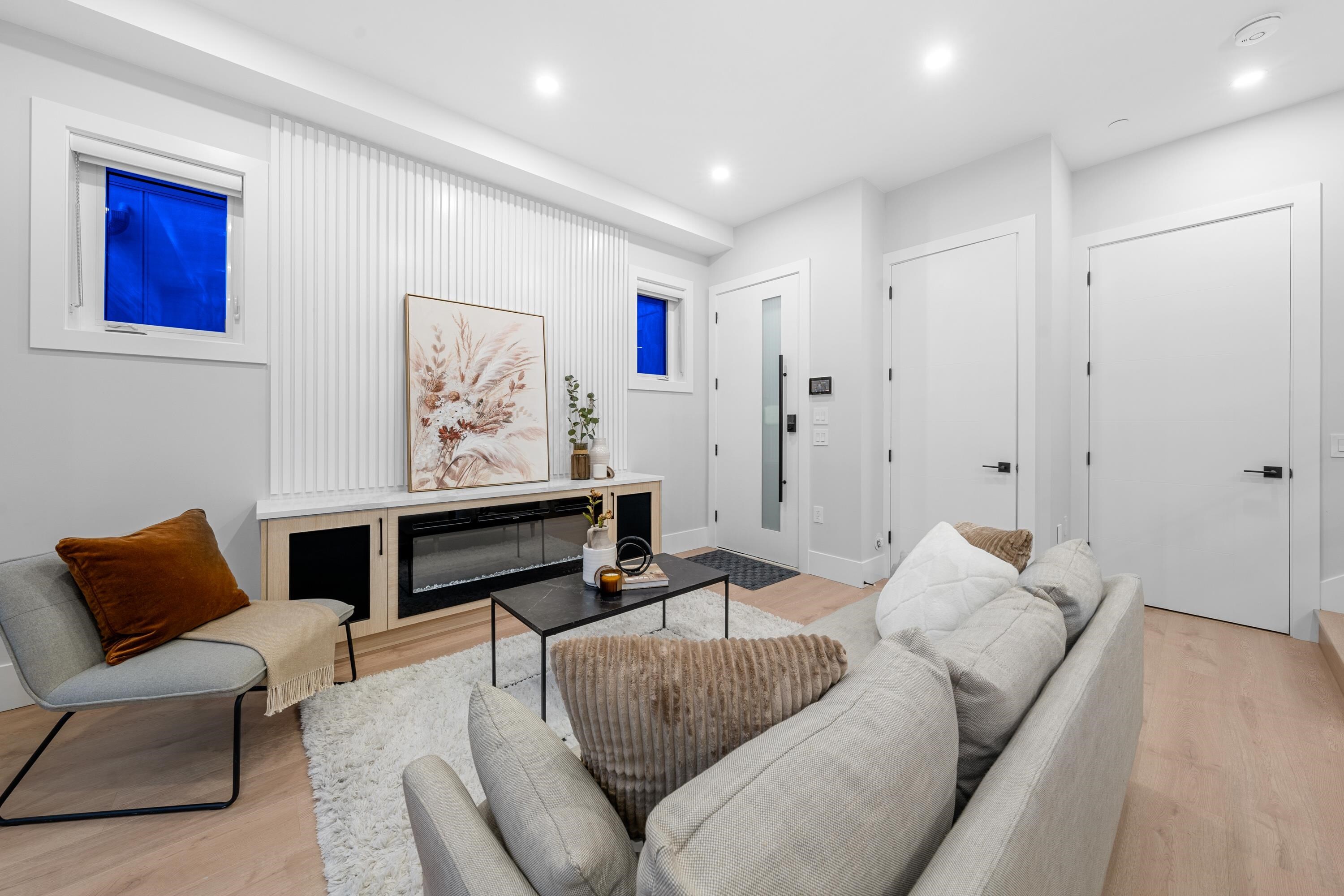 This brand new 1/2 duplex tranquil back unit boasts a modern design in the desirable Renfrew Height. The open-concept floor plan showcases a seamless flow between the living, dining, and kitchen areas, with French doors opens to a patio area, extending your living space into the serene backyard. The kitchen is a chef's dream, outfitted with high-end appliances, sleek countertops and custom cabinetry. 3 generously sized bedrooms upstairs with ample storage and elegant ensuite bathrooms. Modern comforts such as HRV, air conditioning, together with its proximity to SkyTrain stations, parks, schools and other conveniences, this is your perfect home!