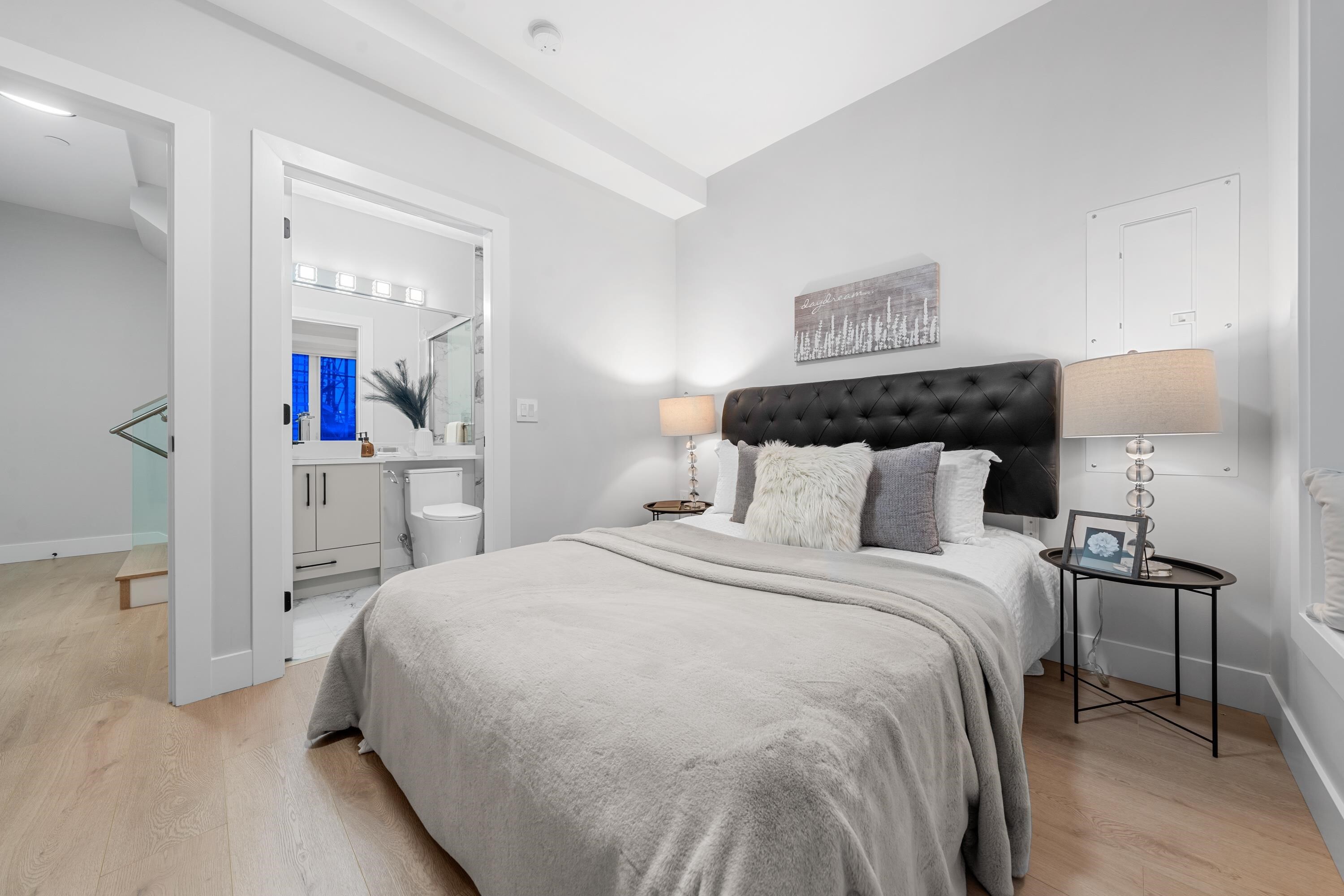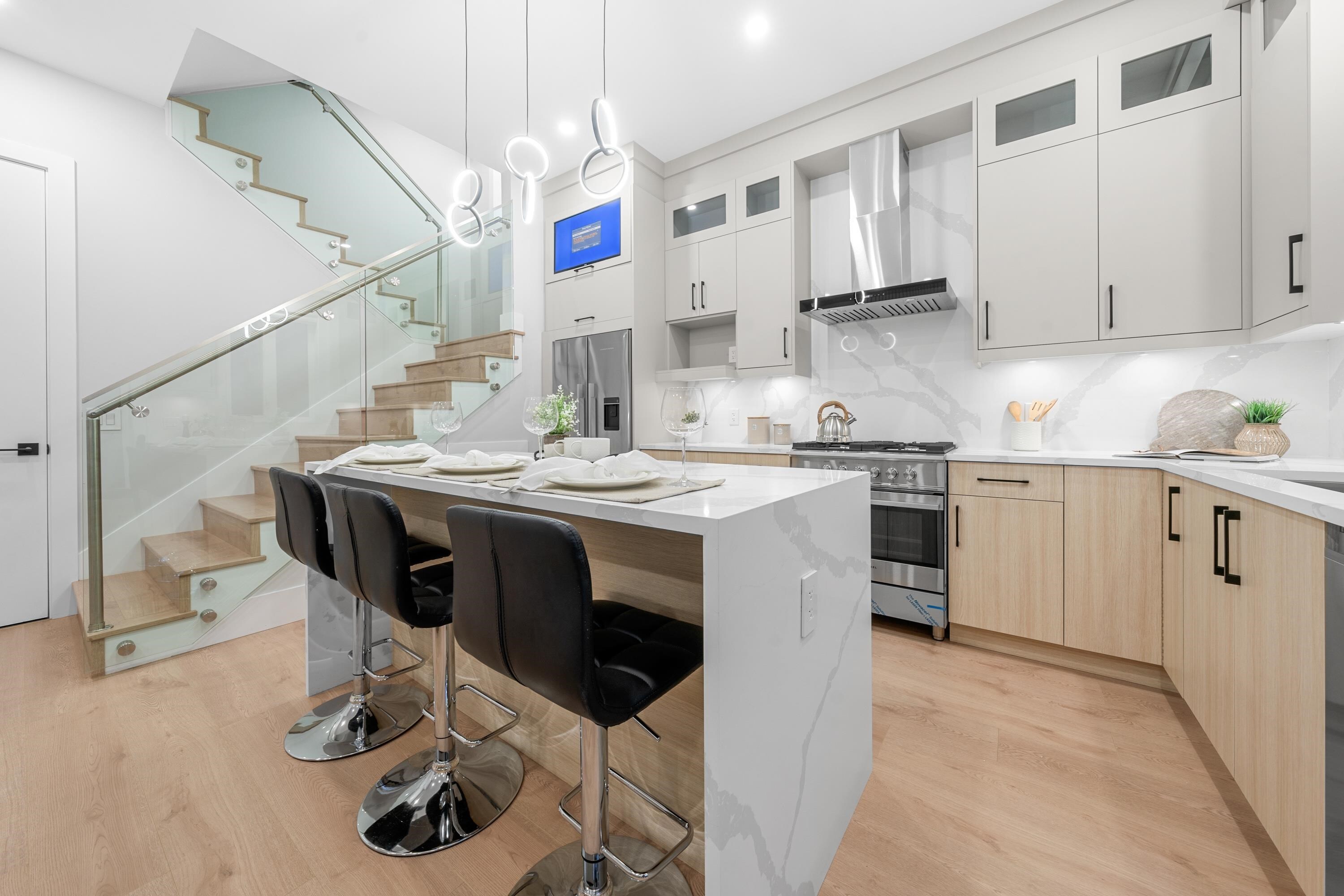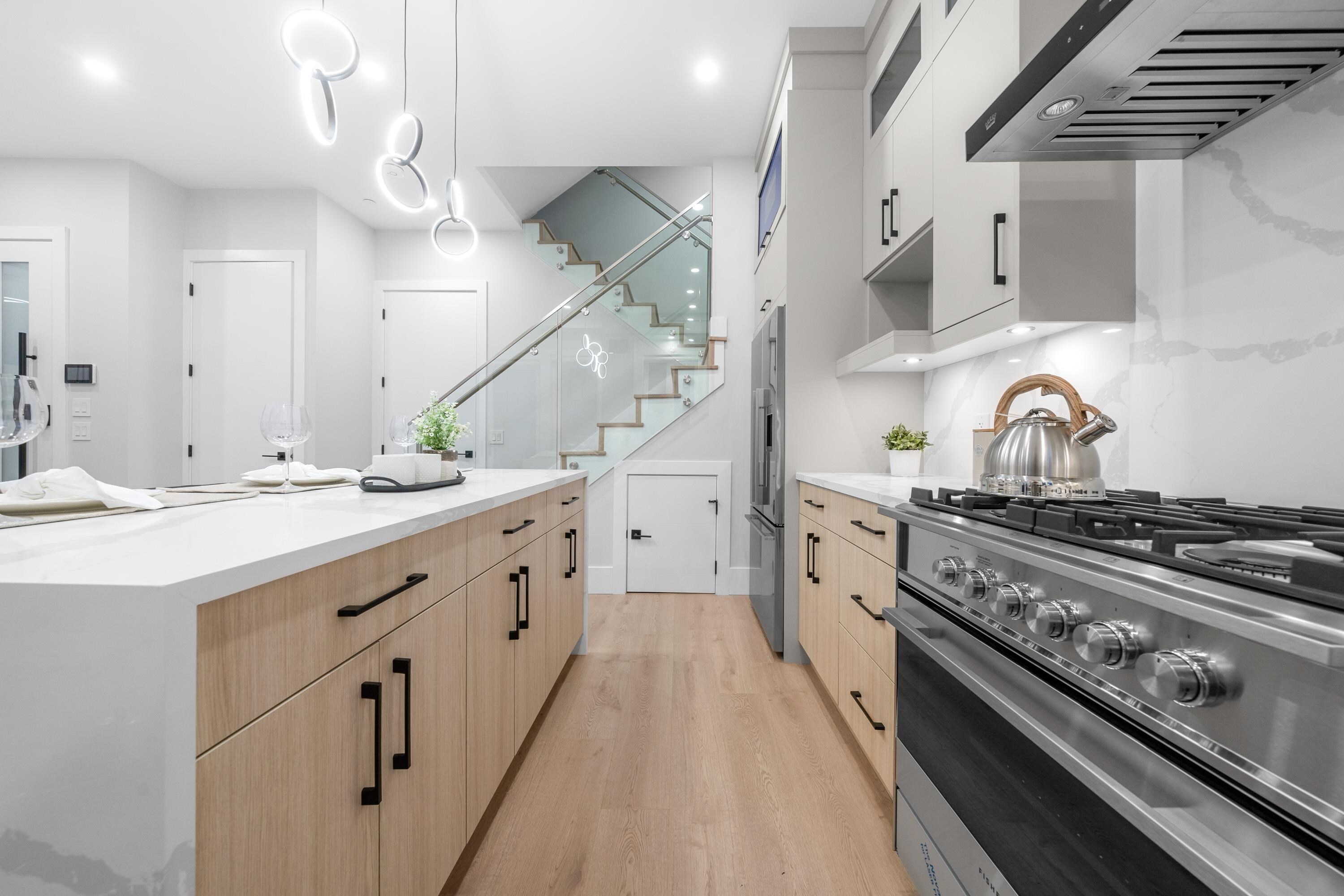 This brand new 1/2 duplex tranquil back unit boasts a modern design in the desirable Renfrew Height. The open-concept floor plan showcases a seamless flow between the living, dining, and kitchen areas, with French doors opens to a patio area, extending your living space into the serene backyard. The kitchen is a chef's dream, outfitted with high-end appliances, sleek countertops and custom cabinetry. 3 generously sized bedrooms upstairs with ample storage and elegant ensuite bathrooms. Modern comforts such as HRV, air conditioning, together with its proximity to SkyTrain stations, parks, schools and other conveniences, this is your perfect home!