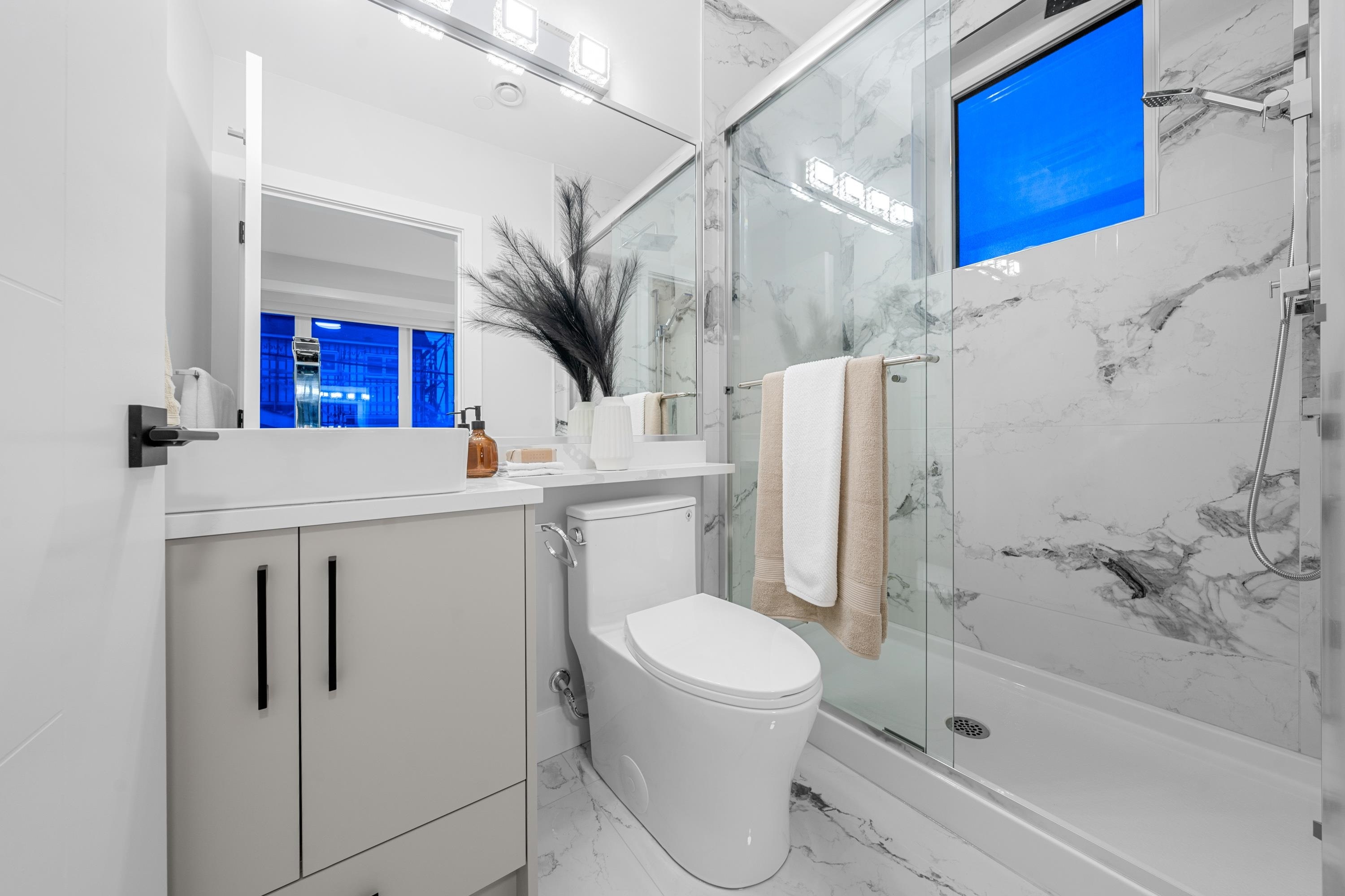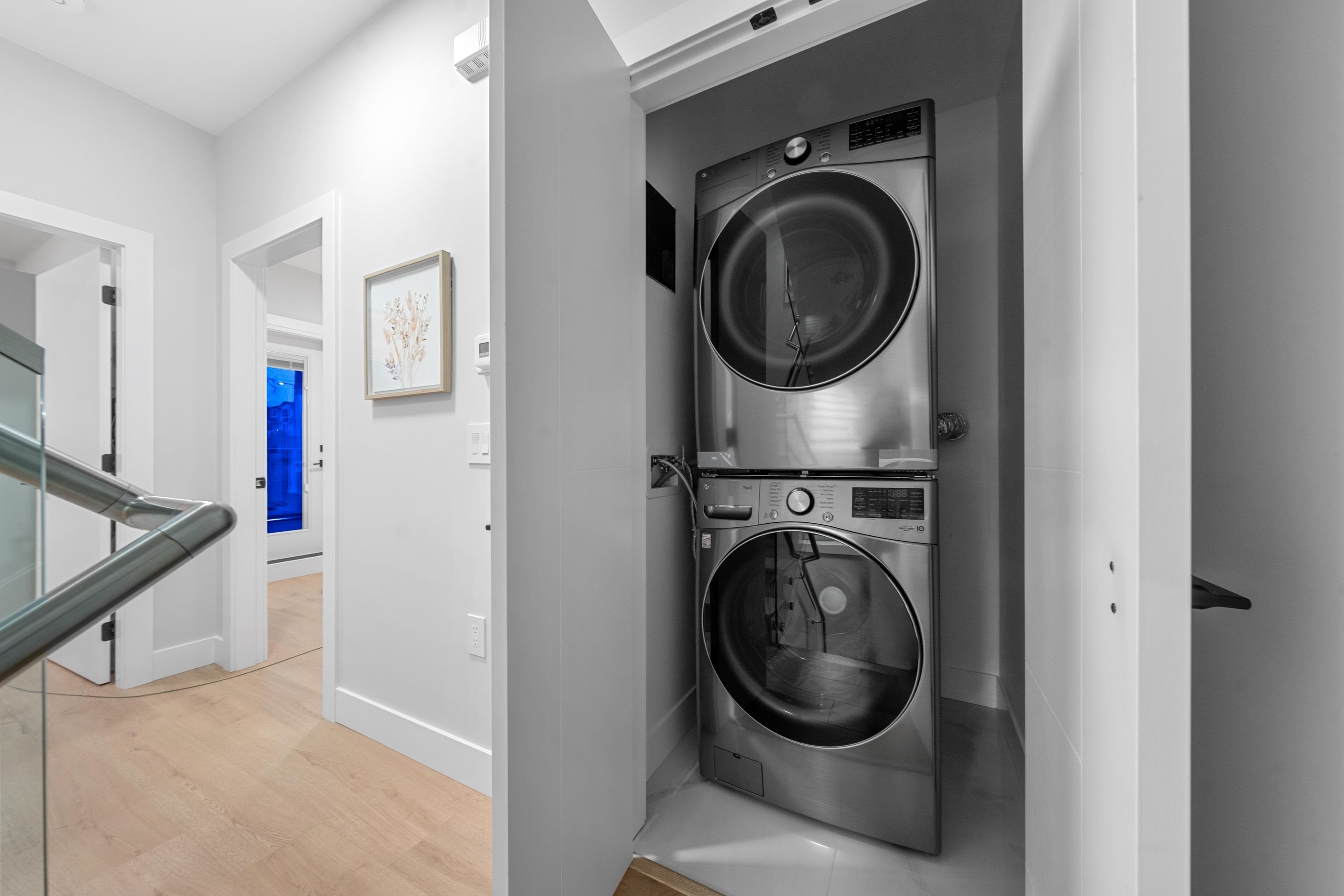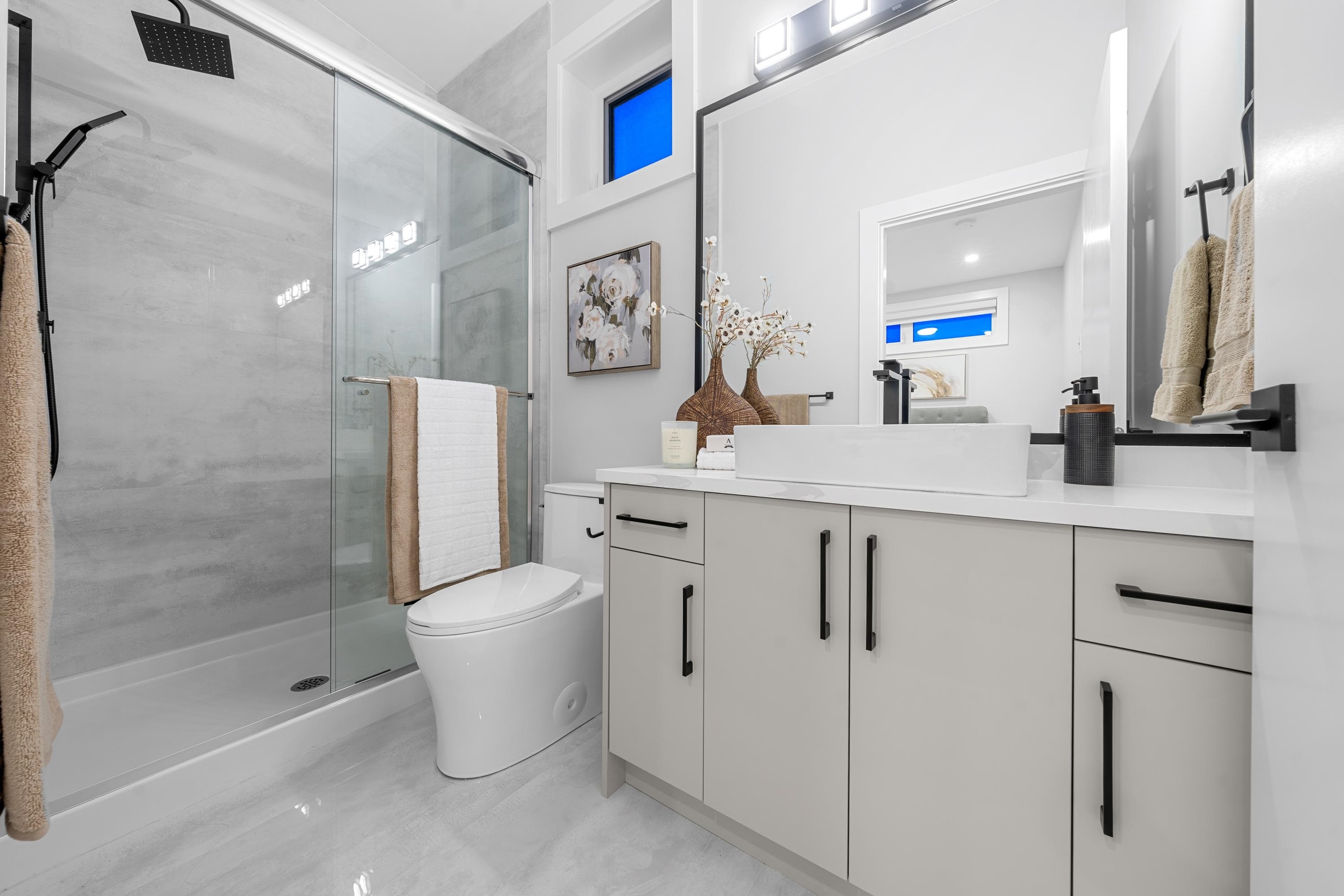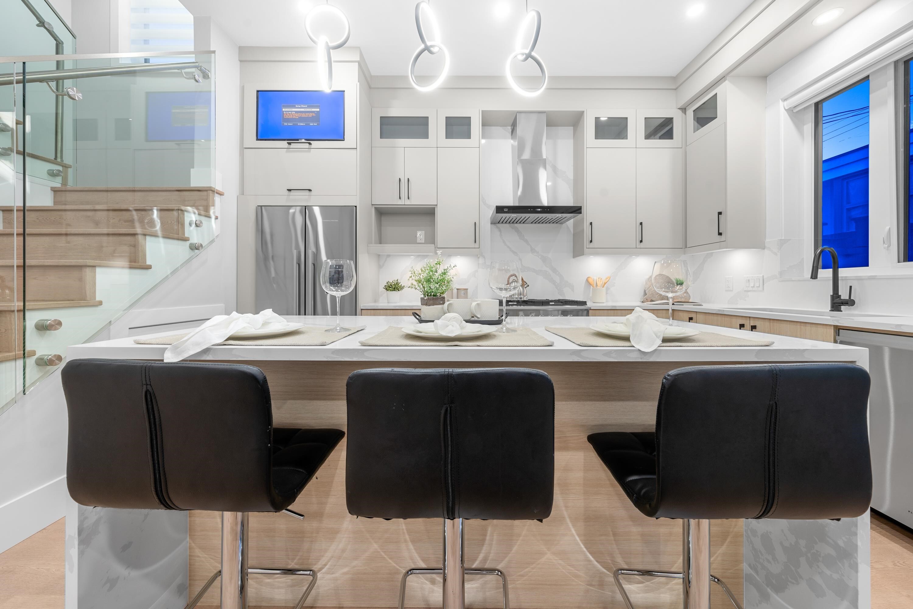This brand new 1/2 duplex tranquil back unit boasts a modern design in the desirable Renfrew Height. The open-concept floor plan showcases a seamless flow between the living, dining, and kitchen areas, with French doors opens to a patio area, extending your living space into the serene backyard. The kitchen is a chef's dream, outfitted with high-end appliances, sleek countertops and custom cabinetry. 3 generously sized bedrooms upstairs with ample storage and elegant ensuite bathrooms. Modern comforts such as HRV, air conditioning, together with its proximity to SkyTrain stations, parks, schools and other conveniences, this is your perfect home!