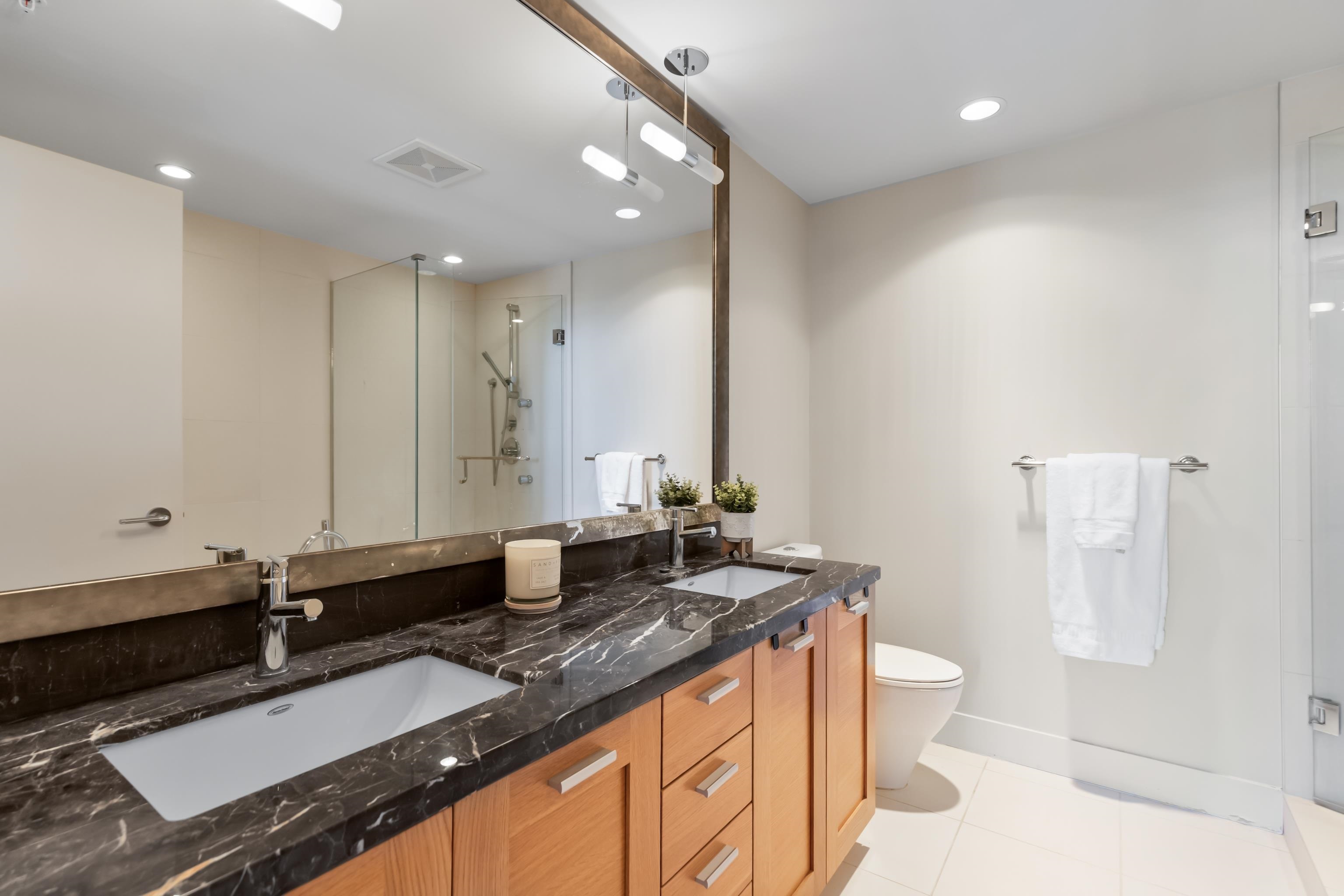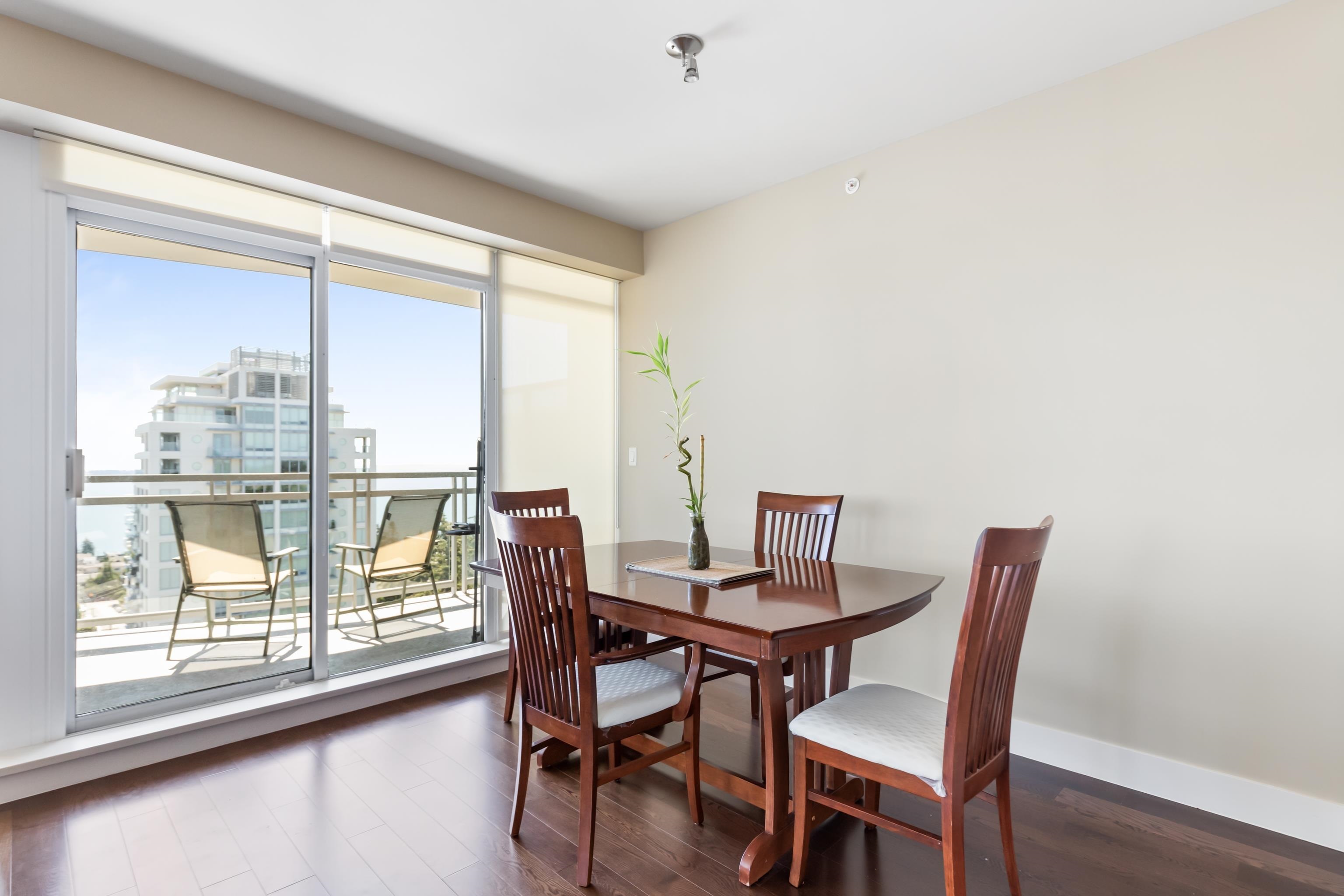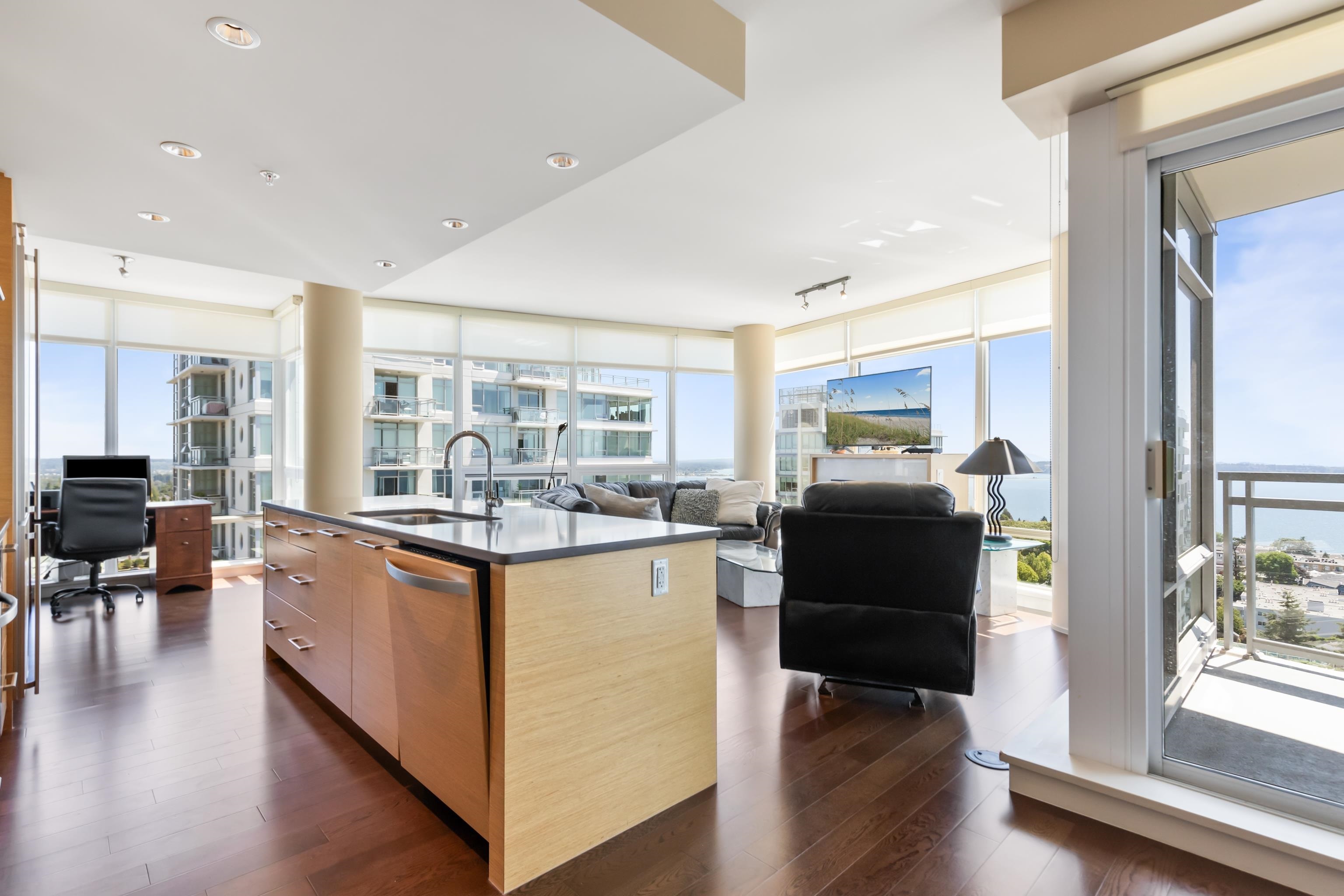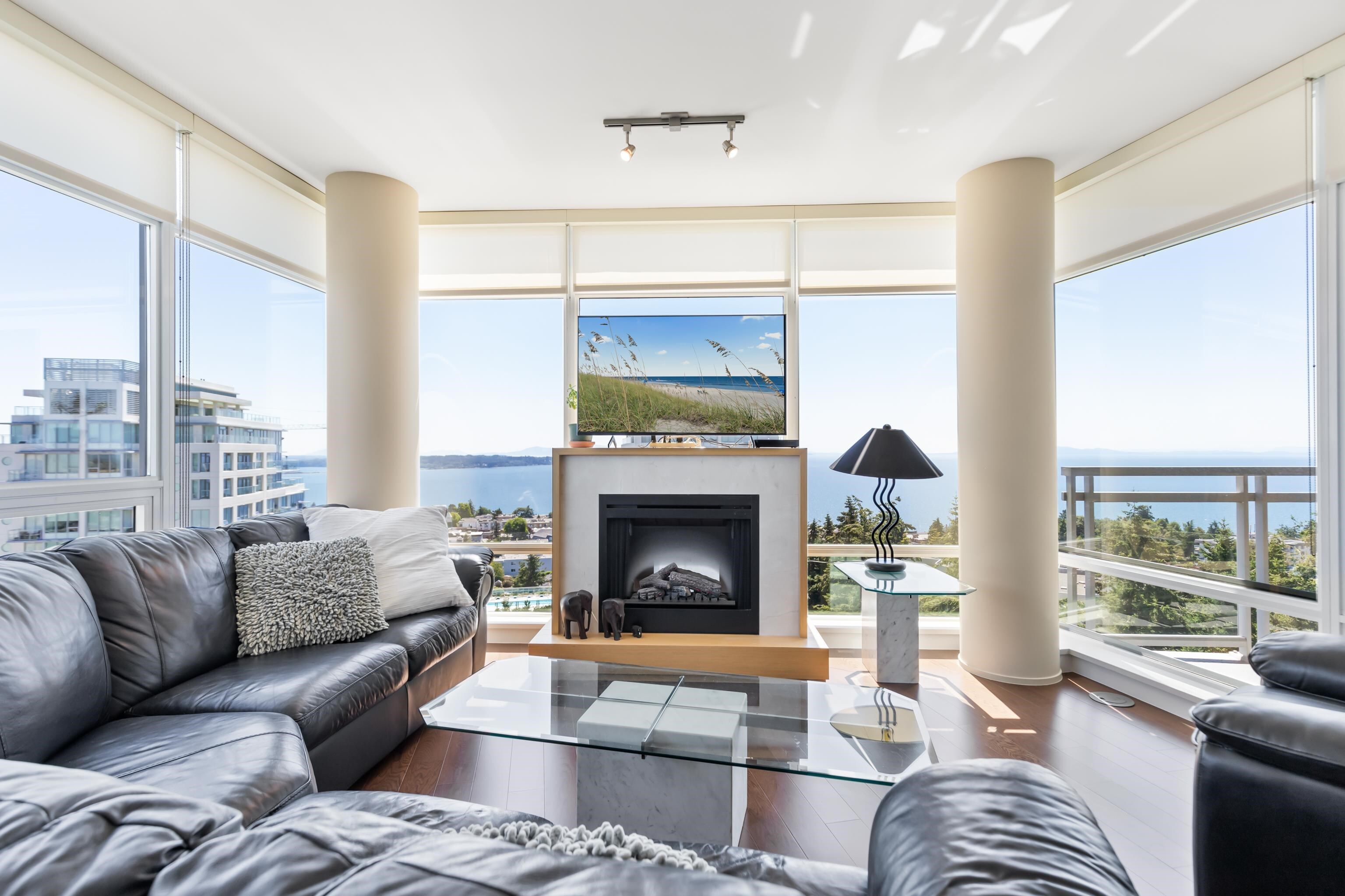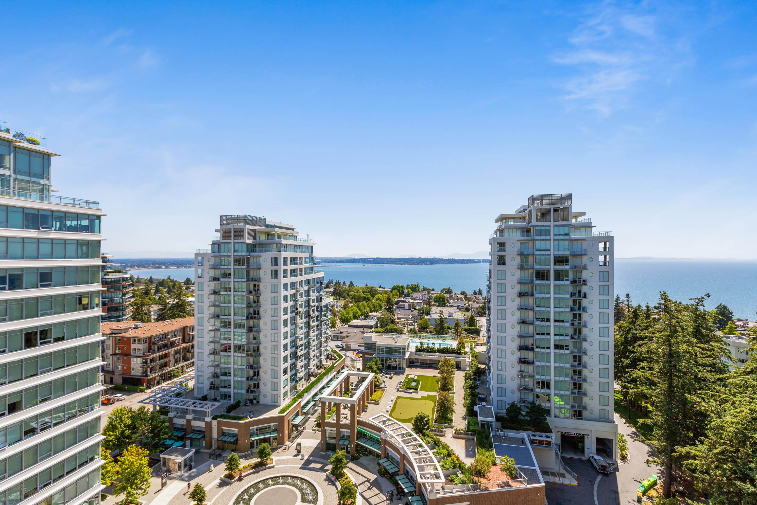 Perched atop the Semiahmoo Peninsula, Miramar Village is a four-tower master-planned community built by renowned developer Bosa Properties & located in picturesque White Rock. This open-concept home offers 2 bedrooms & 2 bathrooms over a thoughtfully designed living space. Floor to ceiling windows flood the home with natural light, while providing 180 degree ocean views with mountains to the East, Gulf & San Juan Islands to the South & stunning unobstructed sunsets to the West. Some features include a brand new heat pump/AC, gas range, integrated appliances, granite counters, built-in cappuccino bar, upgraded blinds in 2nd bedroom & a Murphy Bed in the den area. White Rock Beach & every amenity is at your doorstep.Perched atop the Semiahmoo Peninsula, Miramar Village is a four-tower master-planned community built by renowned developer Bosa Properties and located in picturesque White Rock. This open concept home offers 2 beds & 2 baths over 1325sqft of living space. Floor to ceiling windows flood the space with natural light, while providing sweeping 180 degree ocean views with mountains to the East, Gulf & SanJuan Islands to the South, and stunning unobstructed sunsets to the West. Some of the features include a brand new heat pump/AC, gas range, integrated appliances, granite countertops, built-in Cappuccino machine, upgraded blinds in 2nd bedroom and a Murphy Bed in the den area. Unbeatable location with every amenity at your doorstep and access to the brand new Thrifty Foods through the parkade in the rainy winter months. Easy access to White Rock & Crescent Beach, Hwy 99, Peace Arch border crossing and multiple golf courses make this one of the most desirable towers in the lower mainland.