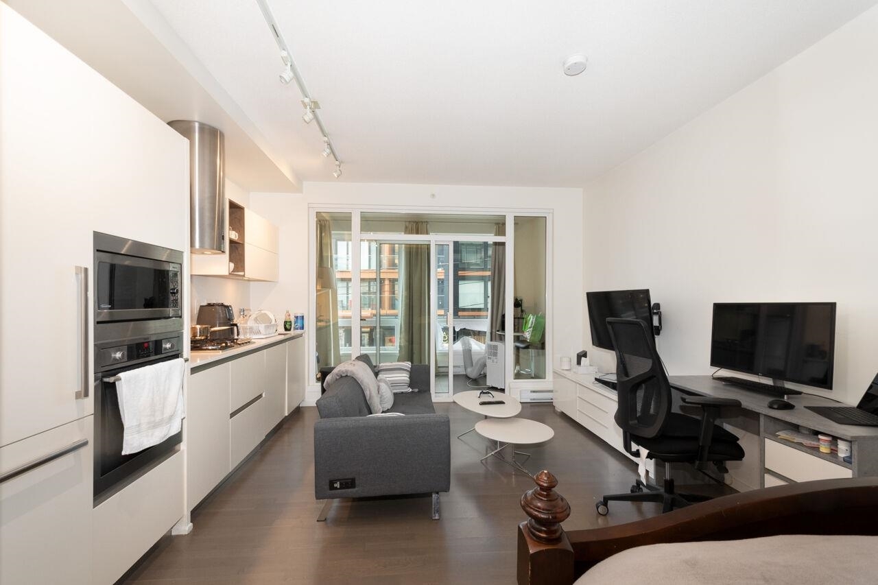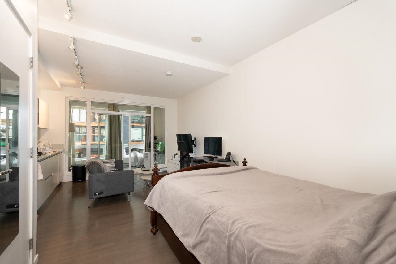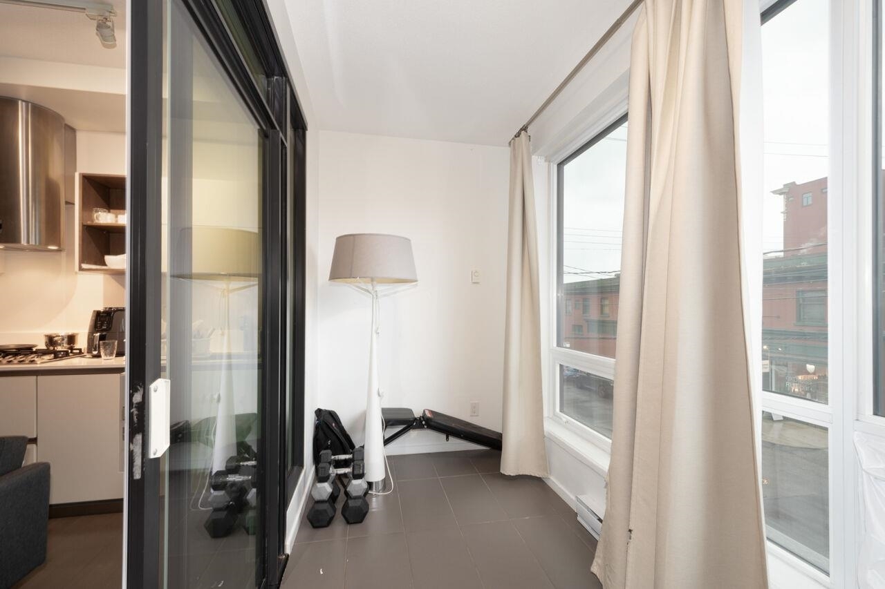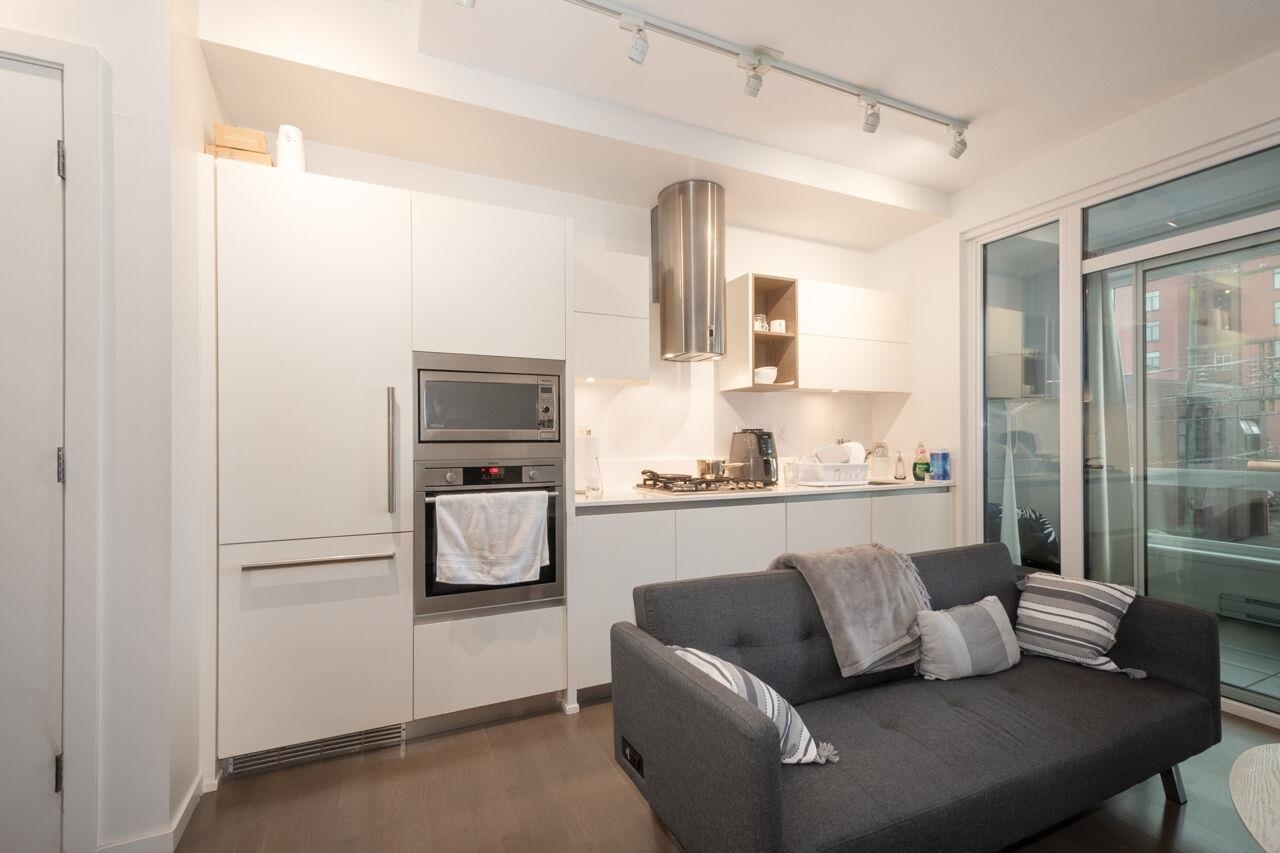 Collection 45 is a contemporary 6-storey concrete building located mid-block on East 8th Avenue, just steps from the bustling Main Street. This south-facing studio offers a spacious enclosed patio with floor-to-ceiling windows, allowing ample natural light. Inside, you'll find 9'4" ceilings, beautiful hardwood flooring, and high-end stainless steel appliances. The European-inspired kitchen boasts sleek cabinetry, a wall-mounted oven and microwave, along with a fully integrated Libherr fridge and Blomberg dishwasher. The bathroom exudes luxury, featuring Italian marble flooring, Caesarstone countertops, wall-mounted faucets, and both rain and hand-held showerheads for a spa-like experience. Look no further--this is the home you've been waiting for!Collection 45 is a contemporary 6-storey concrete building located mid-block on East 8th Avenue, just steps from the bustling Main Street. This south-facing studio offers a spacious enclosed patio with floor-to-ceiling windows, allowing ample natural light. Inside, you'll find 9'4" ceilings, beautiful hardwood flooring, and high-end stainless steel appliances. The European-inspired kitchen boasts sleek cabinetry, a wall-mounted oven and microwave, along with a fully integrated Libherr fridge and Blomberg dishwasher. The bathroom exudes luxury, featuring Italian marble flooring, Caesarstone countertops, wall-mounted faucets, and both rain and hand-held showerheads for a spa-like experience. Look no further--this is the home you've been waiting for!