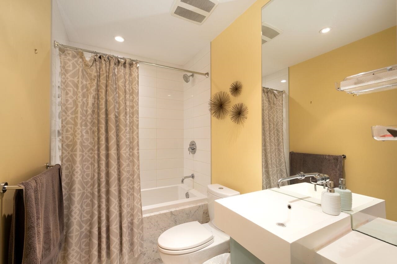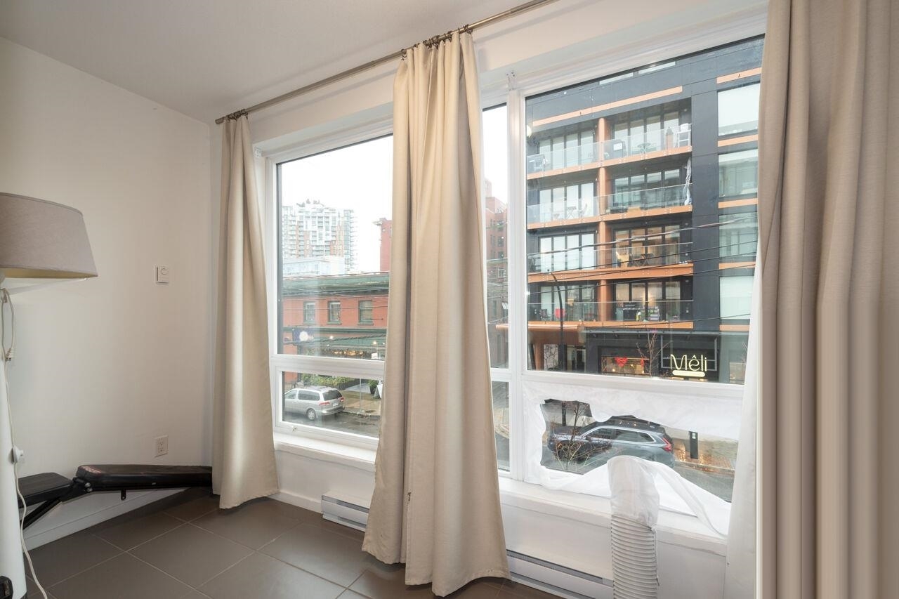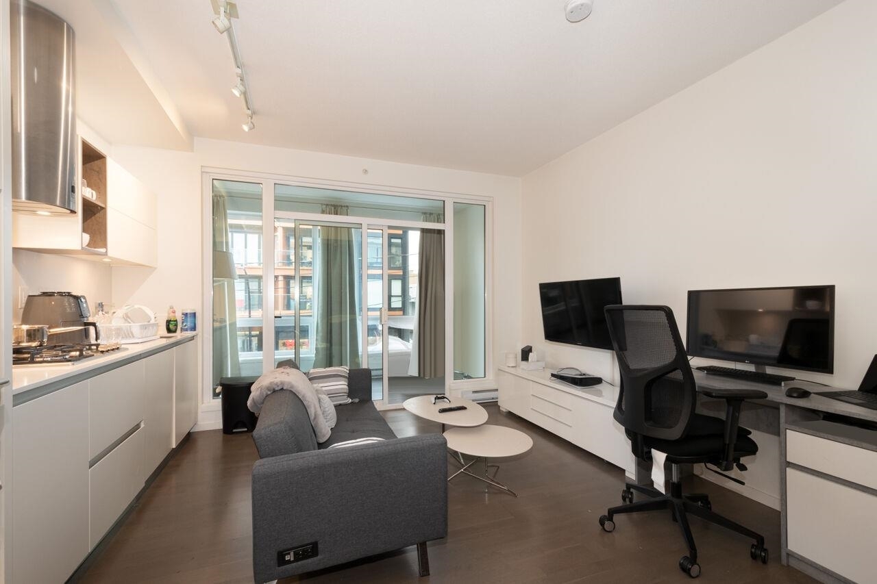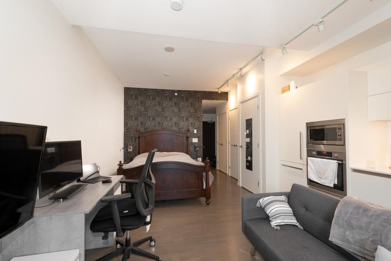 Collection 45 is a contemporary 6-storey concrete building located mid-block on East 8th Avenue, just steps from the bustling Main Street. This south-facing studio offers a spacious enclosed patio with floor-to-ceiling windows, allowing ample natural light. Inside, you'll find 9'4" ceilings, beautiful hardwood flooring, and high-end stainless steel appliances. The European-inspired kitchen boasts sleek cabinetry, a wall-mounted oven and microwave, along with a fully integrated Libherr fridge and Blomberg dishwasher. The bathroom exudes luxury, featuring Italian marble flooring, Caesarstone countertops, wall-mounted faucets, and both rain and hand-held showerheads for a spa-like experience. Look no further--this is the home you've been waiting for!Collection 45 is a contemporary 6-storey concrete building located mid-block on East 8th Avenue, just steps from the bustling Main Street. This south-facing studio offers a spacious enclosed patio with floor-to-ceiling windows, allowing ample natural light. Inside, you'll find 9'4" ceilings, beautiful hardwood flooring, and high-end stainless steel appliances. The European-inspired kitchen boasts sleek cabinetry, a wall-mounted oven and microwave, along with a fully integrated Libherr fridge and Blomberg dishwasher. The bathroom exudes luxury, featuring Italian marble flooring, Caesarstone countertops, wall-mounted faucets, and both rain and hand-held showerheads for a spa-like experience. Look no further--this is the home you've been waiting for!