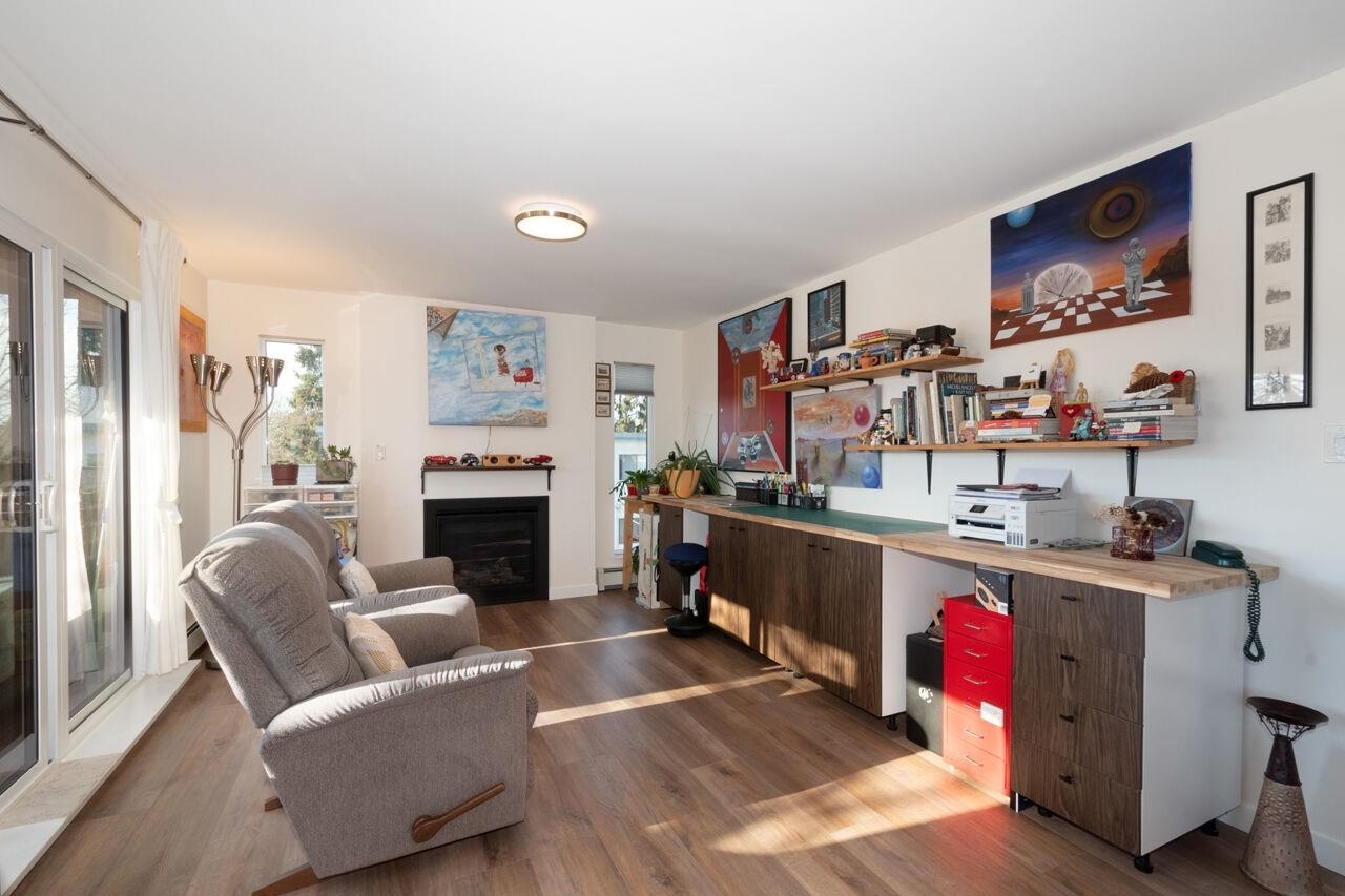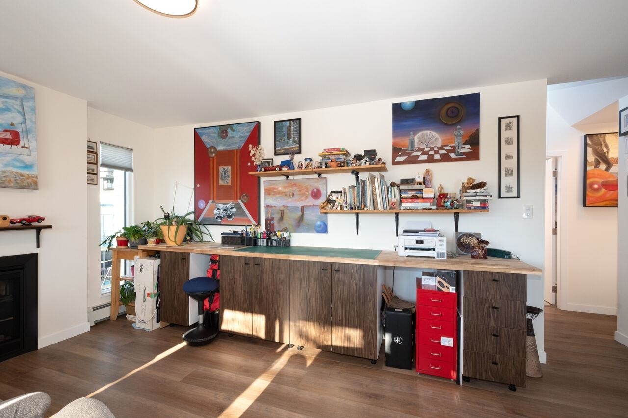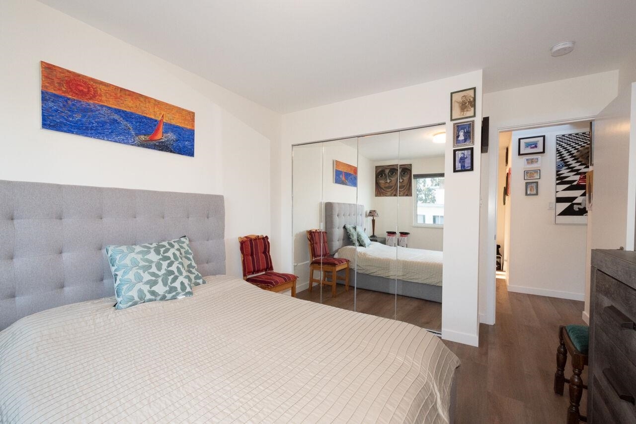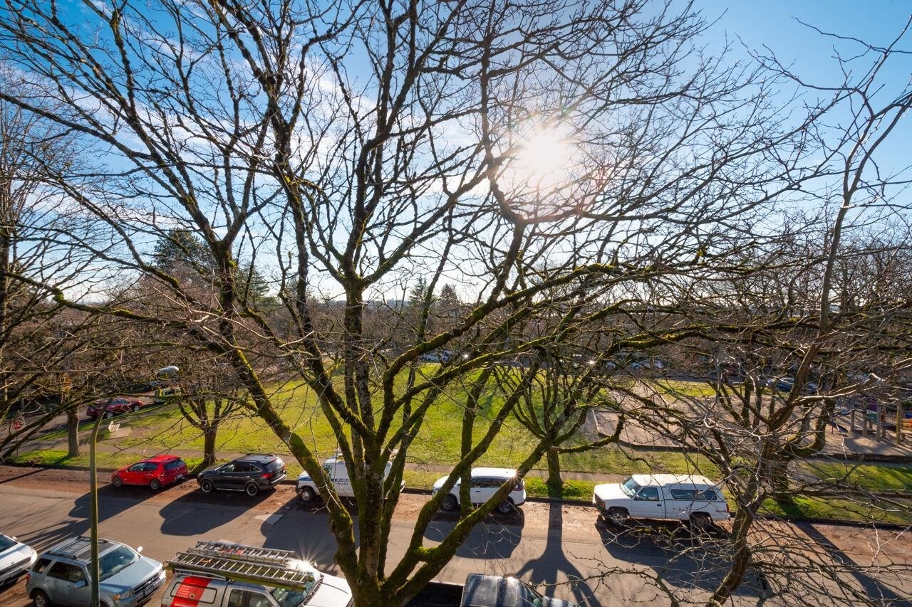 This spacious , bright, top floor 1 bedroom corner suite has been fully renovated and modernized, incl. electrical and plumbing. Features include kitchen with custom cabinets , and silestone countertops and farmhouse style sink. Stainless steel appliances , incl. Fisher Paykel 2 drawer dishwasher. Large eating area, new double glazed windows, new flooring throughout. Tons of windows and 2 skylights . Large South facing balcony. Views to the South and West. 5 min walk to shops and restaurants on Granville. Across from Marpole Park and easy access to Arbutus Greenway and transit. Walkscore of 93. Well maintained building with proactive strata . 2 cats or 1 dog. 1 parking, 1 storage. Heat and gas fireplace incl. in maint fee . Open houses Sat/ Sun Jan. 25 / 26. 2-4pm.