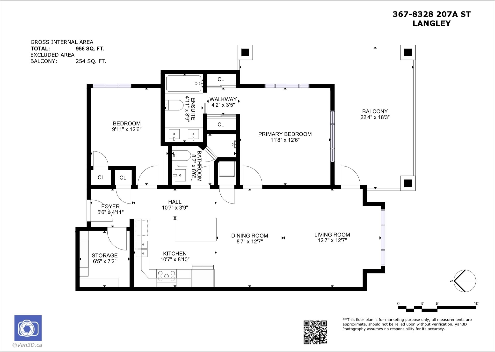 Corner third floor 2 bedroom plus den with a 297 sq ft wrap around balcony at Yorkson Creek! Open floor plan with all the features you can think of-wide plank laminate flooring, new laminate flooring in the two bedrooms, stainless steel appliances, granite countertops, high end cabinetry, heated tile floors in bathroom, air conditioning, in suite laundry, beautiful light fixtures and much more. Low strata fees, 2 Parking stalls in the underground & large storage locker right in front of your parking stall. Walking distance to schools, parks, shopping and transit. Don't wait, won't last long!