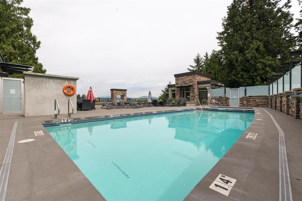 Welcome to this exquisite second-floor home in Edgewater. This unit features 2 bedrooms, a private balcony with serene greenery, and high-quality finishes. The kitchen includes granite countertops, stainless steel appliances, and custom cabinets. The complex offers extensive amenities: a 10,000 sq ft Club House with pool, hot tub, gym, theatre, and yoga room. This unit comes with 2 parking spots and a storage locker. Located near the Nicomekl River and close to various amenities with easy Hwy 99 access. Pets and rentals welcome. Experience luxury living in Edgewater!