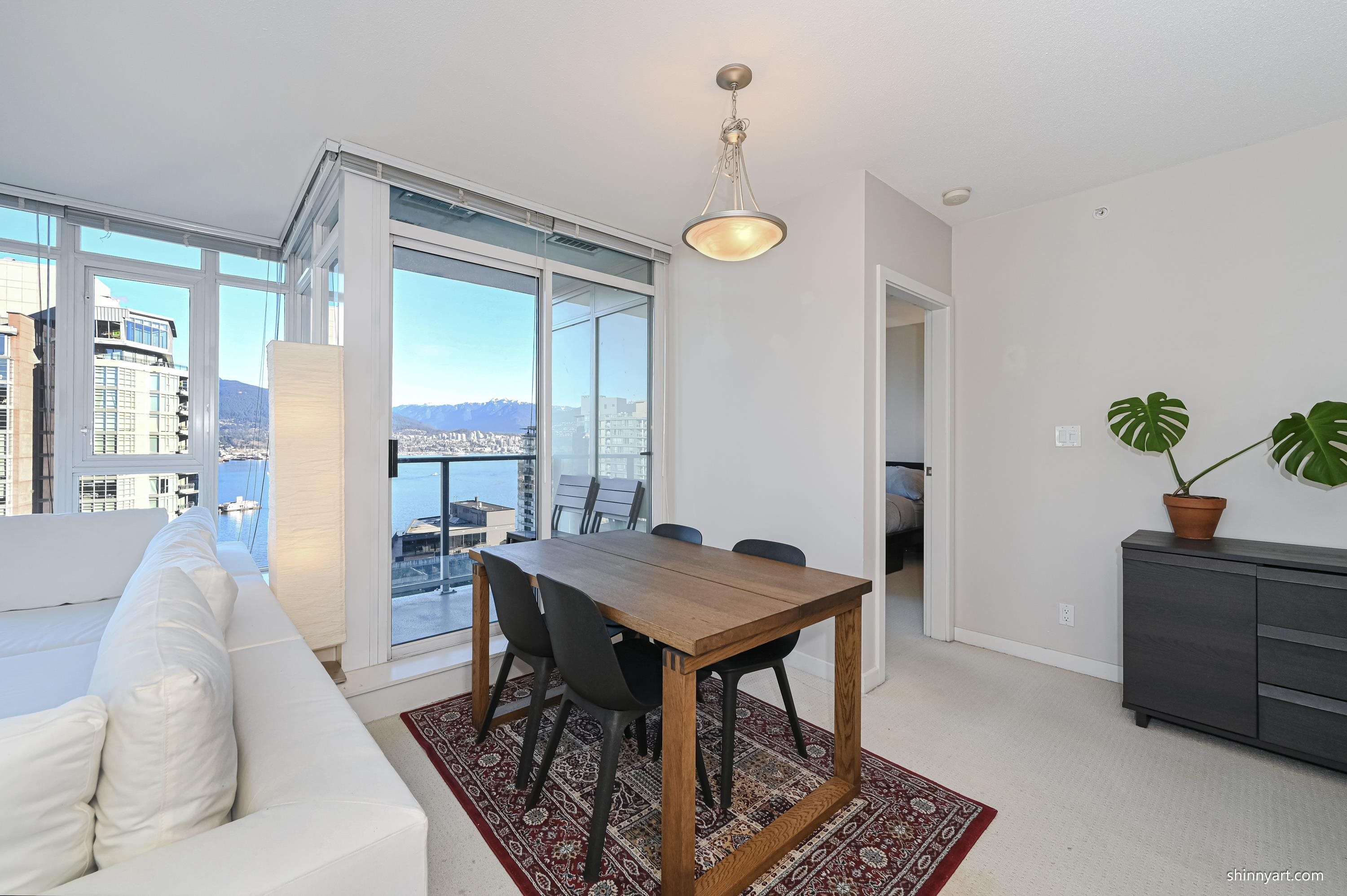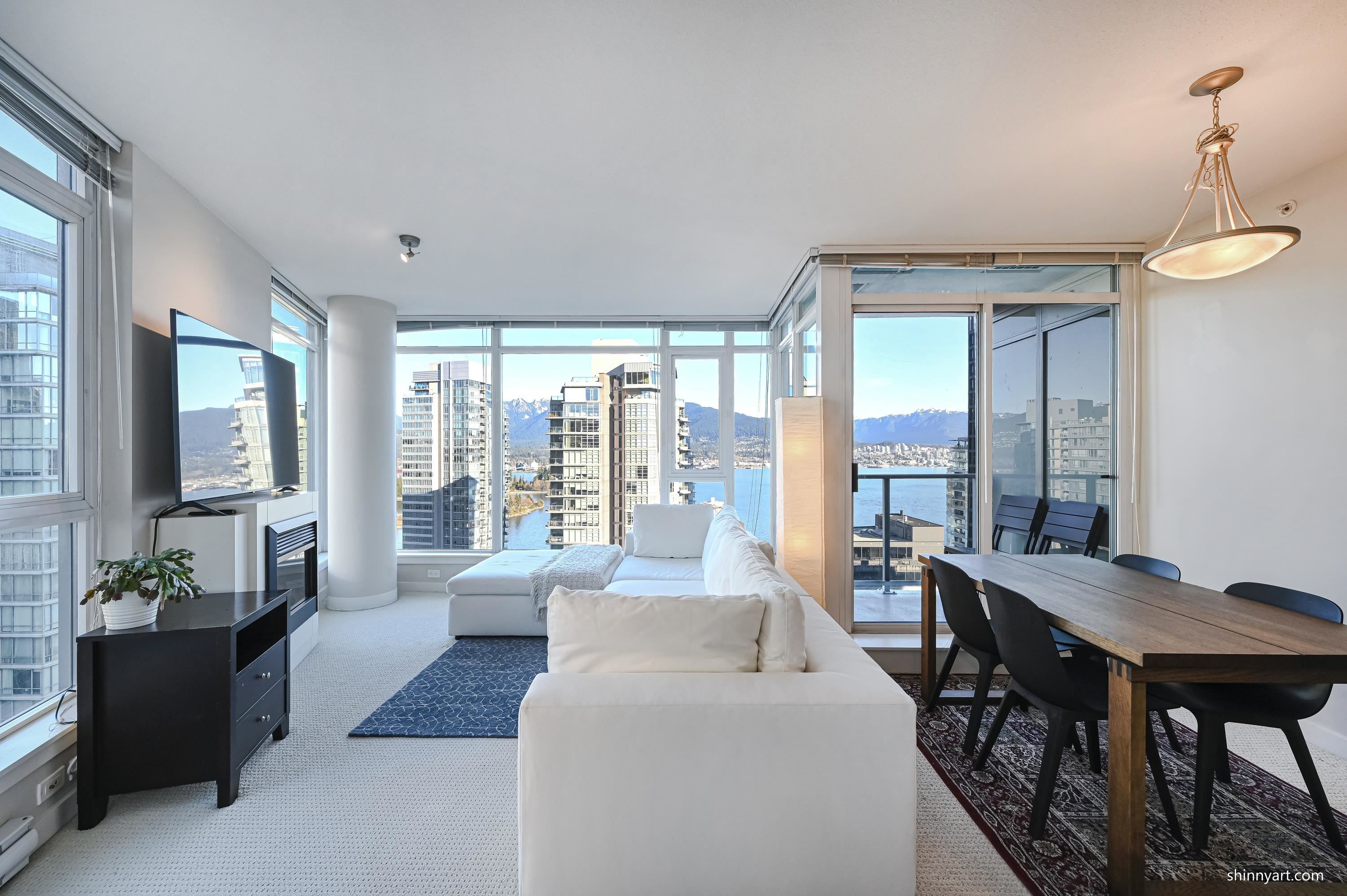 Experience the best of Coal Harbour living in this stunning 2-bedroom, 2-bathroom + den NW corner suite at The Sapphire. Enjoy breathtaking views of the North Shore mountains, Stanley Park, and Coal Harbour from every room. The spacious open-plan layout features a gourmet kitchen with granite countertops, Bosch stainless steel appliances, and hardwood floors throughout. The building offers luxury amenities including concierge service, gym, sauna, hot tub, and media room. Just steps from Stanley Park, the seawall, Robson Street, shopping, and dining, this location can't be beat. Move in and enjoy!