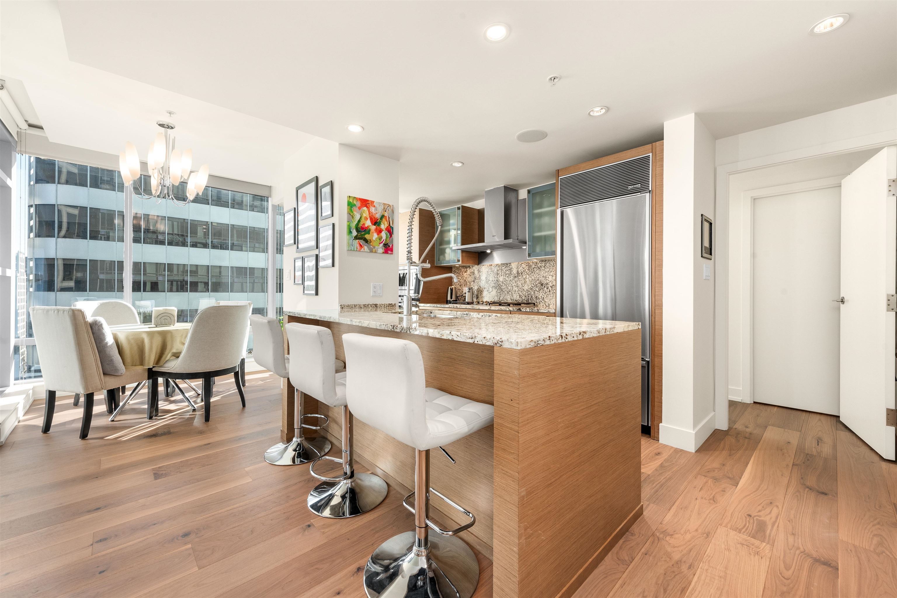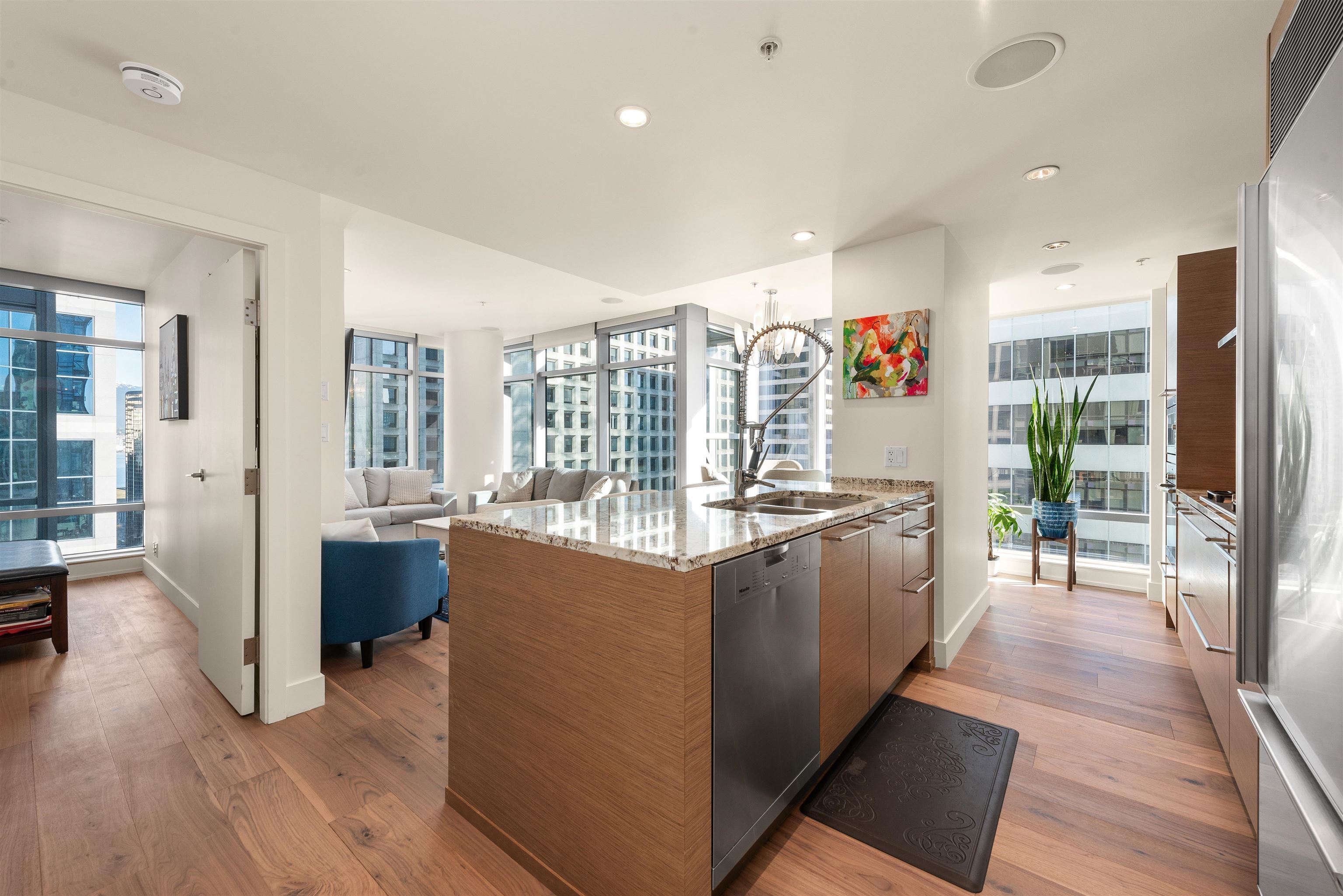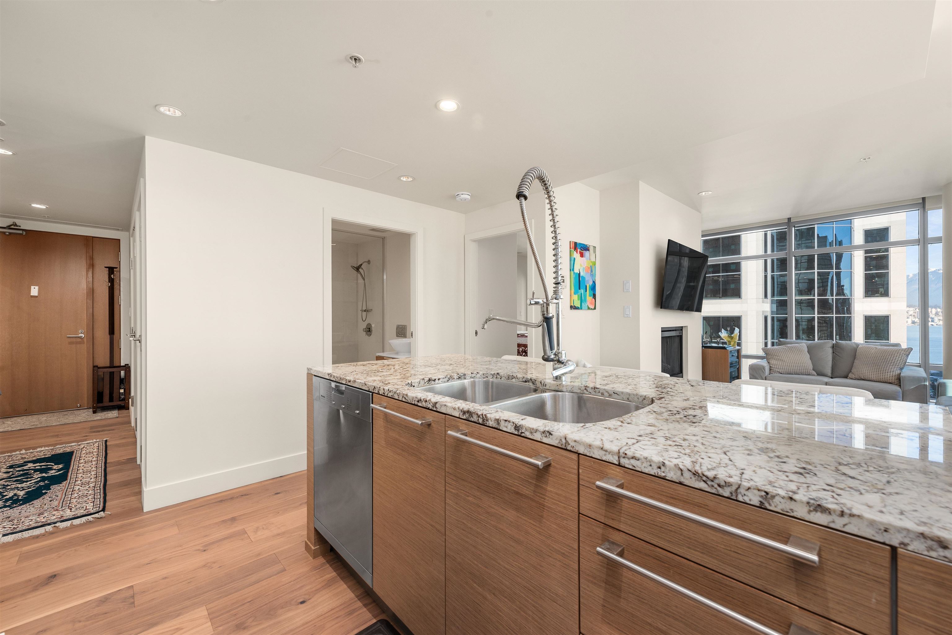 Welcome to unit 1805, a stunning NE facing corner unit with 1094 SF of living space. This home features brand-new engineered hardwood flooring, high ceilings, wrap around windows, A/C and many other premium finishes. The thoughtfully designed chef's kitchen is both functional and sophisticated, equipped with a large island, granite countertops, full slab backsplash, and premium Sub Zero & Miele appliances. The large bedrooms give you plenty of space while the spa like bathrooms, finished with marble tiles and countertops, truly capture the luxury living you deserve. Speaking of what you deserve, as a resident of the Shangri-La, you'll enjoy access to world-class amenities, including 24/7 concierge , an outdoor pool and spa, and my personal favourite, a state-of-the-art fitness centre!Welcome to unit 1805, a stunning north east facing corner unit with over 1000sf of living space. This home features brand-new engineered hardwood flooring, high ceilings, wrap around Windows, Air Conditioning and many other premium finishes. The thoughtfully designed chef's kitchen is both functional and sophisticated, equipped with a large island, granite countertops with a full slab backsplash, and premium Sub Zero and Miele appliances. The large bedrooms give you plenty of space while the spa like bathrooms, finished with marble tiles and countertops, truly capture the luxury living you deserve. Speaking of what you deserve, as a resident of the Shangri-La, you'll enjoy access to world-class amenities, including 24/7 concierge service, an outdoor pool and spa, and my personal favourite, a state-of-the-art fitness center. So are you ready to indulge in all of what the Shangri-La offers? If so make sure to give me a call! I'm excited to bring you in!