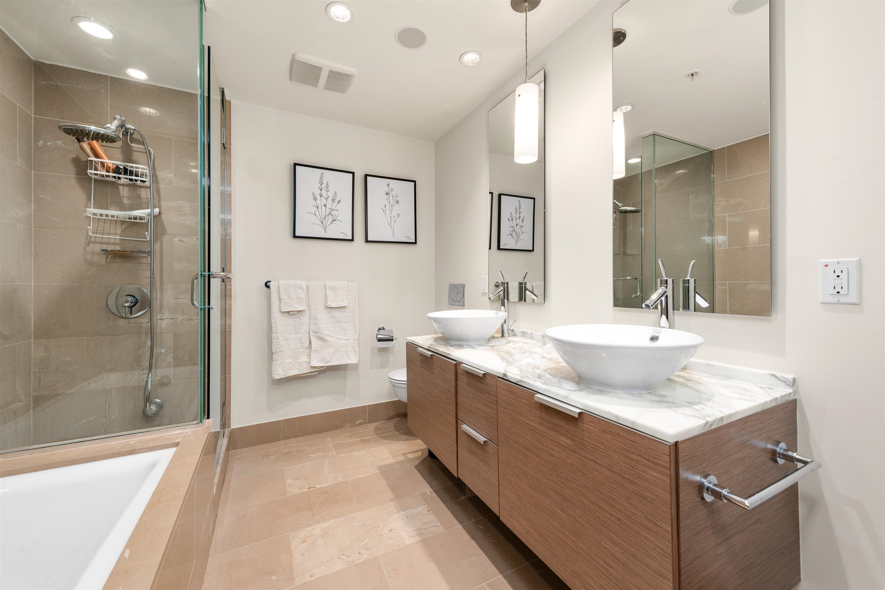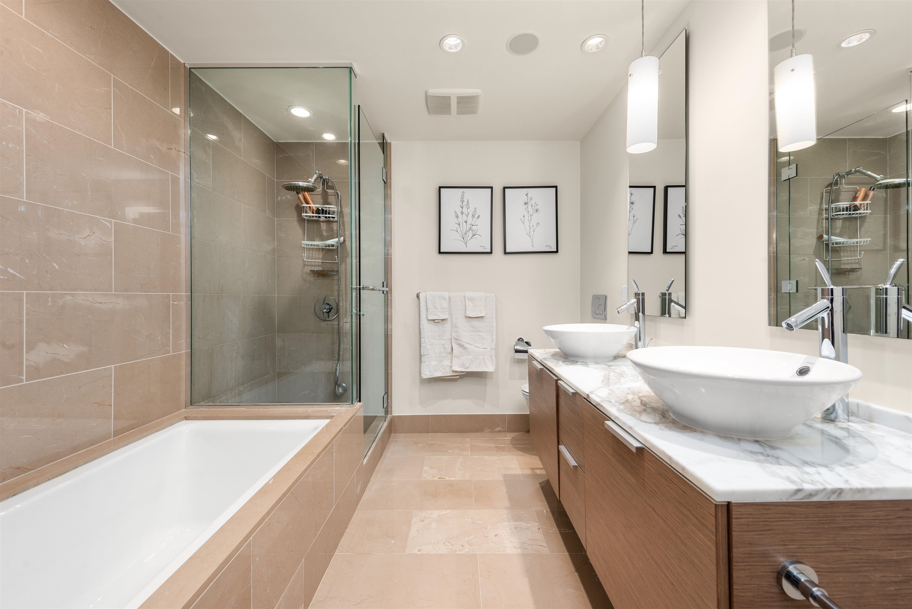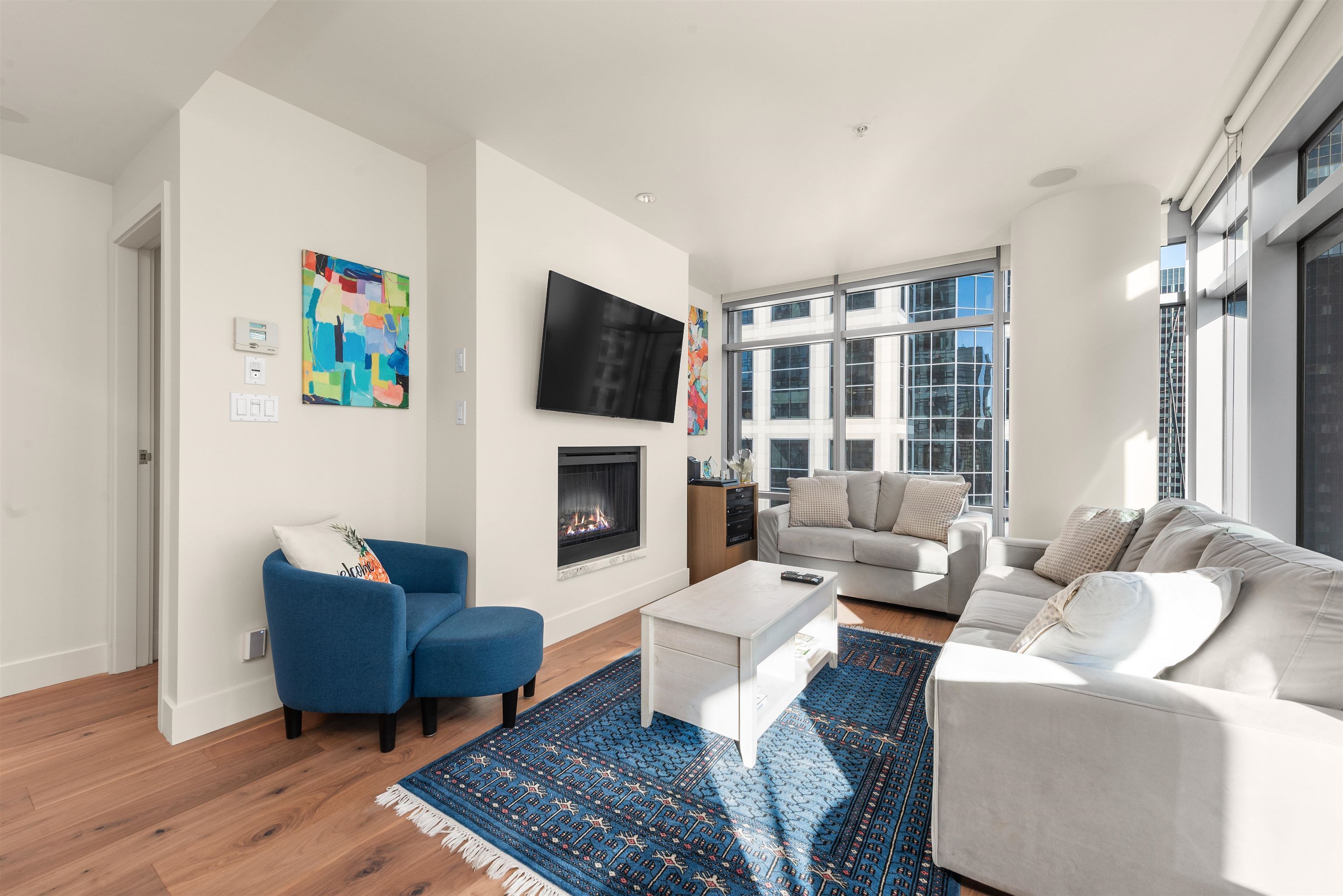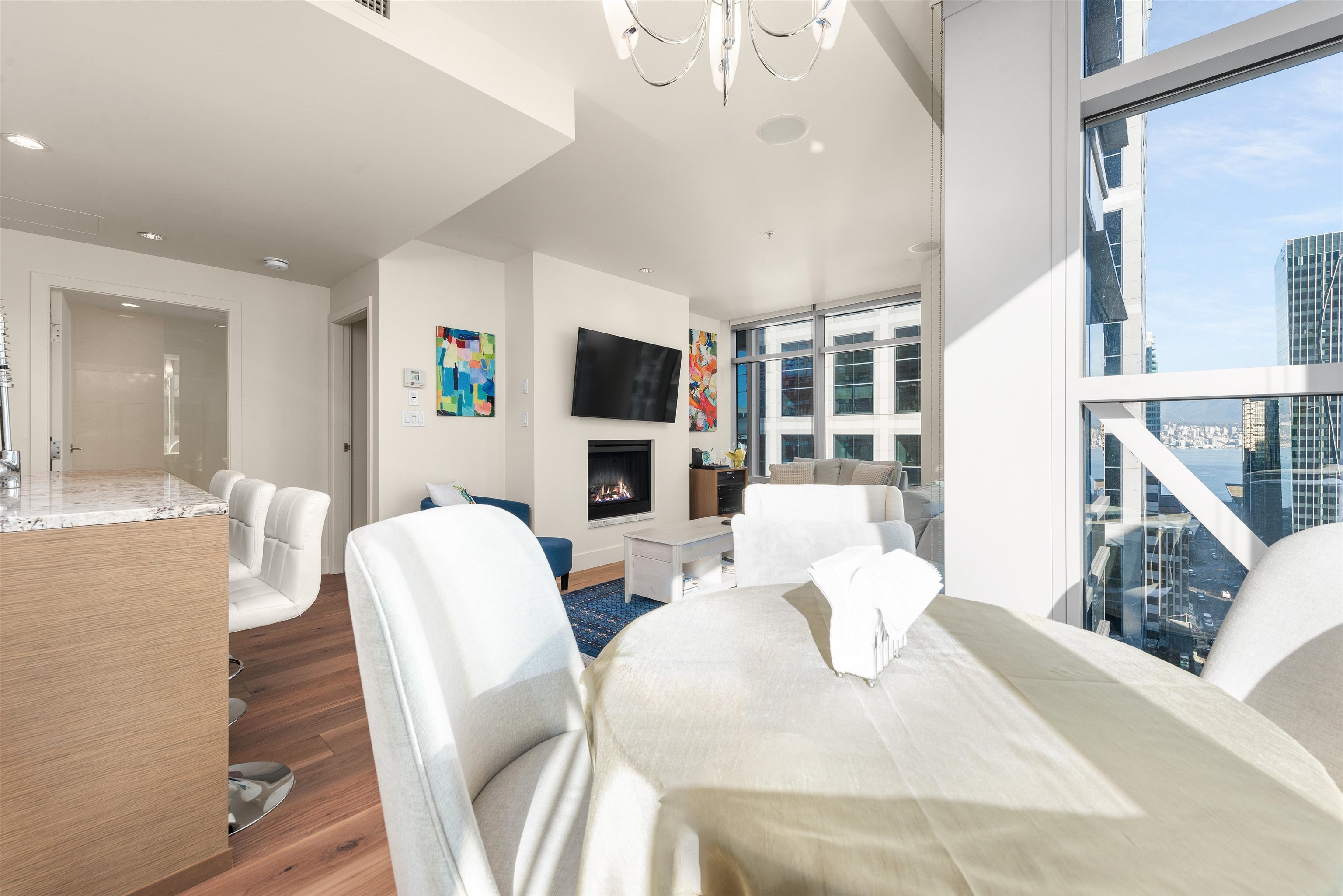 Welcome to unit 1805, a stunning NE facing corner unit with 1094 SF of living space. This home features brand-new engineered hardwood flooring, high ceilings, wrap around windows, A/C and many other premium finishes. The thoughtfully designed chef's kitchen is both functional and sophisticated, equipped with a large island, granite countertops, full slab backsplash, and premium Sub Zero & Miele appliances. The large bedrooms give you plenty of space while the spa like bathrooms, finished with marble tiles and countertops, truly capture the luxury living you deserve. Speaking of what you deserve, as a resident of the Shangri-La, you'll enjoy access to world-class amenities, including 24/7 concierge , an outdoor pool and spa, and my personal favourite, a state-of-the-art fitness centre!Welcome to unit 1805, a stunning north east facing corner unit with over 1000sf of living space. This home features brand-new engineered hardwood flooring, high ceilings, wrap around Windows, Air Conditioning and many other premium finishes. The thoughtfully designed chef's kitchen is both functional and sophisticated, equipped with a large island, granite countertops with a full slab backsplash, and premium Sub Zero and Miele appliances. The large bedrooms give you plenty of space while the spa like bathrooms, finished with marble tiles and countertops, truly capture the luxury living you deserve. Speaking of what you deserve, as a resident of the Shangri-La, you'll enjoy access to world-class amenities, including 24/7 concierge service, an outdoor pool and spa, and my personal favourite, a state-of-the-art fitness center. So are you ready to indulge in all of what the Shangri-La offers? If so make sure to give me a call! I'm excited to bring you in!