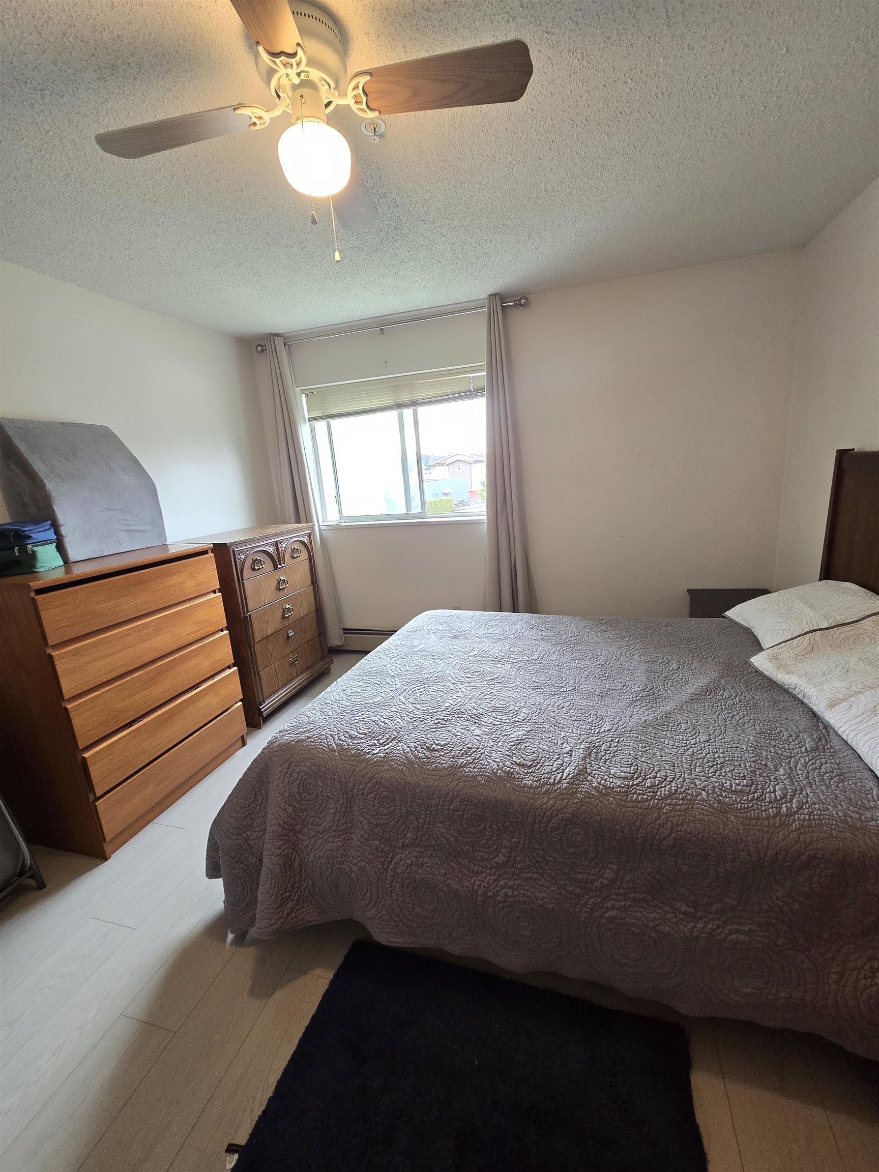 This bright and inviting 55+ corner unit has 2 bedrooms and 1 bathroom. It has been renovated including a newer kitchen complete with new cabinets, extra island, new appliances, new countertops. New window coverings and brand new flooring through out. Cozy up to the electric fireplace or take in the view of Mount Baker from the large patio. This building has great amenities including a library, a gym, guest suites, a rec room and individual storage located on your own patio. Centrally located near Transit, shopping and more. Strata fees include heat, hot water, and hydro. This turn key unit is not to be missed, call today for your appointment.