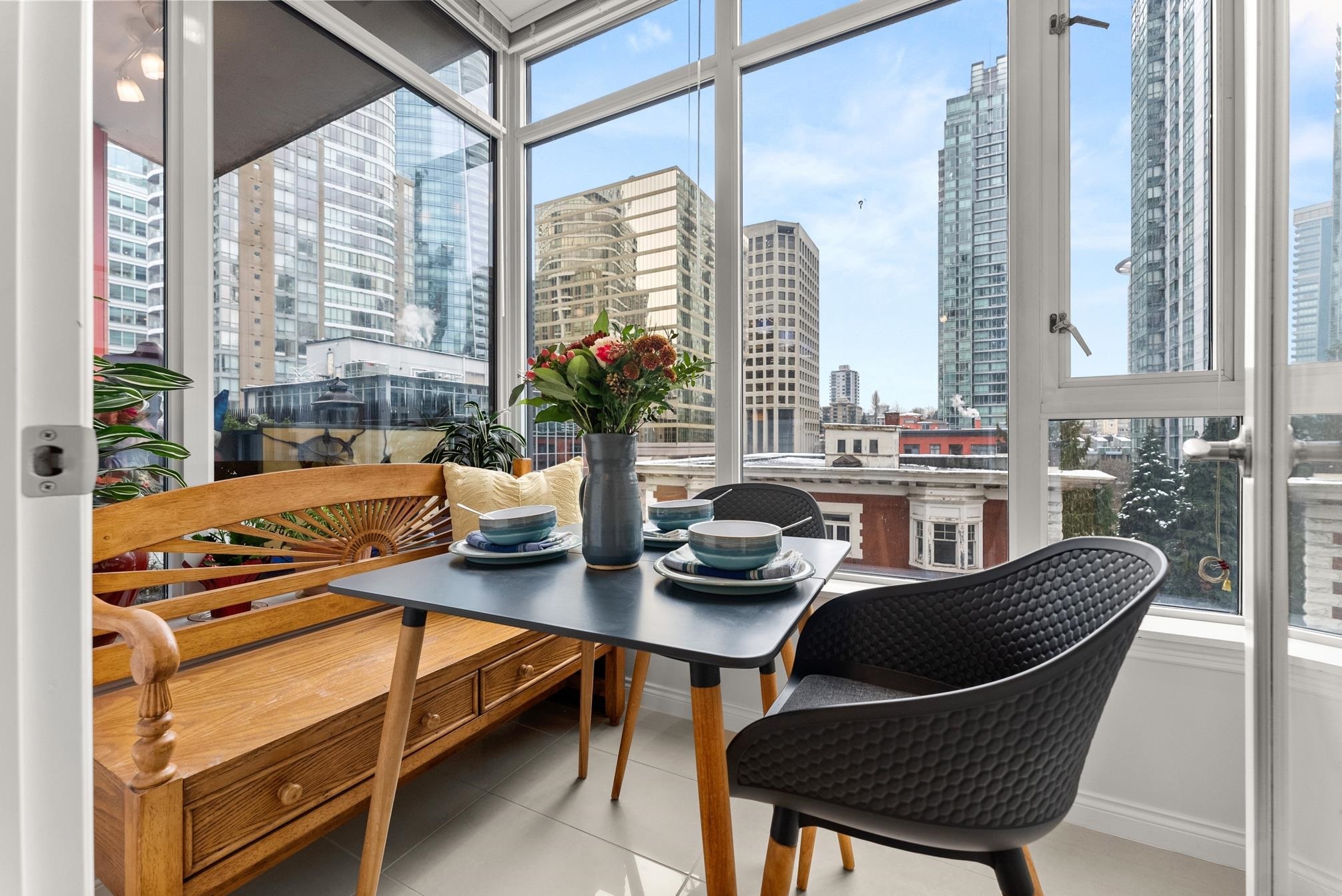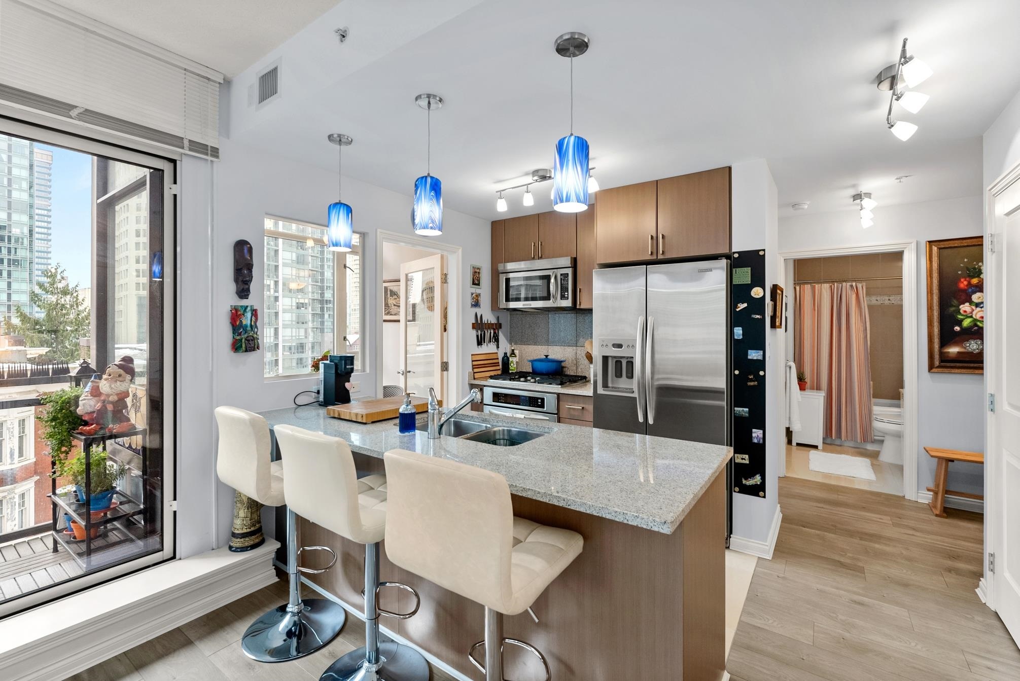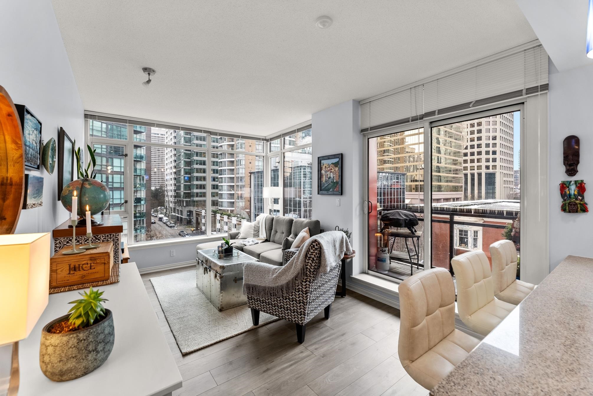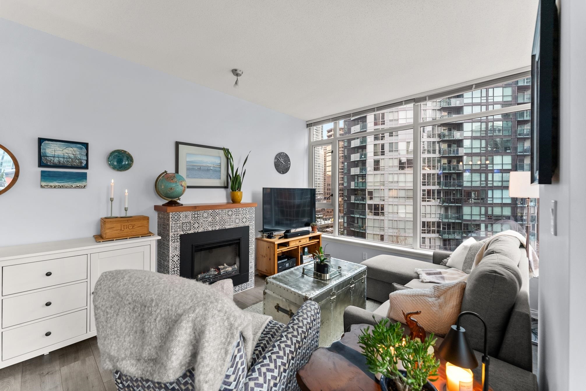 Step into this well-designed lbed, lbath, corner unit & instantly feel at home. Expansive windows fill the space with natural light, enhancing the open-concept layout that flows effortlessly from one area to the next.A cozy fireplace adds warmth to the living space, while sliding doors lead to your private balcony, ideal for summer BBQs or morning coffee with fresh air. The bedroom, tucked away for privacy, features a generous closet & more floor-to-ceiling windows for a bright yet peaceful retreat.The kitchen overlooks the living & dining area, seamlessly connecting to the versatile solarium, perfect for a dining nook, home office, or indoor garden.Storage is no issue her-ith a walk-in pantry or flex space, plus a separate storage locker in the building.Step into this well-designed 1 bed, 1 bath, corner unit and instantly feel at home. Expansive windows fill the space with natural light, enhancing the open-concept layout that flows effortlessly from one area to the next.A cozy fireplace adds warmth to the living space, while sliding doors lead to your private balcony, ideal for summer BBQs or morning coffee with fresh air. The bedroom, tucked away for privacy, features a generous closet and more floor-to-ceiling windows for a bright yet peaceful retreat.The kitchen overlooks the living and dining area, seamlessly connecting to the versatile solarium, perfect for a dining nook, home office, or indoor garden. Storage is no issue here--with a walk-in pantry or flex space, plus a separate storage locker in the building.Located in a well-maintained building with 24/7 concierge service and top-tier amenities, this home offers the perfect balance of comfort, convenience, and vibrant city living in the heart of Coal Harbour. First showings: Feb 19th 10:30-12:00pm