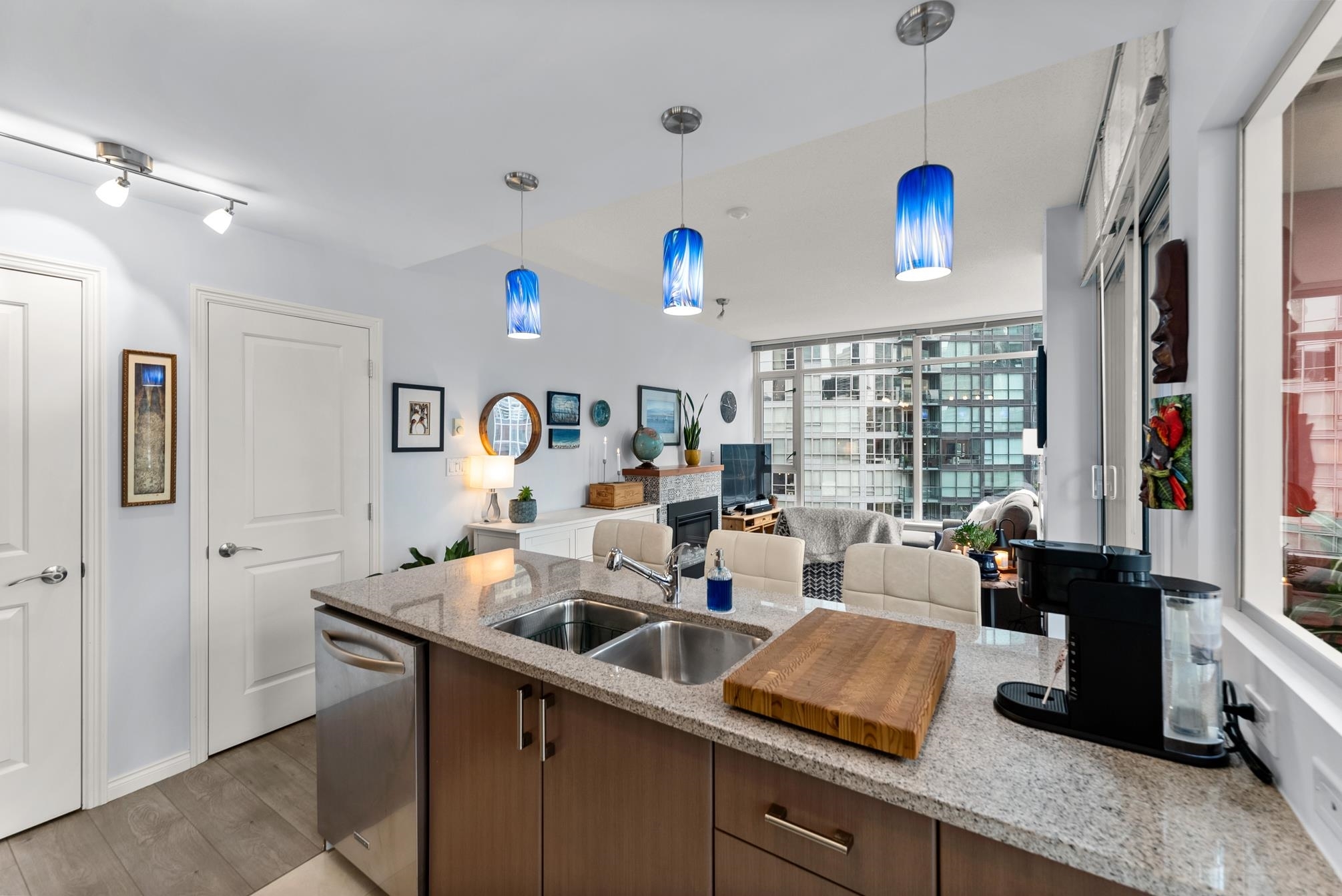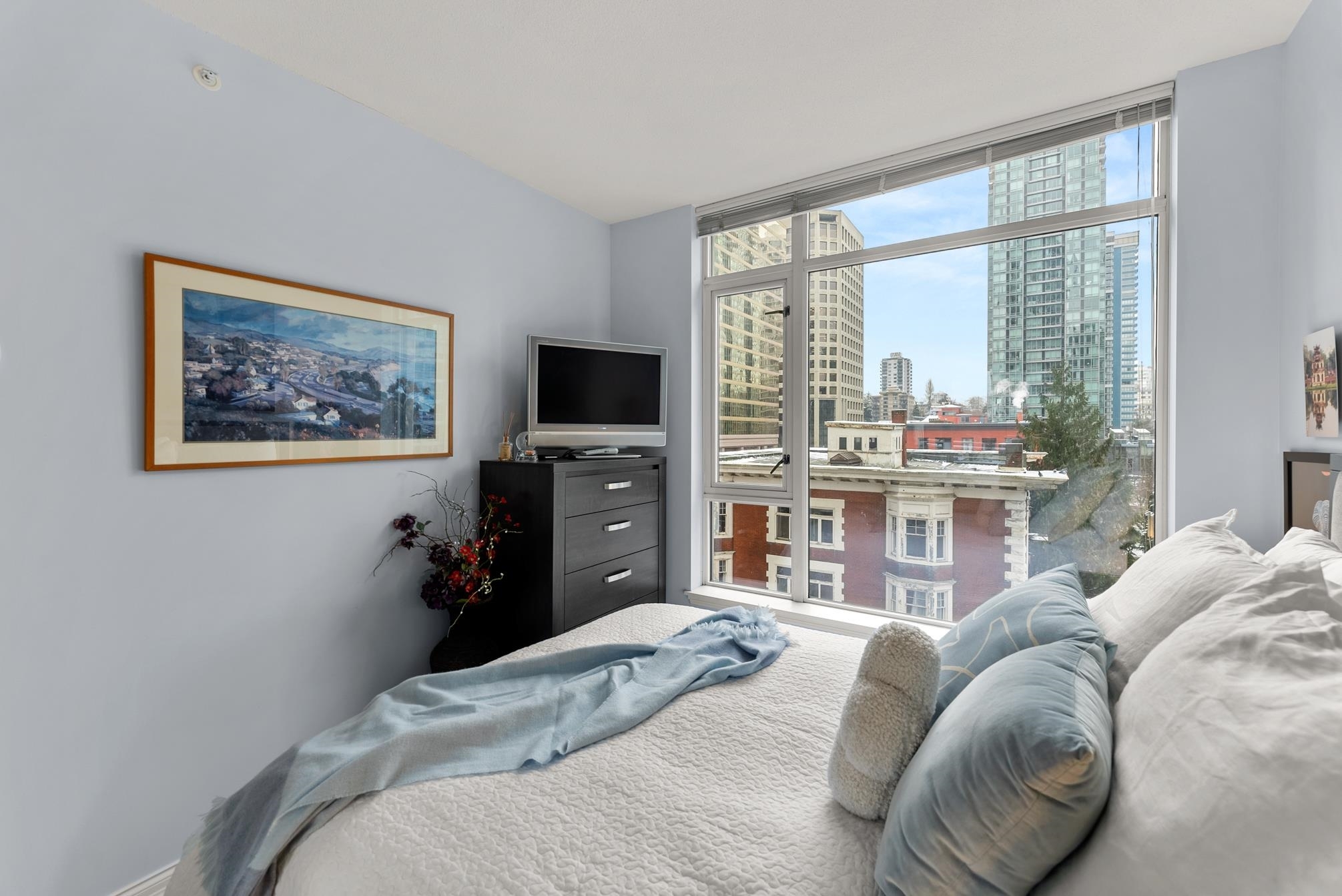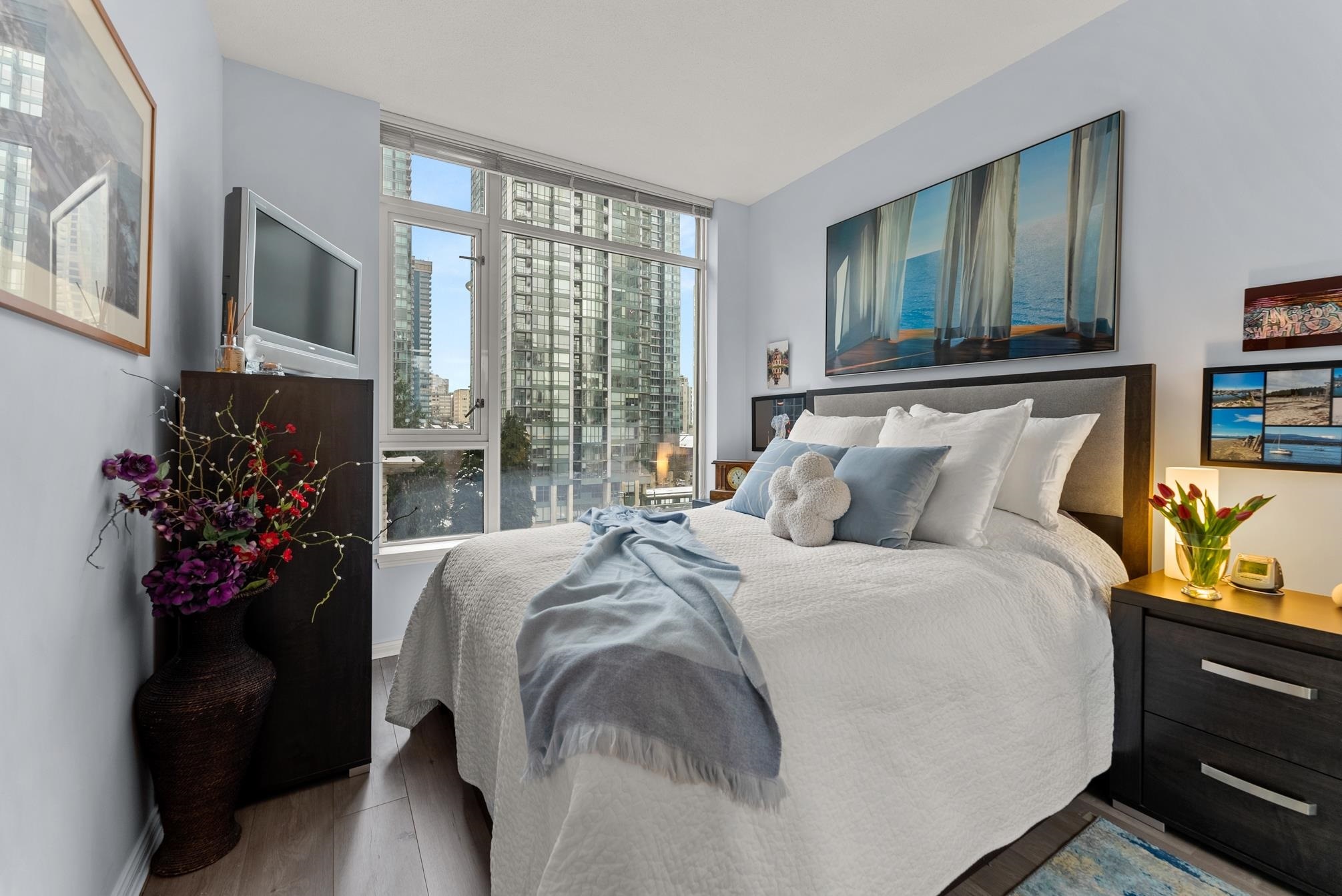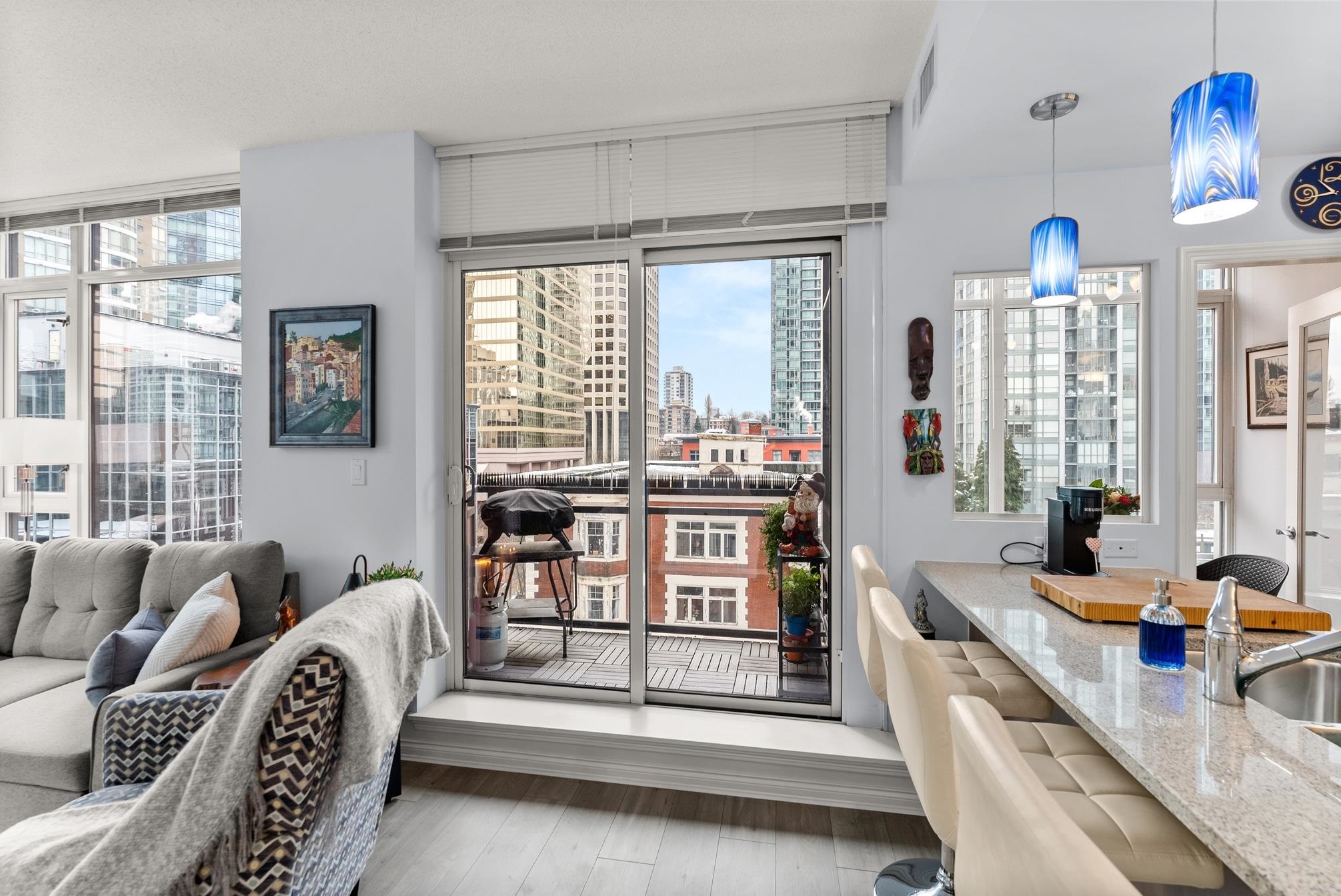 Step into this well-designed lbed, lbath, corner unit & instantly feel at home. Expansive windows fill the space with natural light, enhancing the open-concept layout that flows effortlessly from one area to the next.A cozy fireplace adds warmth to the living space, while sliding doors lead to your private balcony, ideal for summer BBQs or morning coffee with fresh air. The bedroom, tucked away for privacy, features a generous closet & more floor-to-ceiling windows for a bright yet peaceful retreat.The kitchen overlooks the living & dining area, seamlessly connecting to the versatile solarium, perfect for a dining nook, home office, or indoor garden.Storage is no issue her-ith a walk-in pantry or flex space, plus a separate storage locker in the building.Step into this well-designed 1 bed, 1 bath, corner unit and instantly feel at home. Expansive windows fill the space with natural light, enhancing the open-concept layout that flows effortlessly from one area to the next.A cozy fireplace adds warmth to the living space, while sliding doors lead to your private balcony, ideal for summer BBQs or morning coffee with fresh air. The bedroom, tucked away for privacy, features a generous closet and more floor-to-ceiling windows for a bright yet peaceful retreat.The kitchen overlooks the living and dining area, seamlessly connecting to the versatile solarium, perfect for a dining nook, home office, or indoor garden. Storage is no issue here--with a walk-in pantry or flex space, plus a separate storage locker in the building.Located in a well-maintained building with 24/7 concierge service and top-tier amenities, this home offers the perfect balance of comfort, convenience, and vibrant city living in the heart of Coal Harbour. First showings: Feb 19th 10:30-12:00pm