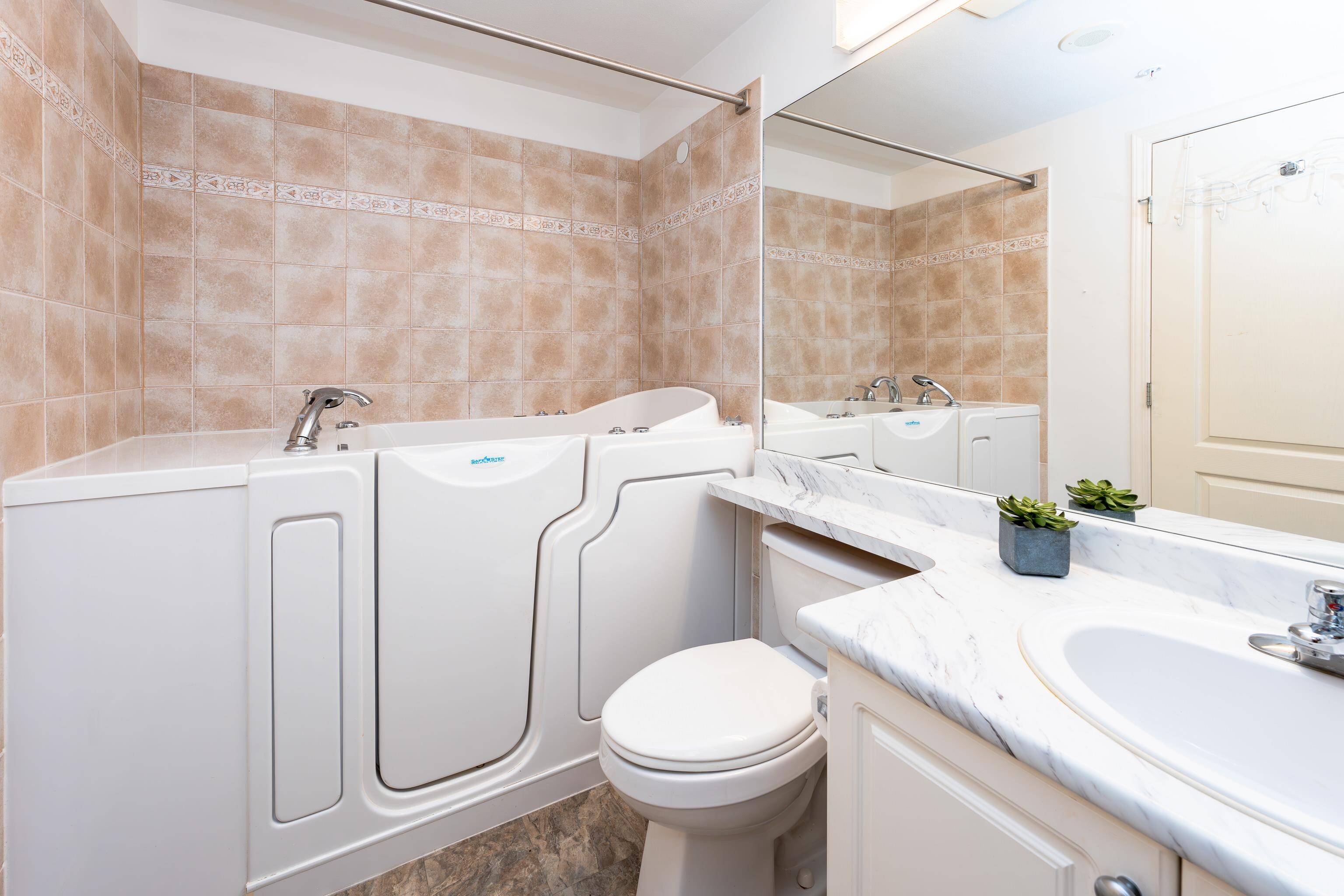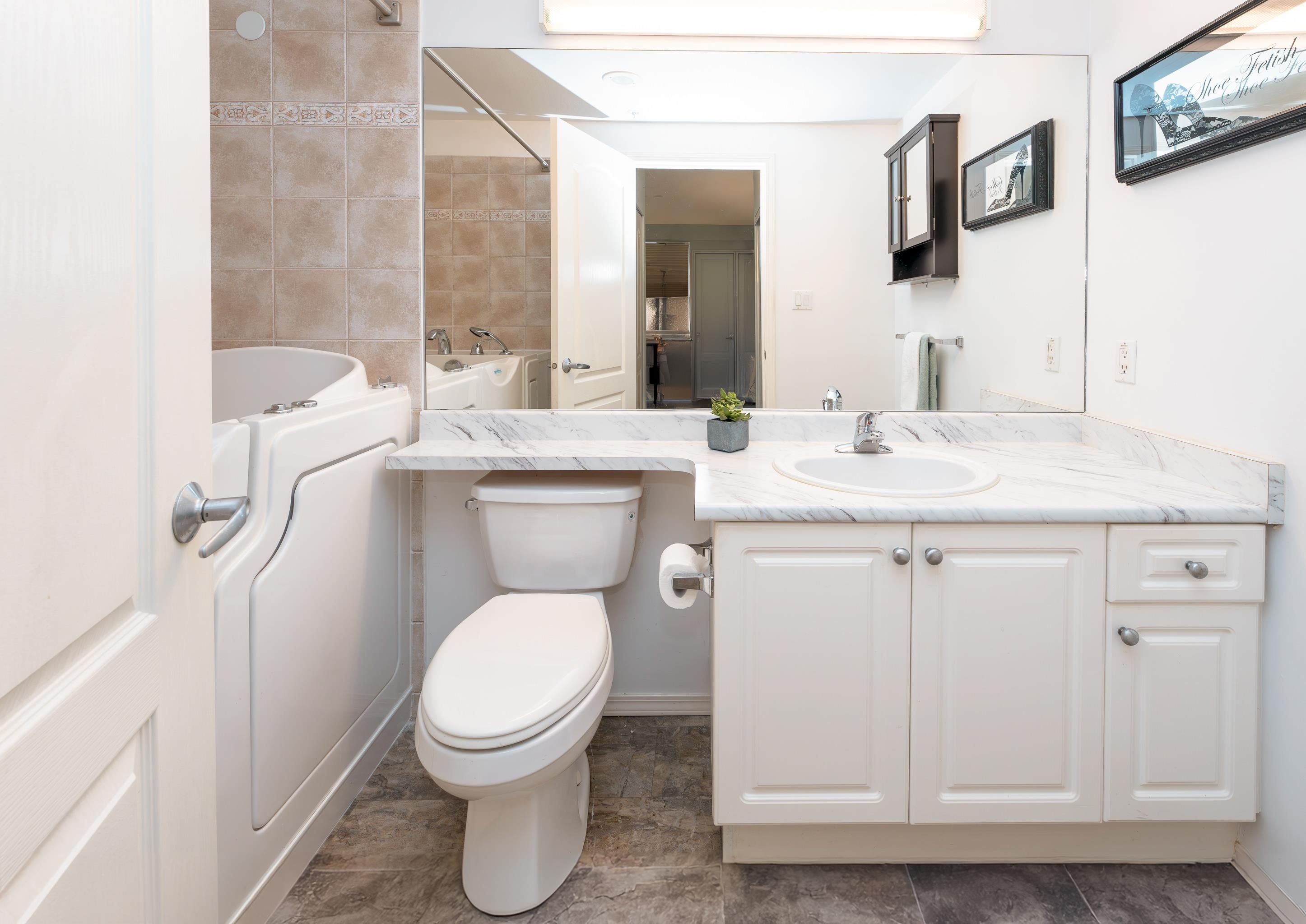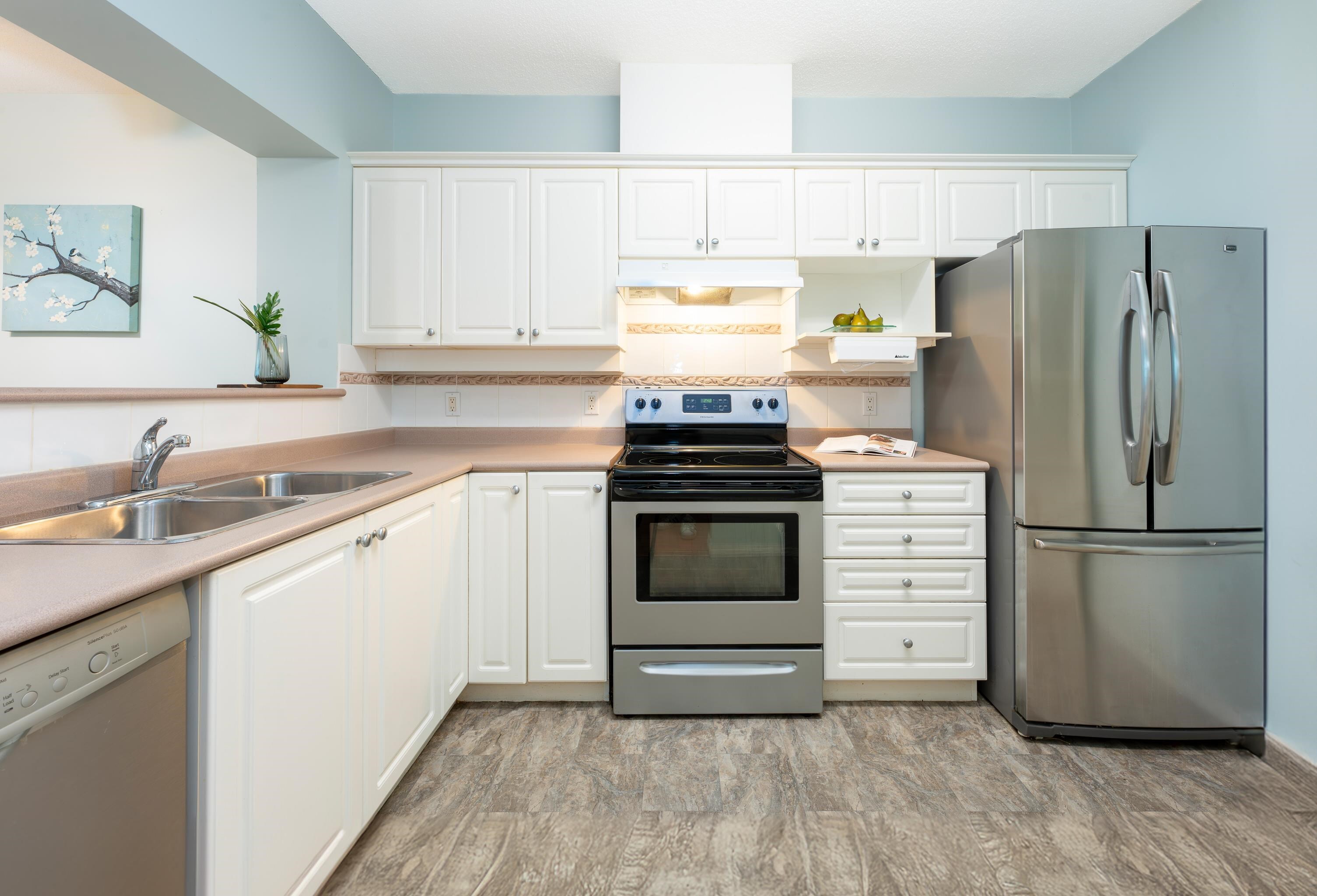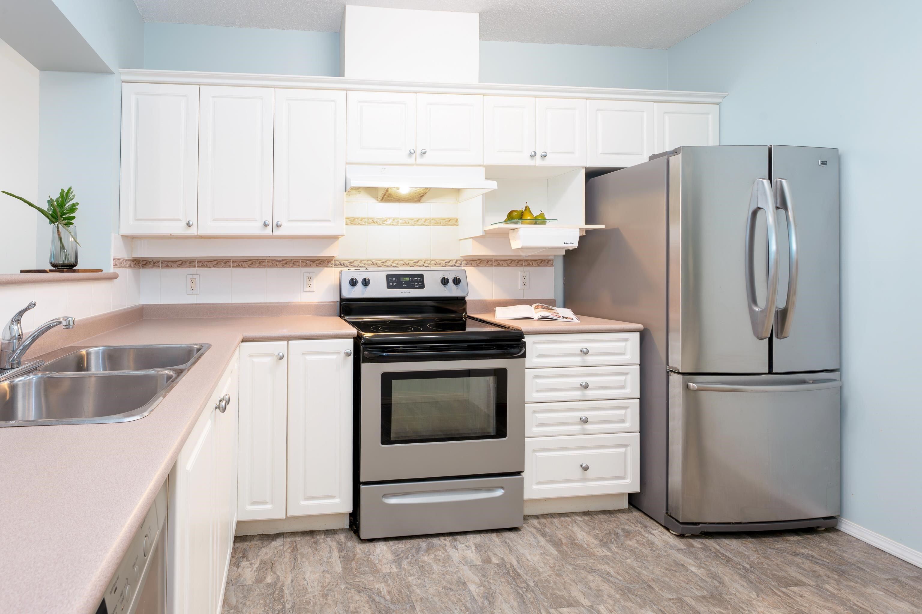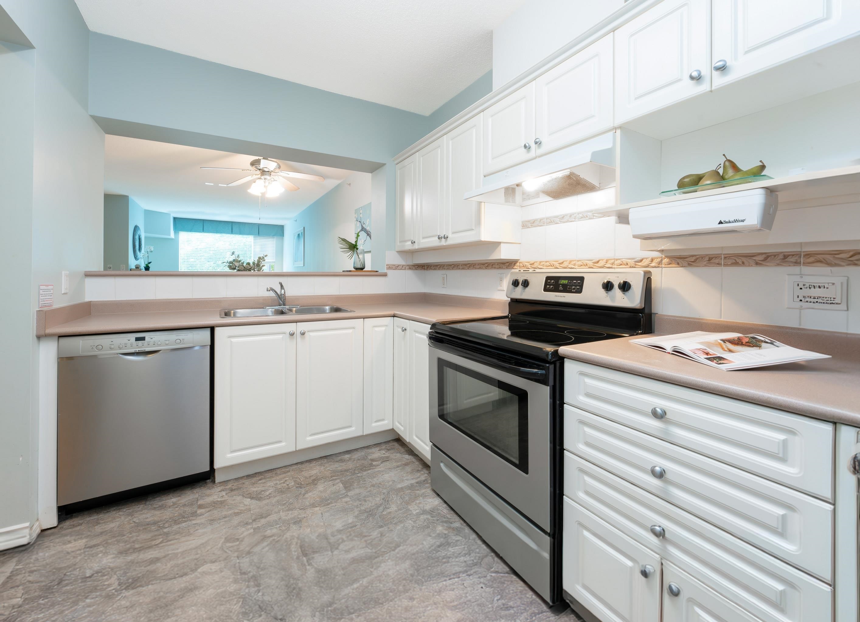 Downsize in style in this GROUND LEVEL 1193 sq ft 2 Bed, 2 bath home in friendly 55+ Panorama! The large functional kitchen with lots of cabinet & counter space features s/s appls, white cabinets, & a convenient pass-thru to the dining area. Living room with cozy gas F/P + access to spacious solarium & further to the large balcony. Primary Bedroom, also with access to balcony, offers double closets & spacious ensuite with a luxurious heated & jetted walk-in tub. Good size 2nd bedroom plus additional bath with shower stall. Full size washer/dryer & in-suite storage. Make & meet friends at the attached Maple ridge Senior's Centre with a wide range of amenities including a hair salon, craft room, billiards & cafeteria. Super convenient location! Walking distance to everything. 1 pet ok.Downsize in style in this GROUND LEVEL 1193 sq ft 2 Bed, 2 Bath home in friendly 55+ Panorama! The large functional kitchen with lots of cabinet and counter space features s/s appliances, white cabinetry, and a convenient pass-thru to the dining area. Living room with cozy gas F/P + access to spacious solarium and further to the large balcony. Primary Bedroom, also with access to balcony, offers double closets and spacious ensuite with a luxurious heated and jetted walk-in tub. Good size second bedroom plus additional bath with shower stall. Full size washer/dryer and in-suite storage. Make and meet friends at the attached Maple ridge Senior's Centre with a wide range of amenities including a hair salon, craft room, billiards and cafeteria. Super convenient location! Walking distance to everything you need. 1 pet OK. Only 1 owner needs to be 55+!