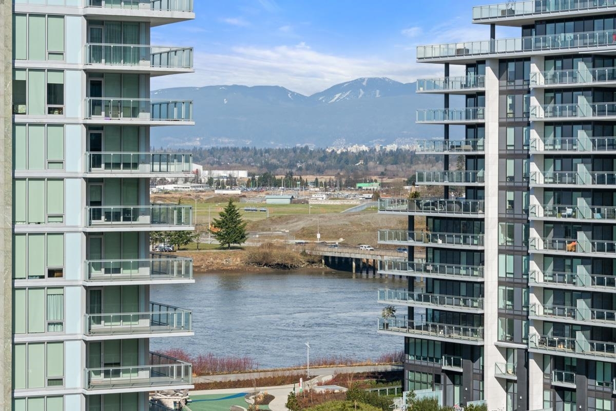 UNOBSTRUCTED MOUNTAIN & CITY VIEW! 2 RIVER GREEN! Richmond's Luxurious Condo Living! Contemporary, functional 3Bed 2Bath+Den UPPER UNIT features airy 9' ceiling, floor-to-ceiling windows, B&O smart home system, engineered hardwood flooring in main living area. EXPANSIVE BALCONY seamlessly connect indoor & outdoor living, perfect for family gathering w/ FRASER RIVER VIEW! Gourmet kitchen features exquisite Italian Cesar cabinet + integrated LED lights & top-performing Miele appliance package, where elegance and functionality are perfectly combined. WORLD-CLASS AMENITIES: 24/7 concierge, indoor pool, sauna&steam, water garden, social lounge, outdoor BBQ, piano rm, mahjong, etc. to fill your life w/ fun & excitement! Olympic Oval, T&T, cafes, shops & restaurants ALL WITHIN WALKING DISTANCE!