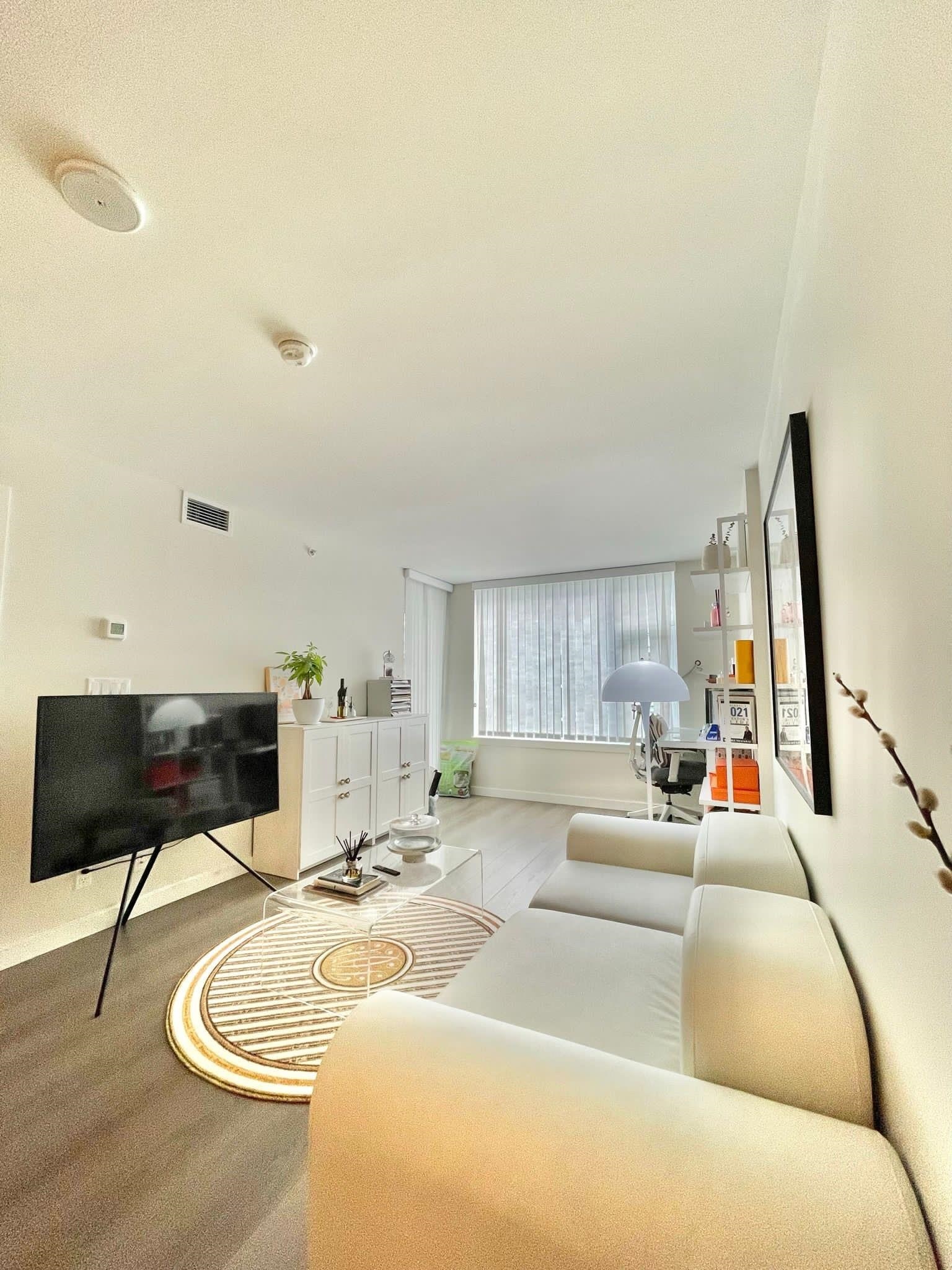 Spacious and well-designed 1-bedroom + den home at Torino, Capstan Village in the heart of Richmond. This unit features a large U-shaped kitchen with full-size appliances, The den is perfect for a home office or extra storage. Enjoy modern comforts with bright open living area, and a king-size bedroom with a walk-in closet and heating/cooling system. Great location with groceries, restaurants, banks, and Costco just steps away. Only a few minutes walk to the new Capstan Sky Train Station, making it easy to get to Vancouver. A perfect home for comfortable city living!