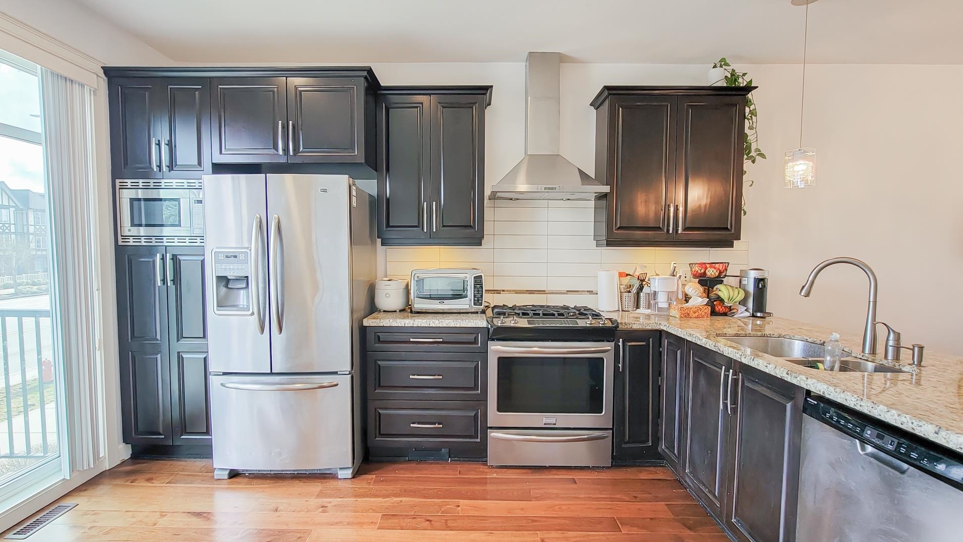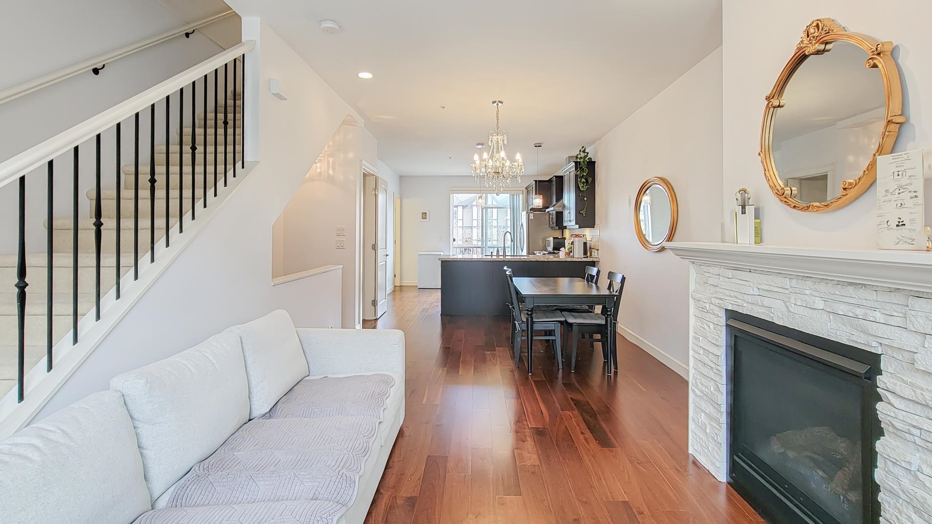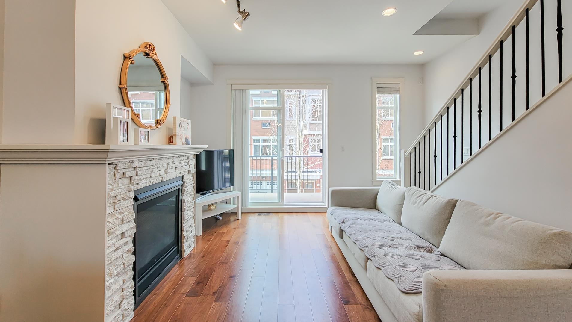 Prestige Yorkson Creek South. Great open floor plan in main, 3 beds up & Rec Room in ground level (could be 4th bedroom). Engineered Hardwood Floor on main, Gourmet kitchen with granite countertop & S/S appliances. Natural gas fireplace, High efficiency furnace, faux wood blinds, heated floor & fogless mirror in Master Ensuite. Air conditioner in Master bedroom. Huge Rec. Room with separate entrance in basement. Close to shopping mall, and all level of schools. RE Mountain Secondary. Open House: Mar 01 & 02 (Sat/Sun) 2 - 4 pm