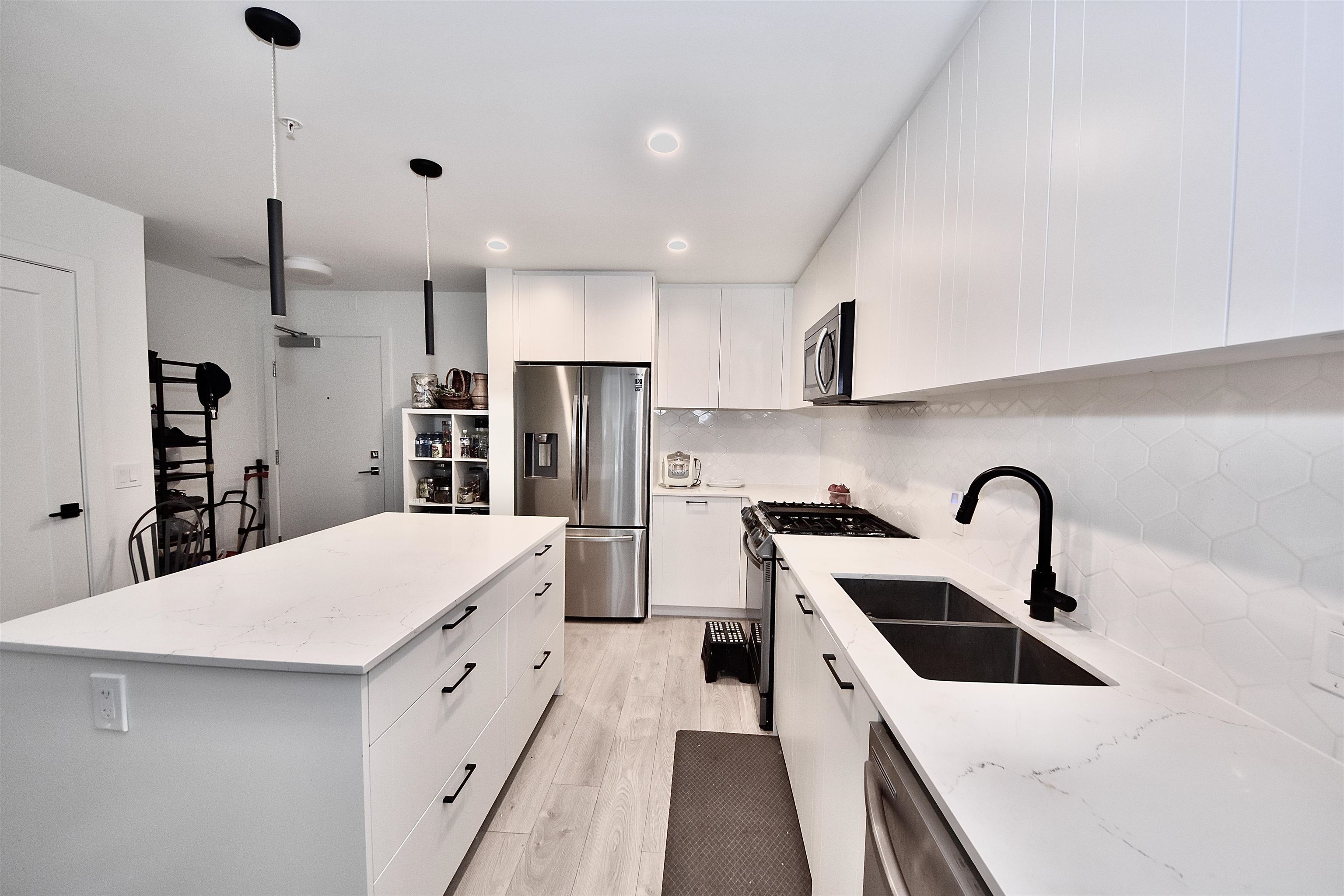Rare spacious penthouse level 1 bedroom plus den at Latimer Village by Vesta. Stainless steel appliances. quartz countertops, dual sink vanities, gas stove (including maintenance fee) and walk-in closet. Close and easily access to Highway 1, various retail shops and restaurants, McDonald's Tim Hortons, Carvolth's Bus Exchange. All levels of famous and high level schools. Walking trail and pond. One parking, one storage locker. OPEN HOUSE: 12-2pm Saturday March 1st & 2:30-4:30pm Sunday March 2nd. Easy to show by appointment!
