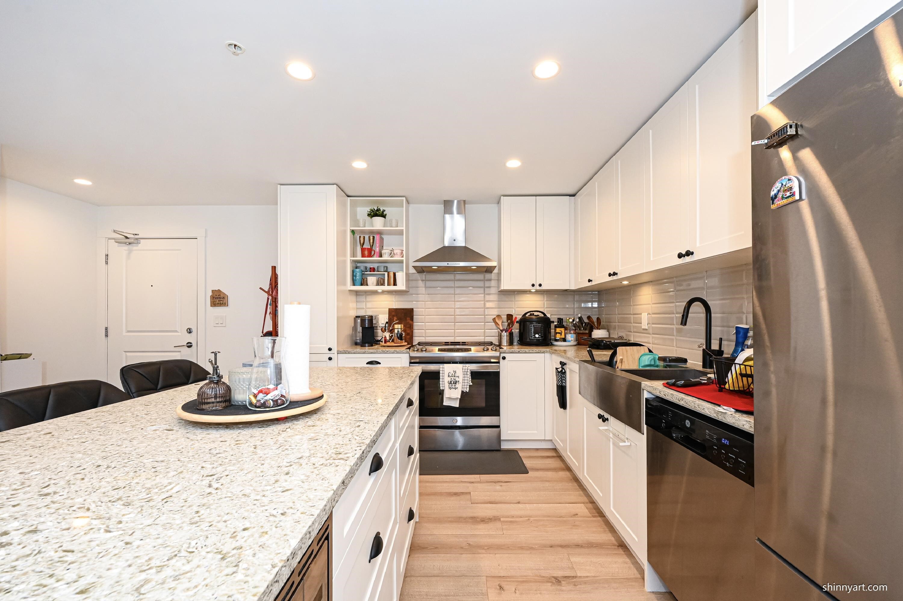 Welcome to this stunning corner unit at Township Commons, featuring 2 bedrooms plus a den and 2 full bathrooms. This spacious and modern unit boasts ample natural light and an open-concept layout, perfect for comfortable living and entertaining. Enjoy the convenience of having two parking spaces and an additional storage locker. Just steps away from City Hall, the Library, and major retailers list Costco, Walmart, Save-On-Foods, and London Drugs. Indulge in the variety of great restaurants in the vicinity, or take a leisurely stroll along the nearby peaceful walking trails. This central location provides the perfect blend of urban convenience and tranquil living. Experience the best of Langley living at Township Commons!