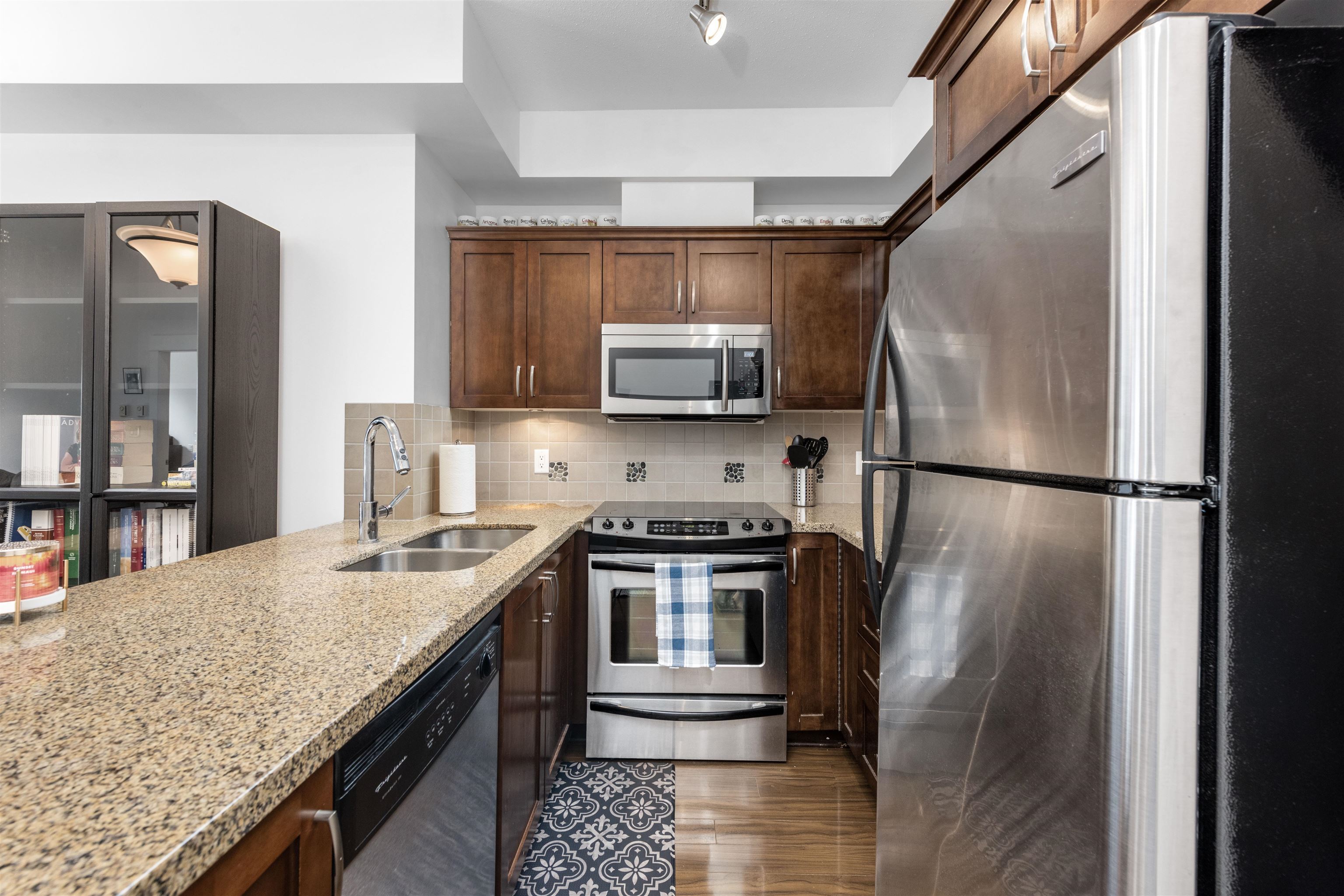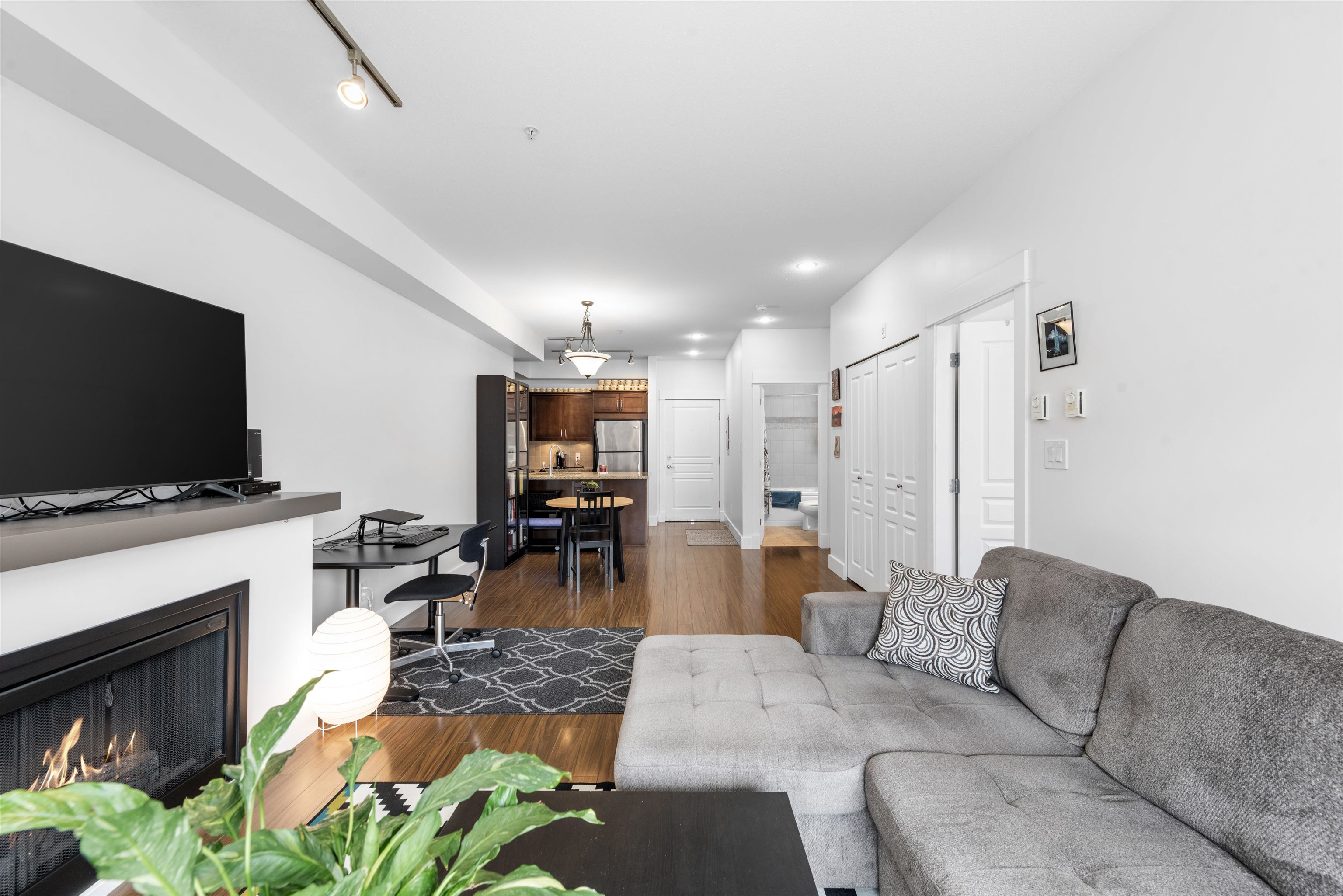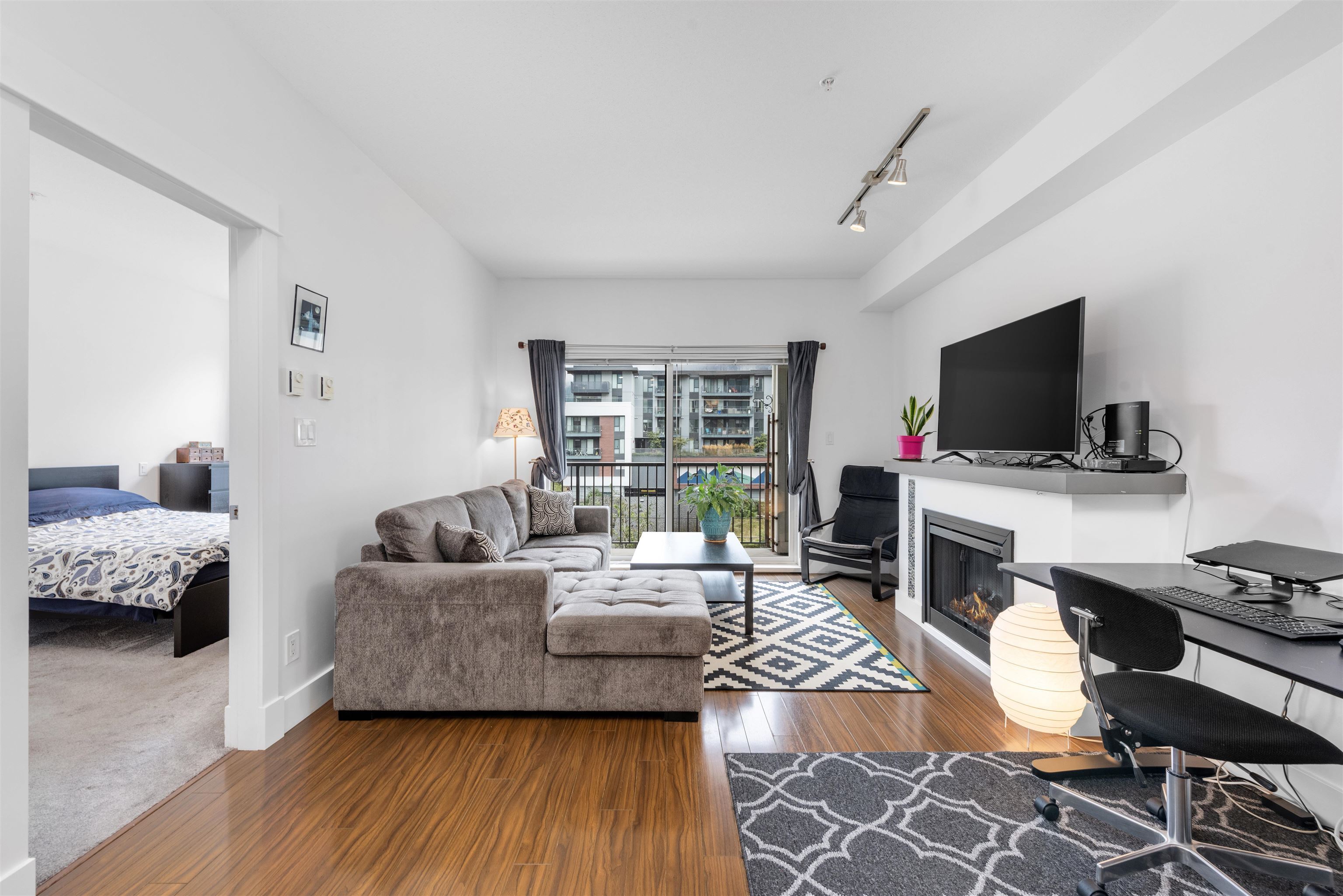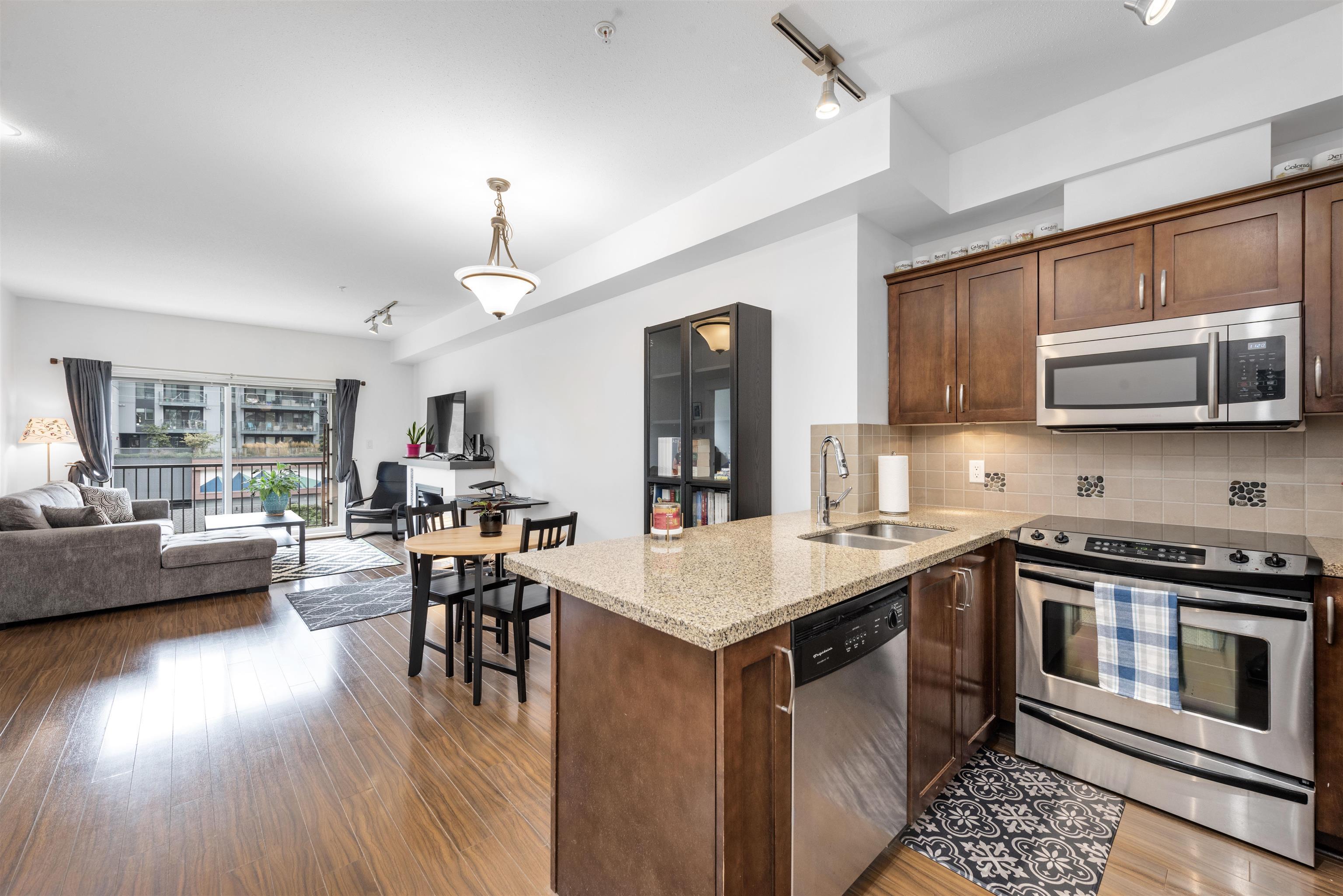 Welcome to the Artisan in downtown Squamish! This 1-bedroom, 1-bath condo boasts a smart, wide floor plan with stunning views of the Chief and Mamquam Glacier. The kitchen features granite counters and stainless steel appliances, while the living area is warmed by a cozy fireplace. Step onto the large balcony to soak in the breathtaking scenery. Enjoy the convenience of an in-unit washer/dryer, extra-large storage on the same floor, and secure parking. Just steps from shops, restaurants, and outdoor adventures, this condo offers the perfect blend of comfort and nature in a prime location!