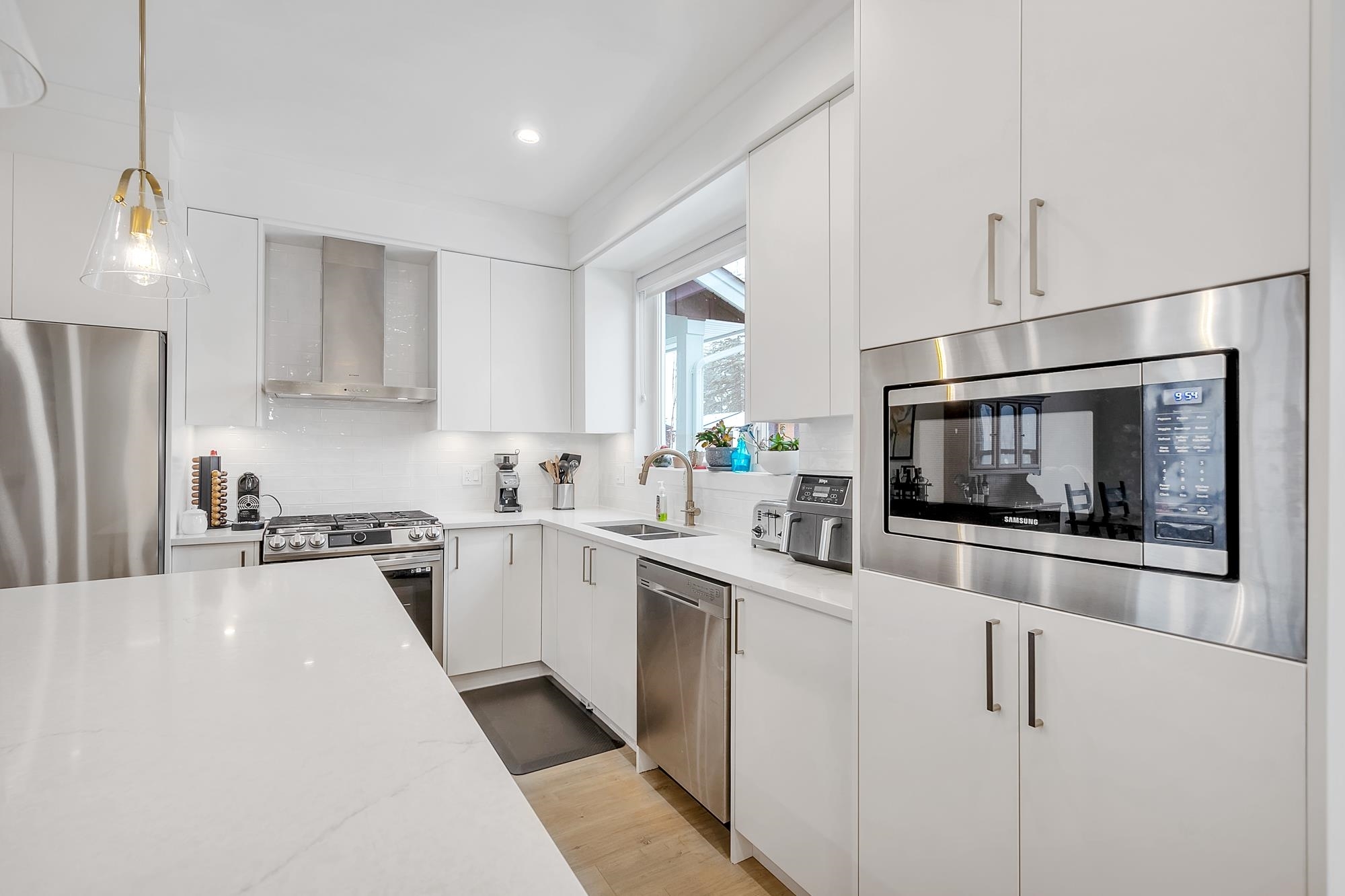 2024 built home with 90% of 2-5-10 year Warranty and no GST! The best positioned unit available in Headwater; nestled between Tynehead and Surrey Bend Regional Parks with the convenience of quick access to HWY 1 and HWY 15 for commuters. The B1 floorplan is perfect for entertaining; with just under 700 sqft of open concept living and 9' ceilings on the main floor. The kitchen features; Samsung stainless steel appliances incl gas range, oversized island with room for 4 at the breakfast bar plus a balcony right off the kitchen for grilling. All 3 bedrooms, 2 full baths and full-sized laundry are upstairs including the primary suite with a walk-in closet, large ensuite with double sinks and treed view. Also; Air-conditioning, Central Vac, fenced yard and double car garage. Open Sat/Sun 2-4pm.2024 built home with 90% of 2-5-10 year Warranty and no GST! The best positioned unit available in Headwater; nestled between Tynehead and Surrey Bend Regional Parks with the convenience of quick access to HWY 1 and HWY 15 for commuters. The B1 floorplan is perfect for entertaining; with just under 700 sqft of open concept living and 9' ceilings on the main floor. The kitchen features; Samsung stainless steel appliances incl gas range, oversized island with room for 4 at the breakfast bar plus a balcony right off the kitchen for grilling. All 3 bedrooms, 2 full baths and full-sized laundry are upstairs including the primary suite with a walk-in closet, large ensuite with double sinks and treed view. Also; Air-conditioning, Central Vac, fenced yard and double car garage. Open Sat/Sun 2-4pm.