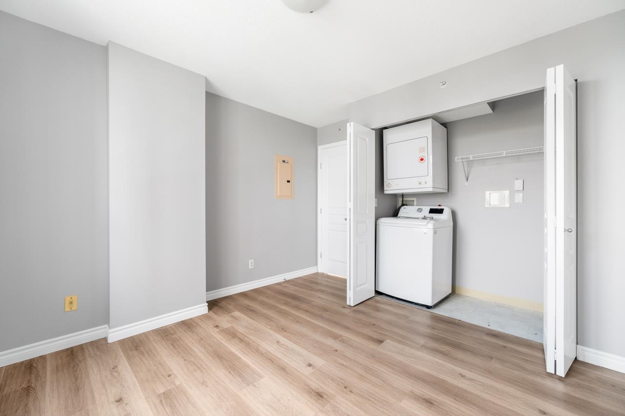Welcome to this 17-storey concrete tower in the heart of Collingwood Village with all important amenities at a short walking distance: Joyce Skytrain Station, major bus lines, Shopping and parks, easy access to Metrotown and DT. 1 Bedroom + Den with fresh paint, in suite laundry and laminate flooring. Clean & very bright NE corner unit ideal for first time buyer or investors seeking high returns. Easy to take care of and ready to move in. Building is well maintained and located centrally to everything. 1 parking 1 locker.