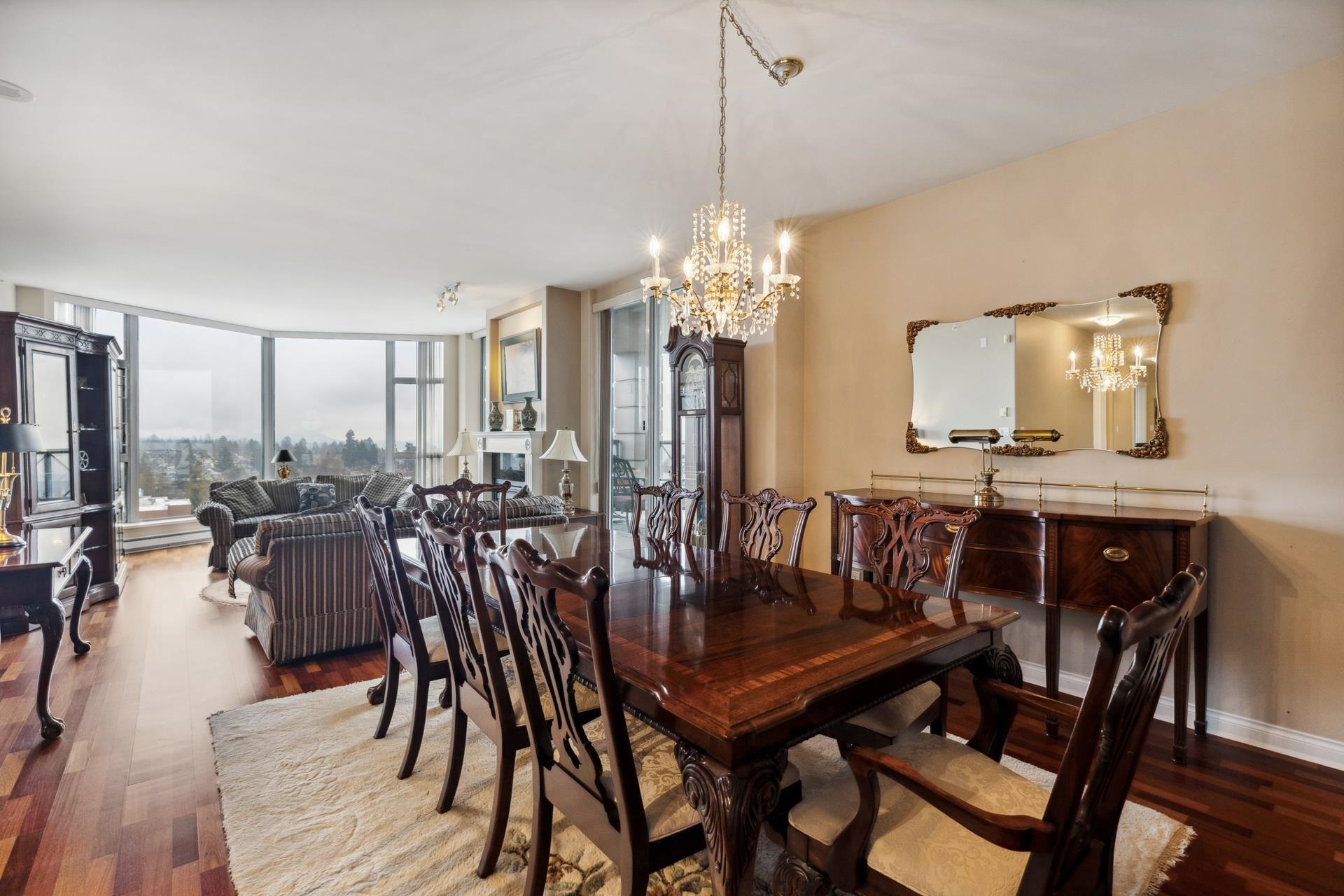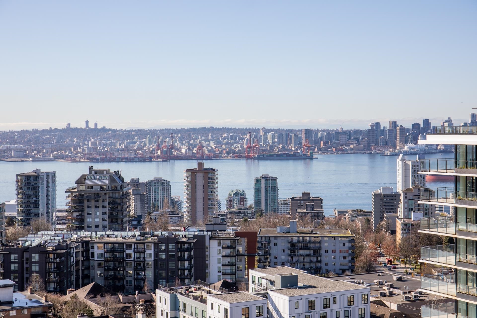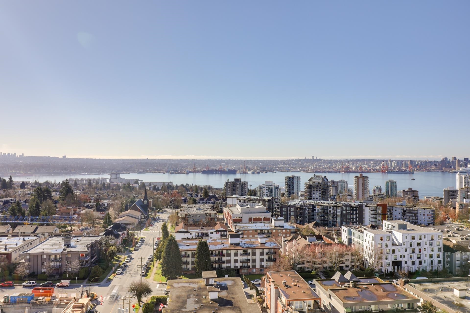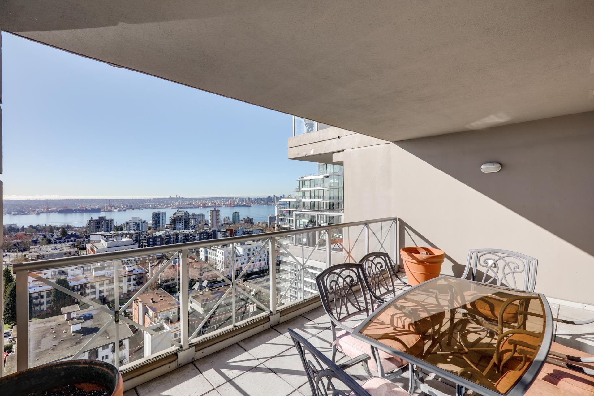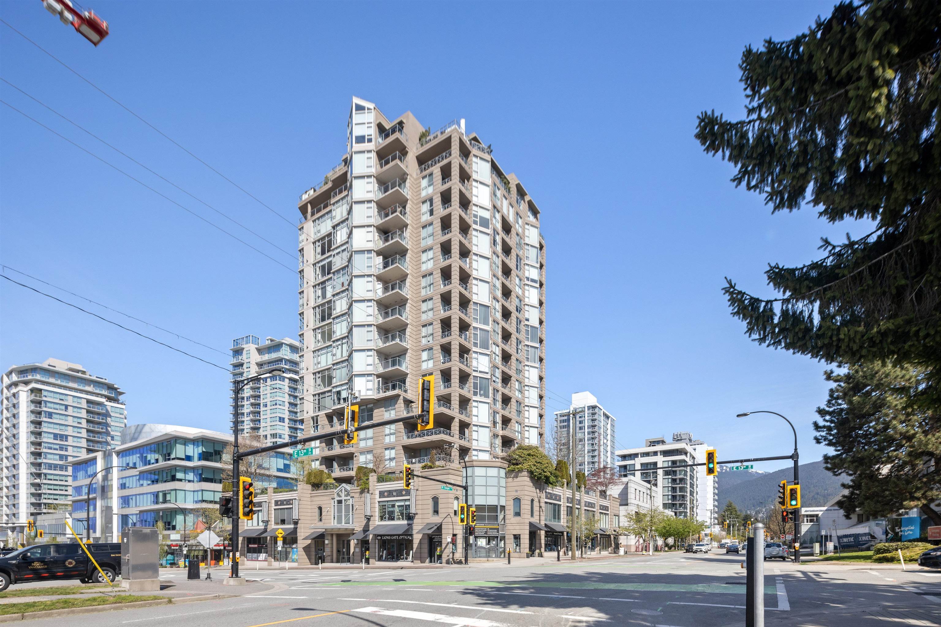 A rare opportunity to own a spacious sub-penthouse in the heart of Central Lonsdale! This house-sized 2-bed, 2-bath suite offers nearly 1,400 sq/ft with 9' ceilings, floor-to-ceiling windows, and breathtaking views of the North Shore, Burnaby skyline, and inner harbor. The open living/dining area is perfect for entertaining, featuring a gas fireplace and 200 sq/ft covered balcony. The partially open galley kitchen includes bar seating, sleek cabinetry, and granite counters. The expansive primary bedroom has three closets and a 5-piece ensuite. A large second bedroom, in-suite laundry, two parking stalls, and a storage locker complete the home. 'The Grande' offers a weight room, lounge, workshop, and caretaker. Unbeatable location--steps to Whole Foods, restaurants, transit & more!A rare opportunity to own a spacious sub-penthouse in the heart of Central Lonsdale! This house-sized 2-bed, 2-bath suite offers nearly 1,400 sq/ft with 9' ceilings, floor-to-ceiling windows, and breathtaking views of the North Shore, Burnaby skyline, and inner harbor. The open living/dining area is perfect for entertaining, featuring a gas fireplace and 200 sq/ft covered balcony. The partially open galley kitchen includes bar seating, sleek cabinetry, and granite counters. The expansive primary bedroom has three closets and a 5-piece ensuite. A large second bedroom, in-suite laundry, two parking stalls, and a storage locker complete the home. 'The Grande' offers a weight room, lounge, workshop, and caretaker. Unbeatable location--steps to Whole Foods, restaurants, transit & more!