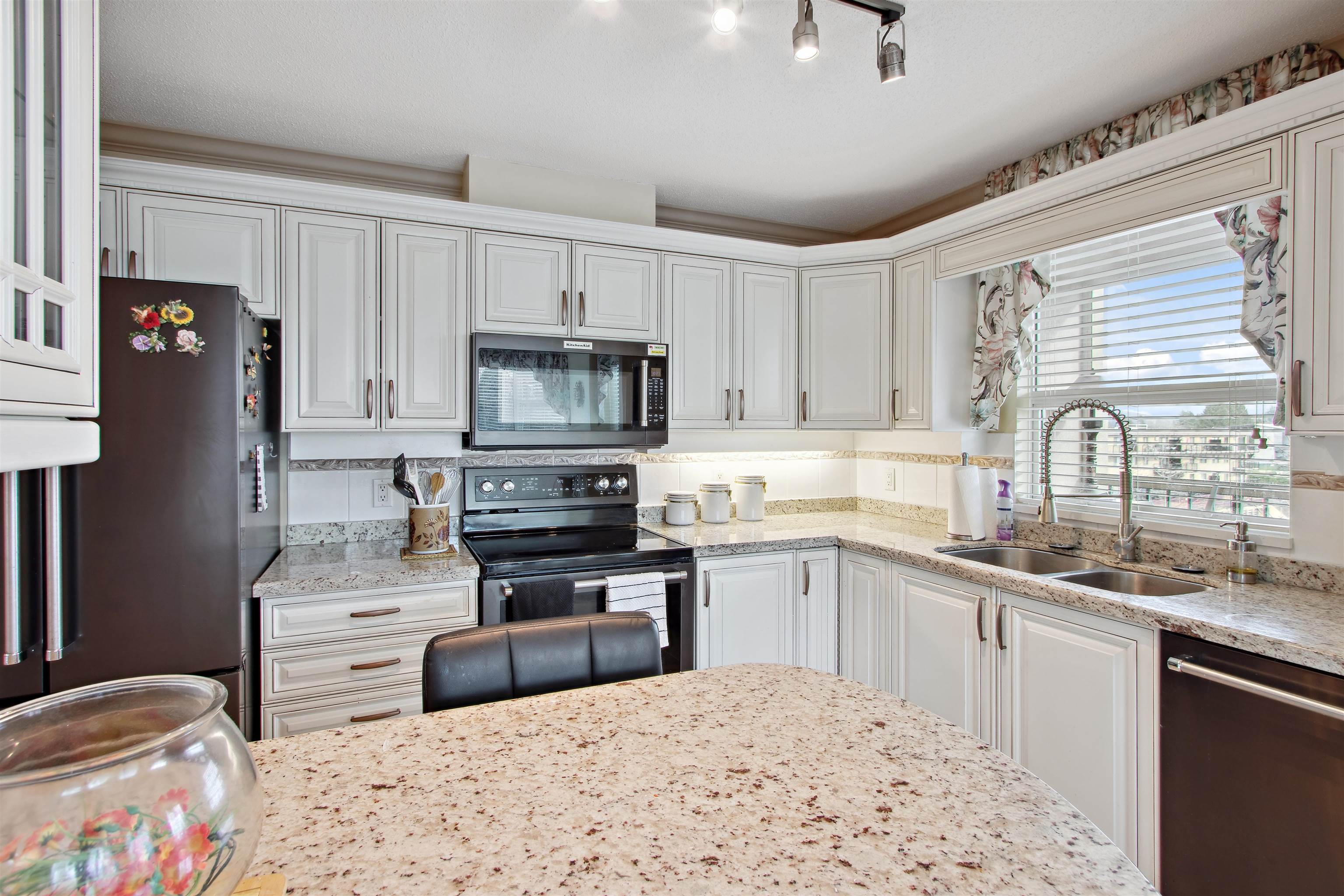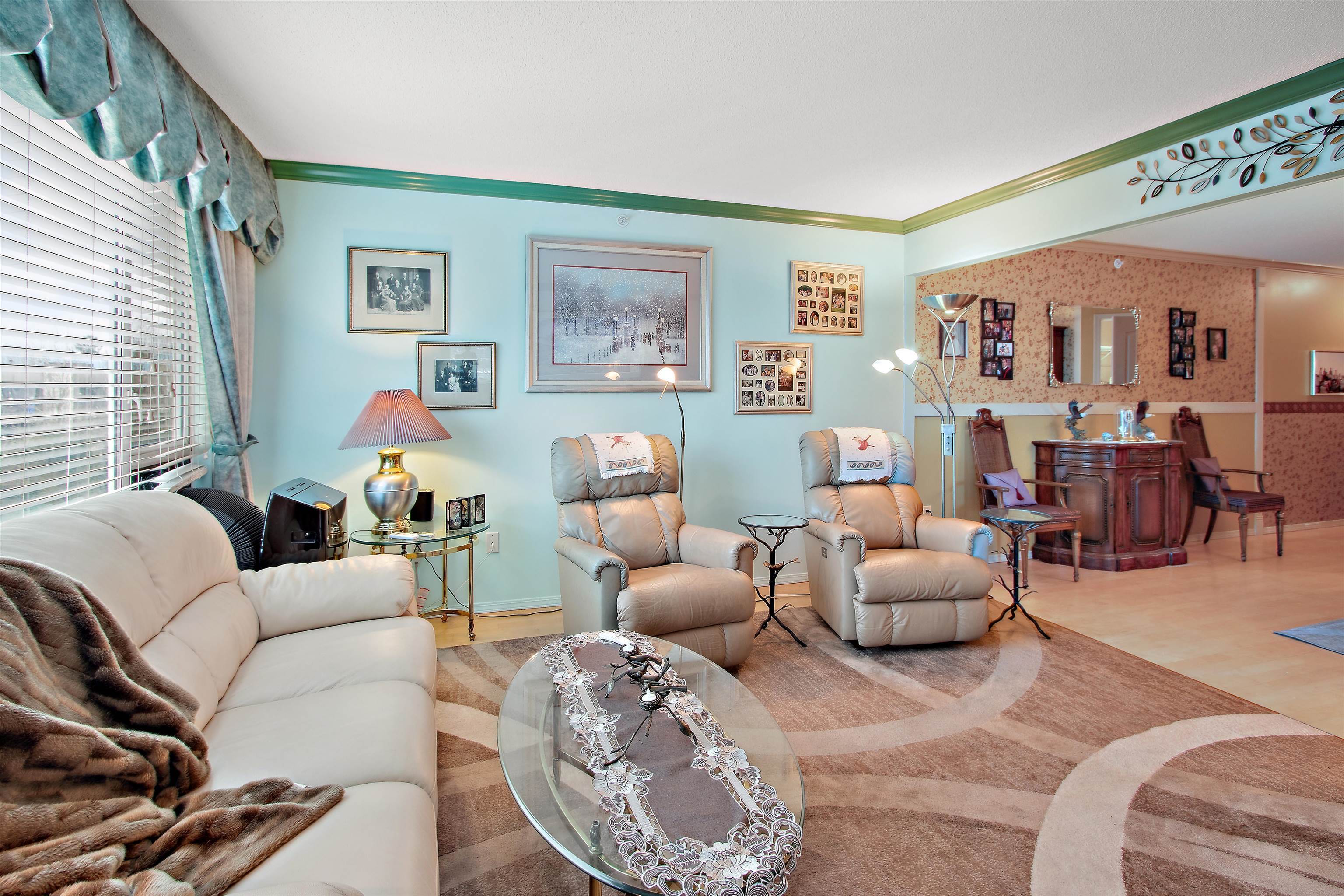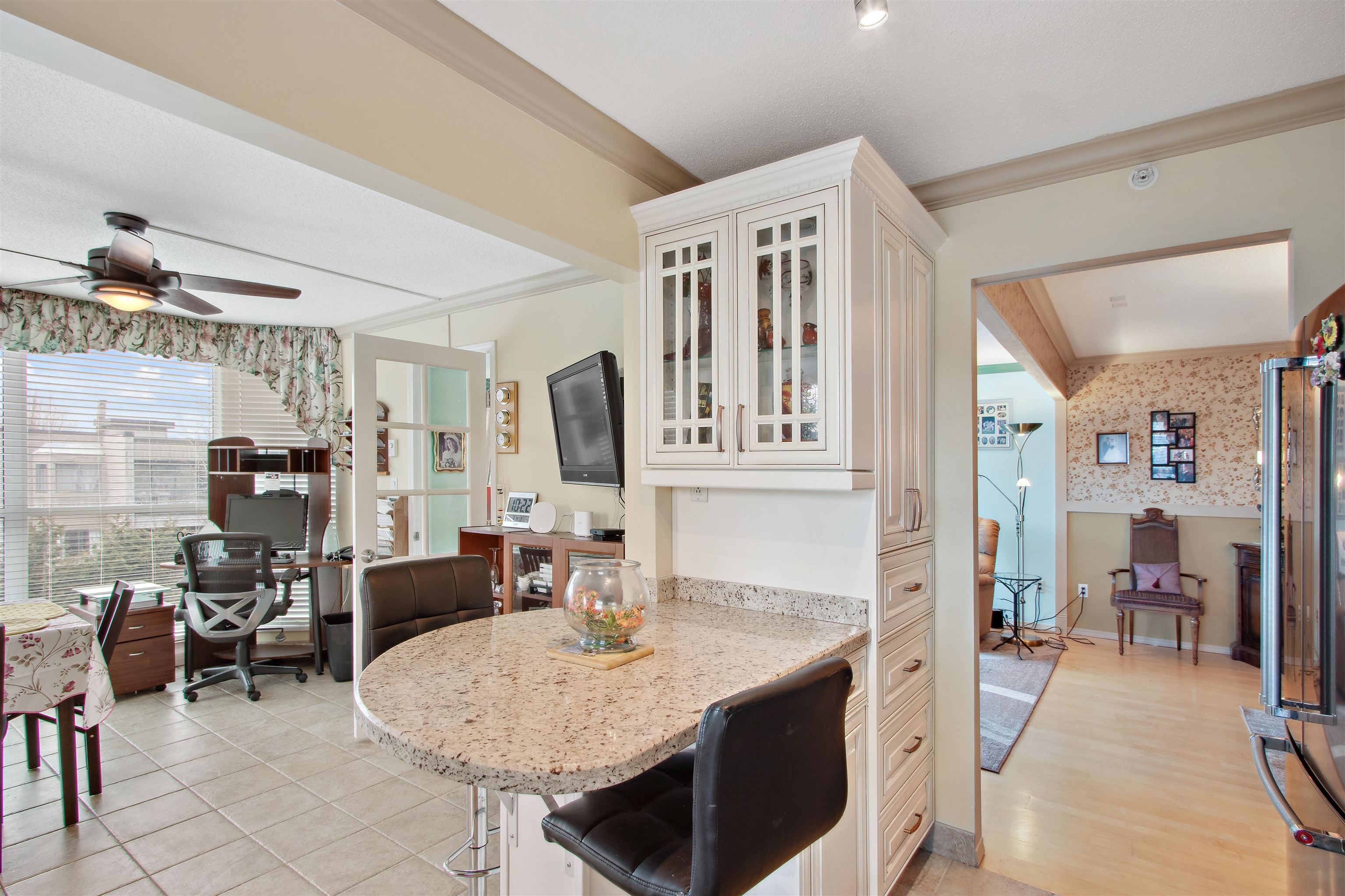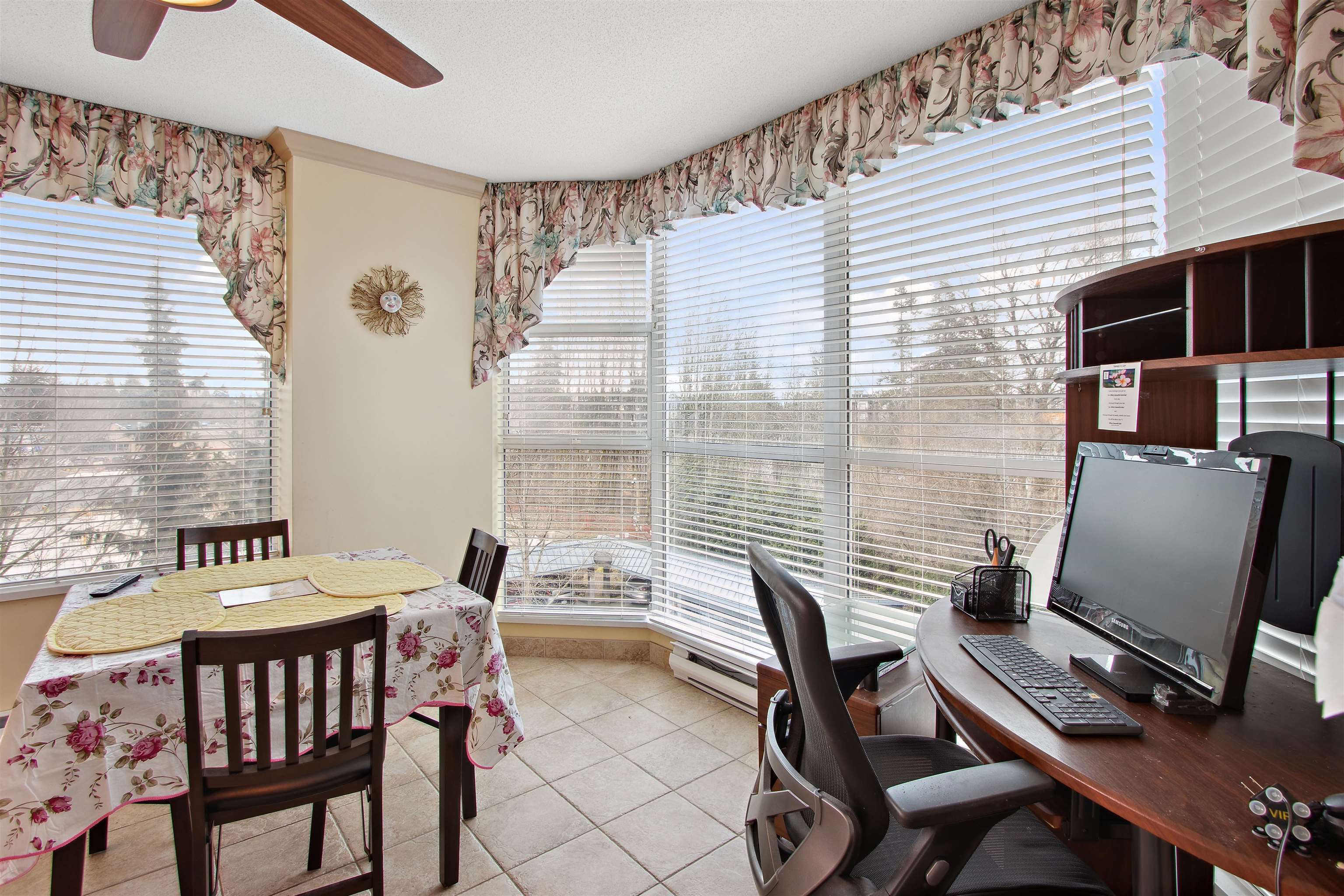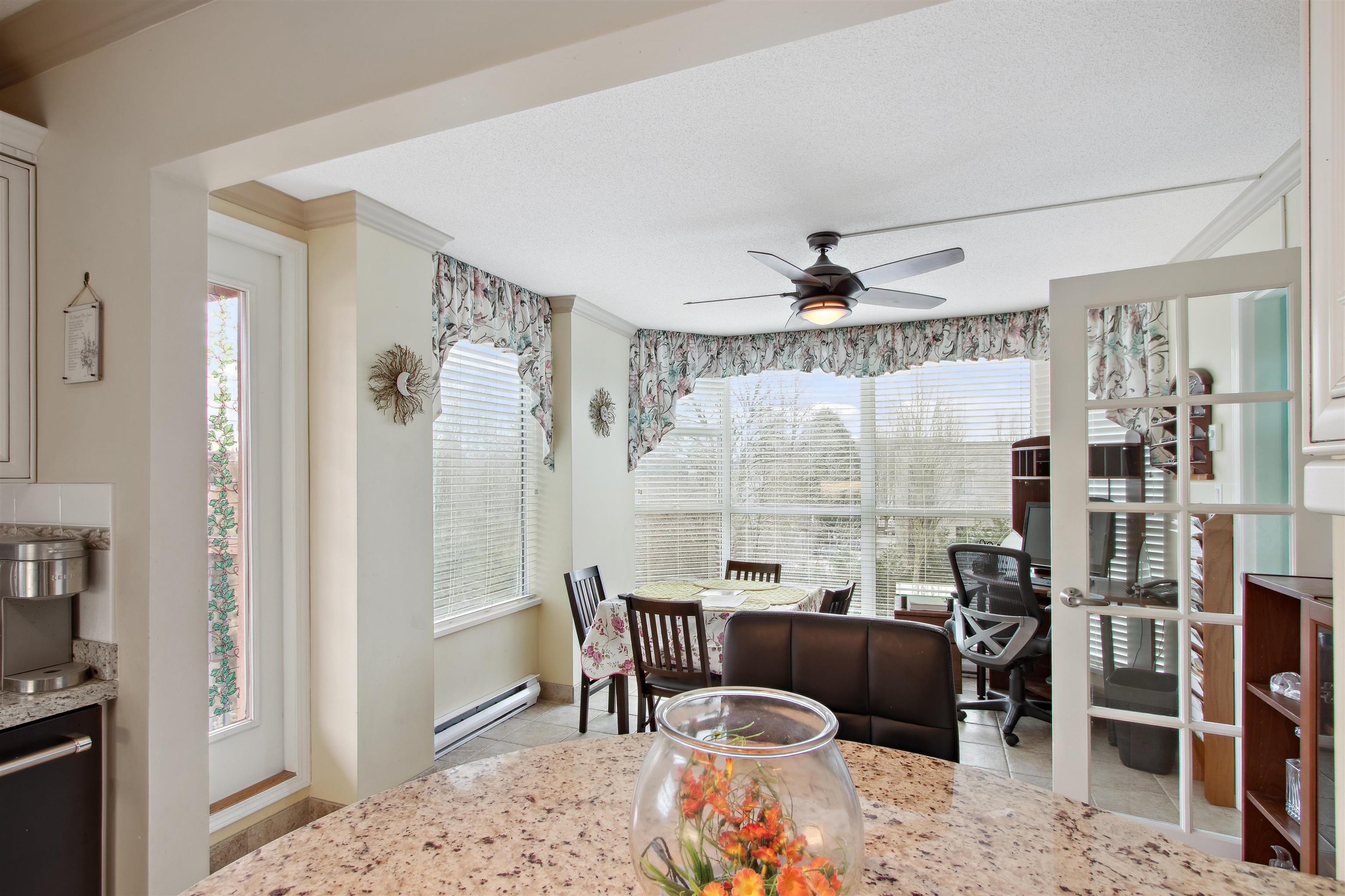 Welcome to PANORAMA. Premier adult age 55+ community featuring concrete construction, a variety of available services and supports, superb management and maintenance history and convenient central location. This South East corner unit enjoys an abundance of natural light through all the extra windows and the large 1325 sqft plan is open with generous room sizes. Kitchen beautifully renovated and open to nook with a view. Engineered hardwood floors in Living & Dining area + upgraded carpets in large bedrooms. Both full baths renovated and finishing touches like appliances, blinds & window coverings & fixtures. Even a built-in Murphy bed. Excellent in suite storage too! This home shows and feels fantastic inside. Fully decorated and clean as a whistle! Available services here are unrivaled.Welcome to PANORAMA. Premier adult age 55+ community featuring concrete construction, a variety of available services and supports, superb management and maintenance history and convenient central location. This South East corner unit enjoys an abundance of natural light through all the extra windows and the large 1325 sqft plan is open with generous room sizes. Kitchen beautifully renovated and open to nook with a view. Engineered hardwood floors in Living & Dining area + upgraded carpets in large bedrooms. Both full baths renovated and finishing touches like appliances, blinds & window coverings & fixtures. Even a built-in Murphy bed. Excellent in suite storage too! This home shows and feels fantastic inside. Fully decorated and clean as a whistle! Available services here are unrivaled.