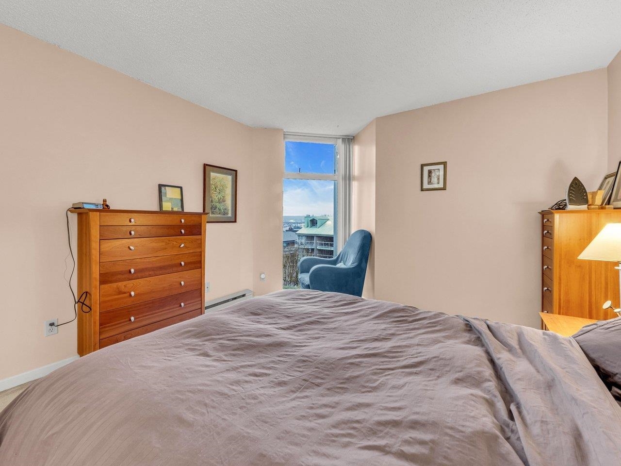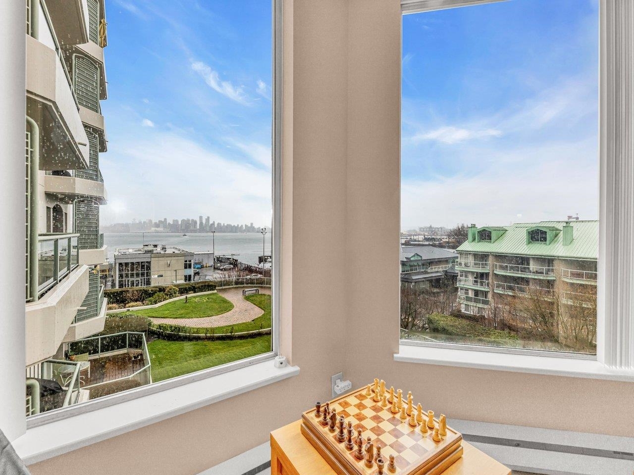 Welcome to North Vancouver's premier waterfront residence! This spacious 2-bedroom, 2-bathroom concrete building offers 1071 sqft of stylish living with breathtaking water and city views of downtown Vancouver. Chadwick Court is a meticulously maintained building with recent upgrades, including new exterior painting and sealing, re-piping, roof updates, and refreshed common areas. Residents enjoy top-notch amenities such as a fitness center, social room, library, bike room, and EV charging stations. This prime location is just steps away from the SeaBus, Lonsdale Quay Market, and Waterfront Park, offering convenience and a vibrant waterfront lifestyle. One parking spot and a storage locker are included. Please note that this building does not allow pets.