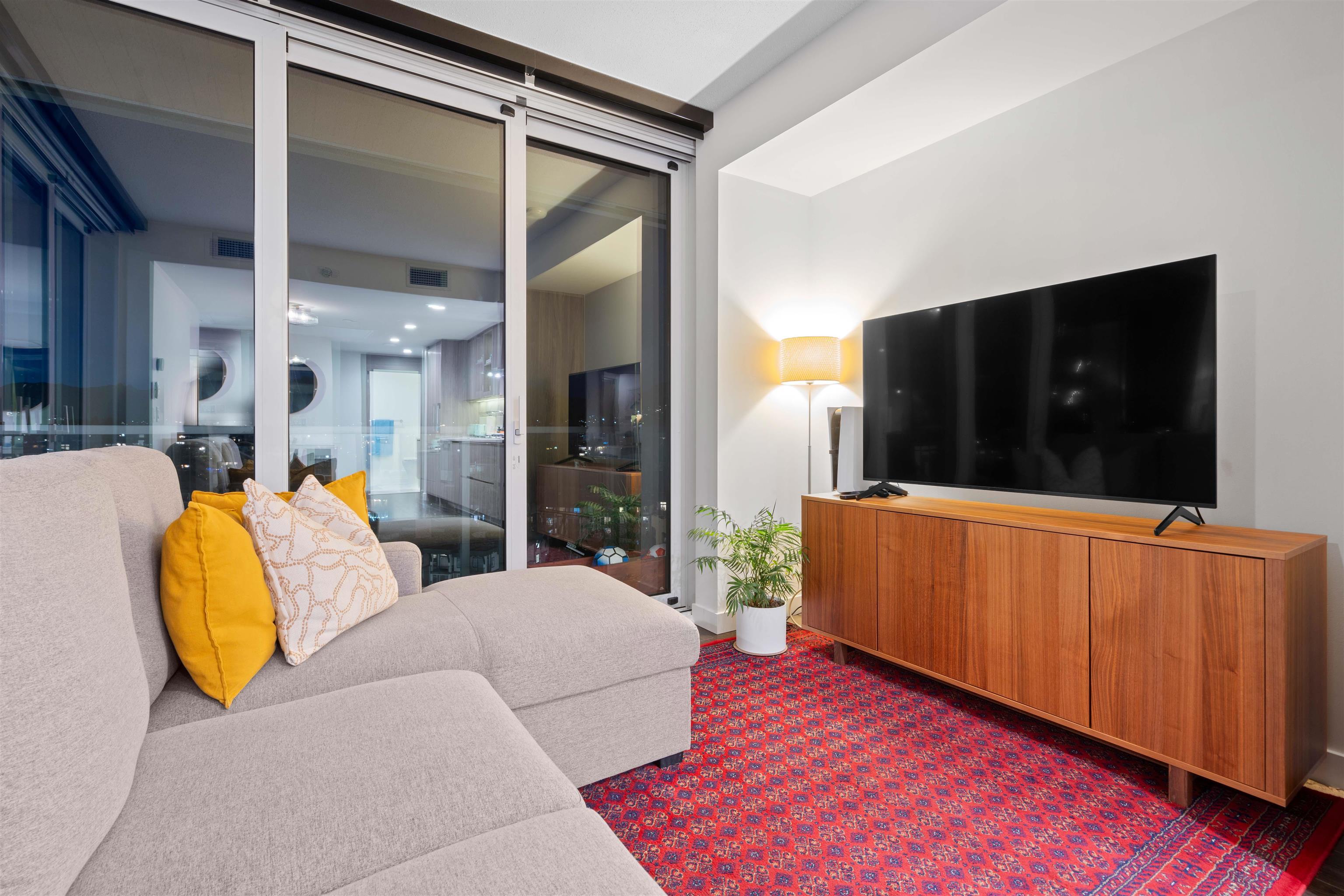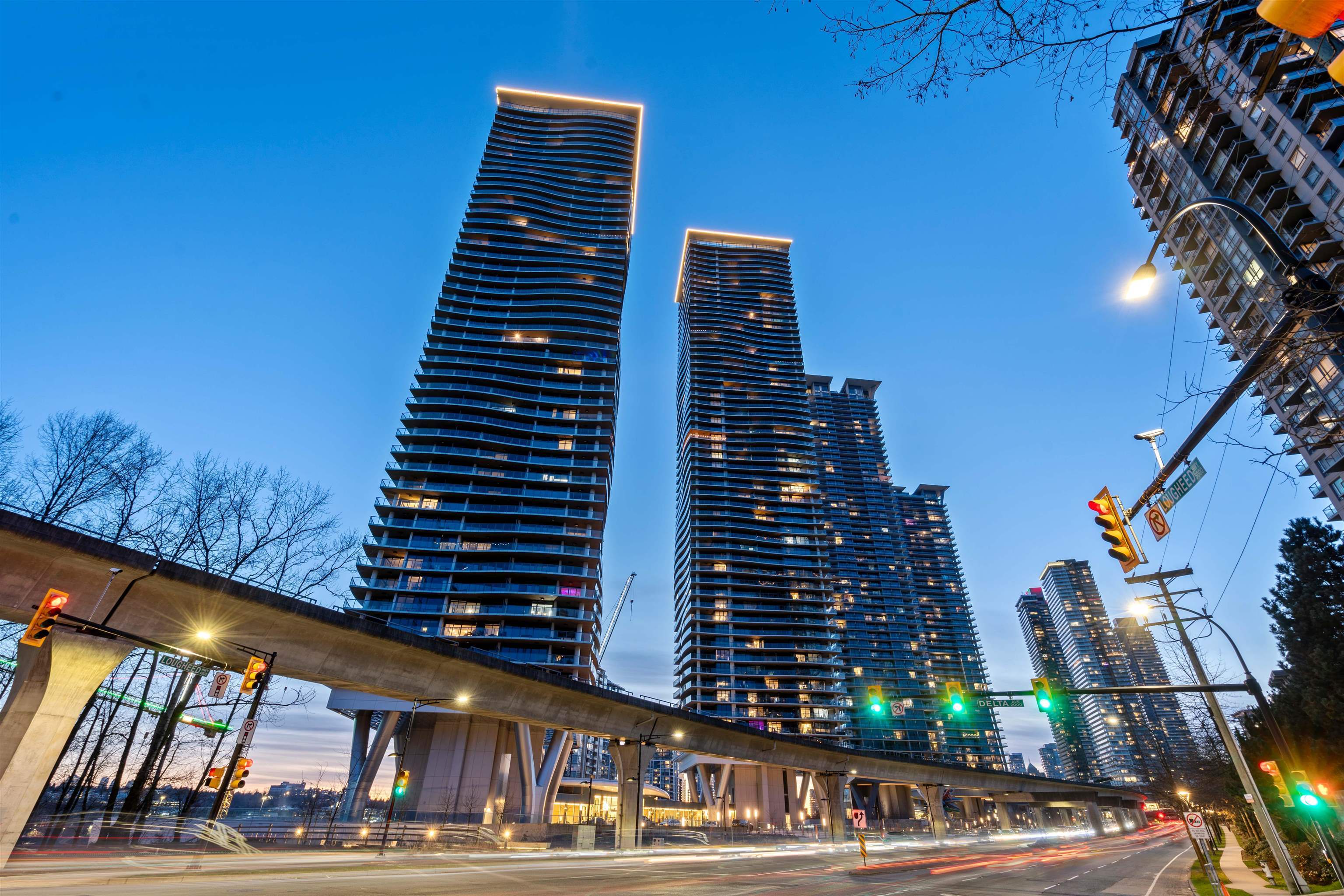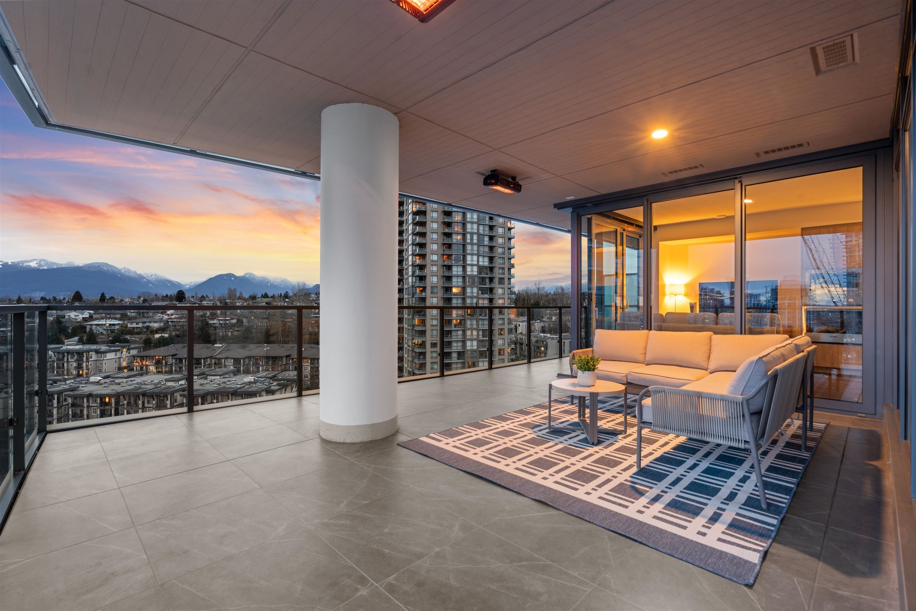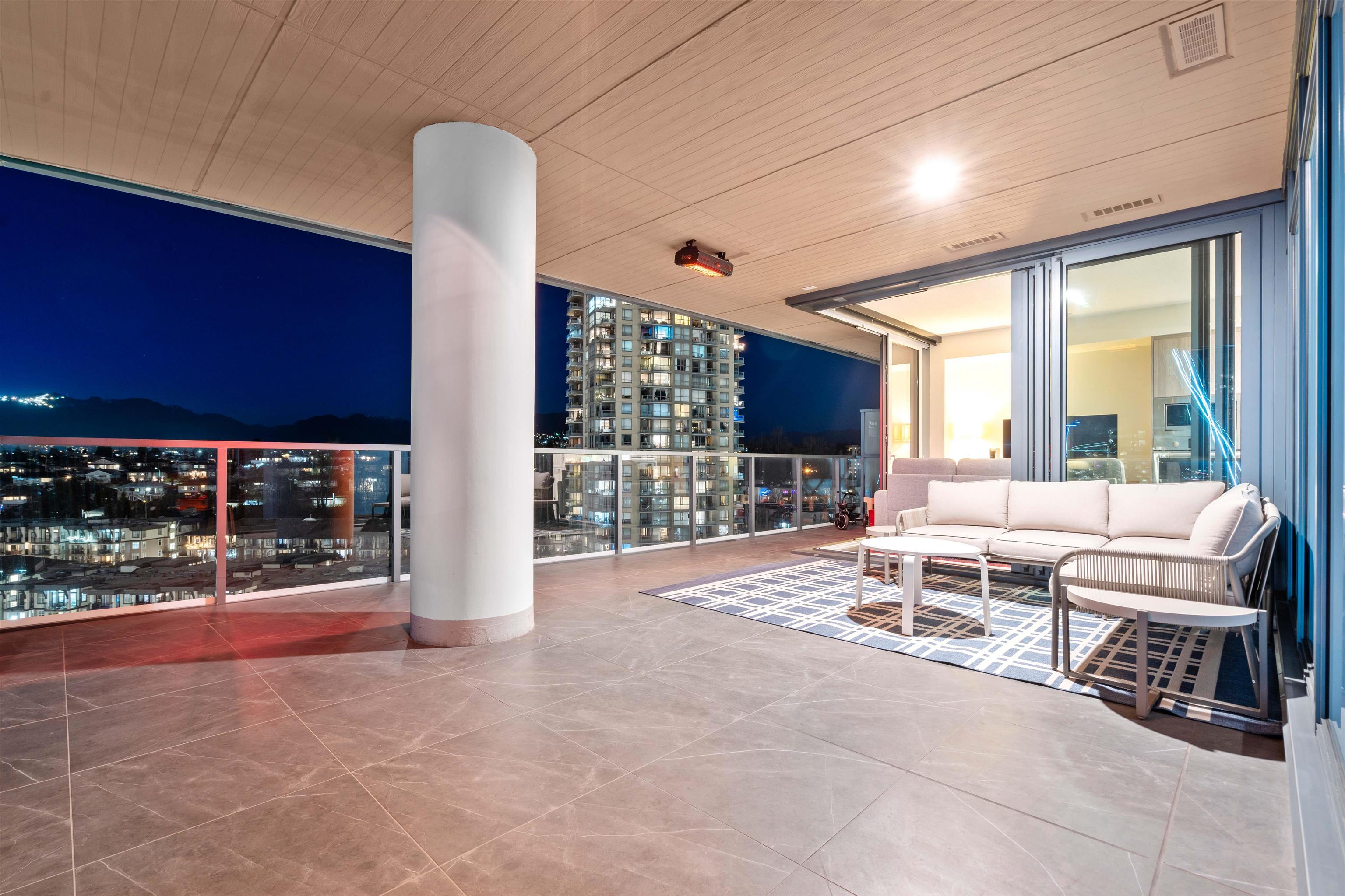 Welcome to this luxurious NW corner unit with stunning city and mountain views at Concord Brentwood Hillside East! Built by Concord Pacific, this 2-bed, 2-bath unit includes high-end integrated Bosch appliances, floor-to-ceiling windows, wide plank laminate flooring, central A/C, and closet organizers. Enjoy seamless indoor/outdoor living with an oversized 525 sq ft covered wrap around balcony with a ceiling heater. Both bedrooms feature custom blackout blinds valued at $2,500/room. Amenities include 24/7 Concierge, fitness centre, car wash, party room, games room, pet room, multi-purpose room, and more. Steps away from Skytrain and the Amazing Brentwood shopping Center. 1 parking and 1 storage included, balance of 2-5-10 home warranty.Welcome to this luxurious NW corner unit with stunning city and mountain views at Concord Brentwood Hillside East! Built by Concord Pacific, this 2-bed, 2-bath unit includes high-end integrated Bosch appliances, floor-to-ceiling windows, wide plank laminate flooring, central A/C, and closet organizers. Enjoy seamless indoor/outdoor living with an oversized 525 sq ft covered wrap around balcony with a ceiling heater. Both bedrooms feature custom blackout blinds valued at $2,500/room. Amenities include 24/7 Concierge, fitness centre, car wash, party room, games room, pet room, multi-purpose room, and more. Steps away from Skytrain and the Amazing Brentwood shopping Center. 1 parking and 1 storage included, balance of 2-5-10 home warranty.