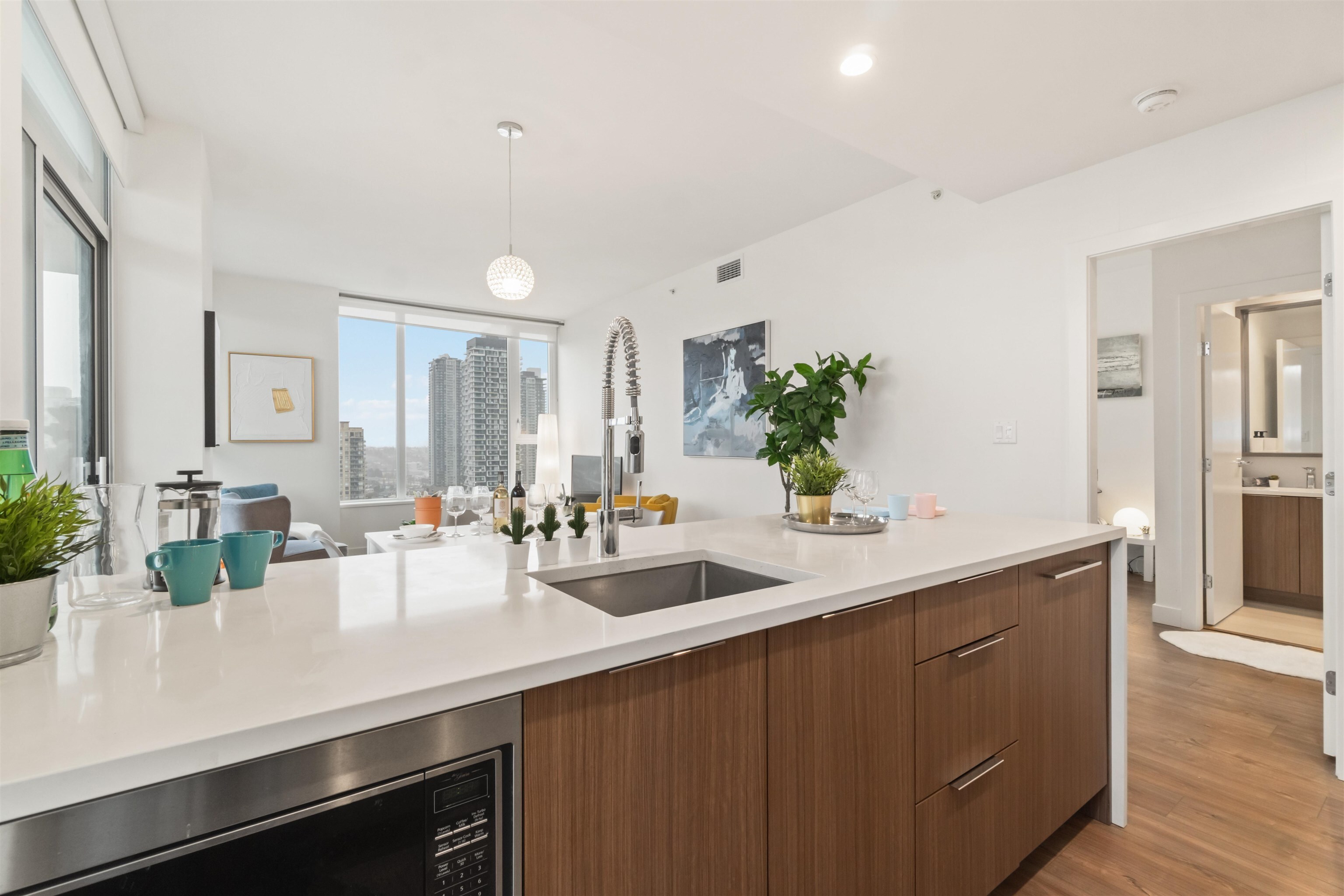 Welcome home to Juneau in Brentwood. Spacious, open-concept interiors designed for enhanced livability. Walnut designer palette, enjoy the comfort of air-conditioning, and sleek, waterfall-style stone countertops. Breathtaking elevated panoramic city views. Collective amenities designed to enrich your dynamic lifestyle. Host friends in the beautiful social lounge with outdoor private landscaped courtyard. Connect and create in the collaborative co-working space. Find yourself amongst nearby shops, restaurants and entertainment in minutes. Bike to Burnaby Lake Park in the morning. Stroll to dinner with friends in the evening. Take the SkyTrain or connecting highways to downtown Vancouver and beyond. Vacant and easy to show. Preview: YouTu.be/89M5zcZfquc Open House: Sat/Sun March 15/16 2-4PM