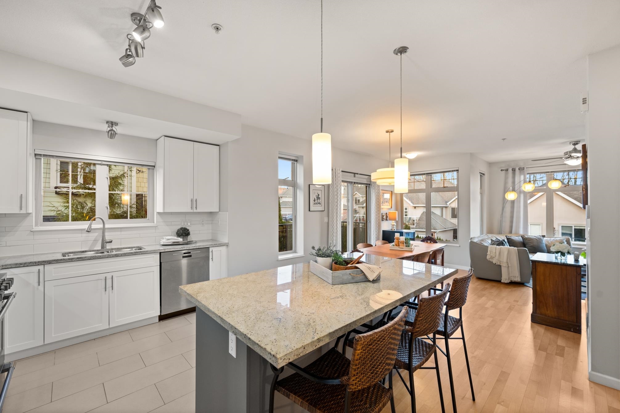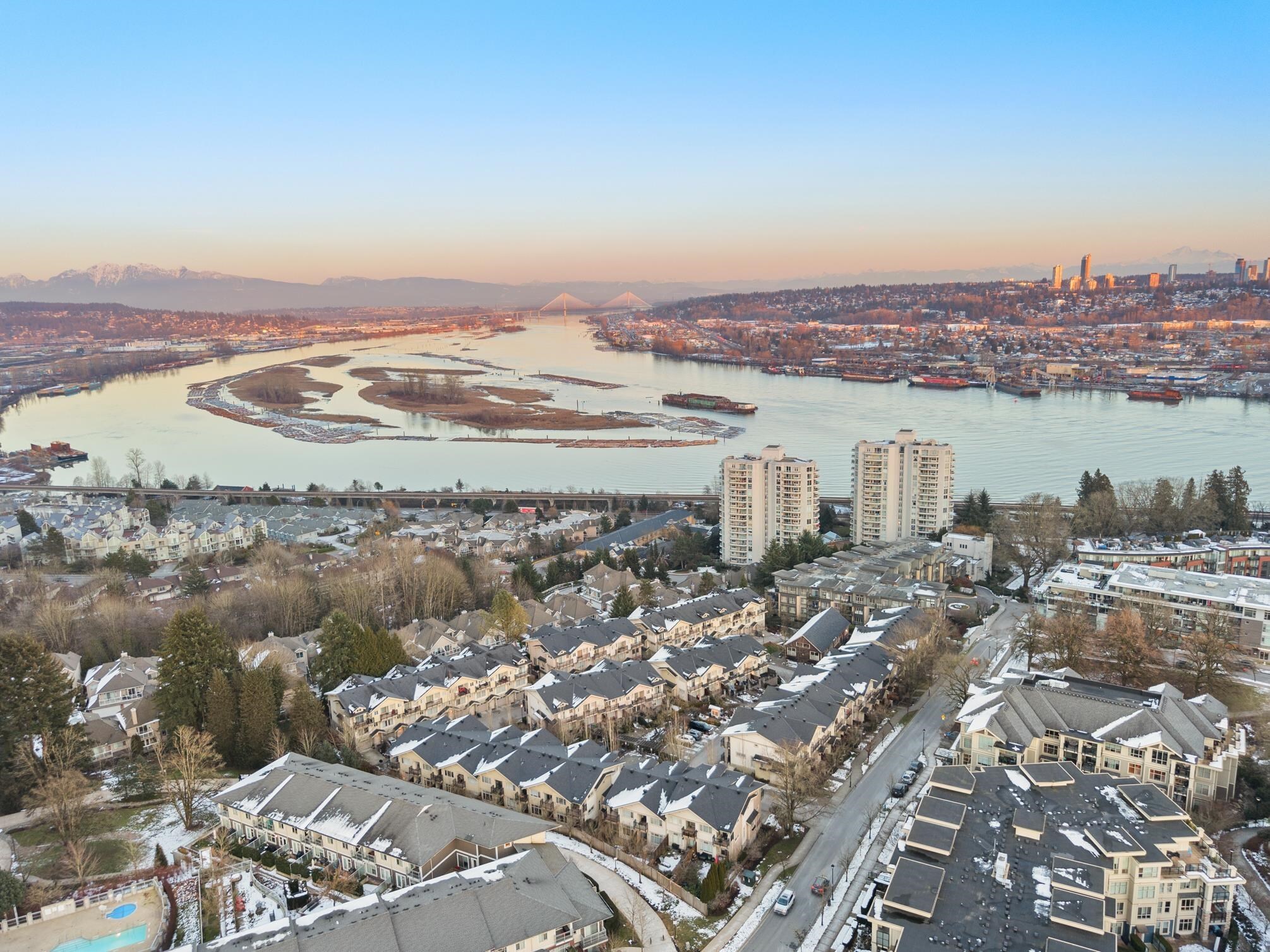 O/H Sun 2-4pm! Award-Winning Master-Planned community featuring an extraordinary 3 BDRM + Den & 2.5 BTHRM END UNIT Townhome! Offering breathtaking views of the Fraser River & mountains. Boasting 1722 sqft of refined living space w/ potential for even more--perfect for growing families! Beautifully renovated gourmet kitchen features over-height ceilings, granite counters, S/S appliances, sit-up island, HW flooring & designer paint. Enjoy the luxury of 3 balconies & a side yard--ideal for BBQs, entertaining & pets. Upstairs you'll find 3 generously sized BDRMS w/ a versatile Den/Office space. Offering resort-style amenities gym, clubhouse, basketball court & media room. Walking distance to Queen's Park, shopping, top-rated schools, transit! Perfect blend of luxury & convenience! 2 Pets OK!Open House on Sun Mar 9th at 2-4pm! Award-Winning Master-Planned community featuring an extraordinary 3 BDRM + Den & 2.5 BTHRM END UNIT Townhome! Offering breathtaking views of the Fraser River & mountains. Boasting 1722 square feet of refined living space w/ potential for even more--perfect for growing families! Beautifully renovated gourmet kitchen features over-height ceilings, granite counters, S/S appliances, sit-up island, HW flooring & designer paint. Enjoy the luxury of 3 balconies & a side yard--ideal for BBQs, entertaining & pets. Upstairs you'll find 3 generously sized BDRMS w/ a versatile Den/Office space. This complex offers resort-style amenities gym, clubhouse, basketball court & media room. Walking distance to Queen's Park, shopping, top-rated schools, transit! Perfect blend of luxury & convenience! 2 Pets OK!