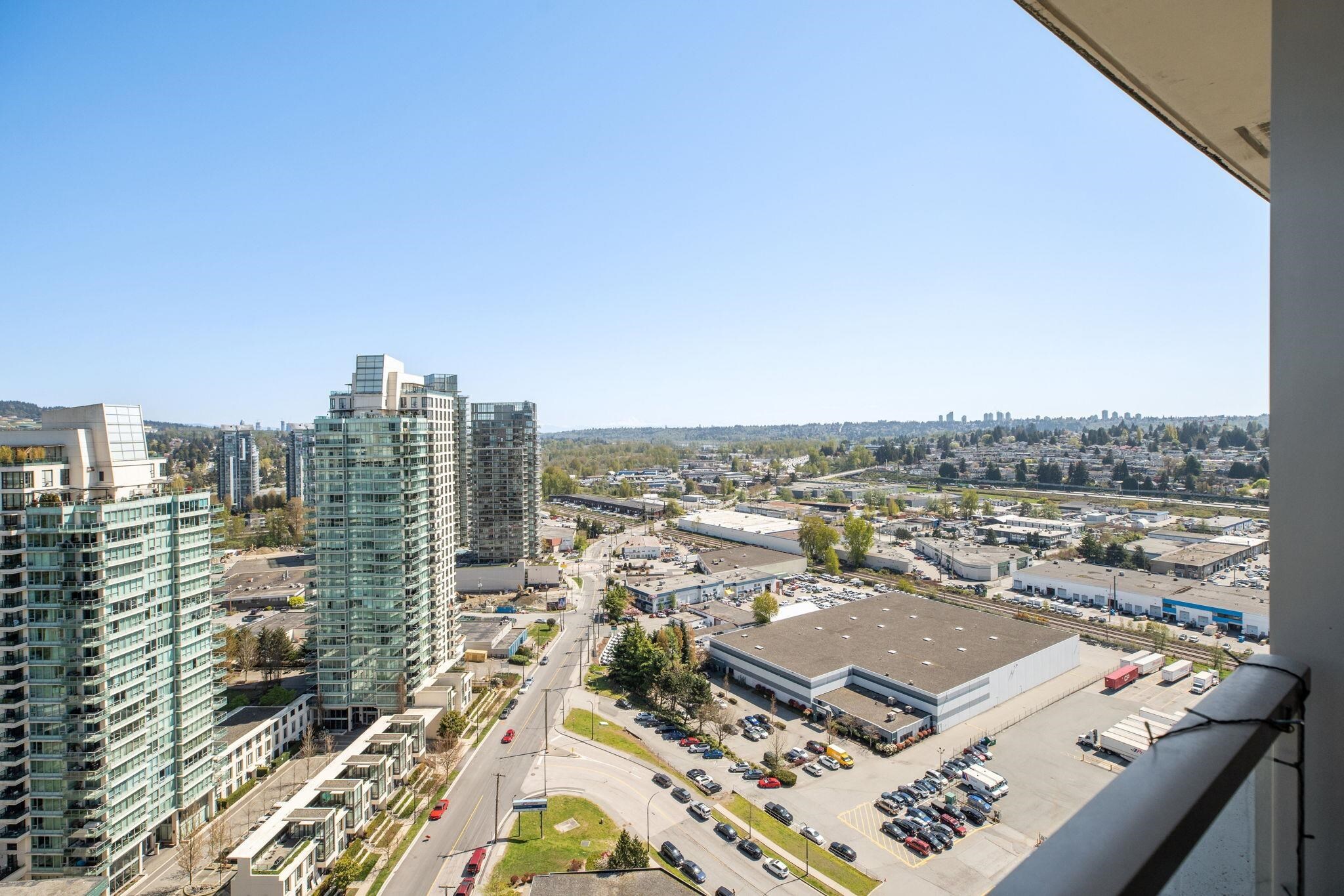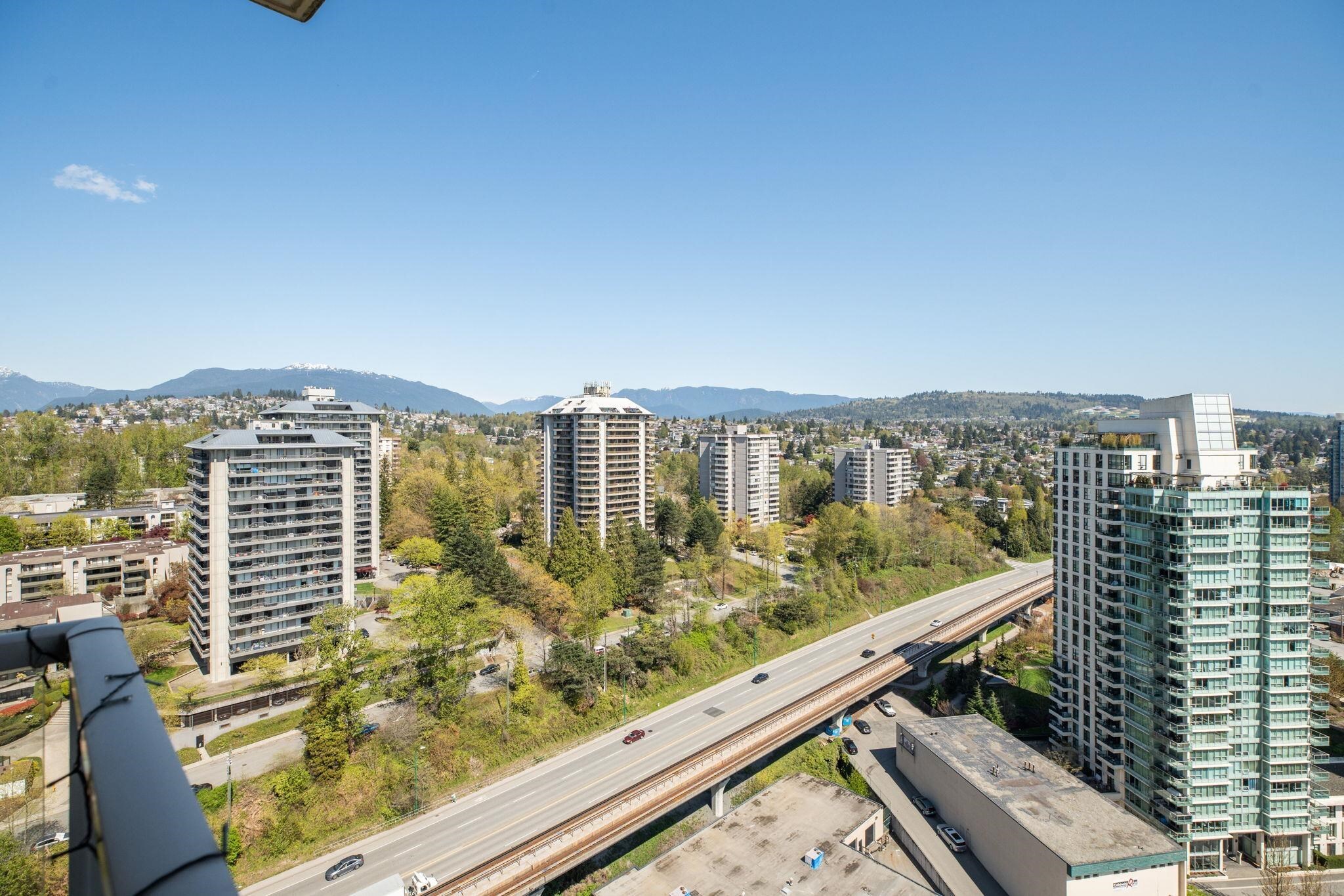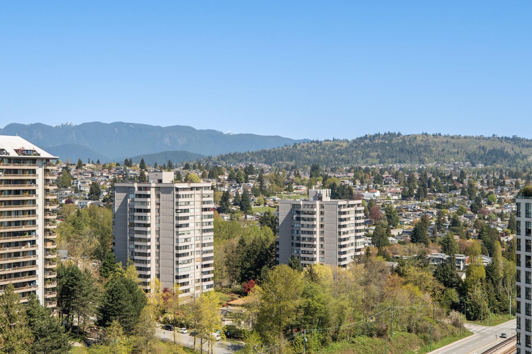 Welcome to Perspectives by Ledmac, nestled in the heart of Brentwood Park! This rarely available 2-bed, 2-bath high-floor corner home offers breathtaking SE views of the mountains & city skyline. Thoughtfully maintained & recently updated, the home features walnut laminate flooring throughout, fresh paint, roller blinds, modern lighting fixtures, & a smooth ceiling finish. The kitchen is equipped with an upgraded gas range/oven, refrigerator, & dishwasher for a contemporary touch. Located in a prime location, close to Brentwood Park Elementary, daycare, The Amazing Brentwood Mall, SkyTrain, Whole Foods, banks, & restaurants. Enjoy excellent amenities, including concierge, gym, party room, & games area. This move-in ready home is waiting for you - schedule your private showing today!