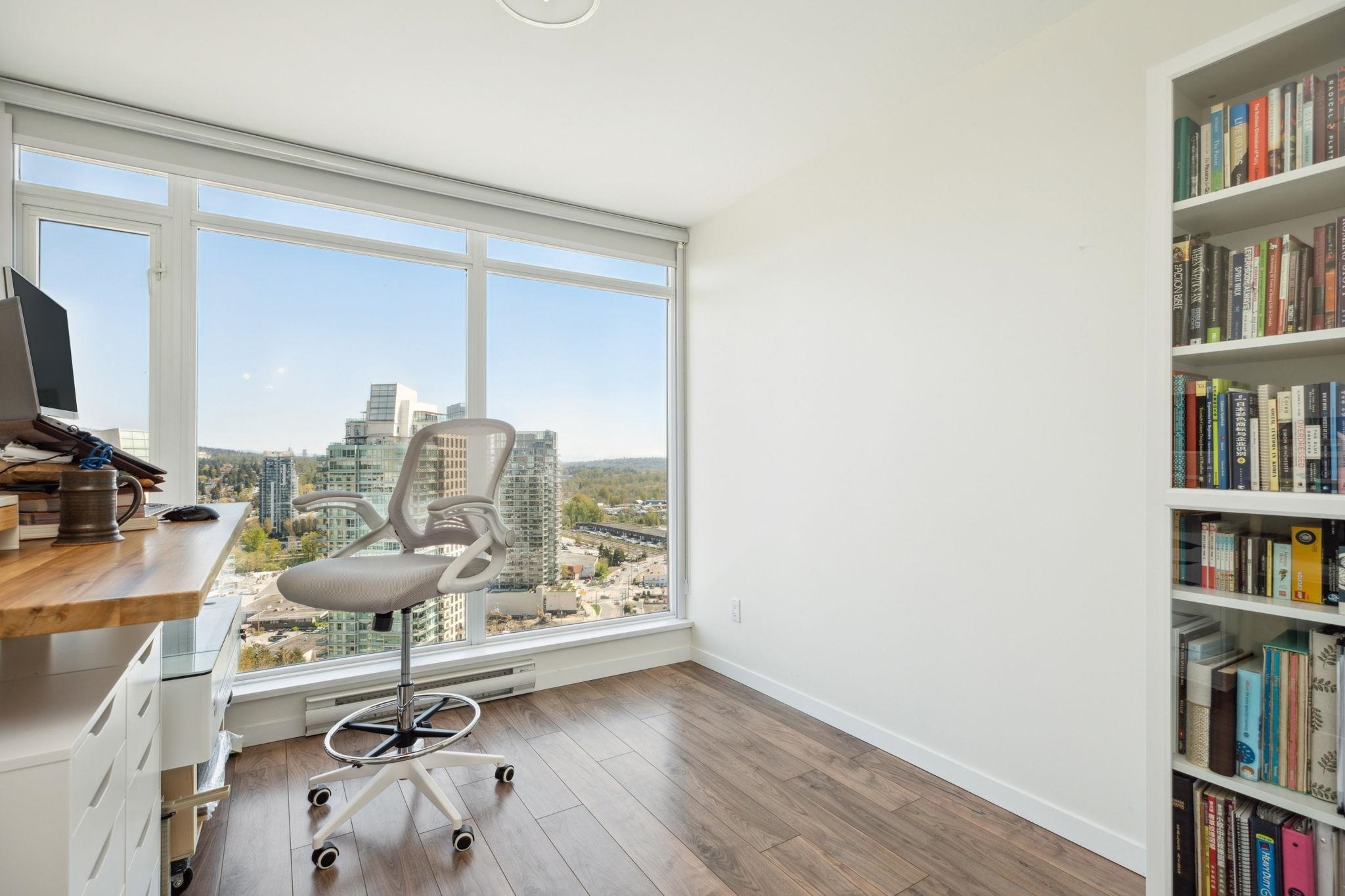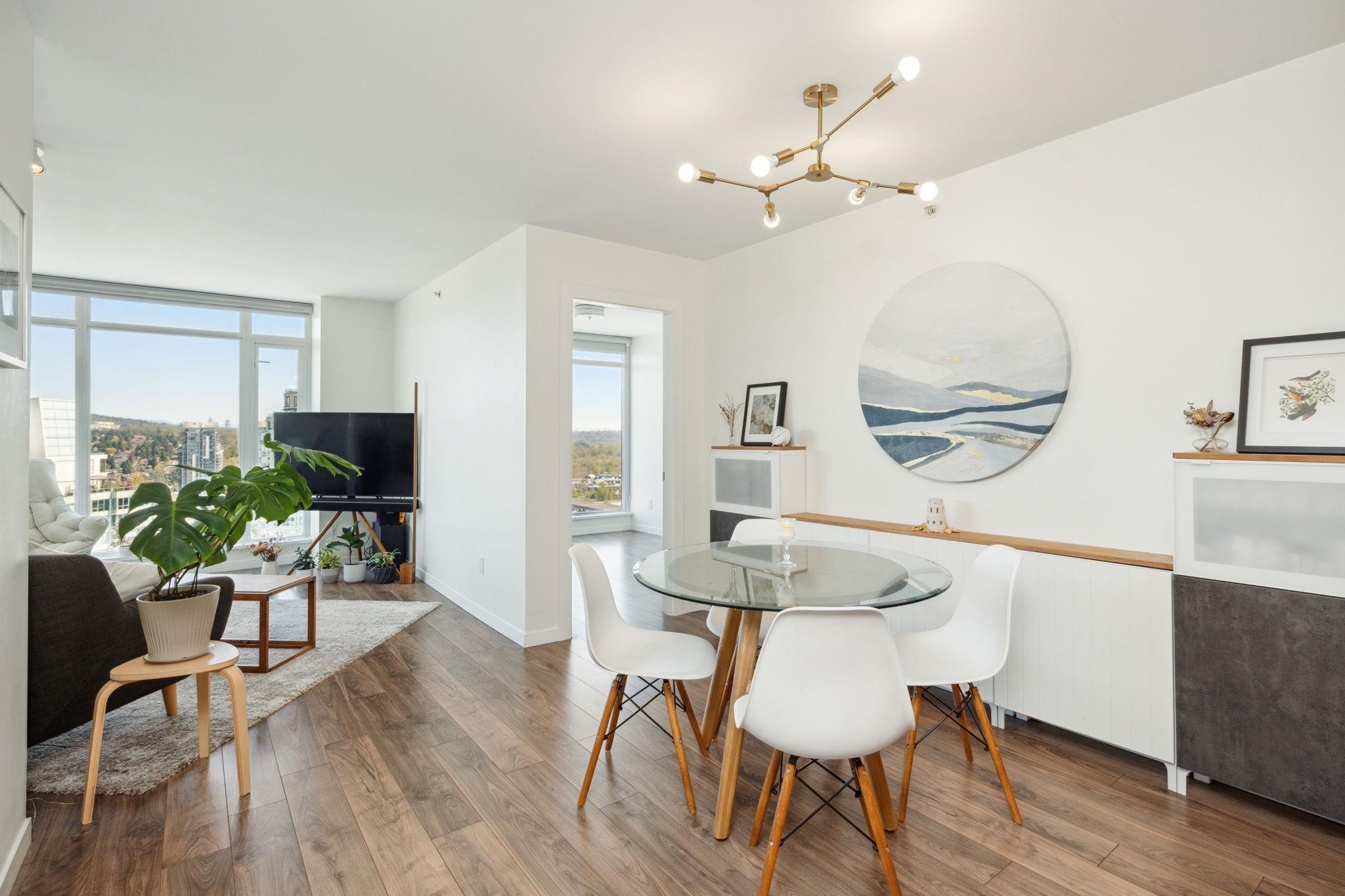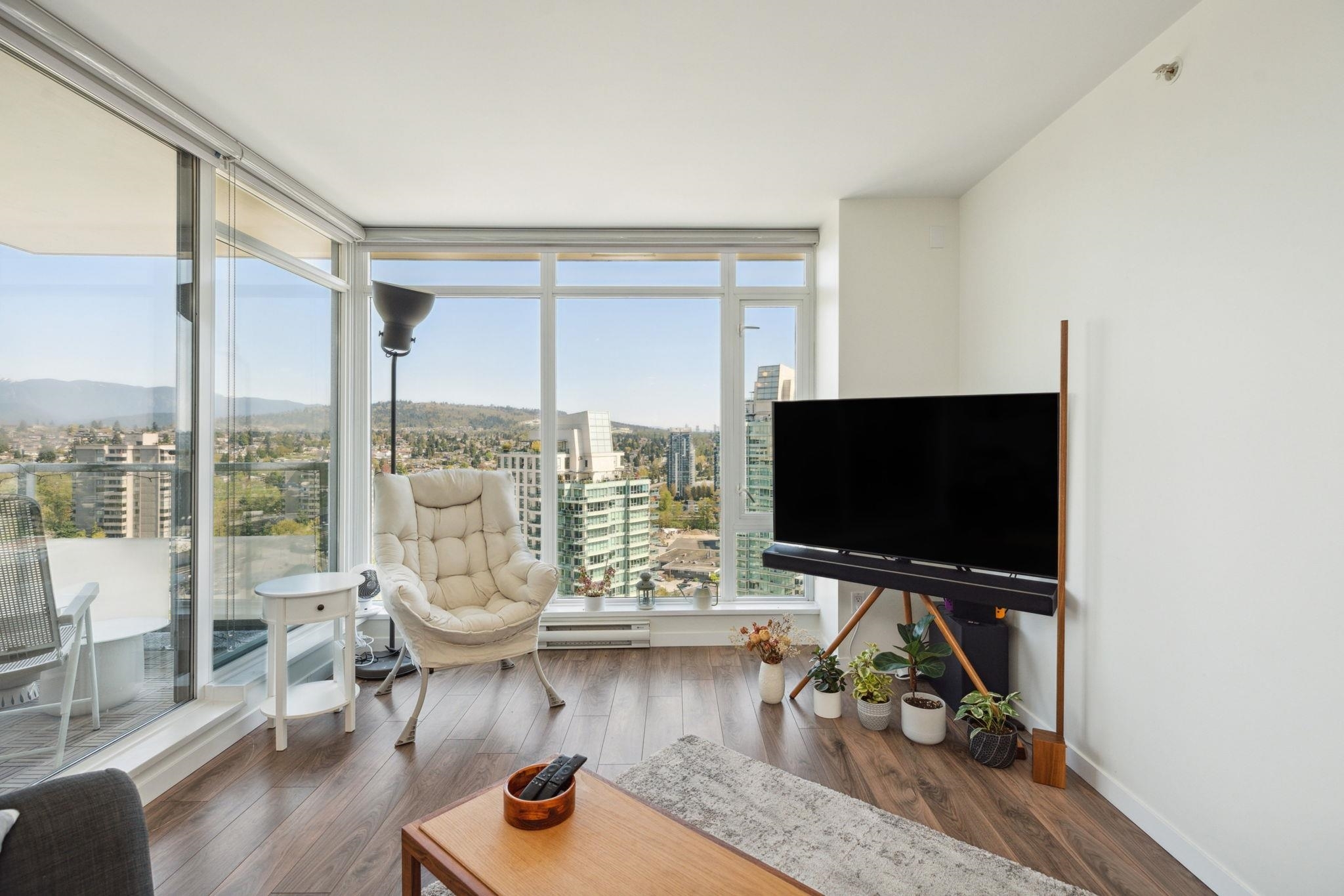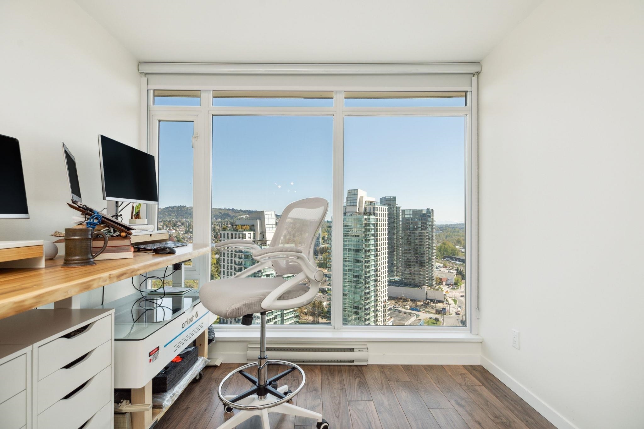 Welcome to Perspectives by Ledmac, nestled in the heart of Brentwood Park! This rarely available 2-bed, 2-bath high-floor corner home offers breathtaking SE views of the mountains & city skyline. Thoughtfully maintained & recently updated, the home features walnut laminate flooring throughout, fresh paint, roller blinds, modern lighting fixtures, & a smooth ceiling finish. The kitchen is equipped with an upgraded gas range/oven, refrigerator, & dishwasher for a contemporary touch. Located in a prime location, close to Brentwood Park Elementary, daycare, The Amazing Brentwood Mall, SkyTrain, Whole Foods, banks, & restaurants. Enjoy excellent amenities, including concierge, gym, party room, & games area. This move-in ready home is waiting for you - schedule your private showing today!
