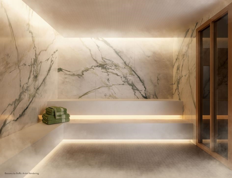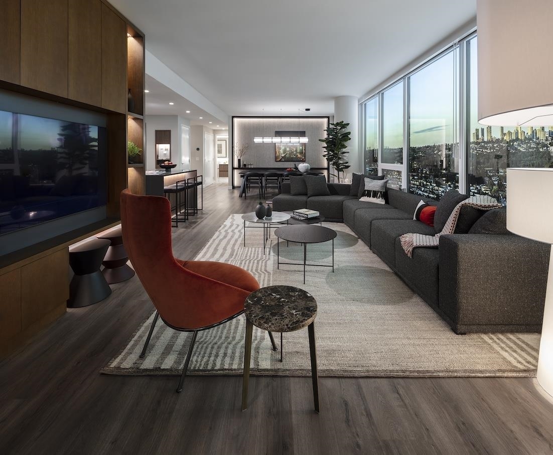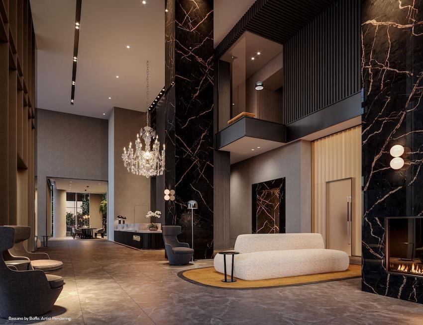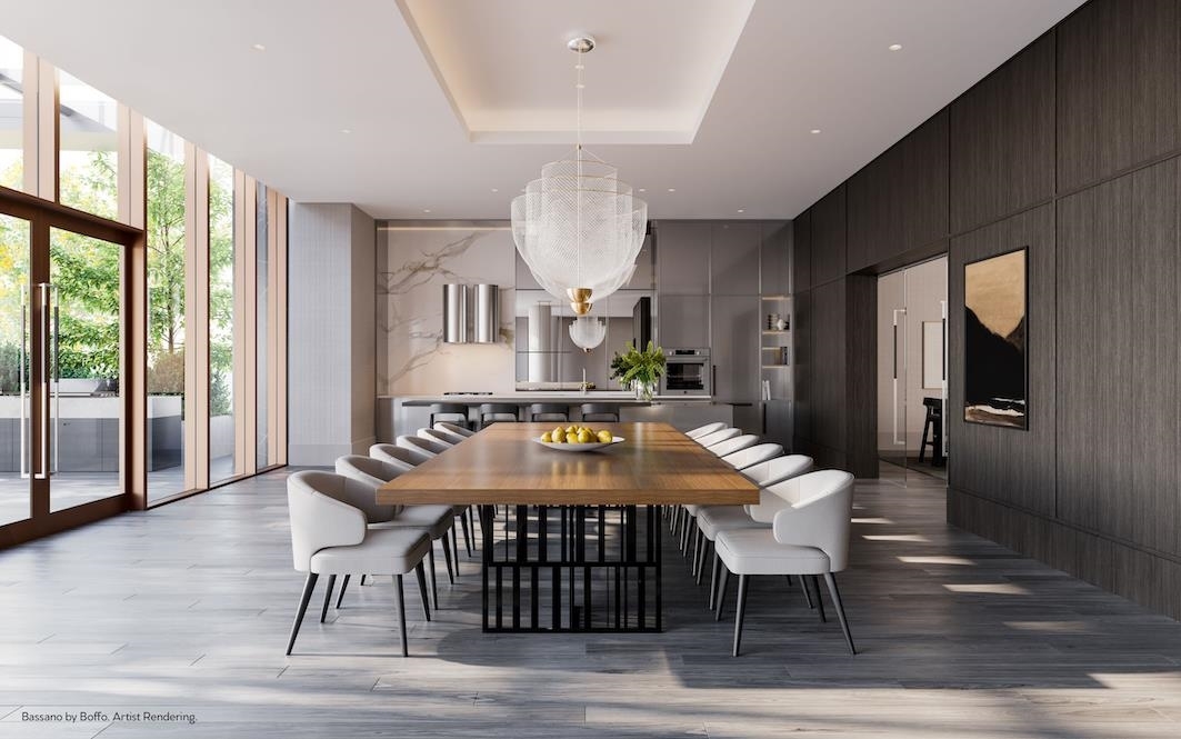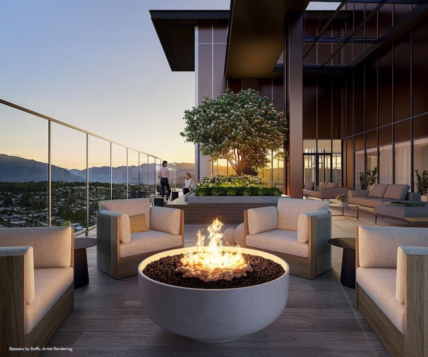 Plan A, an East-facing one-bedroom home, features a large, covered balcony perfect for year-round outdoor dining. The kitchen includes a window for natural light, a wide pantry with an imported Italian backsplash, and a Fullsize 30" integrated Bertazonni appliance package with a choice of gas or induction cooktop. Gessi fixtures, thoughtful storage, over-height doors, 9O ceilings, European flooring, A/C, and built-in wardrobes complete the home. Enjoy extensive building amenities, one block from Holdem Station, and minutes from Brentwood's shopping and dining. Contact us today!