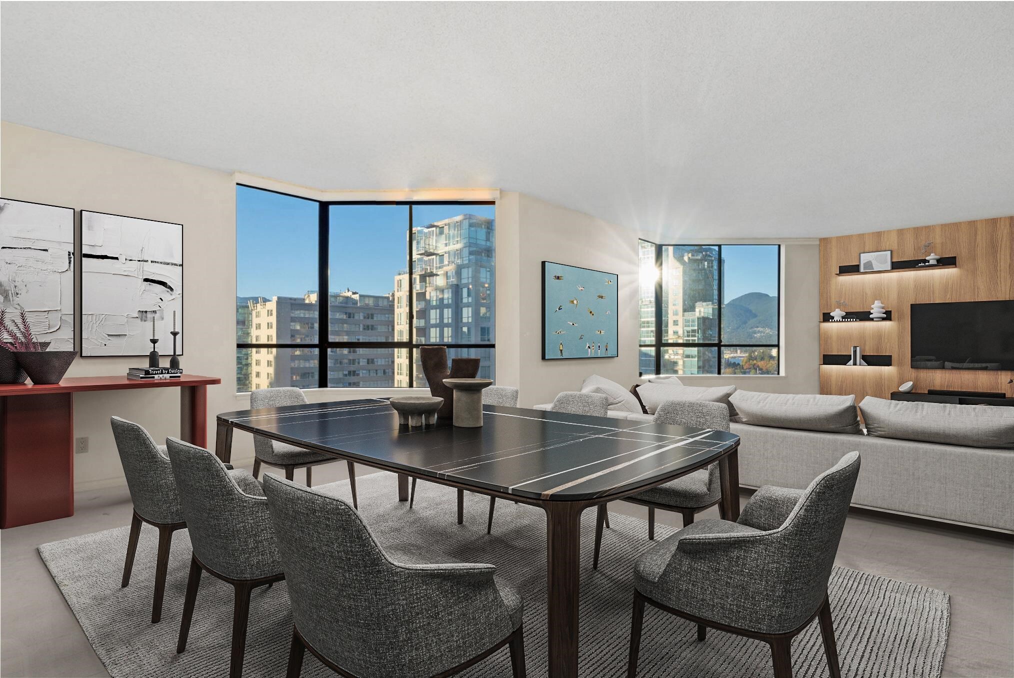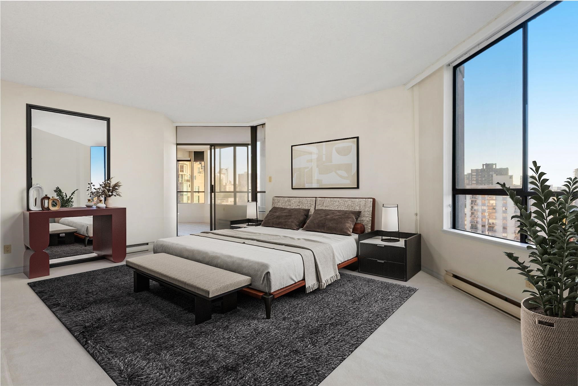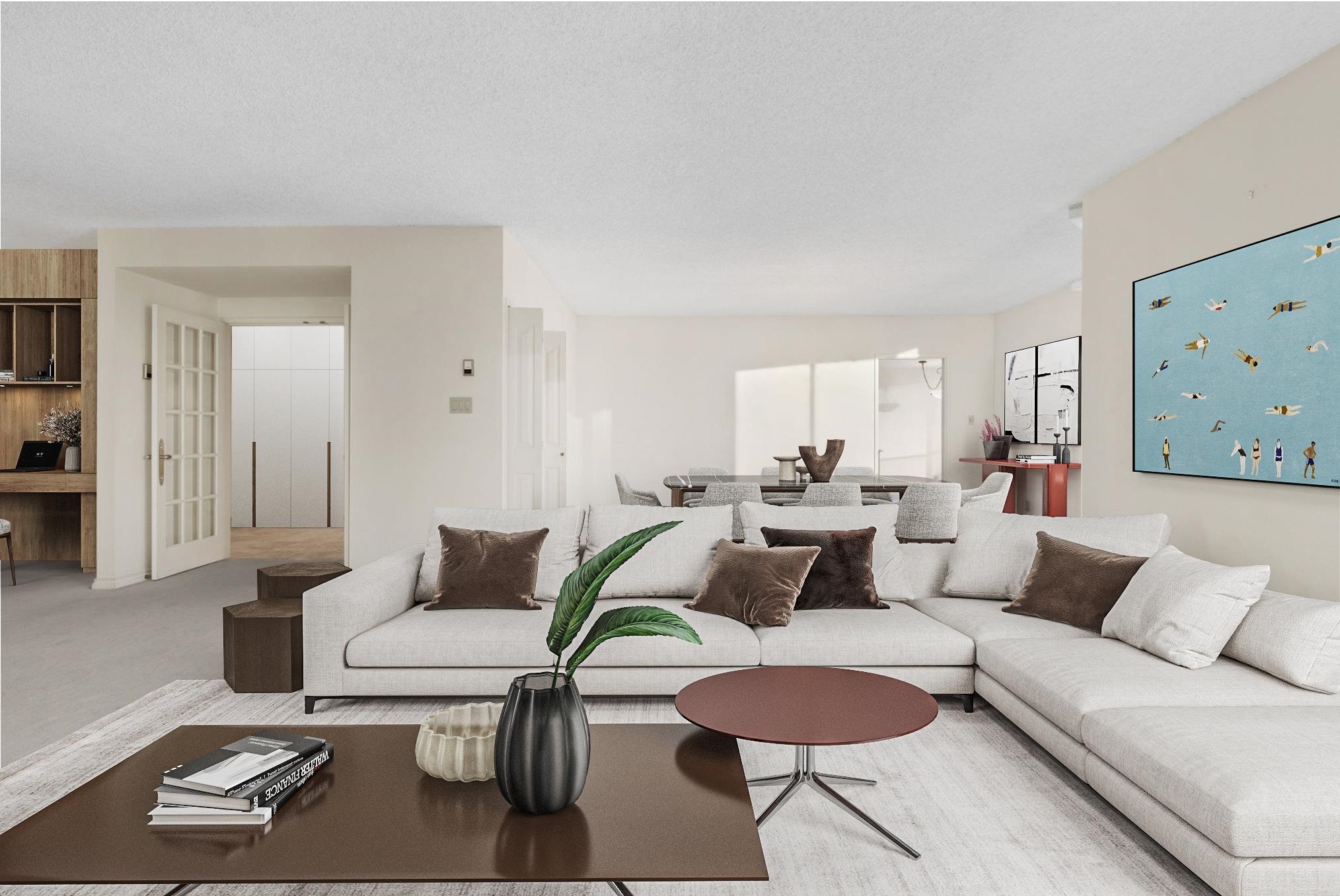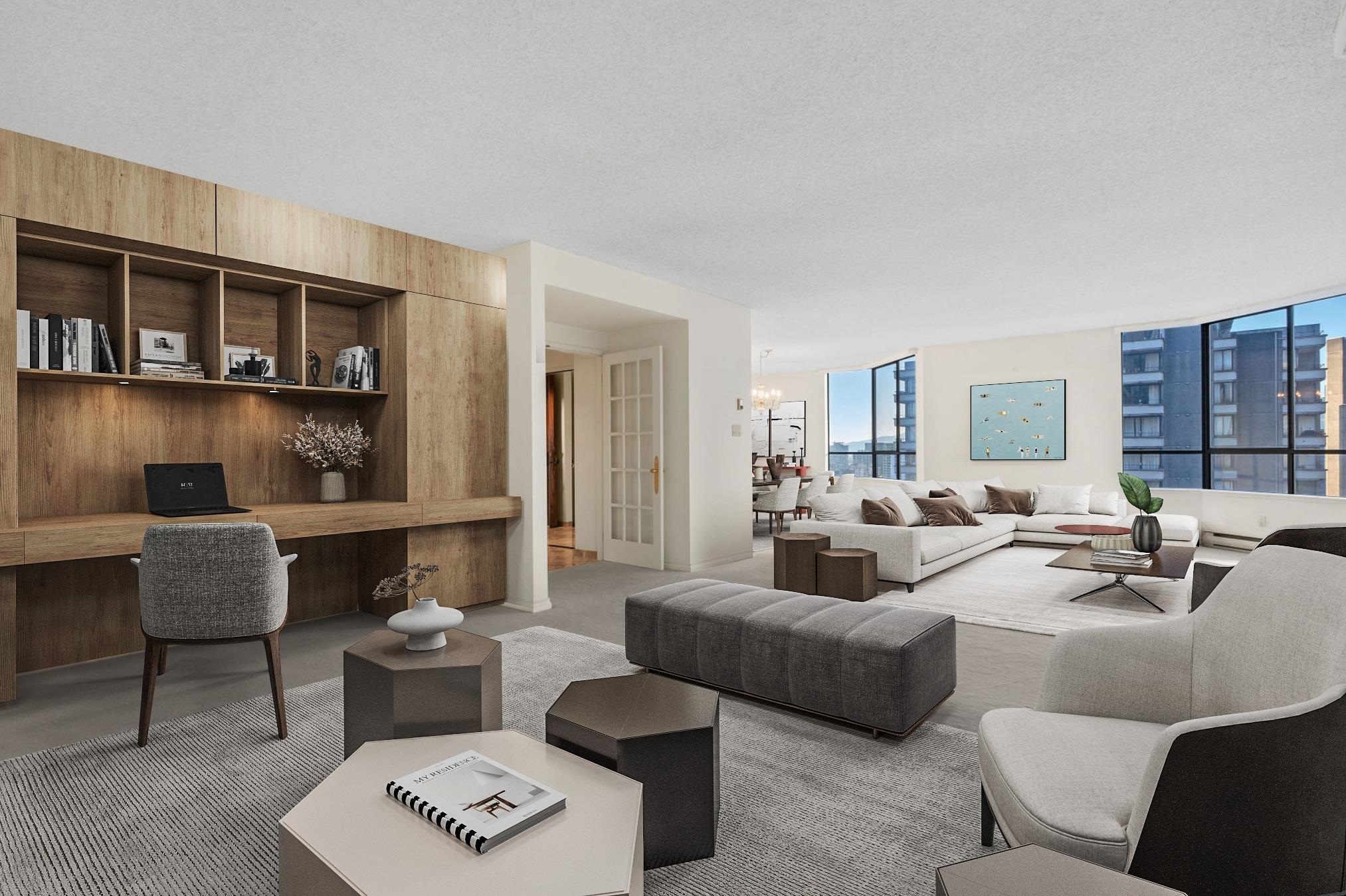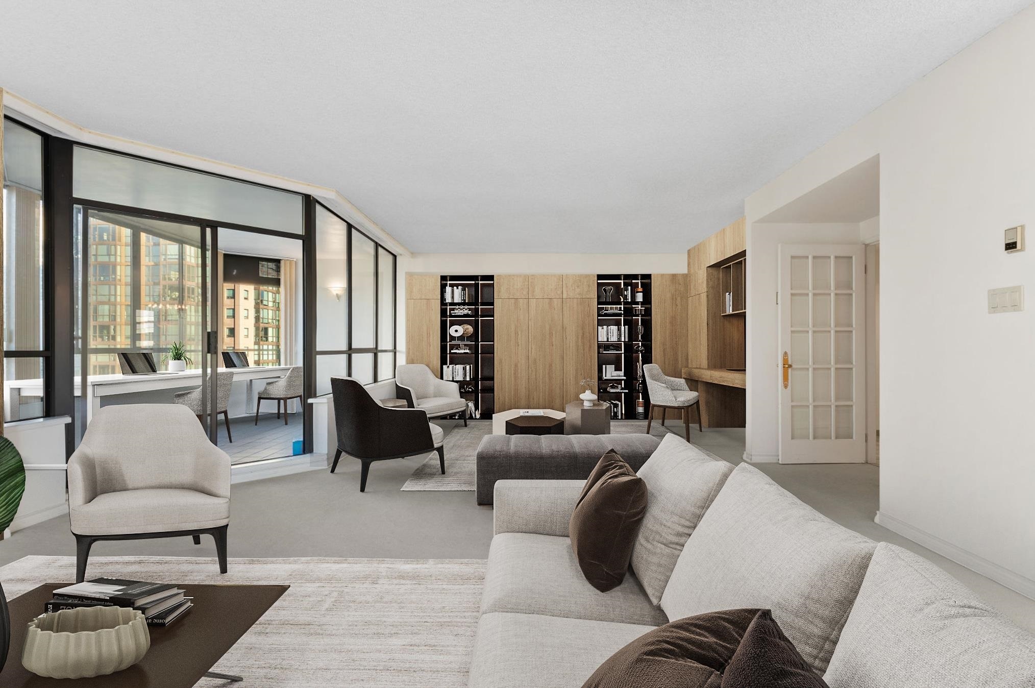 Alberni Place - This expansive northwest half floor residence offers breathtaking views of English Bay, the ocean, and the city skyline. Featuring 3/4 bedrooms, a den, and an office, this thoughtfully designed home boasts oversized bedrooms, generous living and dining areas, ample in-suite storage, and a dedicated laundry room. The well-managed building provides 24-hour concierge, a gym, sauna, and steam room. Pets are not permitted, but rentals are allowed, offering flexibility for investors. Situated in a prime downtown location, just steps from Robson Street and Coal Harbour, two blocks from the Seawall, and within walking distance to Stanley Park, top dining, shopping, and transit. A rare opportunity for space, views, and convenience!