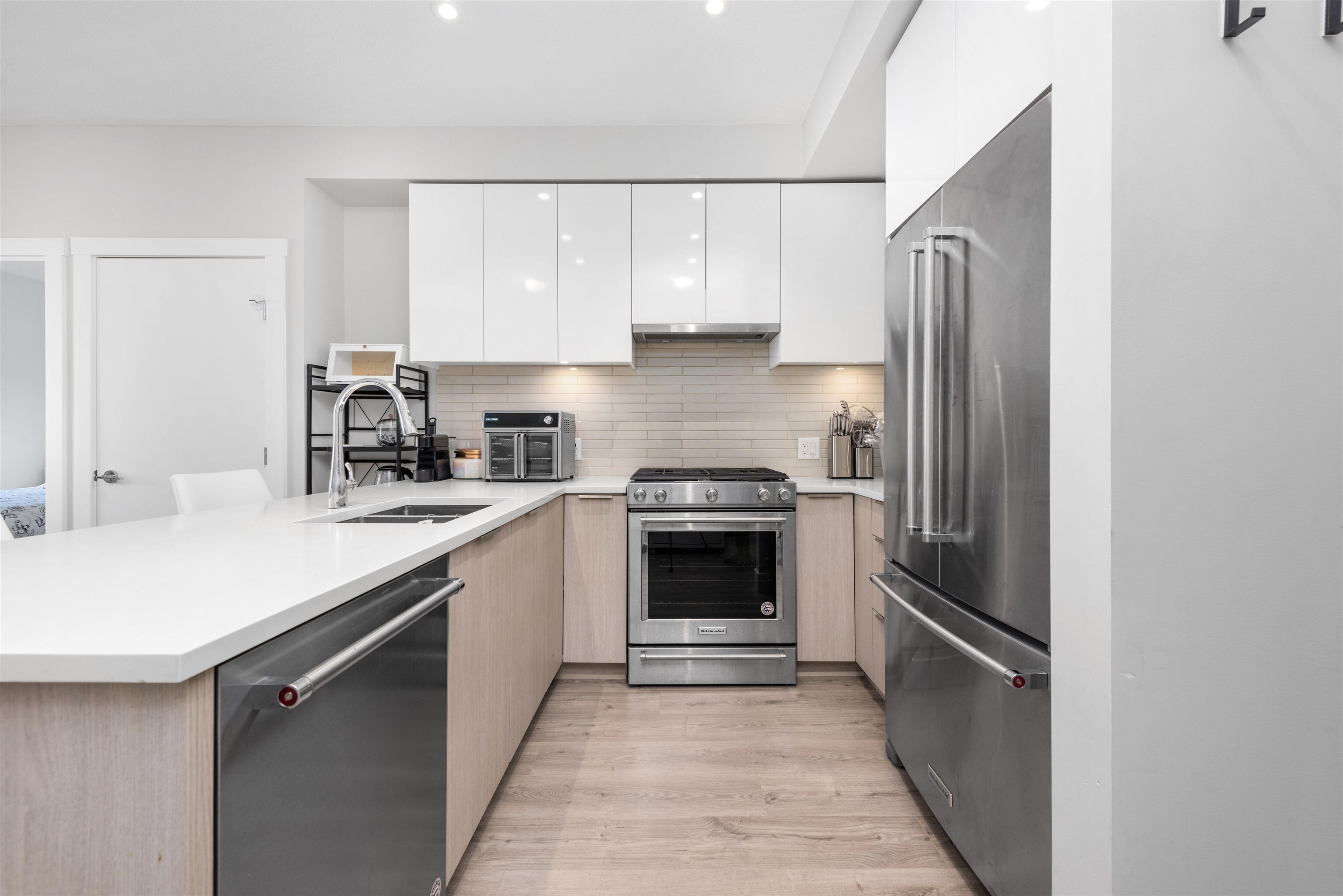 Welcome to Avalon 1 by Wesgroup in Vancouver's vibrant River District. This modern 2-bedroom, 2-bathroom corner unit offers 773 sqft of stylish living, plus a 132 sqft balcony. With updated flooring and a move-in-ready design, this home features a sleek kitchen with high-end stainless steel appliances and spa-inspired bathrooms with double vanities. Enjoy in-floor radiant heat, included in your strata fee. Located in a thriving waterfront community, you're steps from trails, dining, shops, and conveniences like Save-On-Foods and Starbucks. Amenities include a gym, two guest suites, a meeting room, a multipurpose room, and secure bike storage! 1 parking and bonus private storage room!Welcome to Avalon 1 by Wesgroup in Vancouver's vibrant River District. This modern 2-bedroom, 2-bathroom corner unit offers 773 sqft of stylish living, plus a 132 sqft balcony. With updated flooring and a move-in-ready design, this home features a sleek kitchen with high-end stainless steel appliances and spa-inspired bathrooms with double vanities. Enjoy in-floor radiant heat, included in your strata fee. Located in a thriving waterfront community, you're steps from trails, dining, shops, and conveniences like Save-On-Foods and Starbucks. Amenities include a gym, two guest suites, a meeting room, a multipurpose room, and secure bike storage! 1 parking and bonus private storage room!