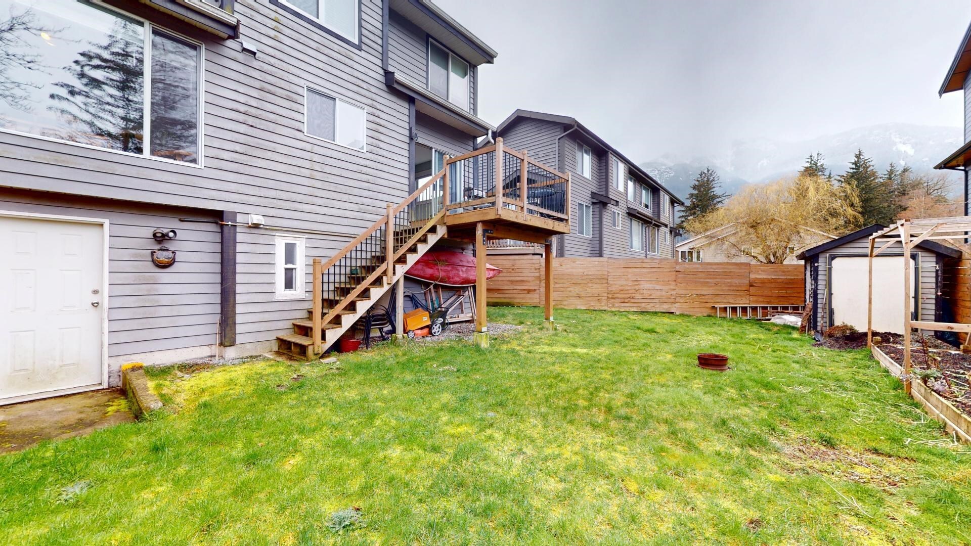 1/2 Duplex without any strata fees! This home has 3 bedrooms & 1.5 bathrooms upstairs, with an additional 4th bedroom & 2nd full bathroom downstairs. Updates & additions from 2017 to now include the downstairs bathroom, 16 solar panels on the roof, kitchen floor, insulated garage doors, gas line to the house, electric fireplace converted to natural gas, rebuilt and expanded back deck and stairs, backyard fence and gate, dishwasher, washer/dryer, fridge, hot water tank, and electric panel. Double garage (half currently being used as a second living room), storage shed, and plenty of parking in the driveway. Great location in sunny Brackendale close to schools, a restaurant, a cafe, trails, the river and only 35 minutes to Whistler. Why pay more for a detached home when you can have this!