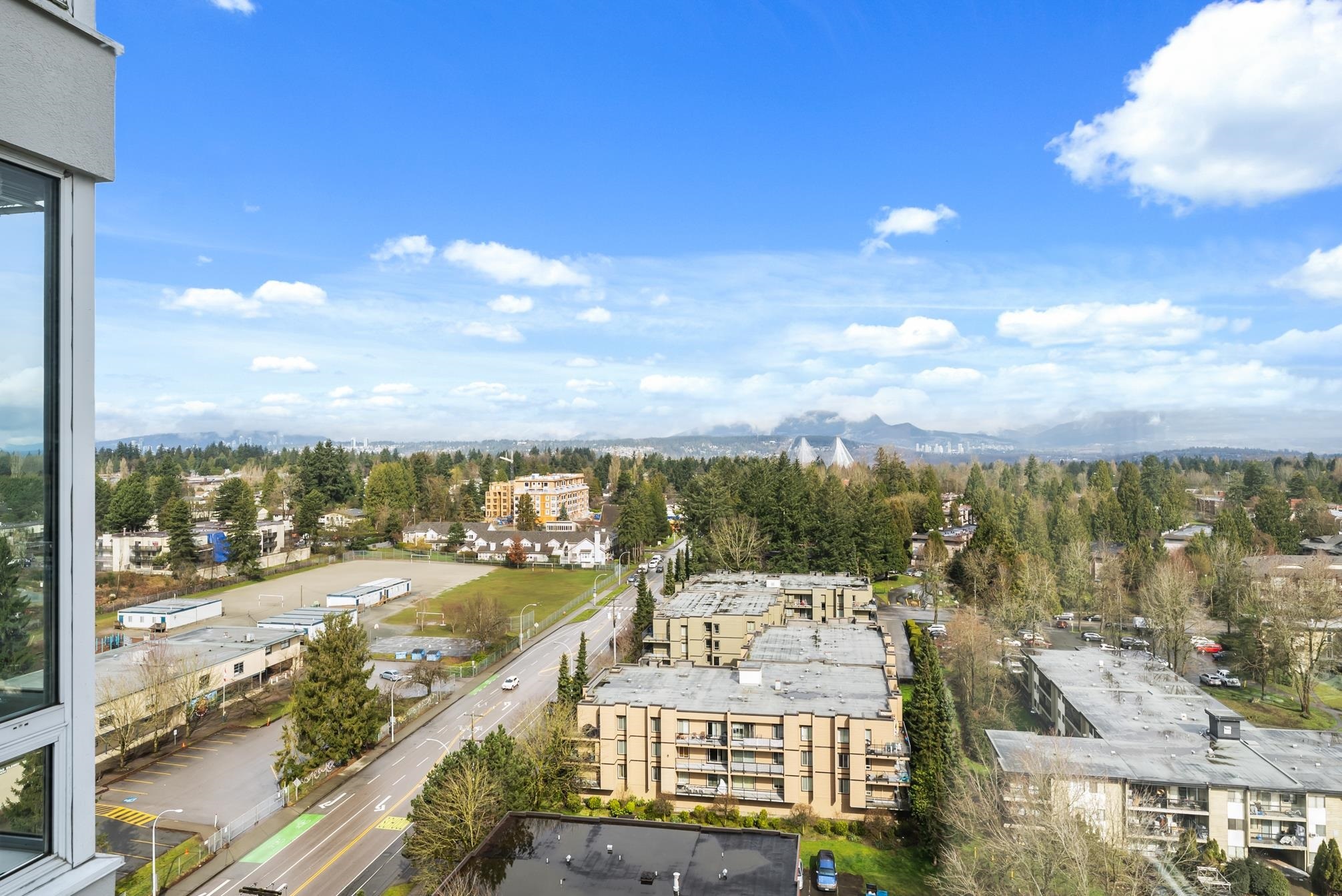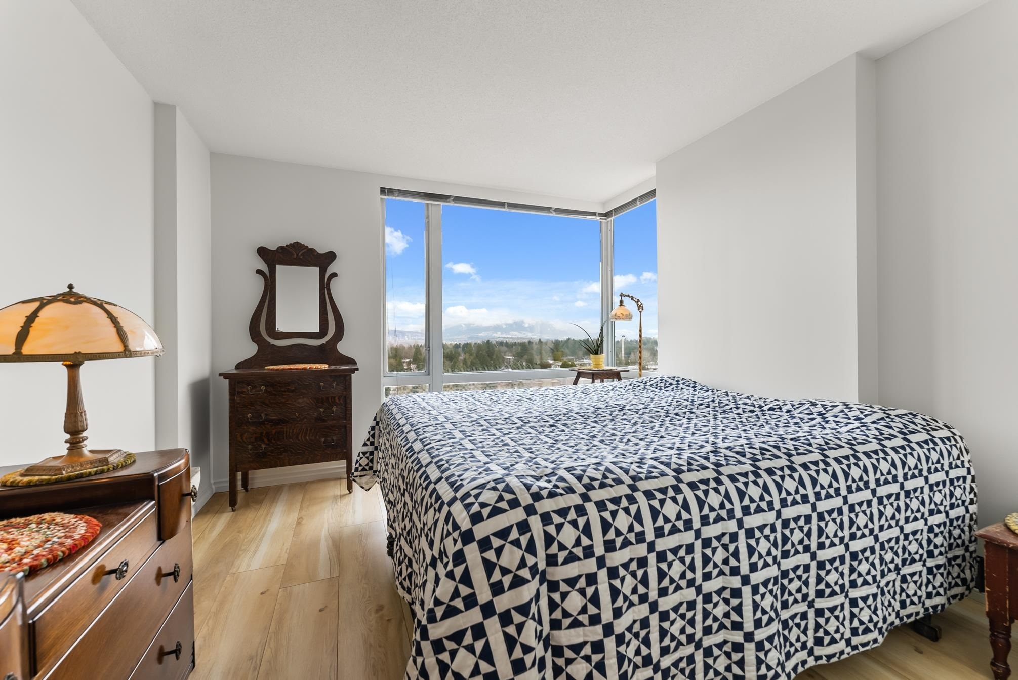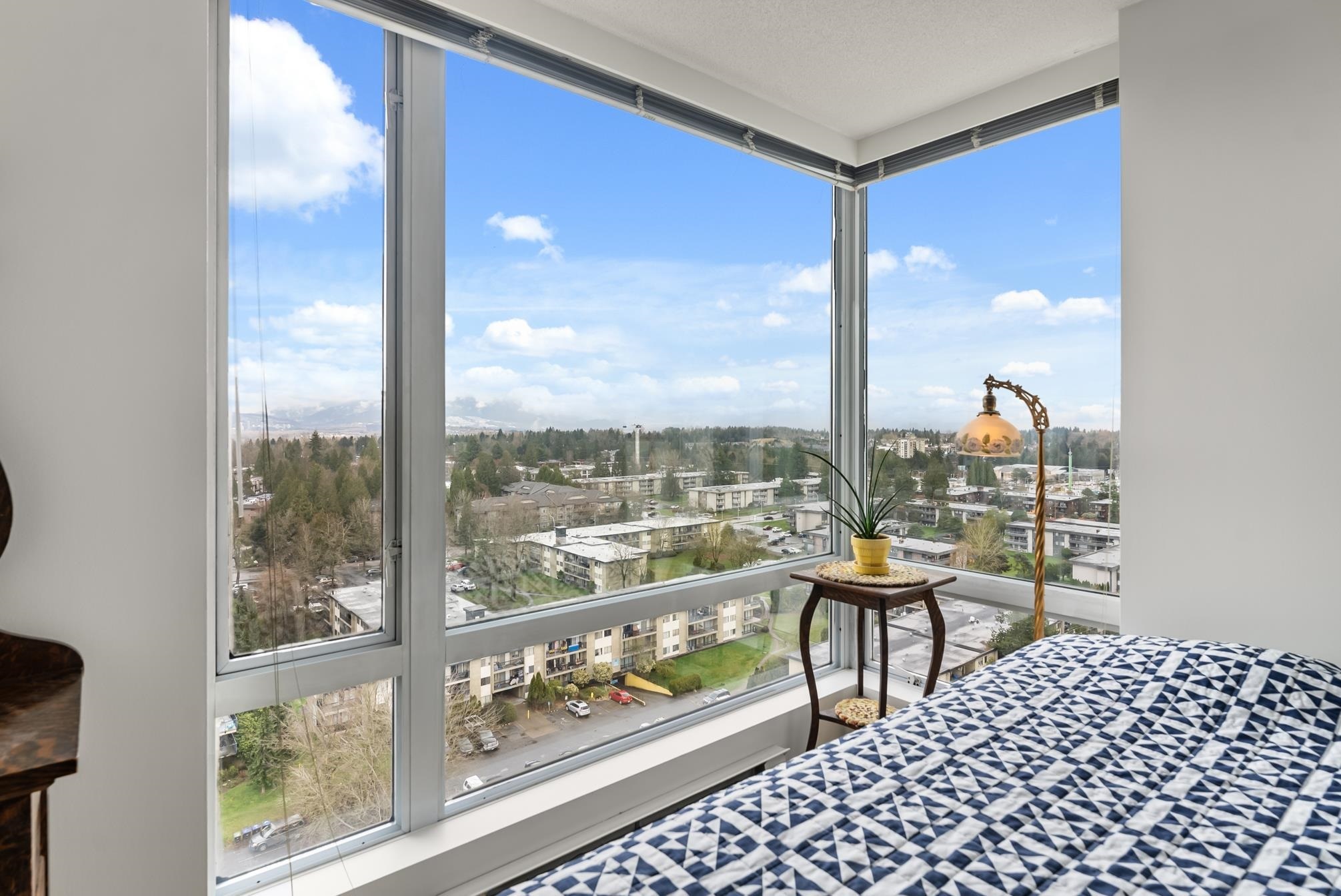 Unparalled views of the Mountains + City from this meticulously updated and maintained 2 bedroom + 2 bathroom condo on the 17th floor. Both bathrooms have been renovated with designer tile and demonstrate a high level of attention to detail. Pristine laminate flooring and expansive floor-to-ceiling windows throughout flood the space with natural light, enhancing the ambiance. The kitchen offers updated appliances and cozy dining nook. The CAMLOT building's amenities, include a gym, rec room, steam room, hot tub, and onsite caretaker. Embrance nature with close proximity to Green Timber Park, Johnston Heights Secondary, Hjorth Road Elementary. Commute with ease (public transportation) bus and skytrain access. Guildford Mall and SFU campus nearby.