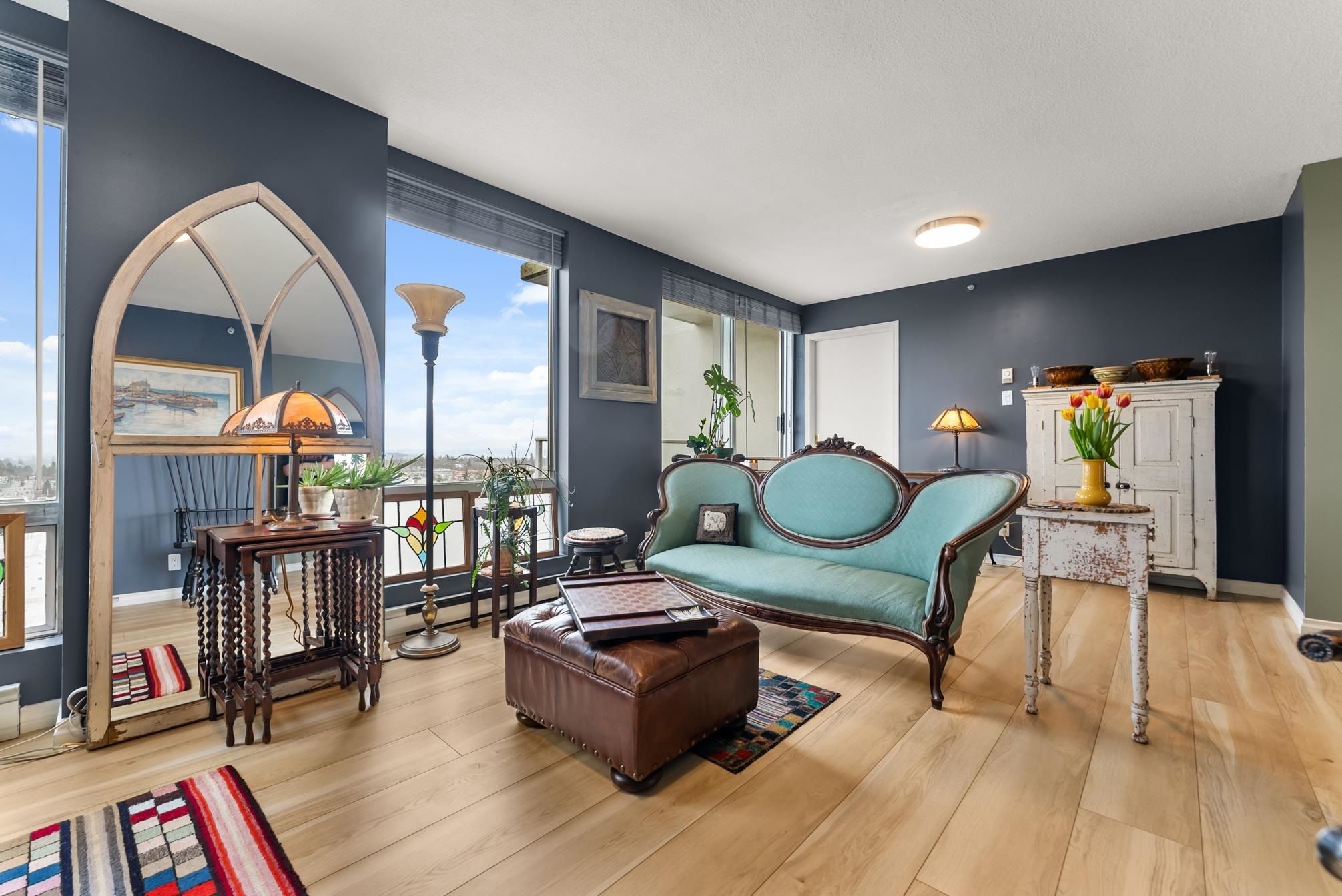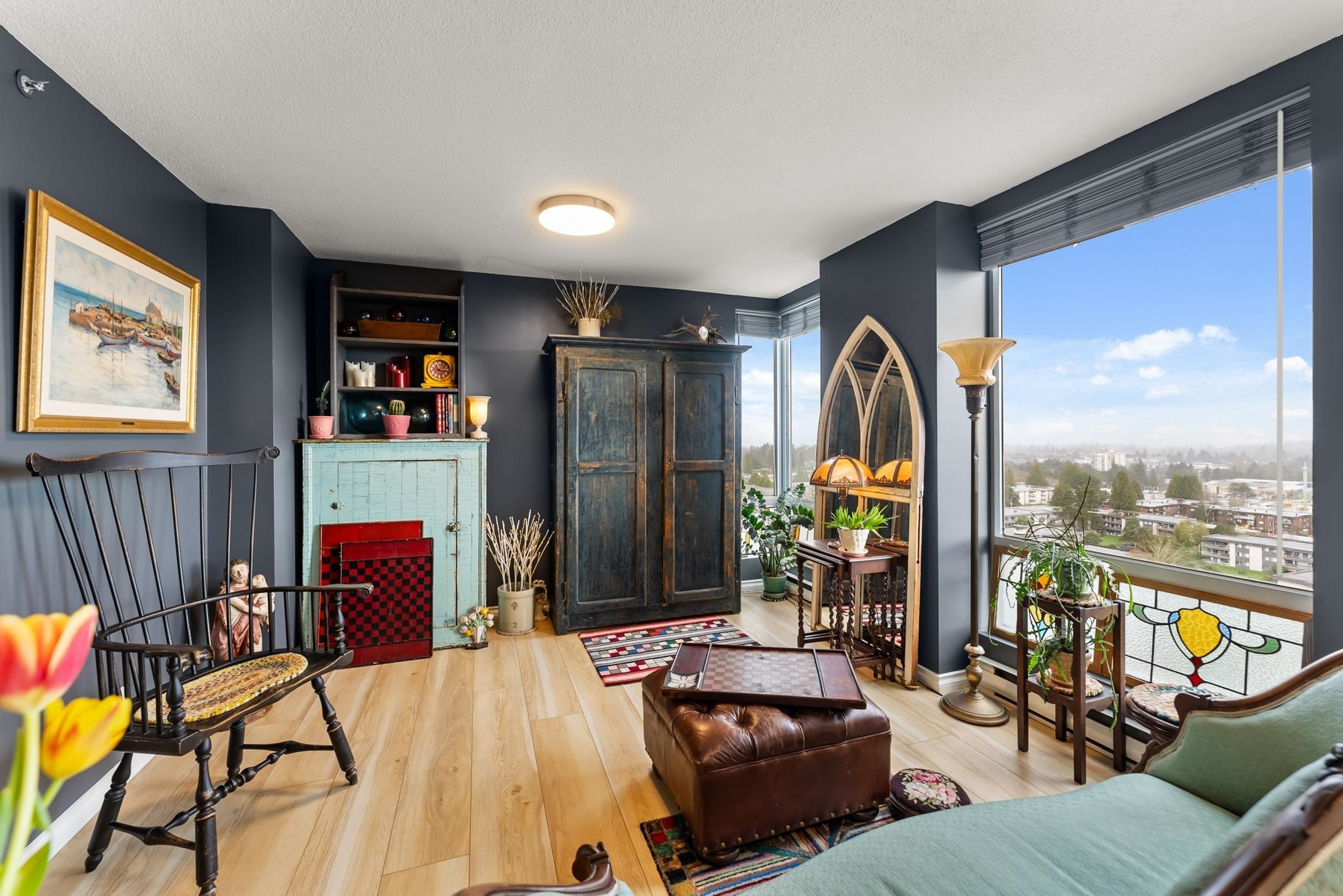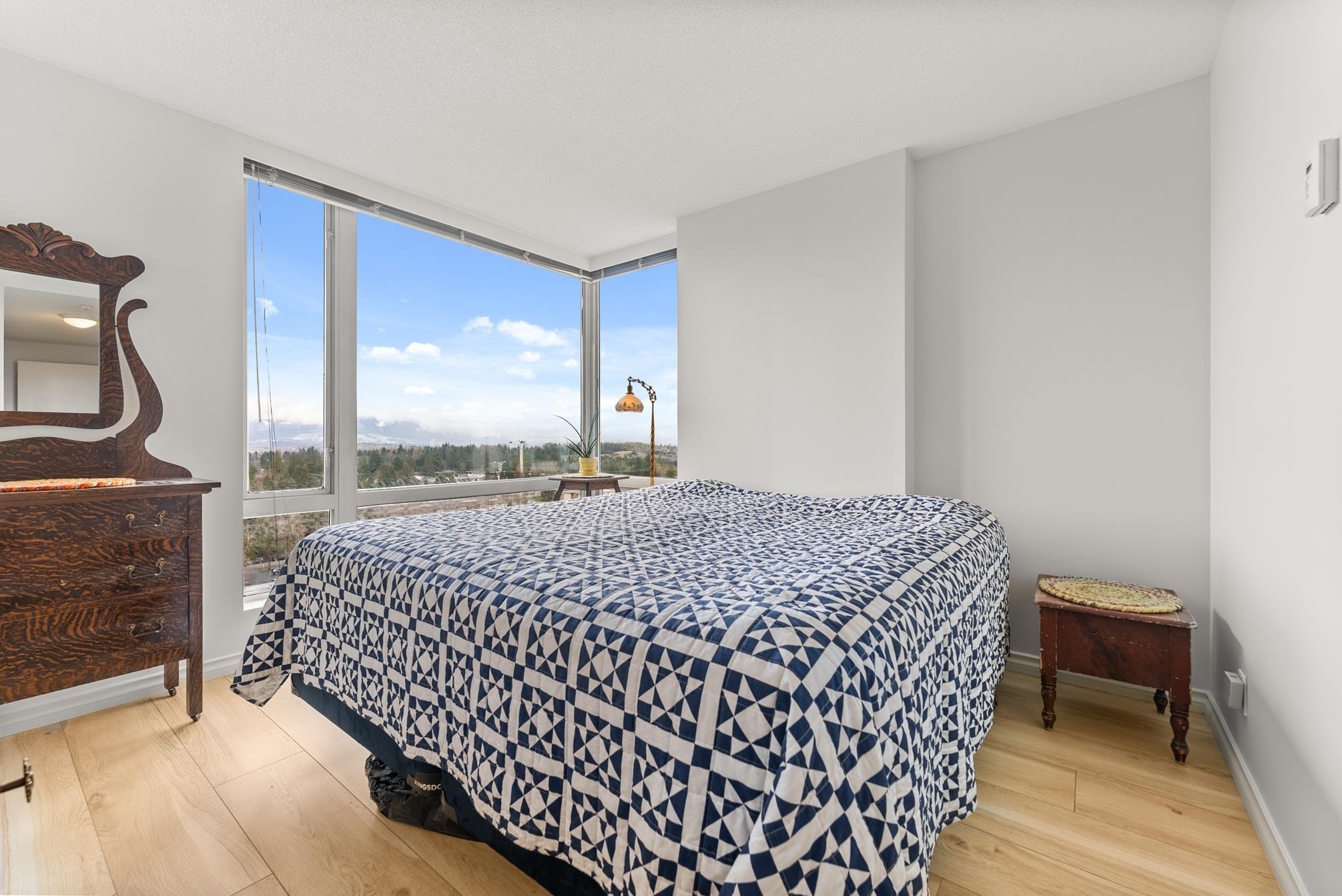 Unparalled views of the Mountains + City from this meticulously updated and maintained 2 bedroom + 2 bathroom condo on the 17th floor. Both bathrooms have been renovated with designer tile and demonstrate a high level of attention to detail. Pristine laminate flooring and expansive floor-to-ceiling windows throughout flood the space with natural light, enhancing the ambiance. The kitchen offers updated appliances and cozy dining nook. The CAMLOT building's amenities, include a gym, rec room, steam room, hot tub, and onsite caretaker. Embrance nature with close proximity to Green Timber Park, Johnston Heights Secondary, Hjorth Road Elementary. Commute with ease (public transportation) bus and skytrain access. Guildford Mall and SFU campus nearby.