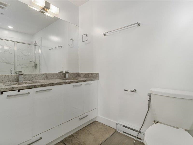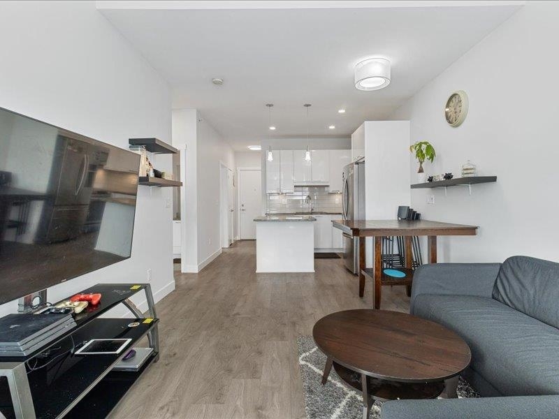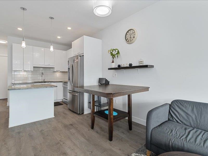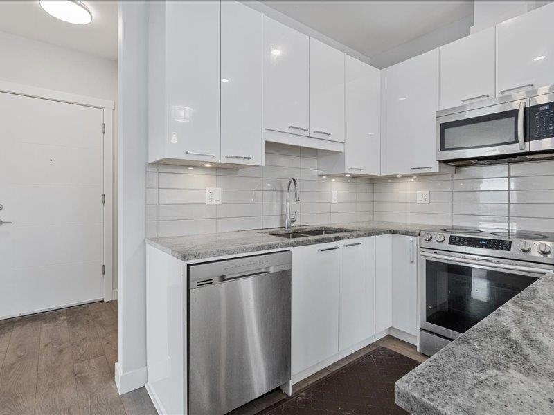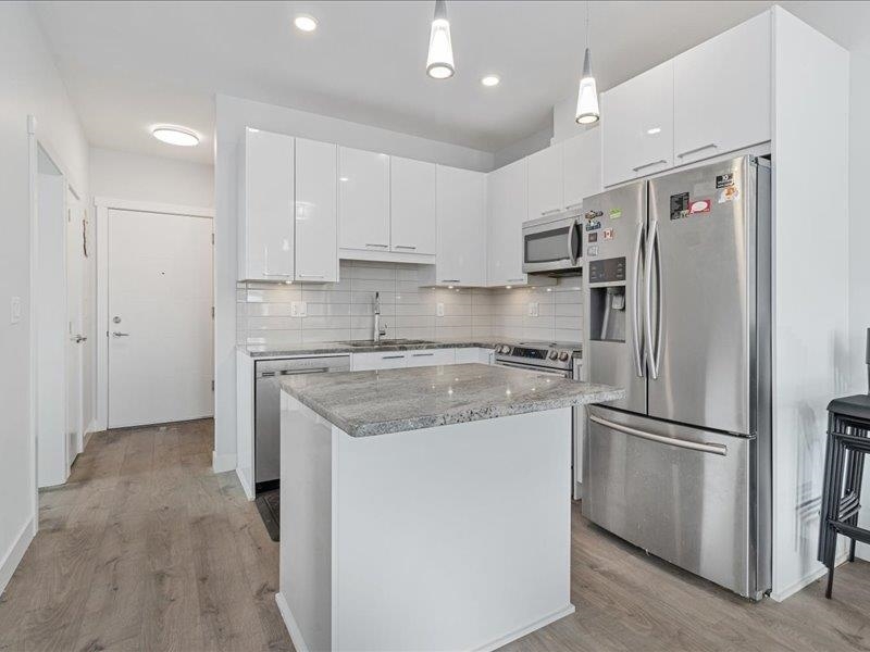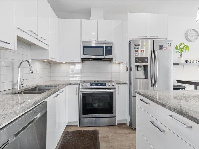 Discover penthouse living at The Georgia--a stunning top-floor corner unit perfect for homeowners and investors alike. Ideally located with shopping, dining, and transit at your doorstep, plus the future SkyTrain station just a block away. This elegant home features white cabinetry, quartz countertops, stainless steel appliances, and laminate flooring throughout. The master bedroom offers air conditioning, while the spacious den can serve as a home office or third bedroom. Enjoy breathtaking courtyard and city views from the expansive patio--perfect for entertaining. With no rental restrictions, Airbnb approval, and top-tier amenities including a fitness center, pet-friendly spaces, and a children's play area, this is a rare find. Don't miss out--schedule your viewing today!