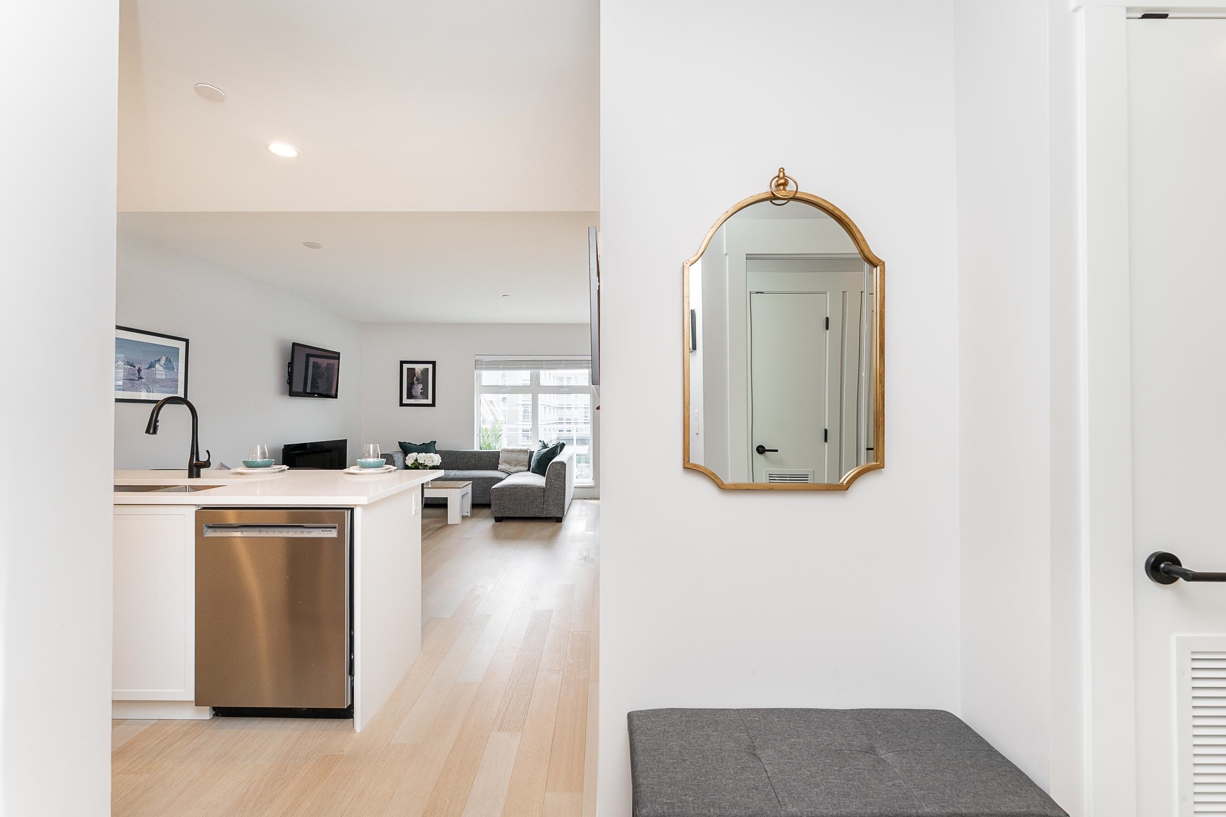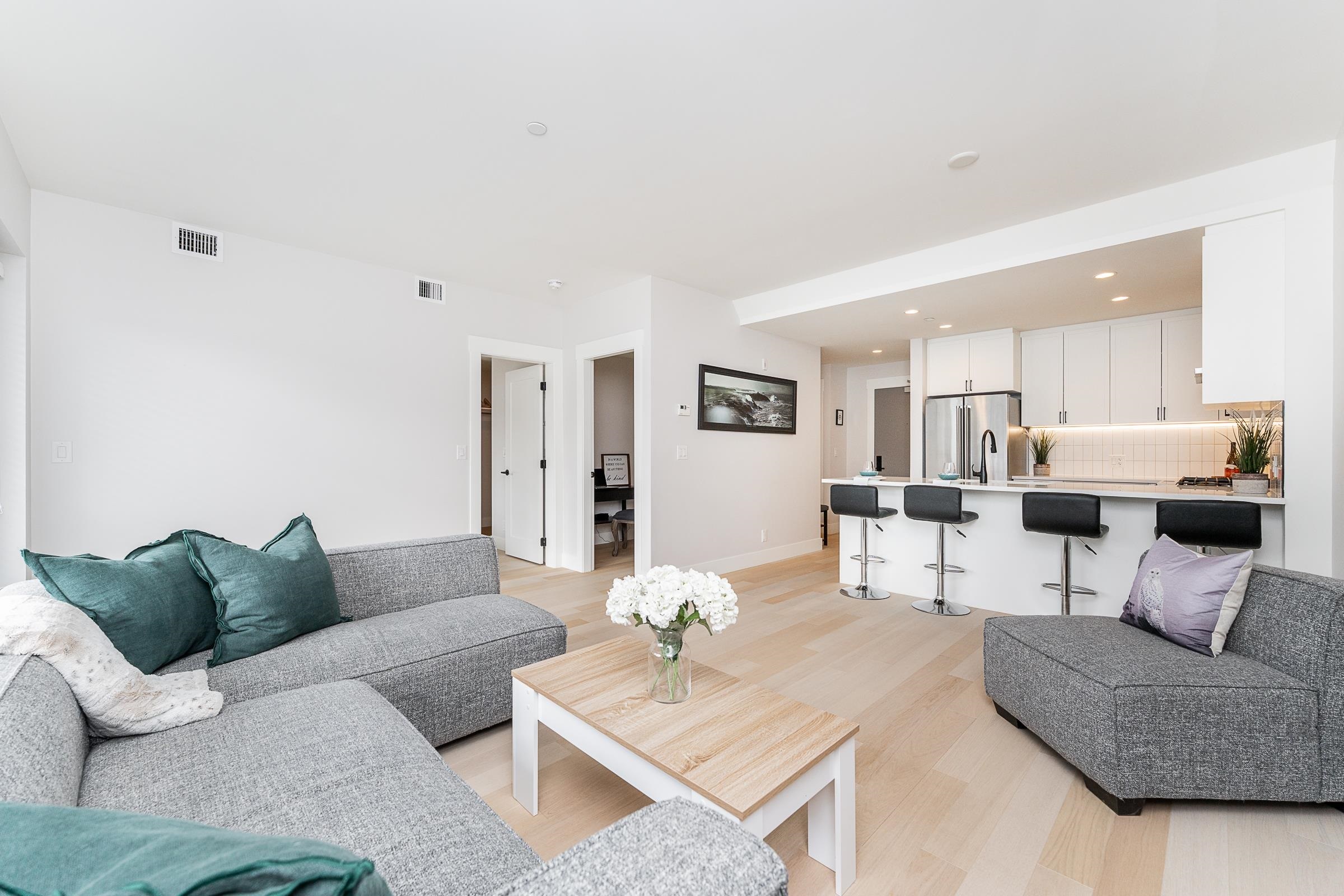 Welcome to Era! Like new, contemporary style home overlooking a beautiful courtyard! This open concept 1 bedroom, plus flex plan offers 736 sq ft of beautiful and functional living space. The kitchen has a large peninsula that seats 4, quartz counters, S/S appliances, gas cooktop, display shelving and ample storage. Dining seamlessly connects to a roomy living that opens to a covered balcony that spans beyond the width of the home! Primary can hold a king, has a spacious WIC and a cheater ensuite for added convenience. The flex room is perfect for working from home. HEAT PUMP for both cooling and heating. Engineered hardwood floors throughout and full size washer and dryer. This vibrant master planned community is centrally located near parks, recreation, transit, shopping and restaurants.Welcome to Era! Like new, contemporary style home overlooking a beautiful courtyard! This open concept 1 bedroom, plus flex plan offers 736 sq ft of beautiful and functional living space. The kitchen has a large peninsula that seats 4, quartz counters, S/S appliances, gas cooktop, display shelving and ample storage. Dining seamlessly connects to a roomy living that opens to a covered balcony that spans beyond the width of the home! Primary can hold a king, has a spacious WIC and a cheater ensuite for added convenience. The flex room is perfect for working from home. HEAT PUMP for both cooling and heating. Engineered hardwood floors throughout and full size washer and dryer. This vibrant master planned community is centrally located near parks, recreation, transit, shopping and restaurants.