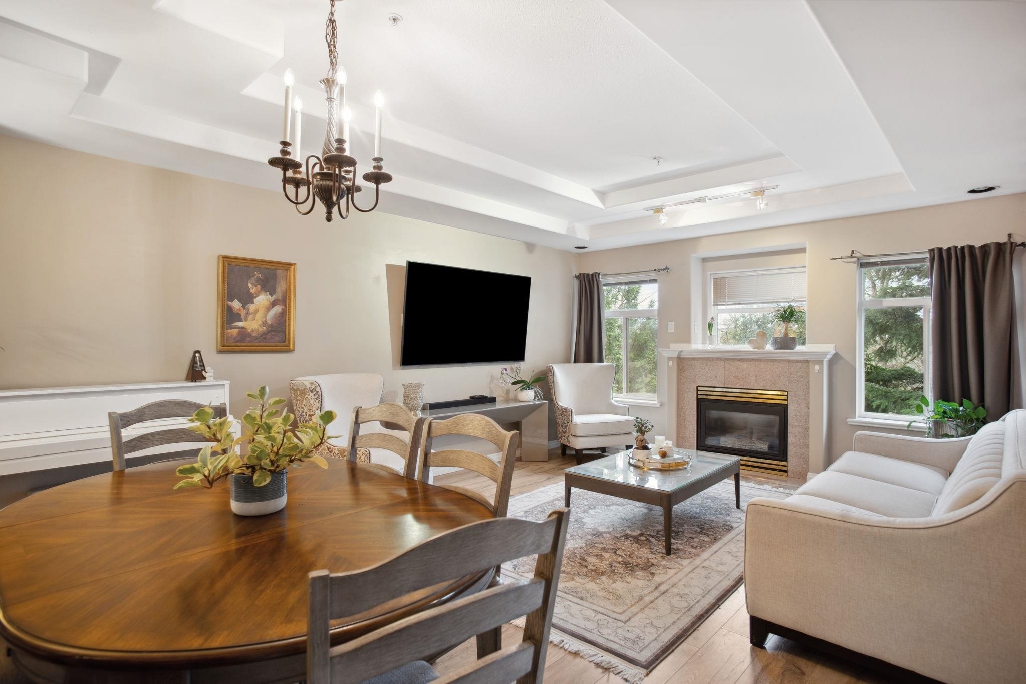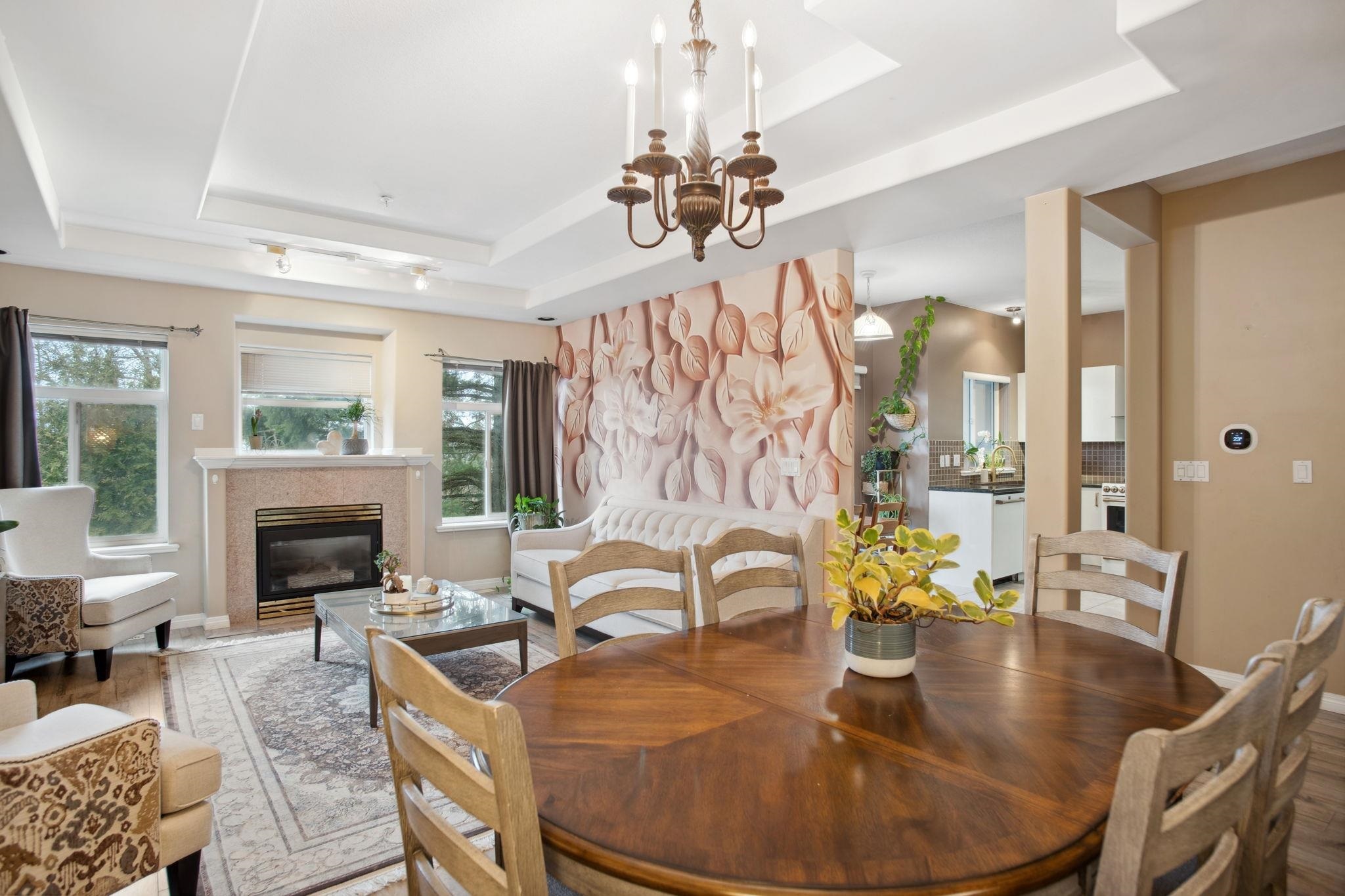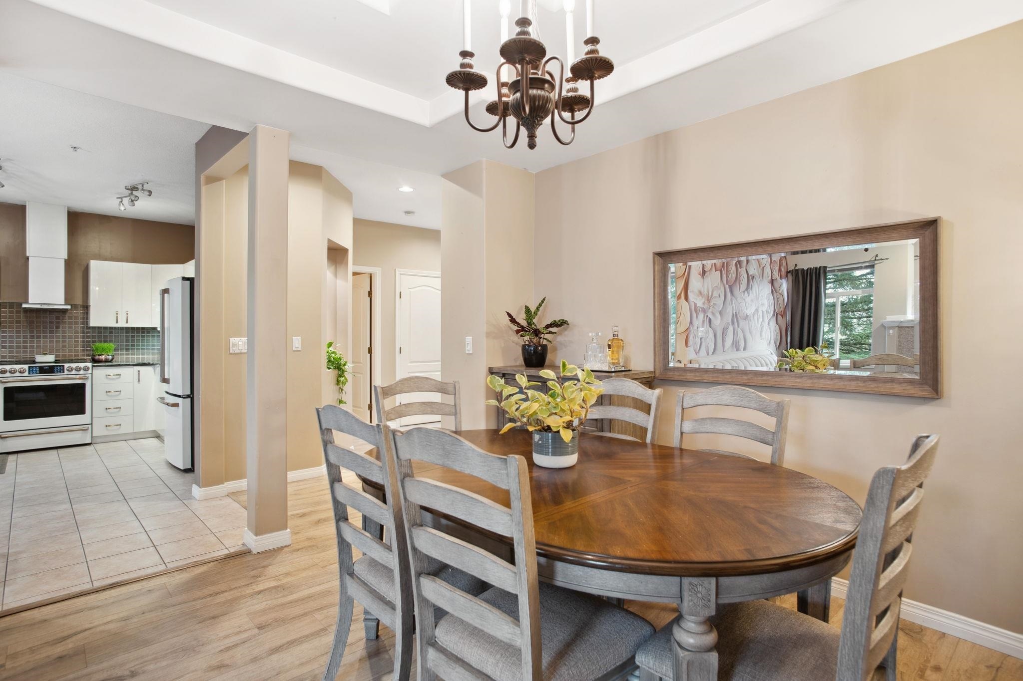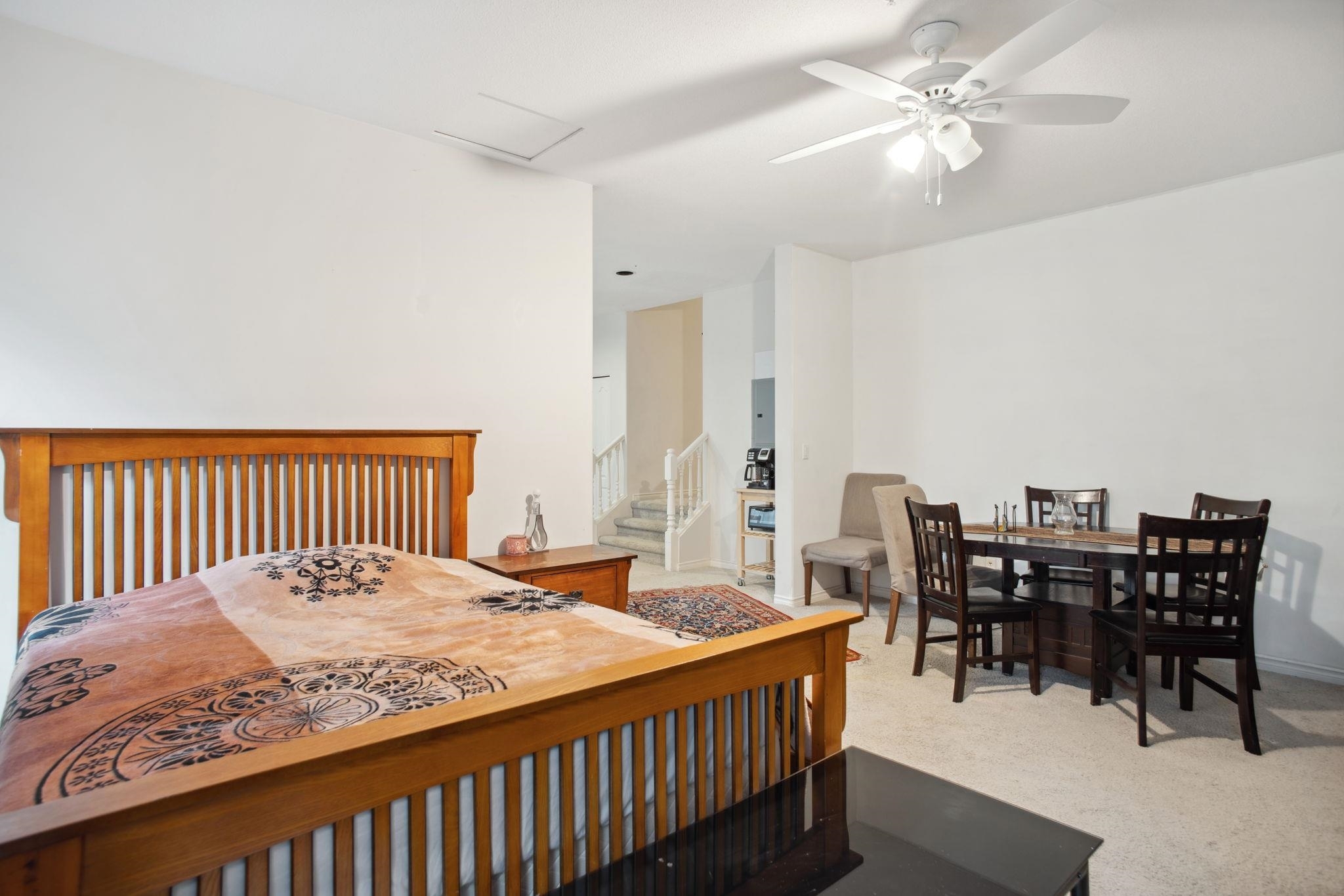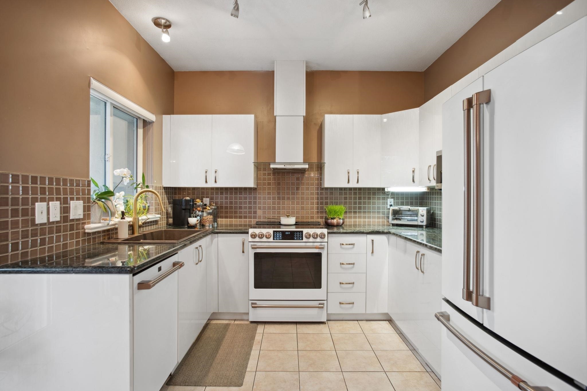 Nestled in Citadel Heights, this rare townhouse boasts stunning Fraser River and park views. Enjoy spacious, light-filled rooms w/ A/C, 9-ft ceilings, a deck off the kitchen & a private patio. The updated kitchen (2022) features Cafe luxury appliances, granite counters, pantry & breakfast nook. The kitchen, primary suite, and living areas offer views of the Fraser River and Colony Farm Park. Upstairs: 3 bedrooms, 2 baths, incl. a luxurious primary suite with a spa-like ensuite and walk-in closet. The lower level offers a media/rec room, roughed-in wet bar, 3-piece bath, plus a family room/bedroom with a separate entrance--ideal for an in-law suite. Updates: A/C & heat pump (2022), laminate floors (2022), new garage door opener (2025). Double garage, minutes from transit, highways & schools!