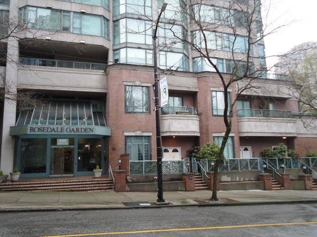 Welcome to Rosedale Gardens--a premier residence in the heart of Yaletown at Hamilton & Smithe. This spacious 1-bedroom unit boasts a private balcony with nice views of the city skyline. Enjoy unmatched convenience with BC Place, the Vancouver Public Library, and the False Creek Seawall just moments away. Ideally located in central downtown, you'll be within walking distance of Yaletown's world-class restaurants, shopping, and transit. Amenities: Indoor pool, Sauna, hot tub &fully equipped gym. Well-maintained building with a live-in caretaker, ensuring peace of mind and exceptional service. Welcome to experience the best of urban living in one of Vancouver's most sought-after neighborhoods. Please Call today to schedule a viewing!