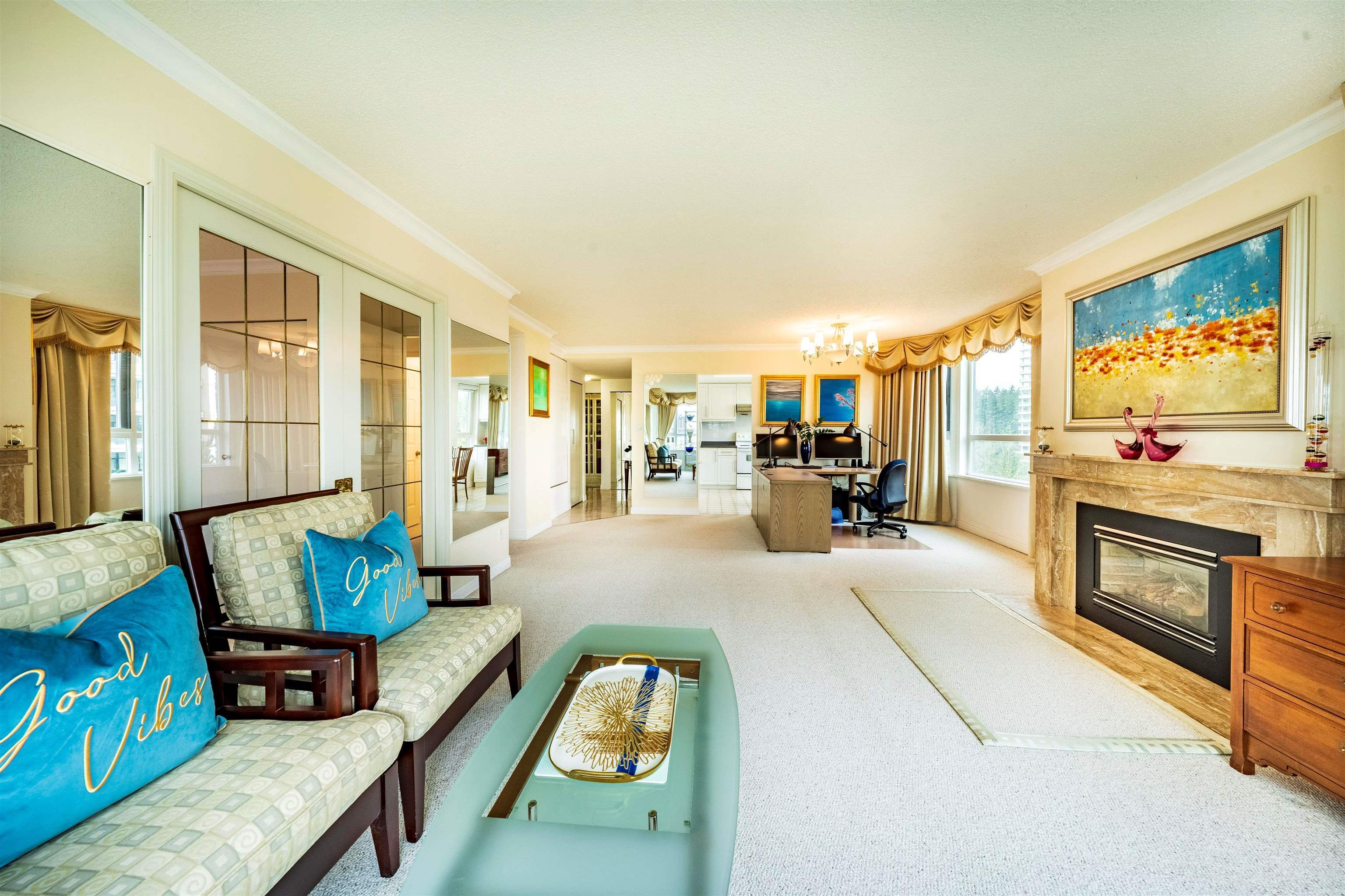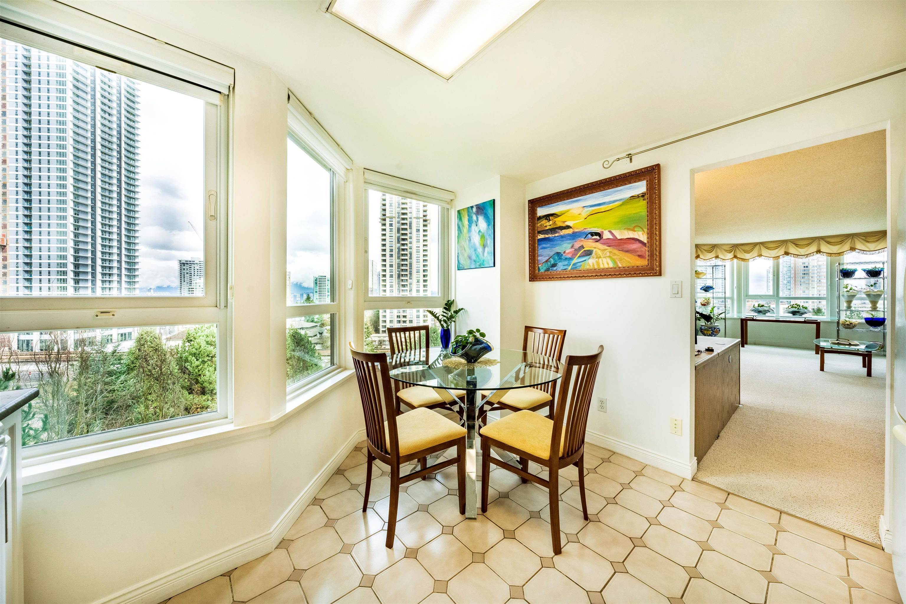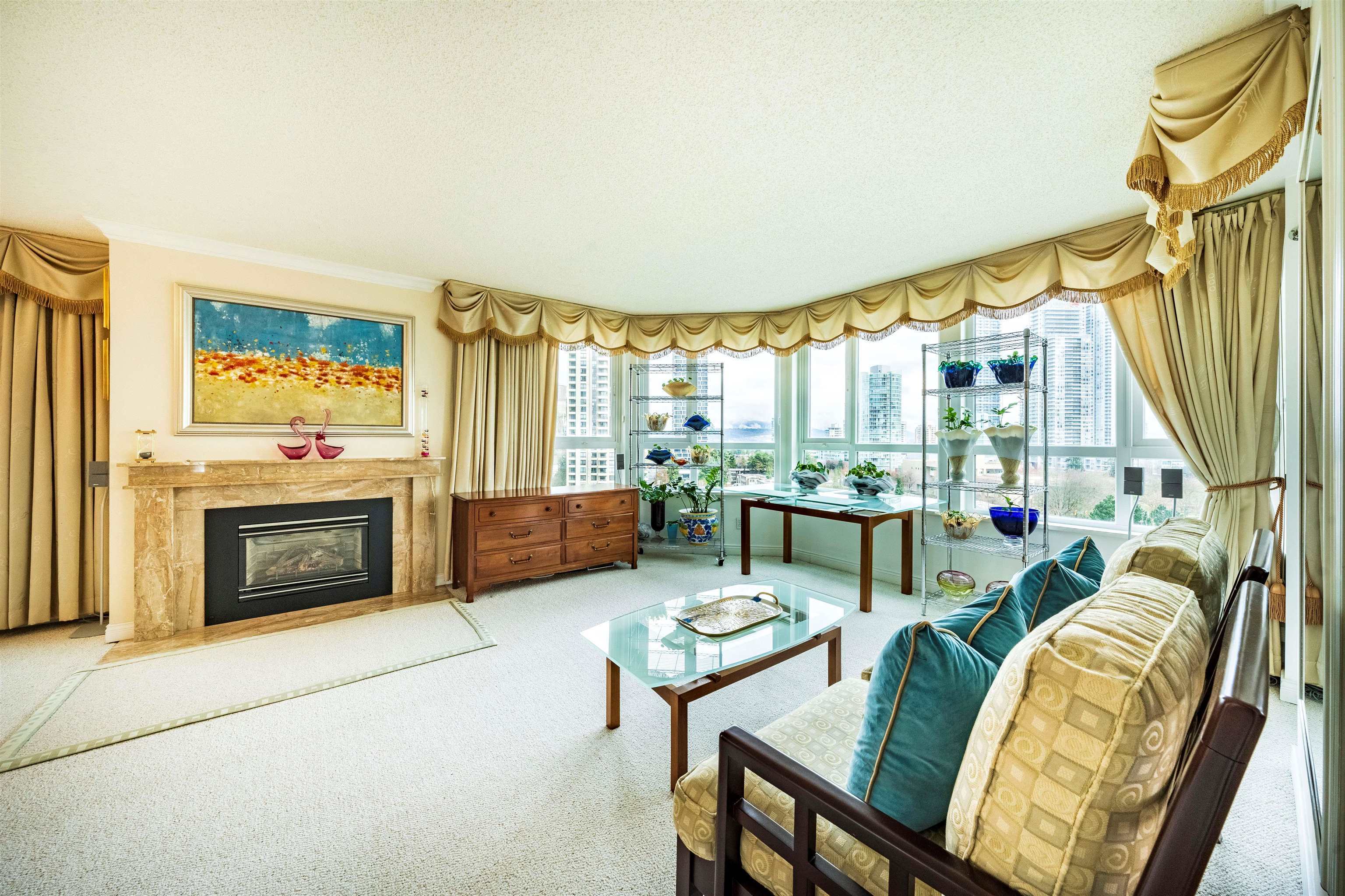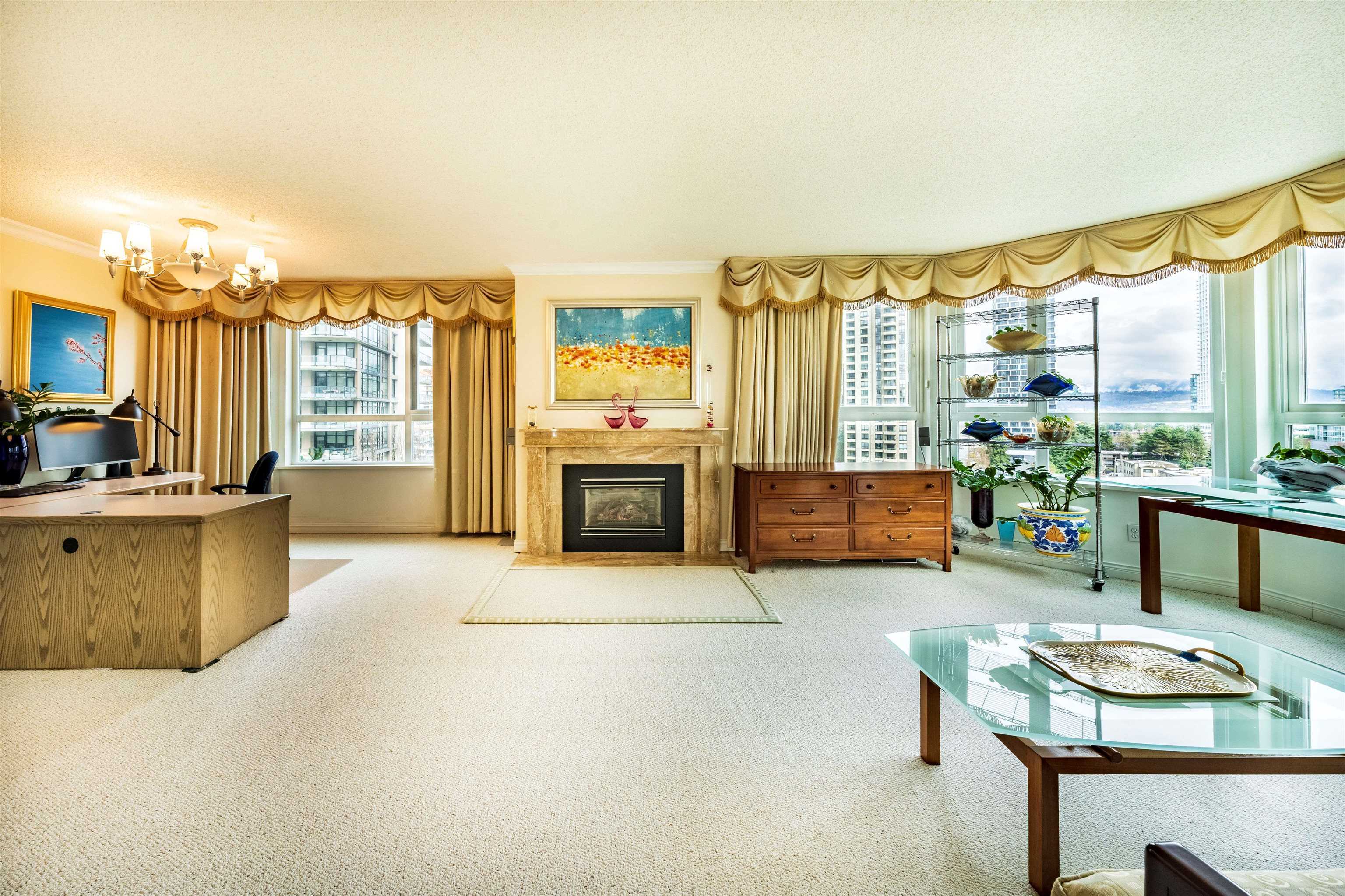 Welcome to this 10th floor corner unit at the Embassy, located in the heart of Central Park Metrotown. This unit faces NE, offering scenic mountain and city views. It boasts large window, a spacious balcony, bright kitchen with window. The large primary bedroom features a 4-picece ensuite, walk-in closet and direct access to the balcony. This unit is super clean and move-in condition, has been upgraded over the years (fireplace, carpet and more).The building with only 4 units on one floor, has under gone extensive upgrades, including full rainscreen, new windows, doors, elevators and re-piped. Enjoy amenities like an indoor pool, sauna, and hot tub. The building is within walking distance to the Skytrain, Central Park ,Cristal mall. Open house March 29,30.Sat and Sun 2:00-4:00pm.