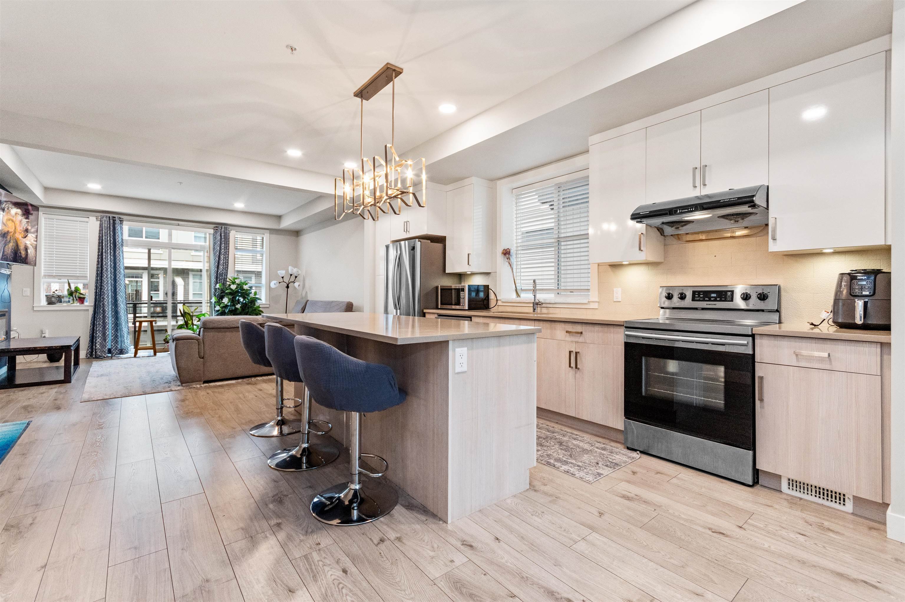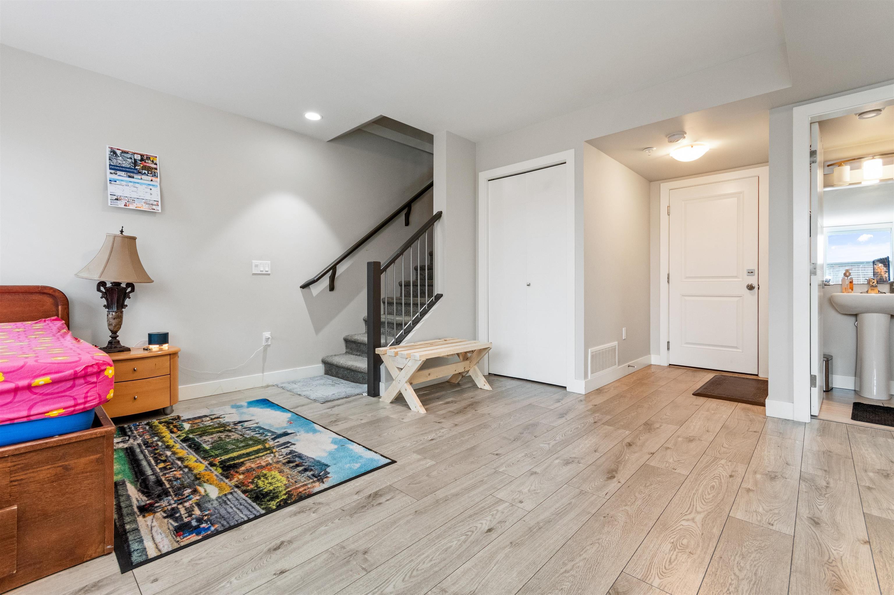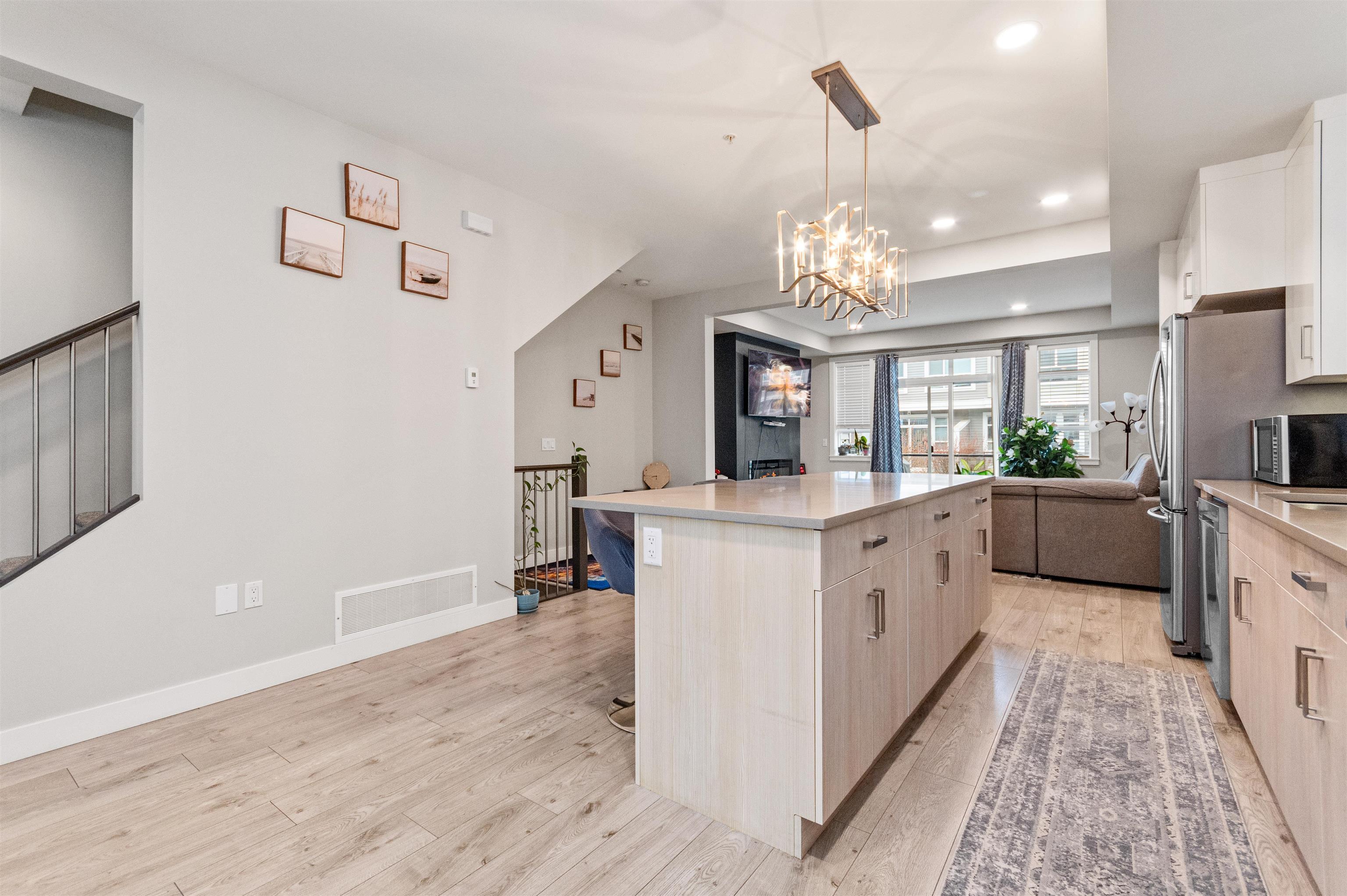 This contemporary and open floor plan END Unit townhome boasts over 1735sq ft spread out over 3 levels. Features a DOUBLE garage with visitor spot right next to it, park up to 4-5 vehicles. A fenced backyard is a great space for your furry friends. The lower level includes a large Rec/Media room or can be used as another bedroom with two pc washroom. The Main offers an open floor plan with large kitchen to Dining room and a warm and welcoming Living room with Electric fireplace for cold days and a slider opening up to the large Sundeck that's perfect for BBQ weather. Upstairs you find the Primary with large walk in closet and spa like Ensuite Bathroom, the main bathroom and Laundry with two good sized rooms. High ceilings throughout and located close to Hwy 1, shopping, and schools.This contemporary and open floor plan END Unit townhome boasts over 1735sq ft spread out over 3 levels. Features a DOUBLE garage with visitor spot right next to it, park up to 4-5 vehicles. A fenced backyard is a great space for your furry friends. The lower level includes a large Rec/Media room or can be used as another bedroom with two pc washroom. The Main offers an open floor plan with large kitchen to Dining room and a warm and welcoming Living room with Electric fireplace for cold days and a slider opening up to the large Sundeck that's perfect for BBQ weather. Upstairs you find the Primary with large walk in closet and spa like Ensuite Bathroom, the main bathroom and Laundry with two good sized rooms. High ceilings throughout and located close to Hwy 1, shopping, and schools.