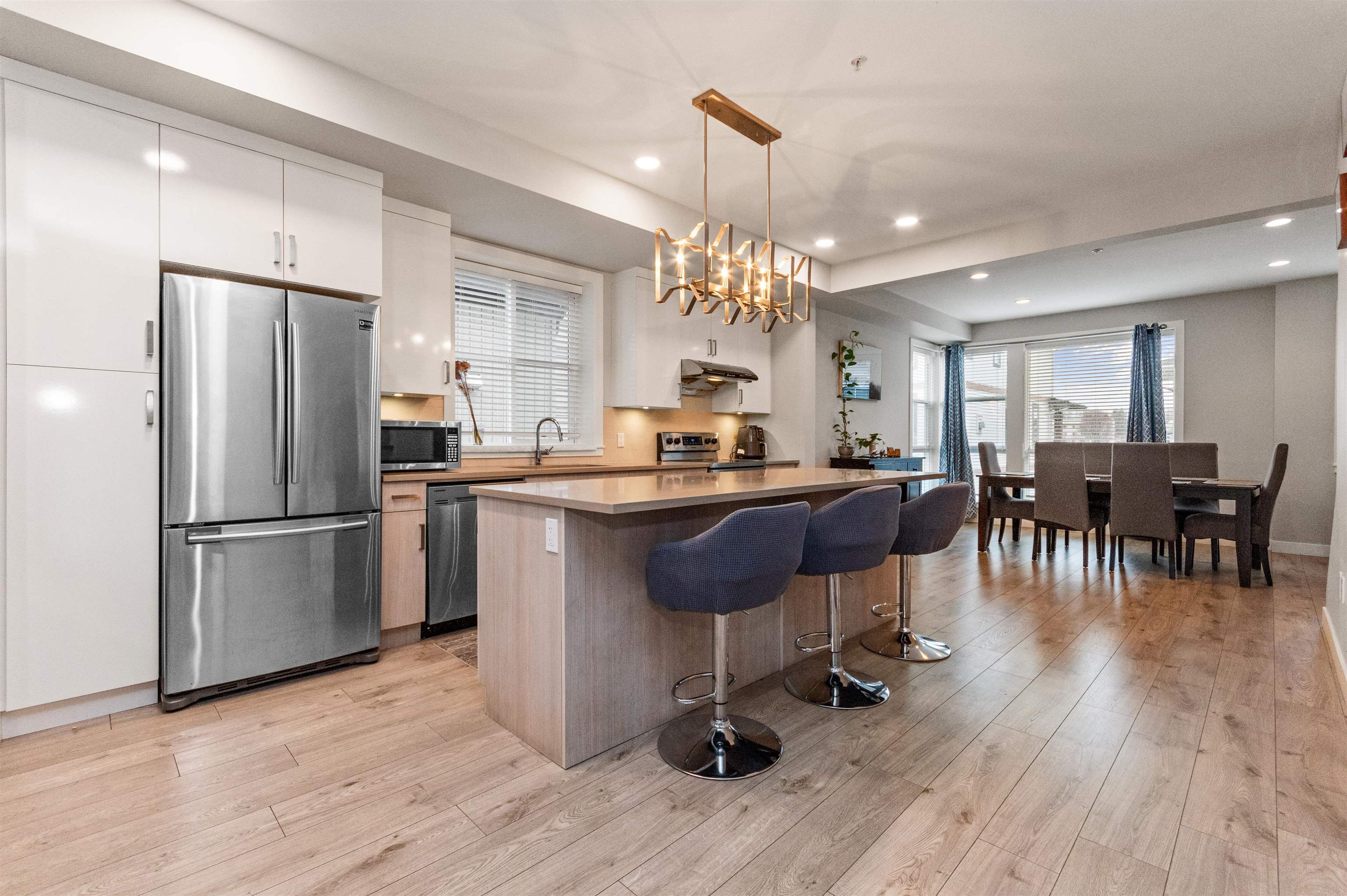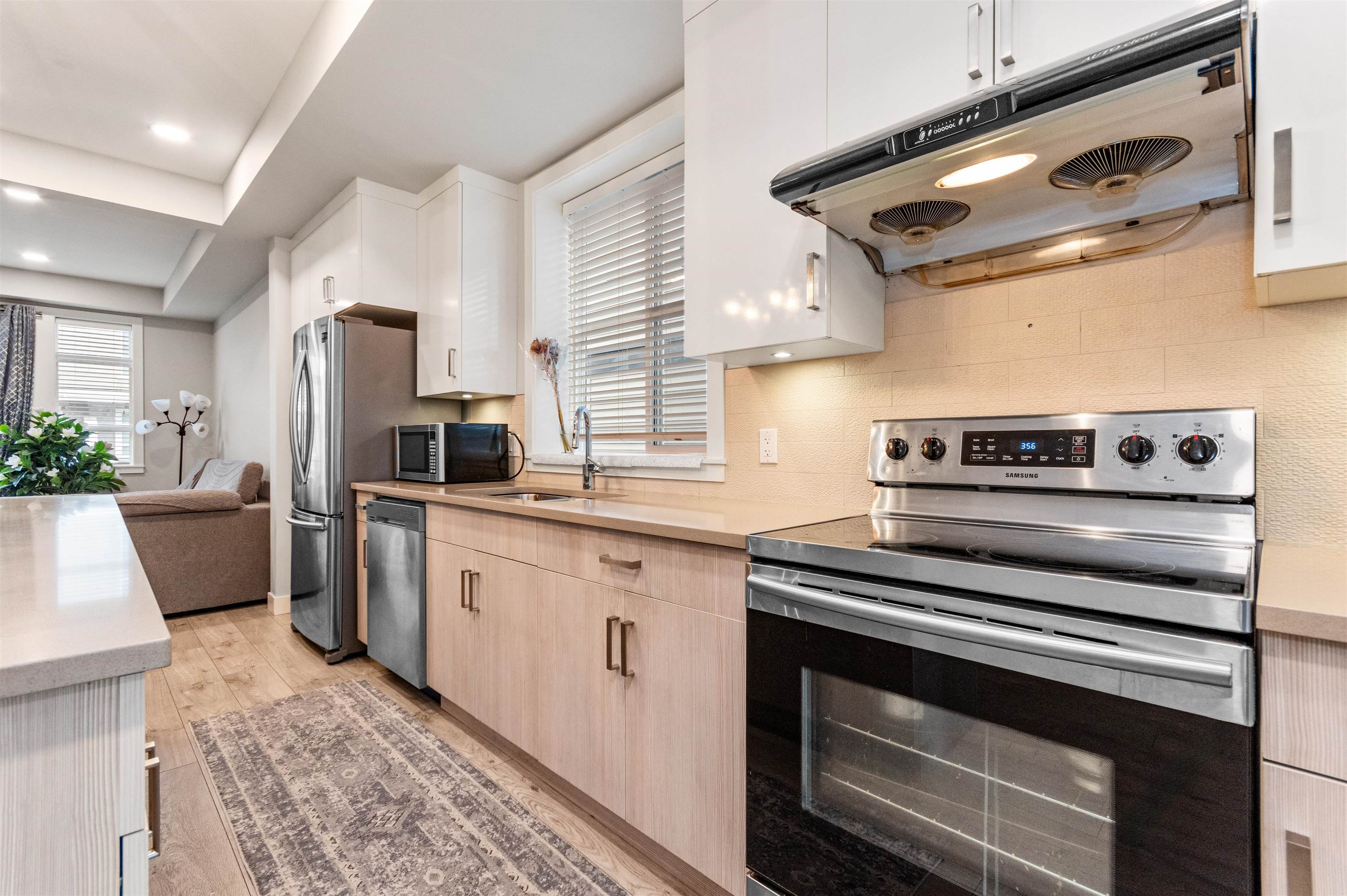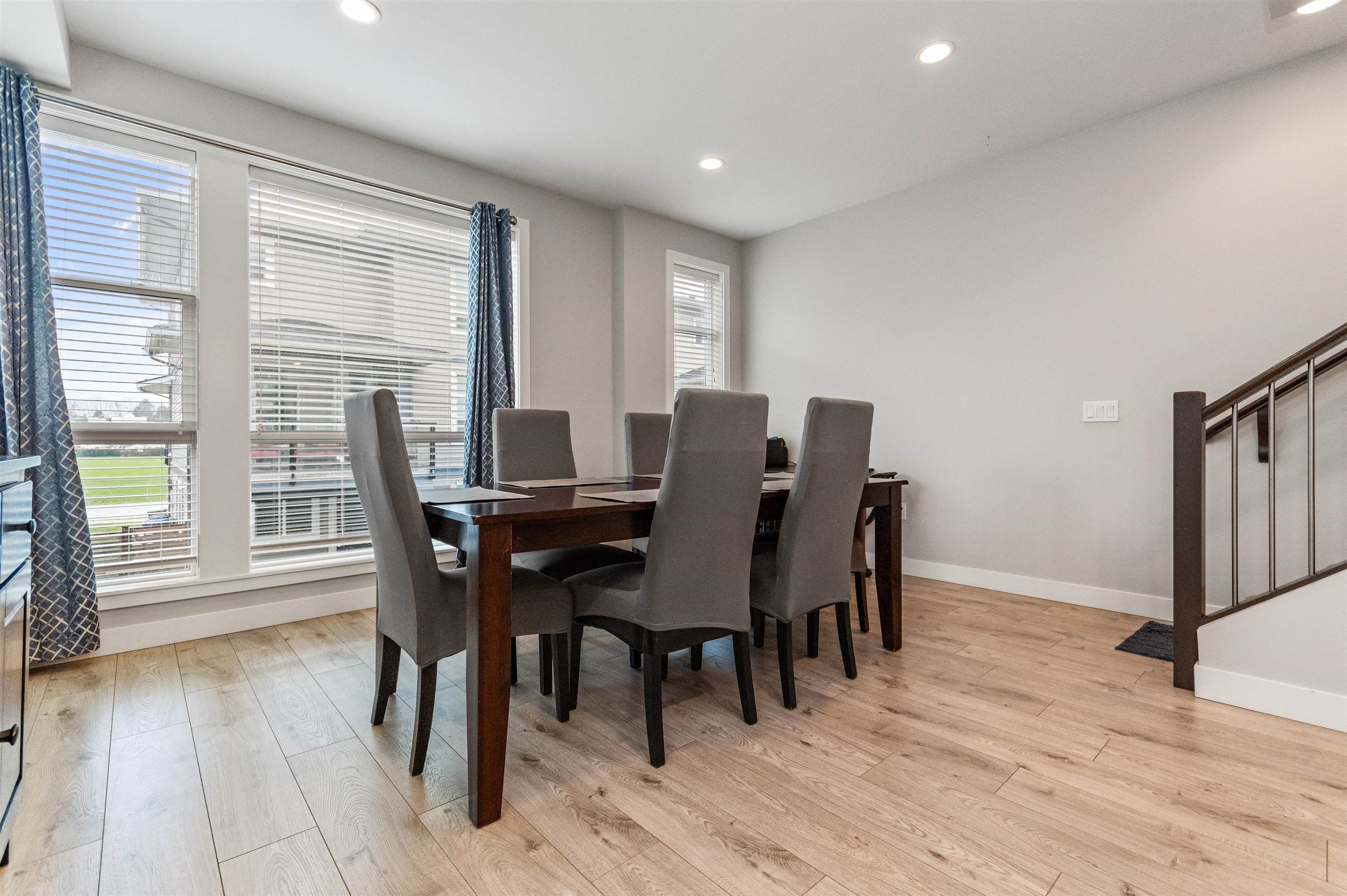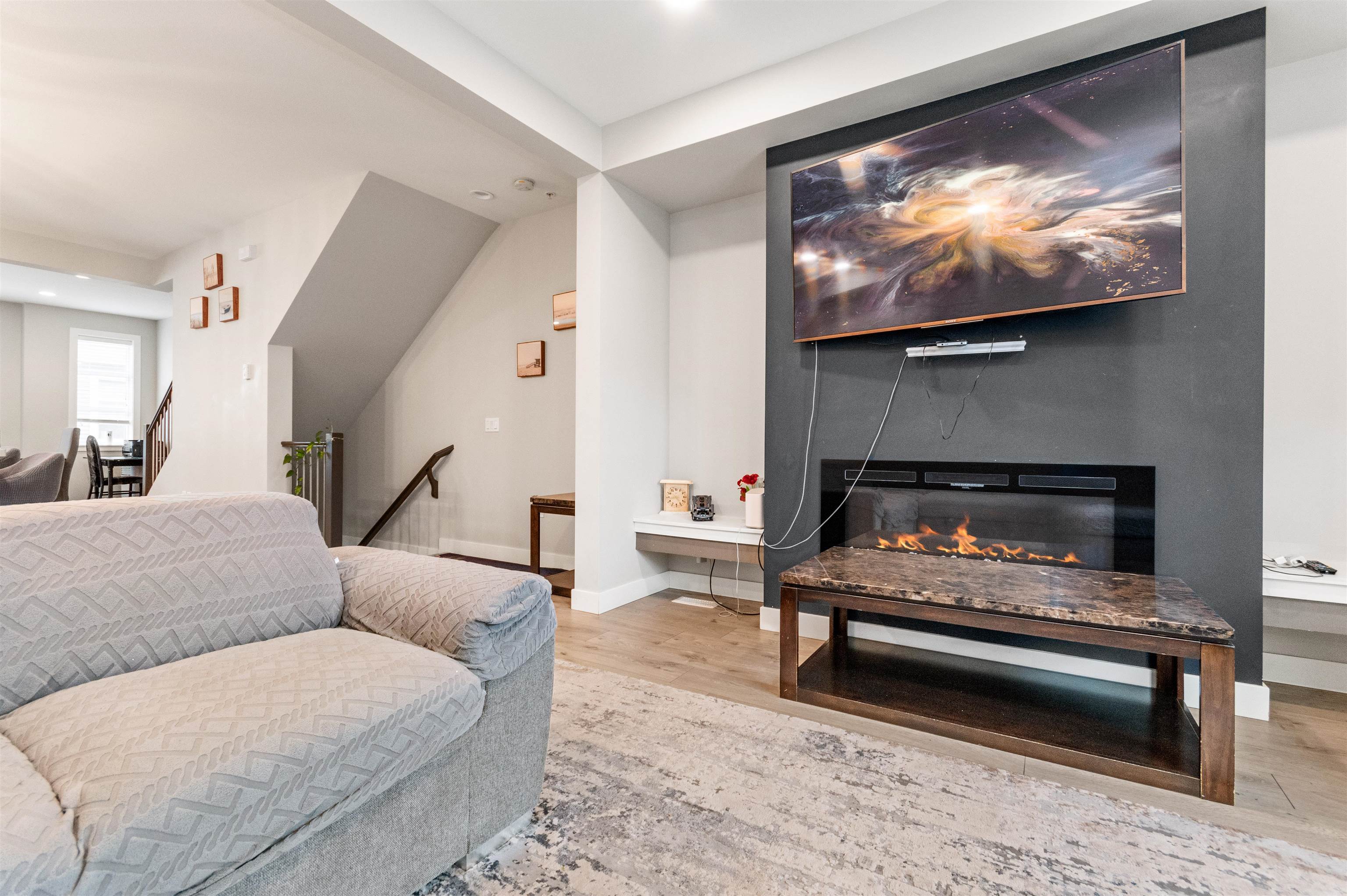 This contemporary and open floor plan END Unit townhome boasts over 1735sq ft spread out over 3 levels. Features a DOUBLE garage with visitor spot right next to it, park up to 4-5 vehicles. A fenced backyard is a great space for your furry friends. The lower level includes a large Rec/Media room or can be used as another bedroom with two pc washroom. The Main offers an open floor plan with large kitchen to Dining room and a warm and welcoming Living room with Electric fireplace for cold days and a slider opening up to the large Sundeck that's perfect for BBQ weather. Upstairs you find the Primary with large walk in closet and spa like Ensuite Bathroom, the main bathroom and Laundry with two good sized rooms. High ceilings throughout and located close to Hwy 1, shopping, and schools.This contemporary and open floor plan END Unit townhome boasts over 1735sq ft spread out over 3 levels. Features a DOUBLE garage with visitor spot right next to it, park up to 4-5 vehicles. A fenced backyard is a great space for your furry friends. The lower level includes a large Rec/Media room or can be used as another bedroom with two pc washroom. The Main offers an open floor plan with large kitchen to Dining room and a warm and welcoming Living room with Electric fireplace for cold days and a slider opening up to the large Sundeck that's perfect for BBQ weather. Upstairs you find the Primary with large walk in closet and spa like Ensuite Bathroom, the main bathroom and Laundry with two good sized rooms. High ceilings throughout and located close to Hwy 1, shopping, and schools.